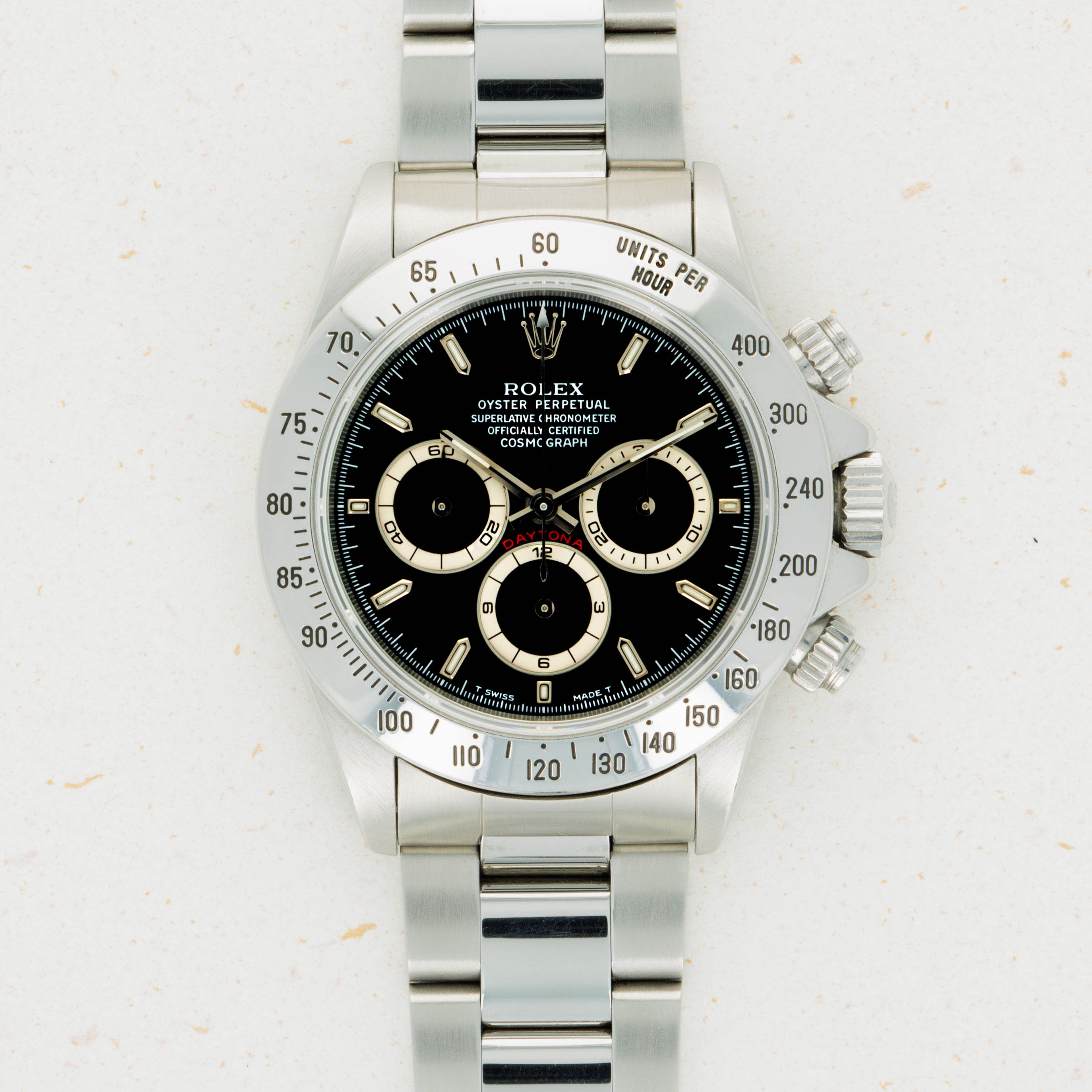 Perhaps one of the most iconic timepieces to have ever hit the market, the Rolex Daytona is widely recognized as one of the most desirable watches there is. Distinguished by its three generations, what we have here is the 2nd generation 5-digit reference, known as the "Zenith" Daytonas due to their movement (the Rolex cal. 4030) being a heavily modified version of the Zenith-supplied El Primero movement. Forgoing its date function, slowing the movement's frequency down to increase the power reserve, and featuring fewer parts to improve reliability, the cal. 4030 found within the Zenith Daytonas is one of the finest pieces of horological engineering to come out of the late 80s and 90s (1988-2000). Still a mechanically astute timepiece to this day, the Zenith Daytona exists through a wide variety of references, of which, the ref. 16520 is the purest. A wonderful expression of Rolex's engineering capabilities and the consistency in their iconic design language, the Zenith Daytona is the unsung hero in the Daytona's lineage. Still, it won't be for long when collectors begin to unravel the story and see the value these incredible timepieces hold.
