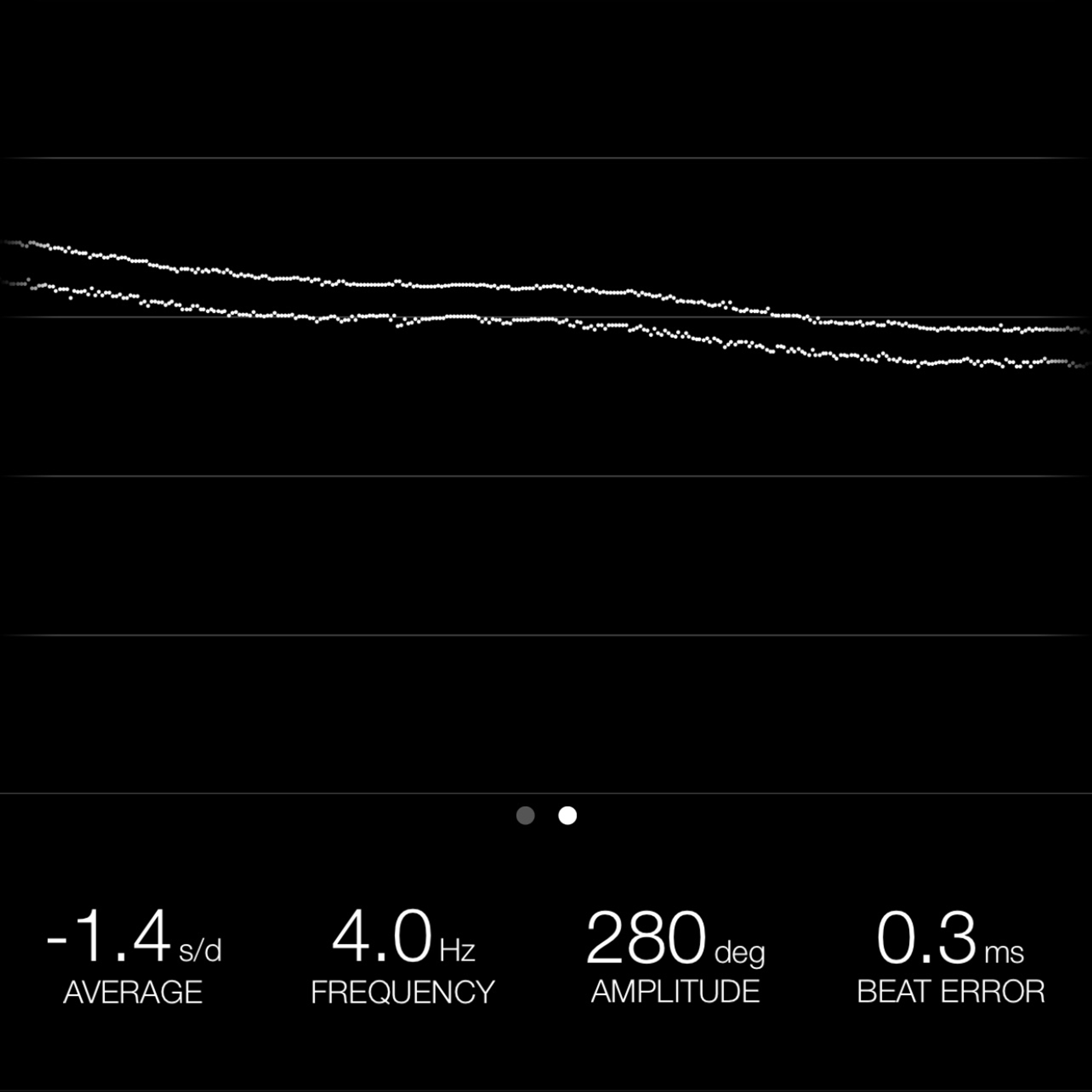 This reading was taken (crown down) with a ONEOF Accuracy Boutique Edition timing machine at time of cataloging. It is provided as a courtesy only, and shall not be construed as a warranty or guarantee of any kind. Please refer to our terms and conditions of sale for more information.