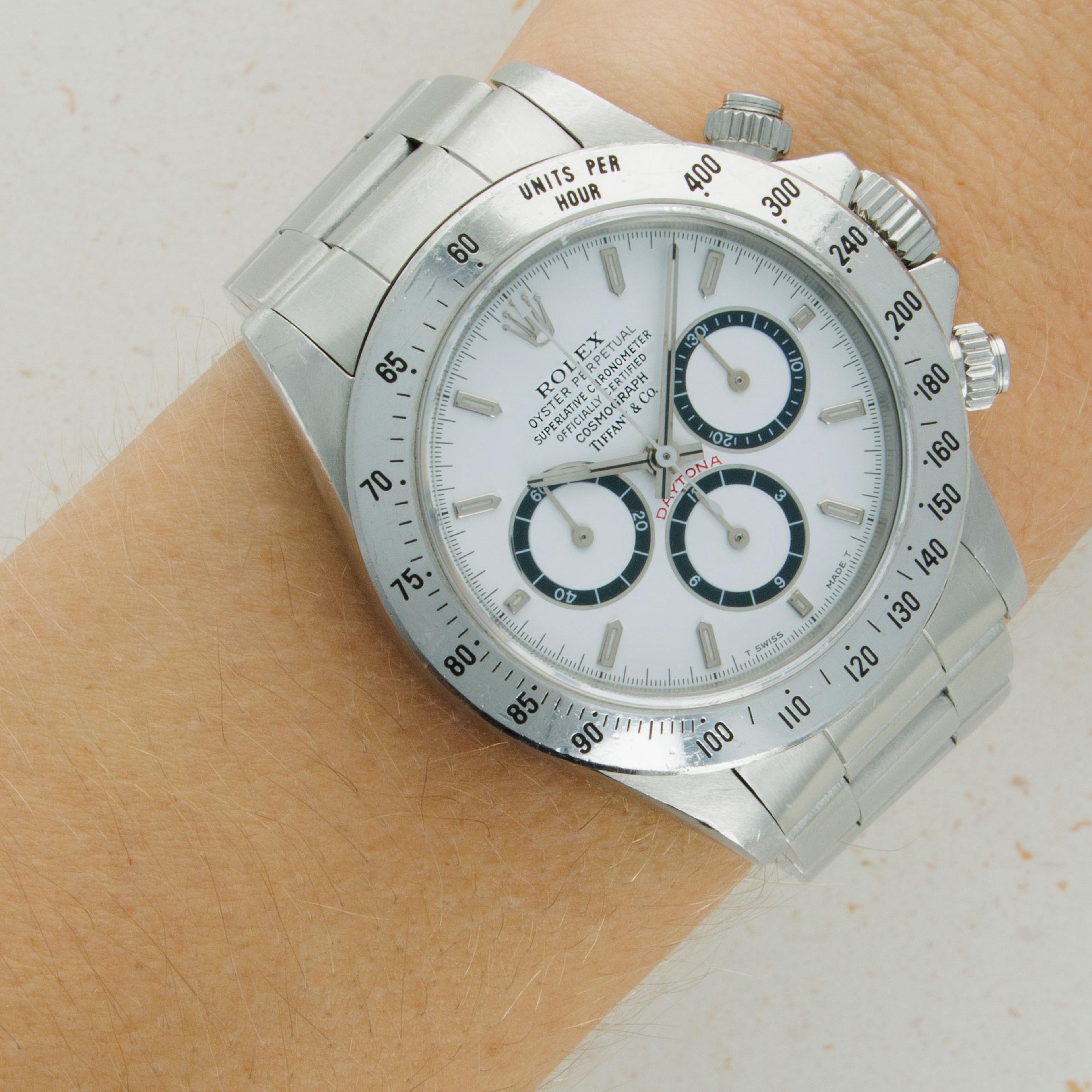 Featuring a white 'panda' dial, the Daytona's most popular dial variant, this example would be extremely popular in its own right, but when co-signed by Tiffany & Co.'s legendary branding, it takes it to another level of desirability and exclusivity entirely.