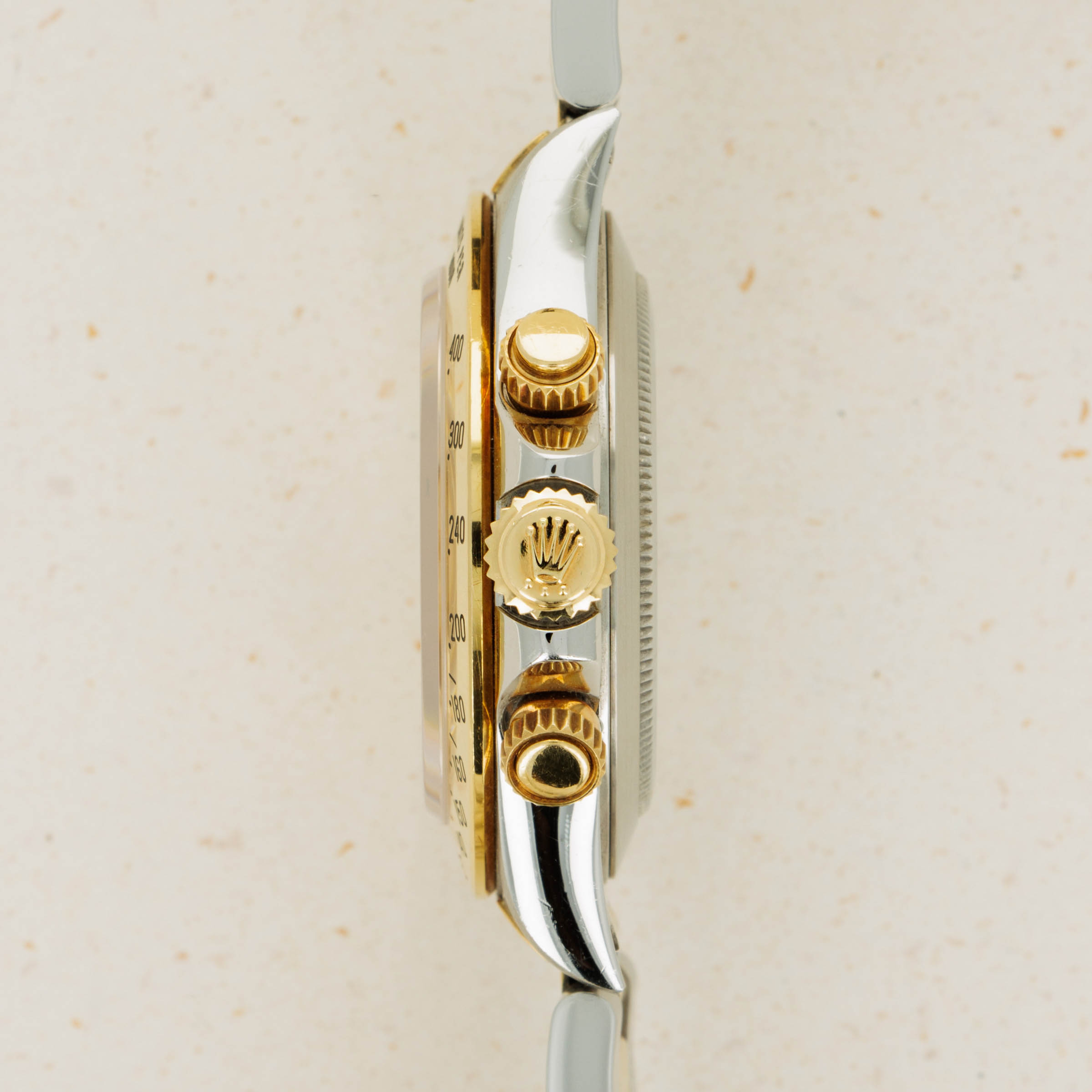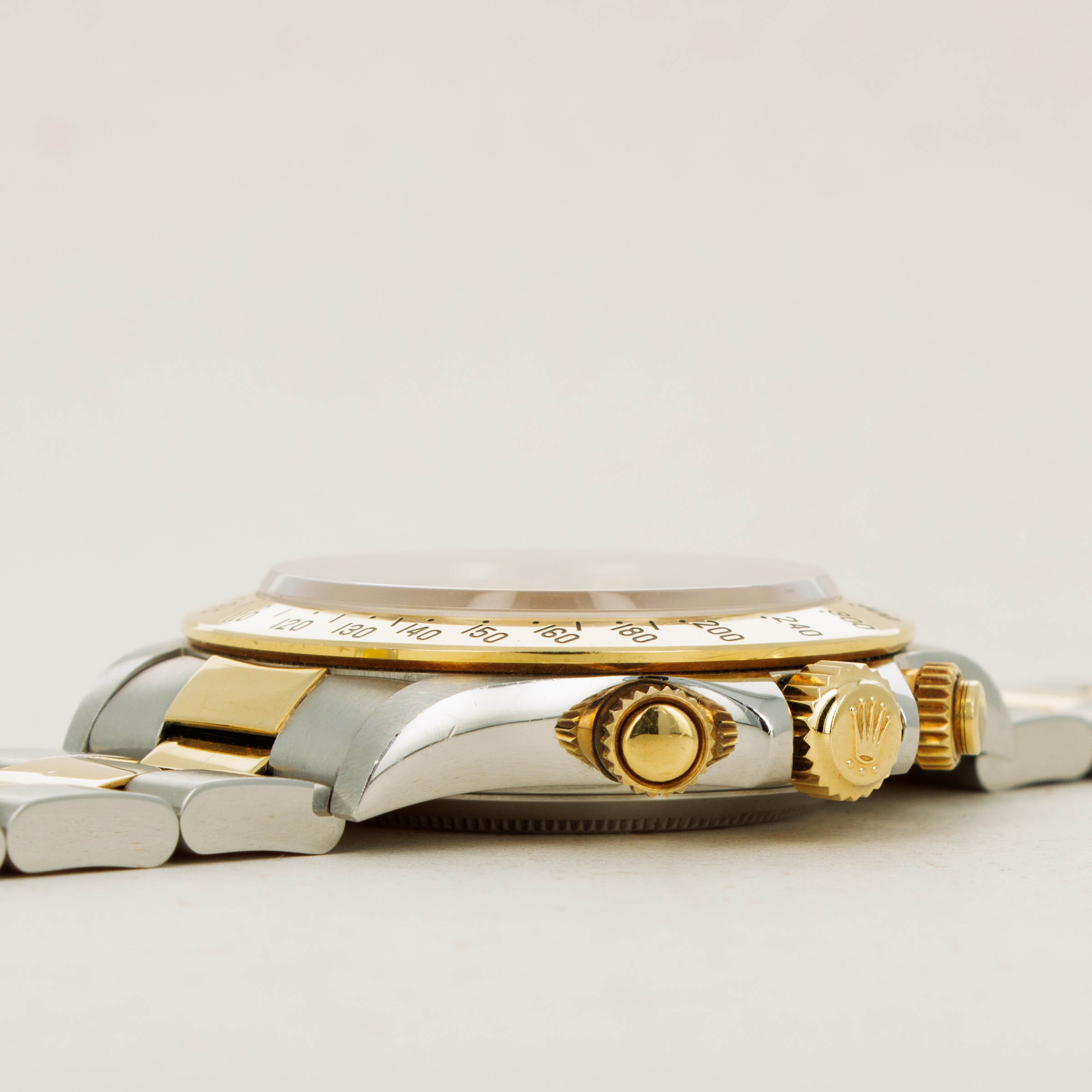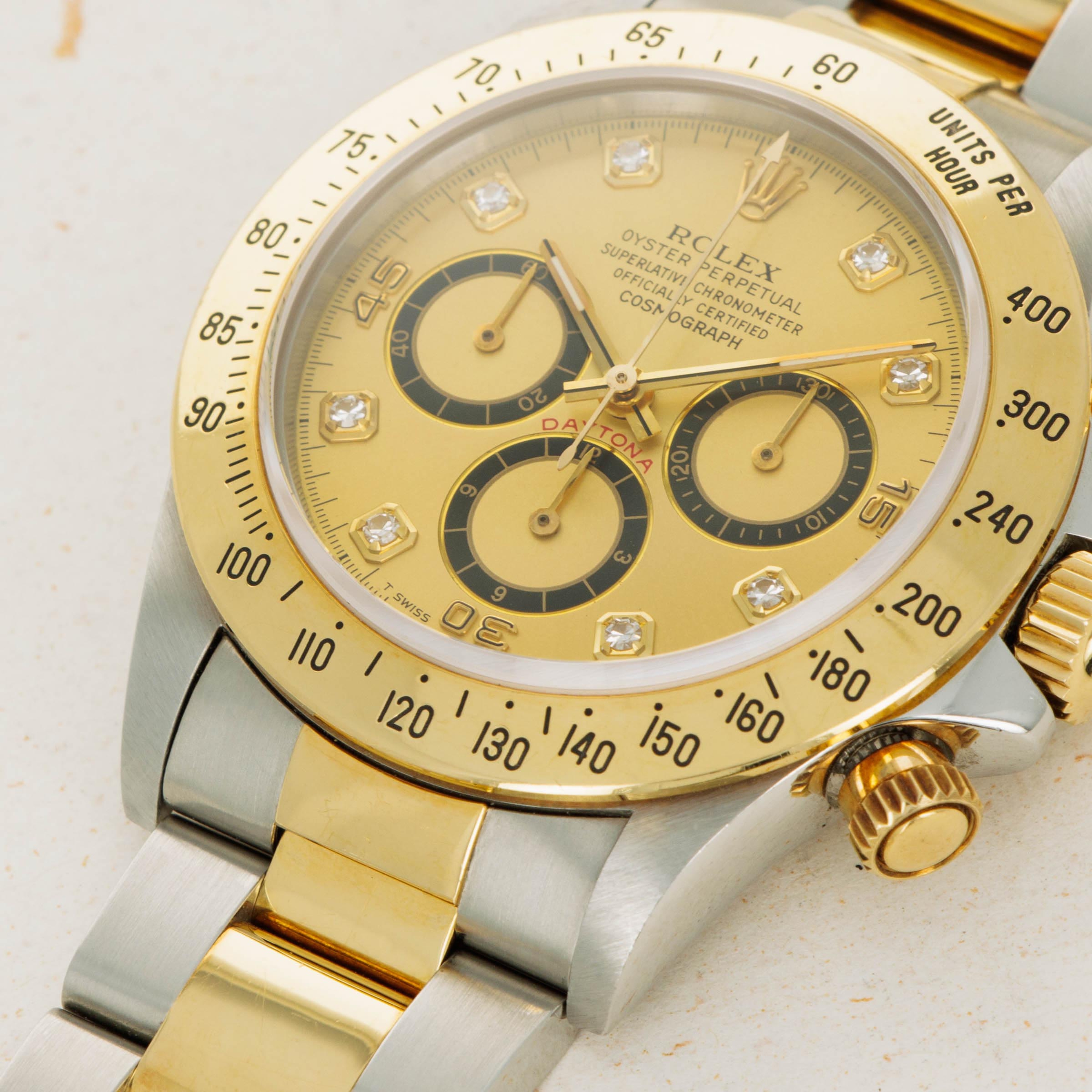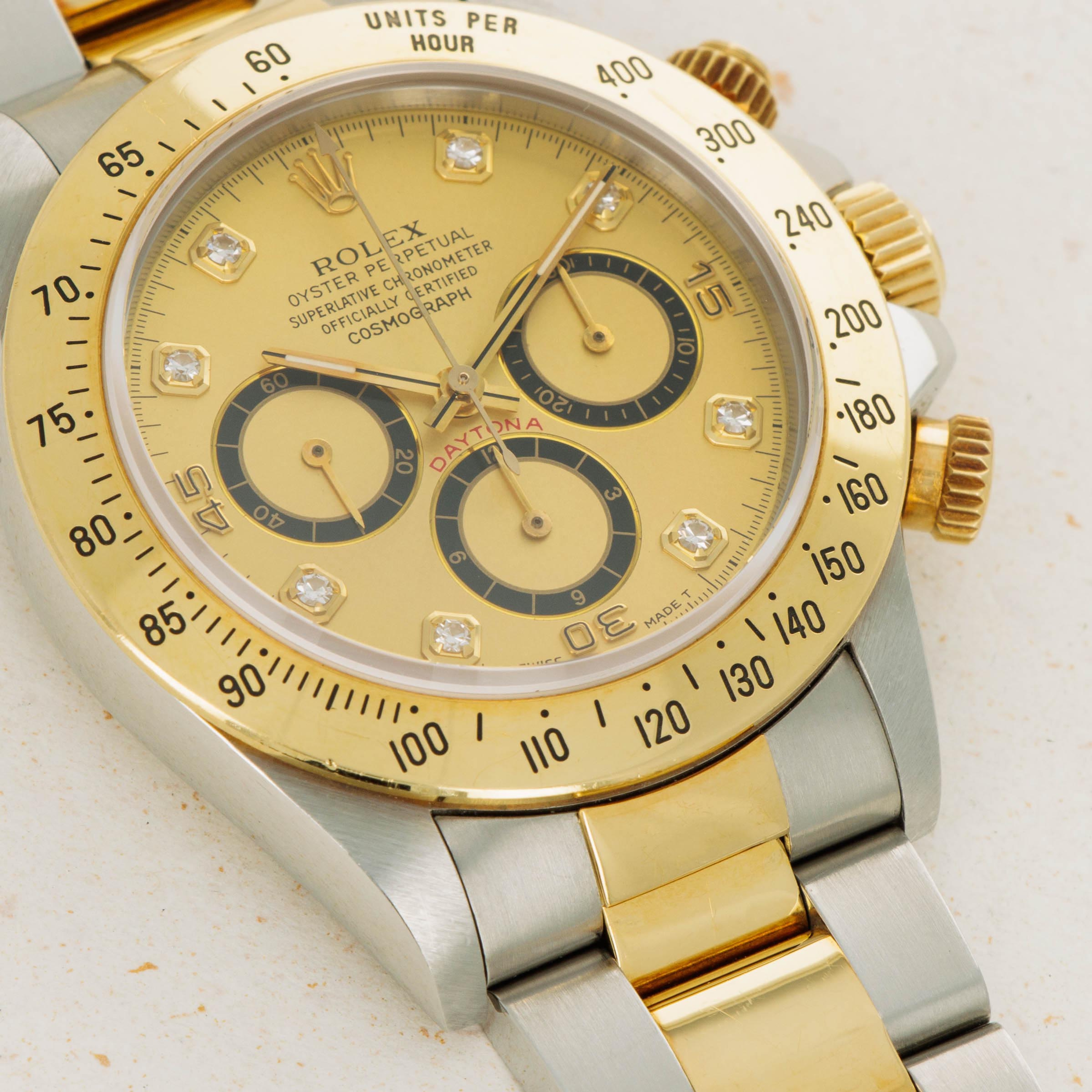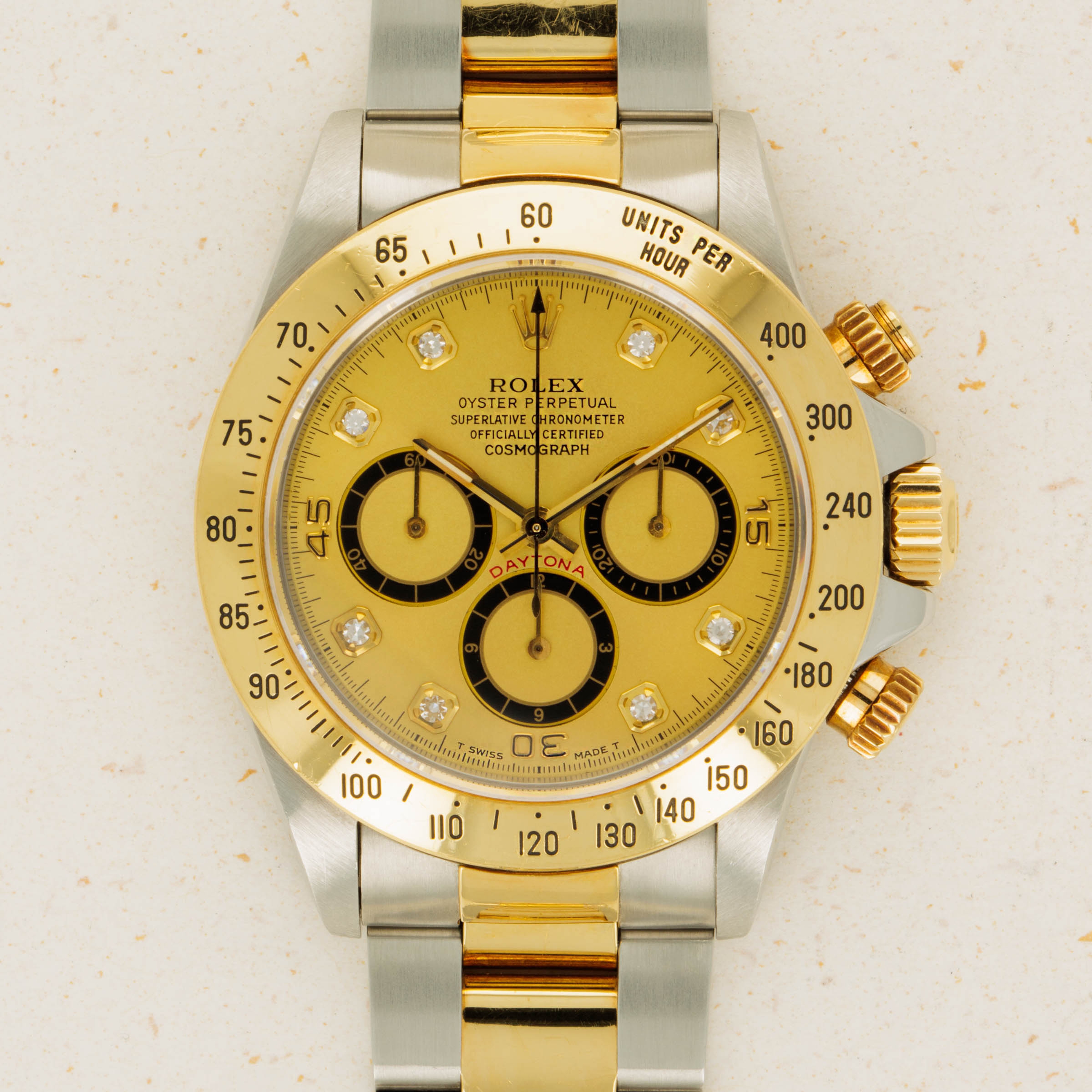 Adding a luxurious element to the Daytona's otherwise tool watch construction, the diamond-set two-tone ref. 16523 is a brilliant watch that could just as easily handle the beach as it could a black-tie event or the race track.