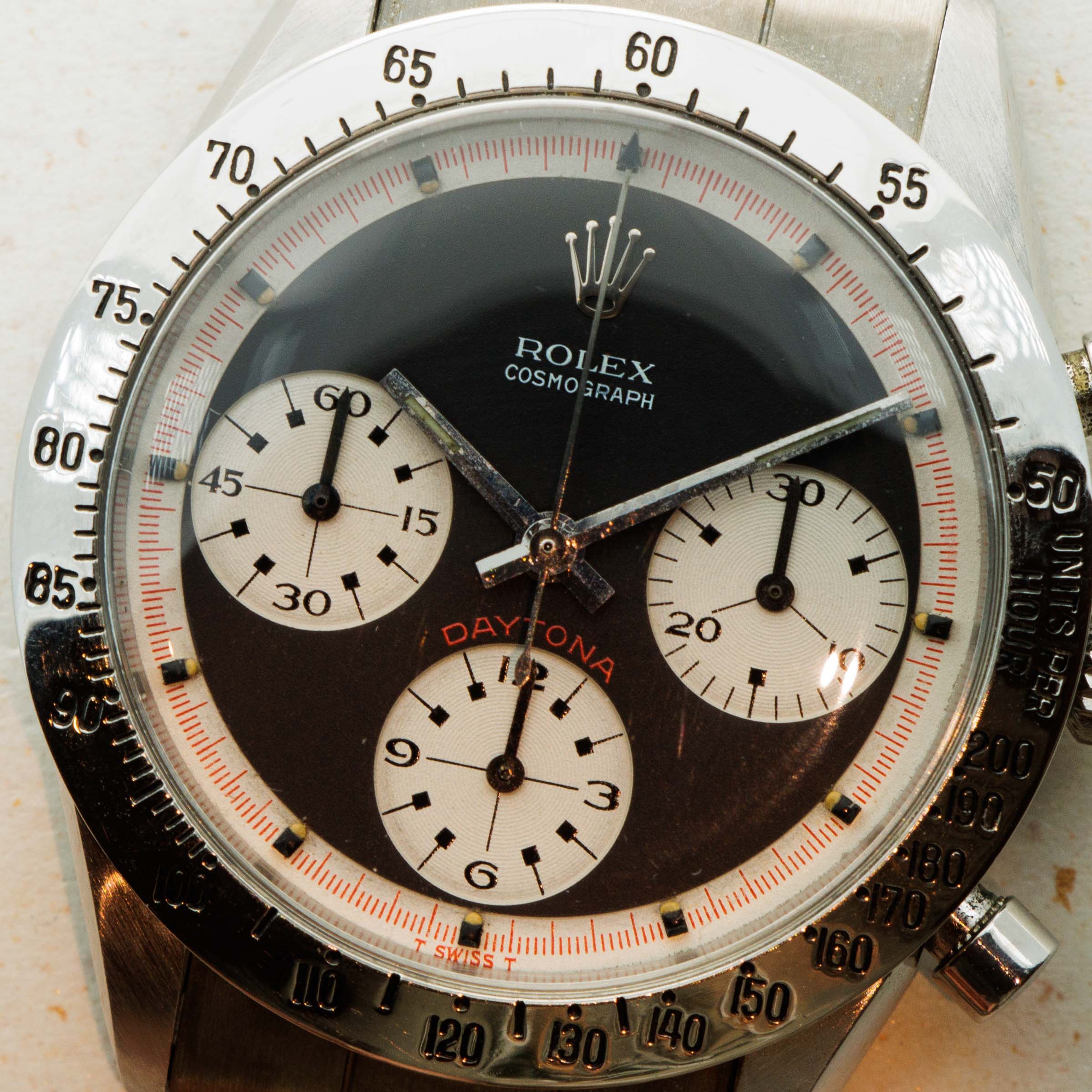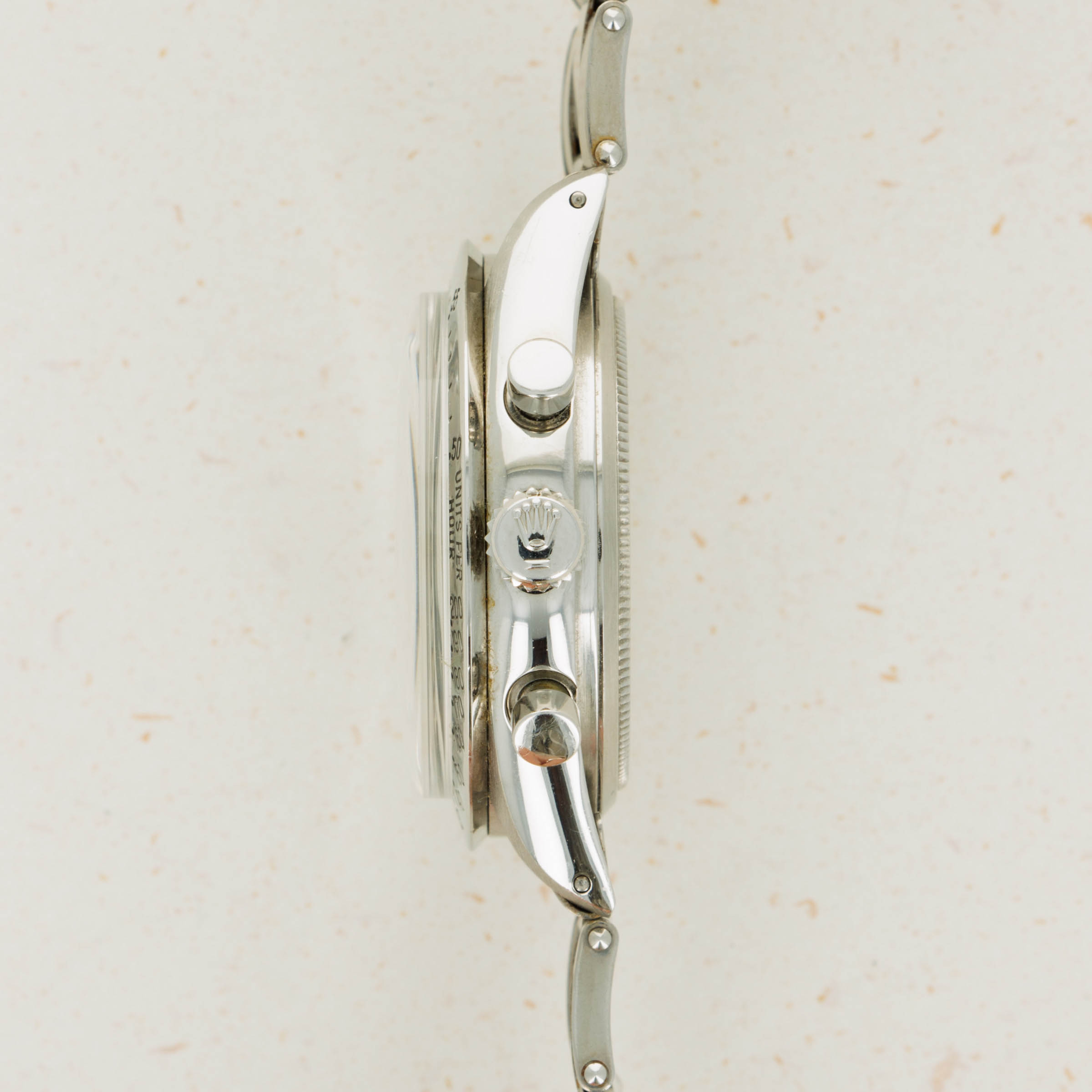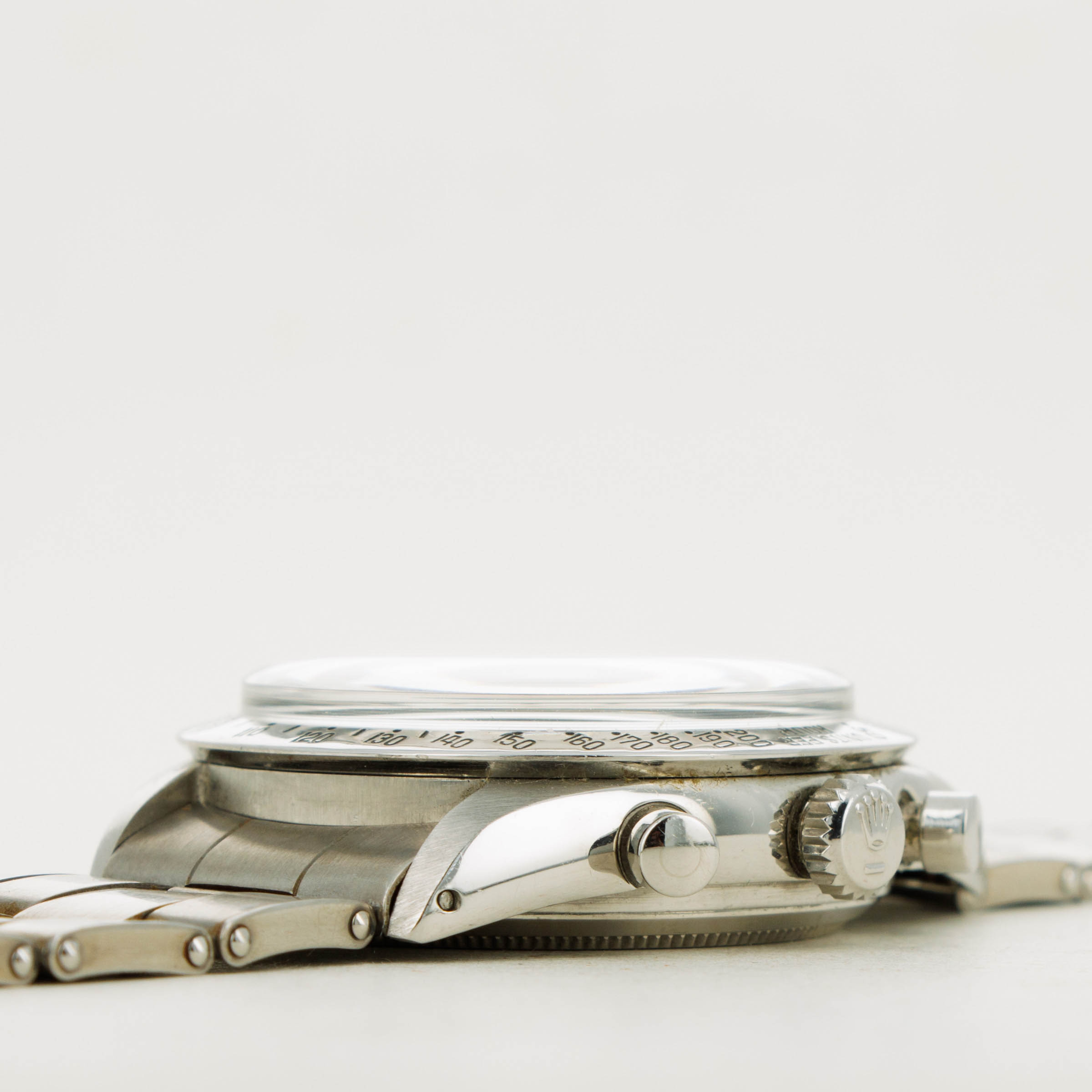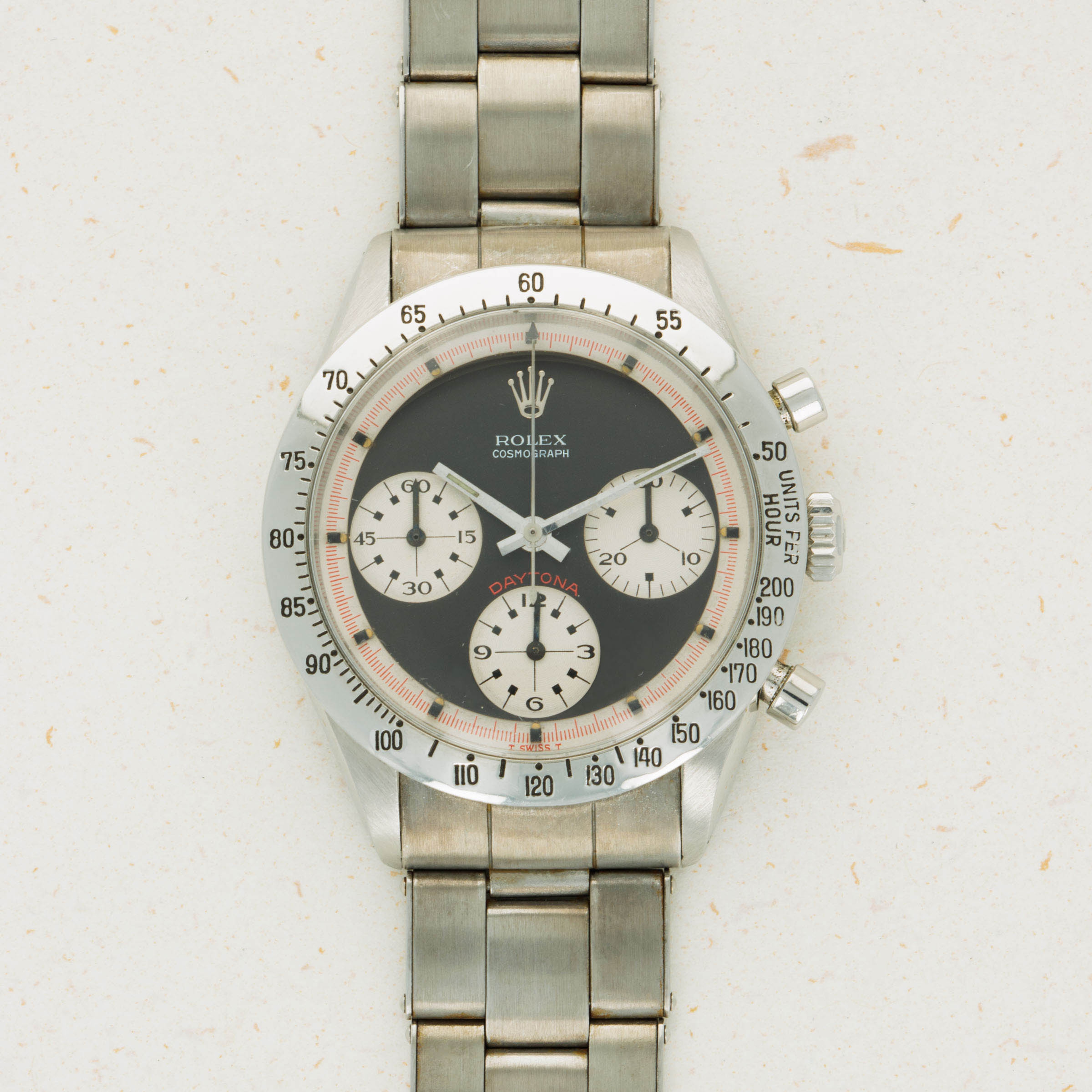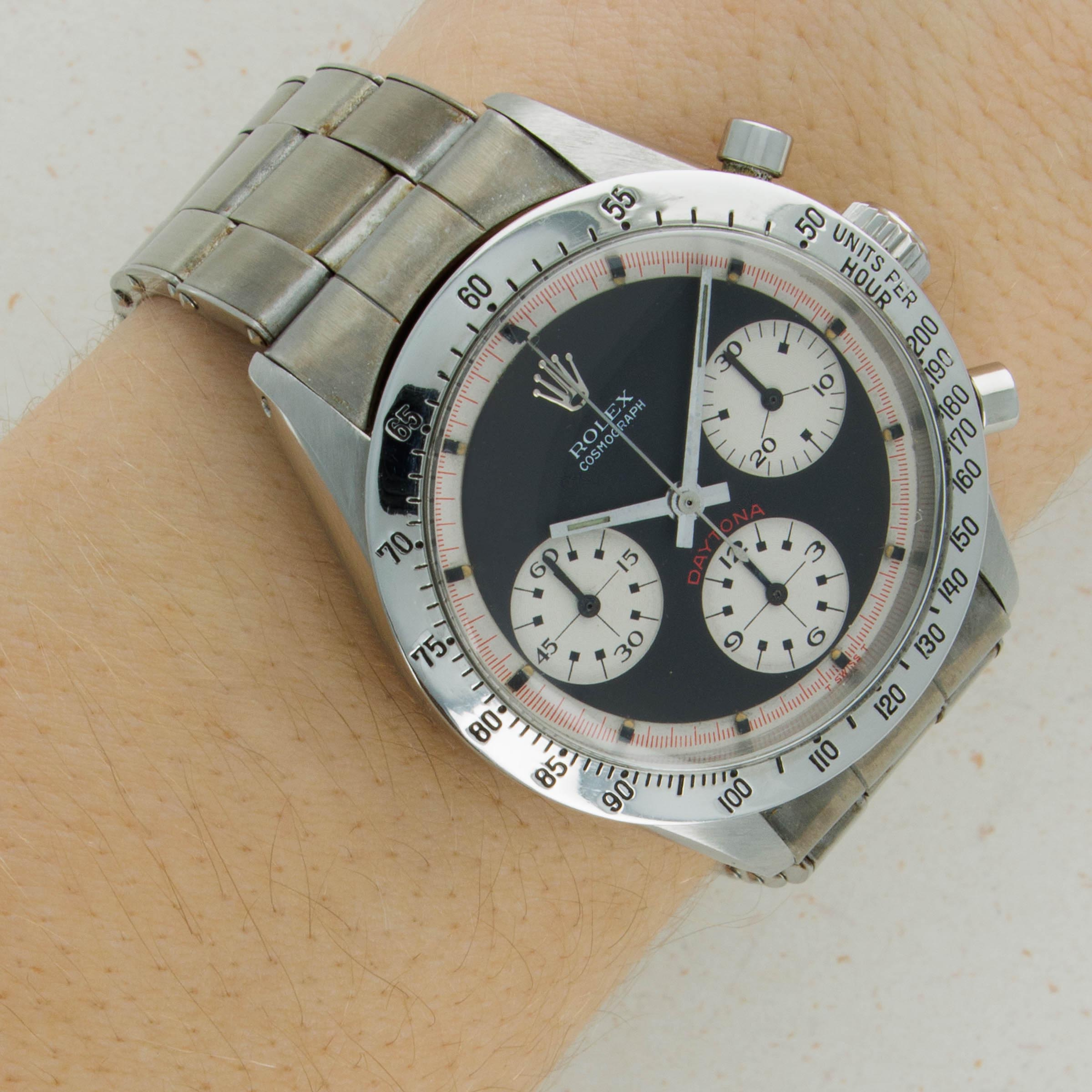Identifiable as the Daytona ref. 6239, this example boasts pump pushers along with a stainless steel bezel - the exact configuration that Paul Newman himself wore.