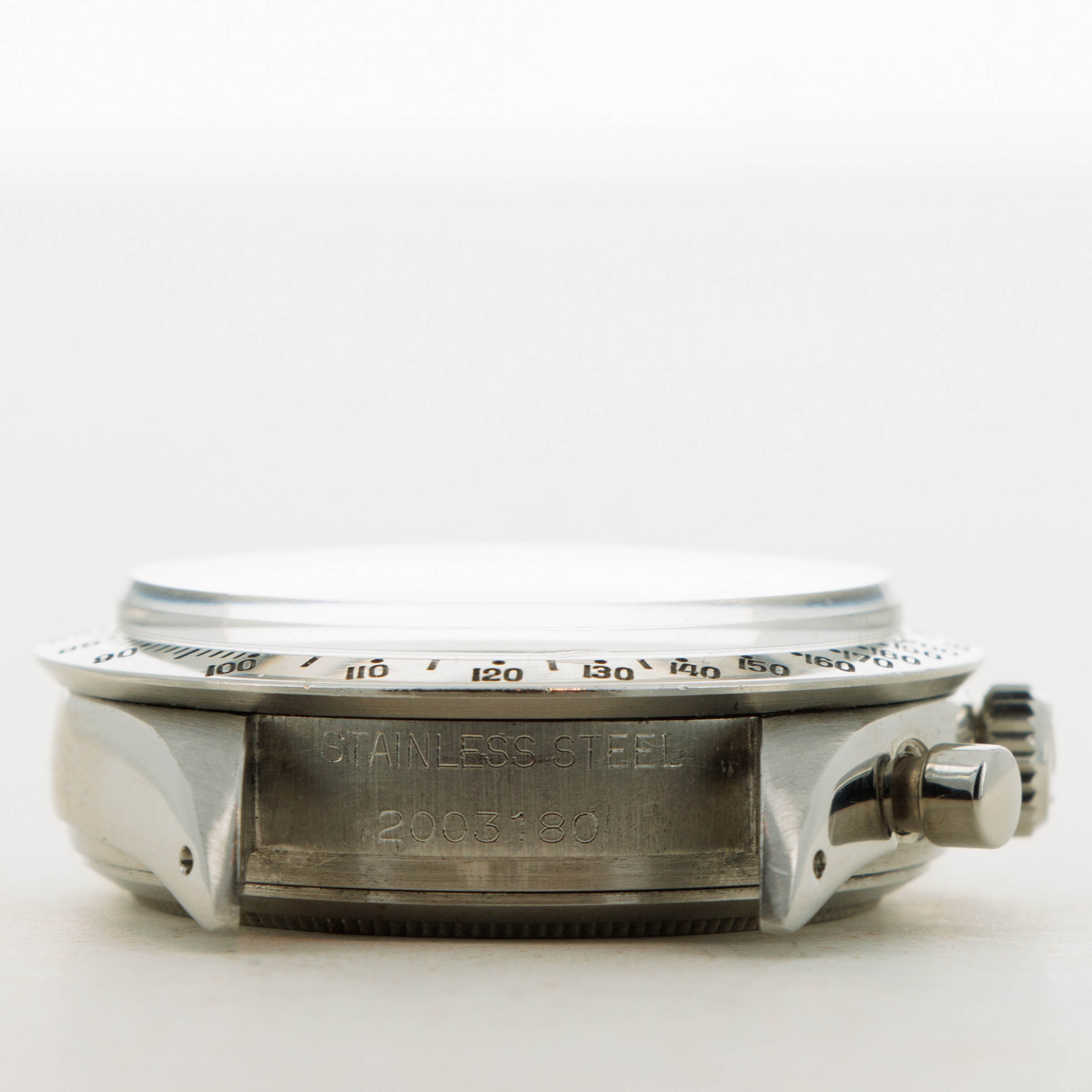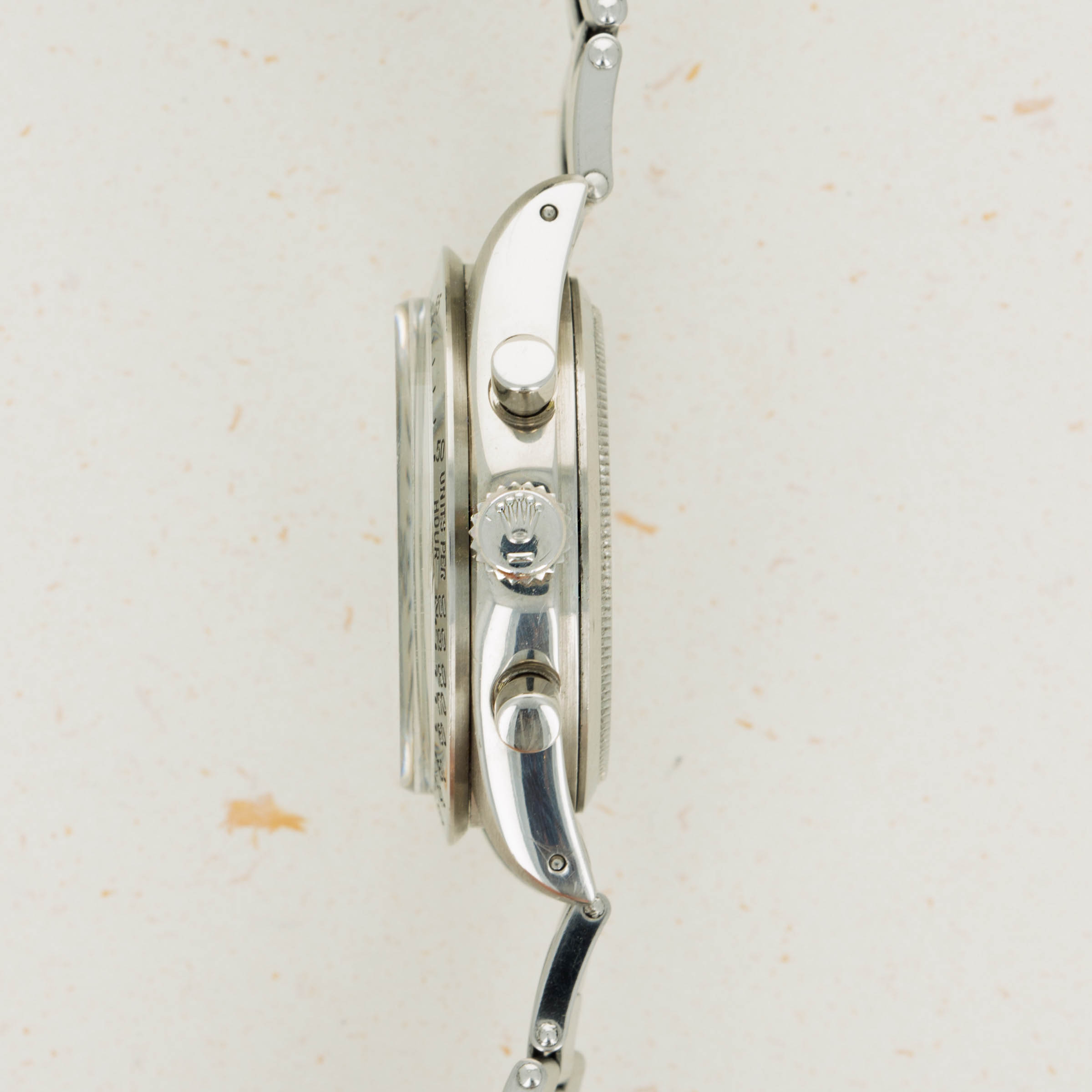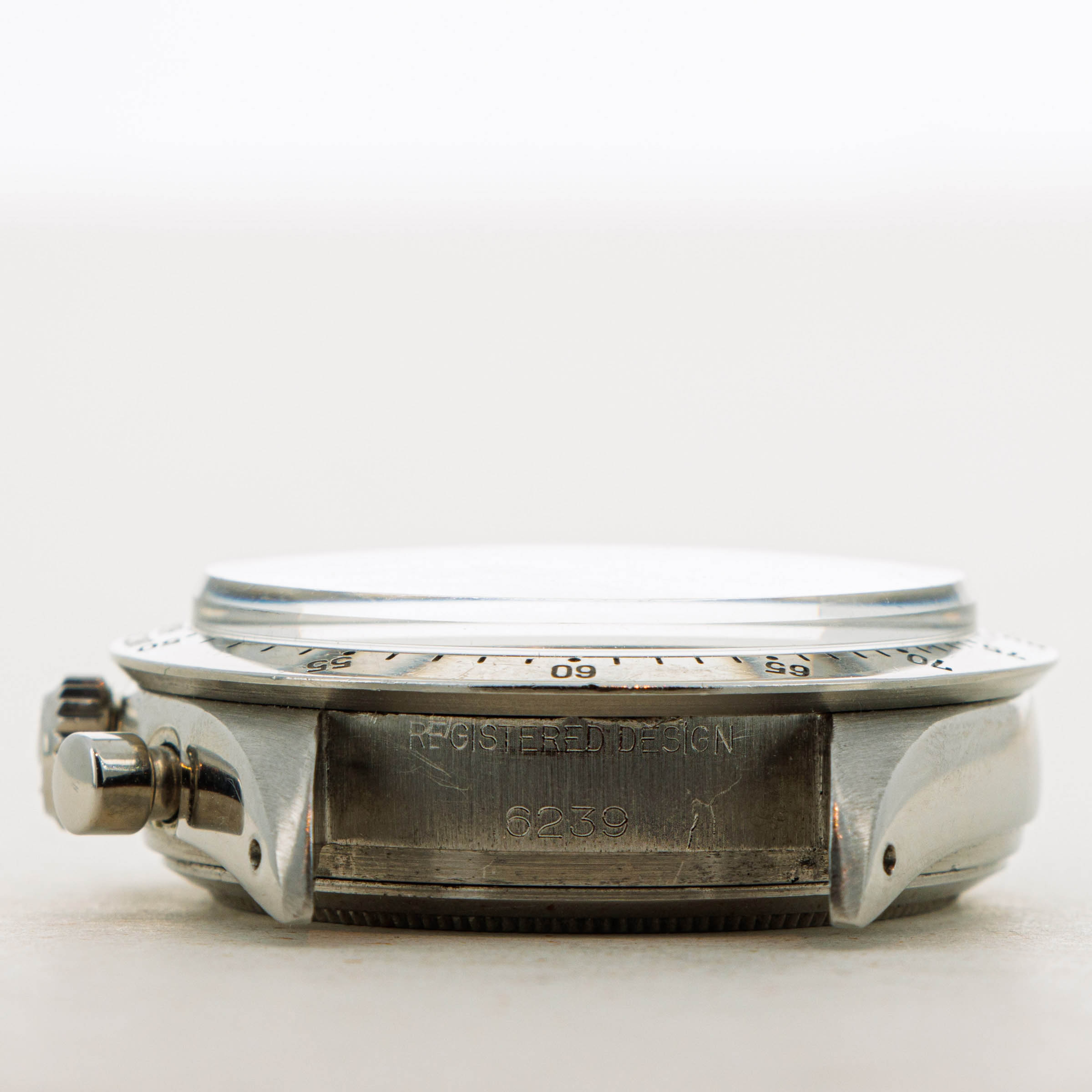 Identifiable as a ref. 6239, this example boasts pump pushers along with a stainless steel bezel - the exact configuration that Paul Newman himself wore.