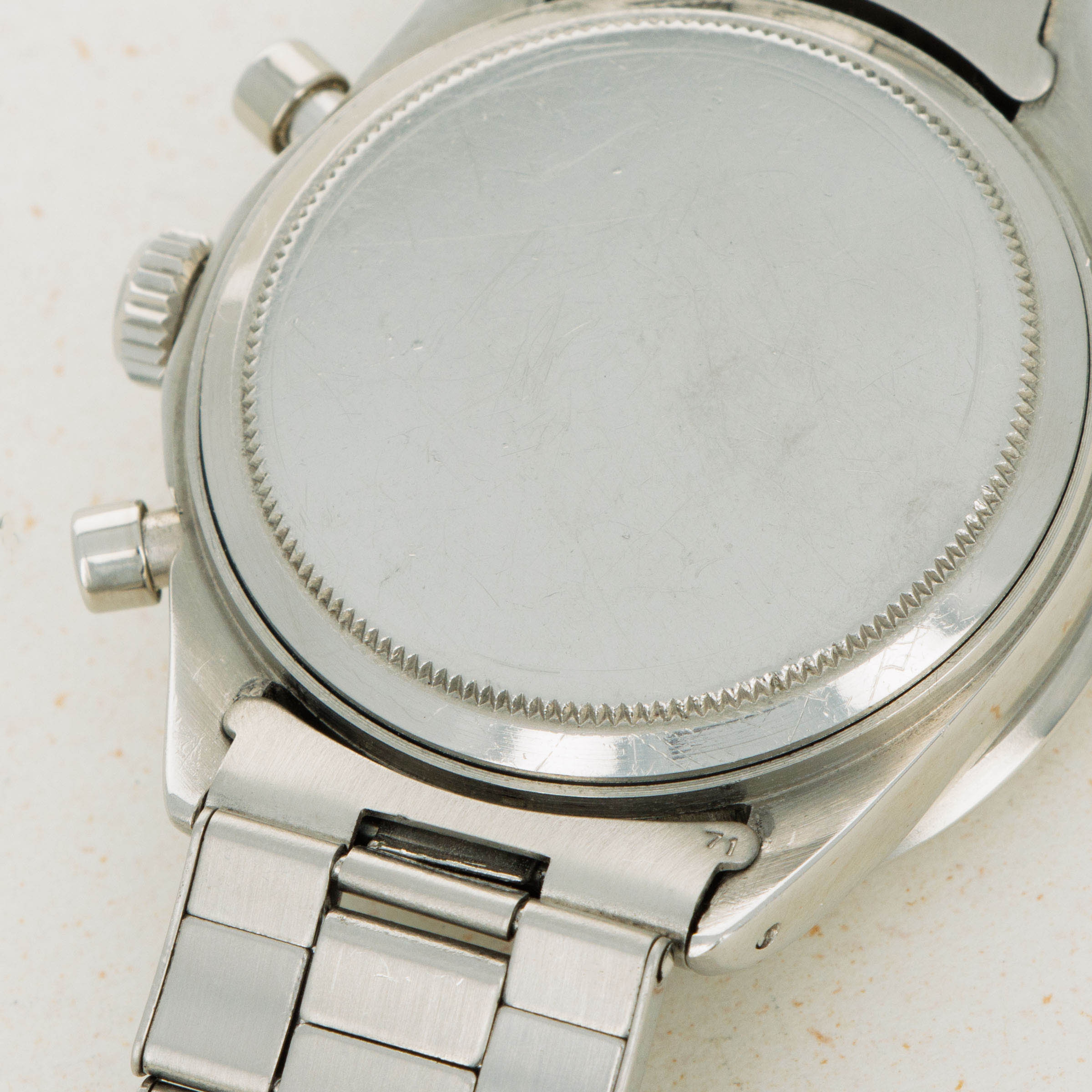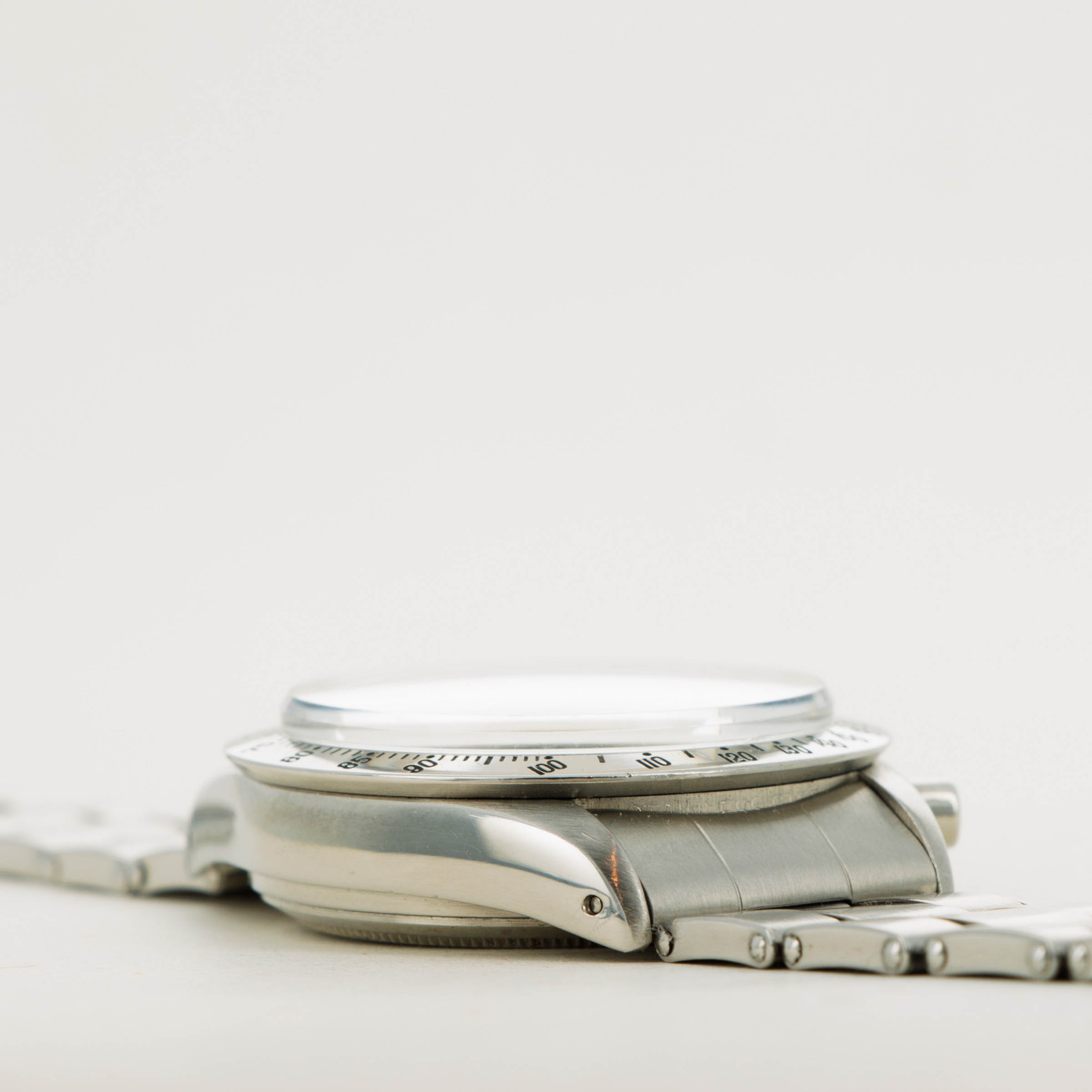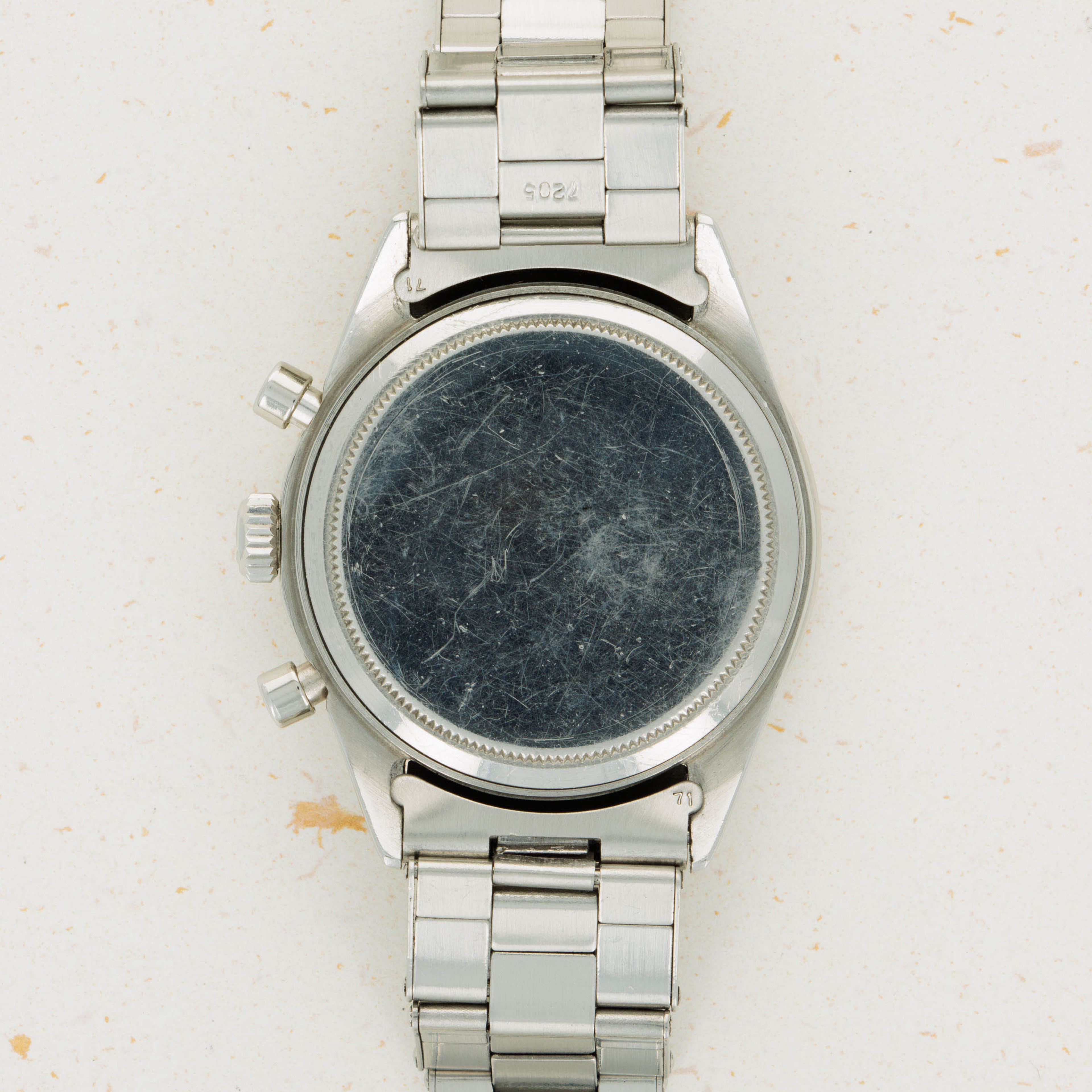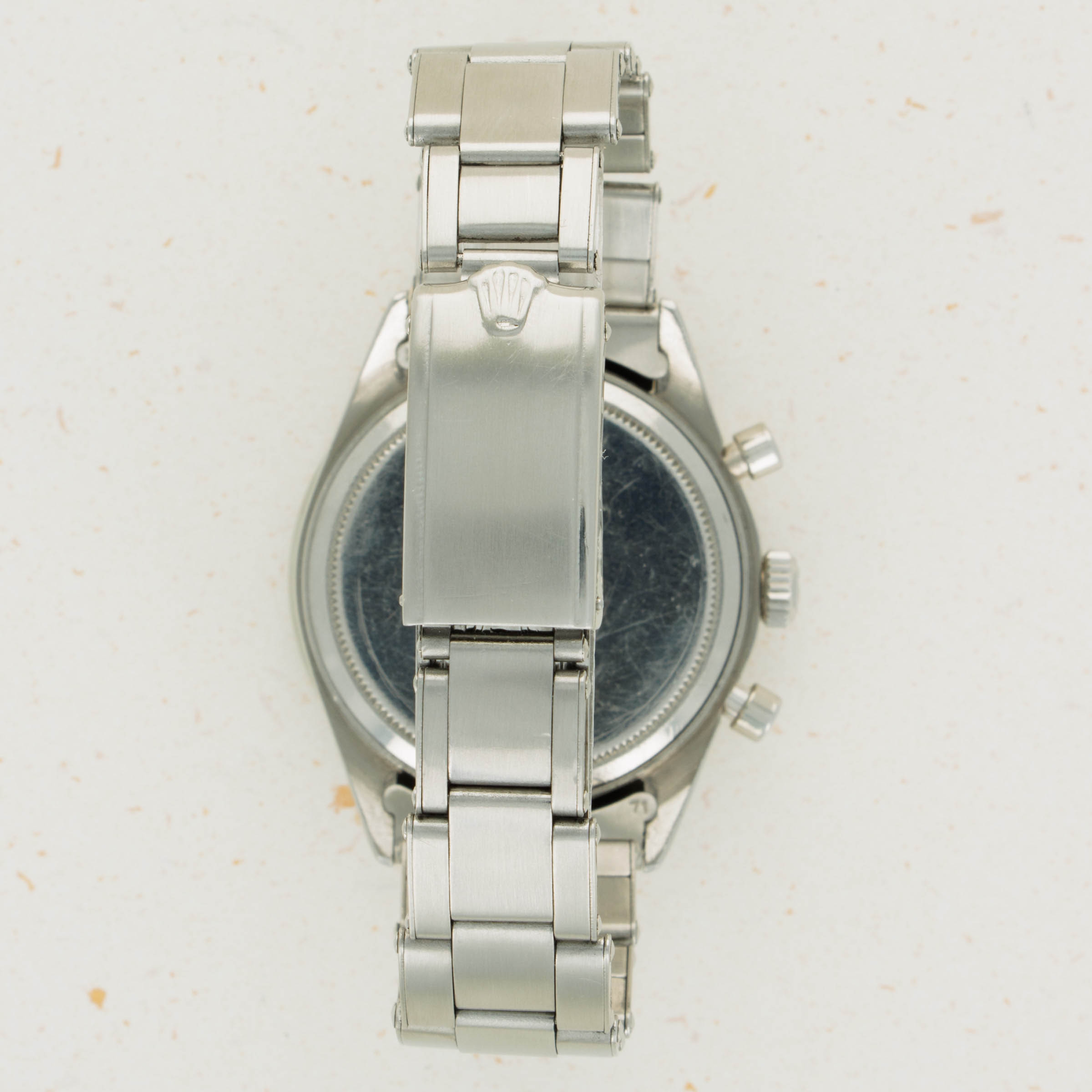 Identifiable as a ref. 6239, this example boasts pump pushers along with a stainless steel bezel - the exact configuration that Paul Newman himself wore.