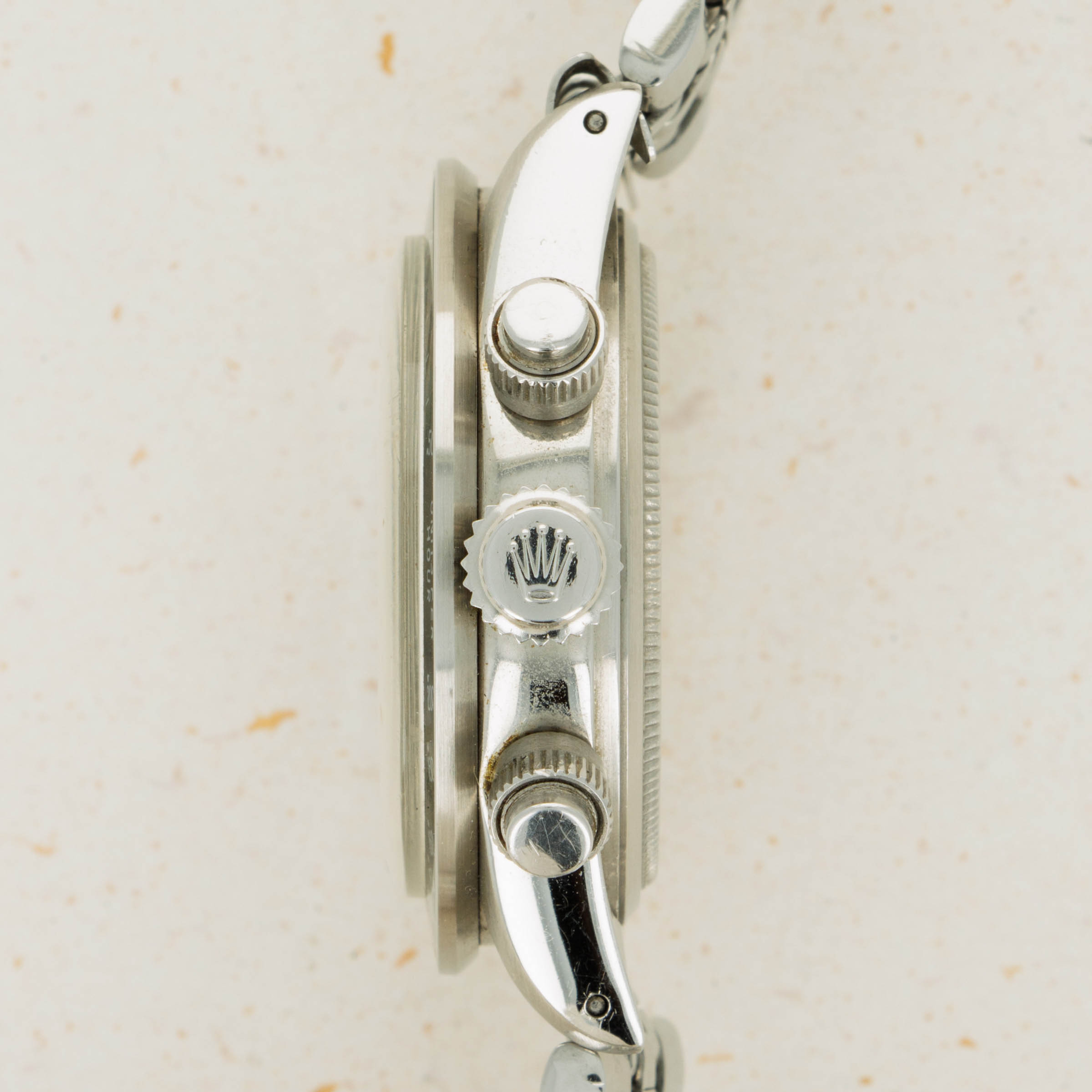 Adding to the Daytona's wrist presence by quite a considerable margin for the time, the ref. 6240's screw-down pushers meant the watch worn larger than its pump-pusher siblings.
