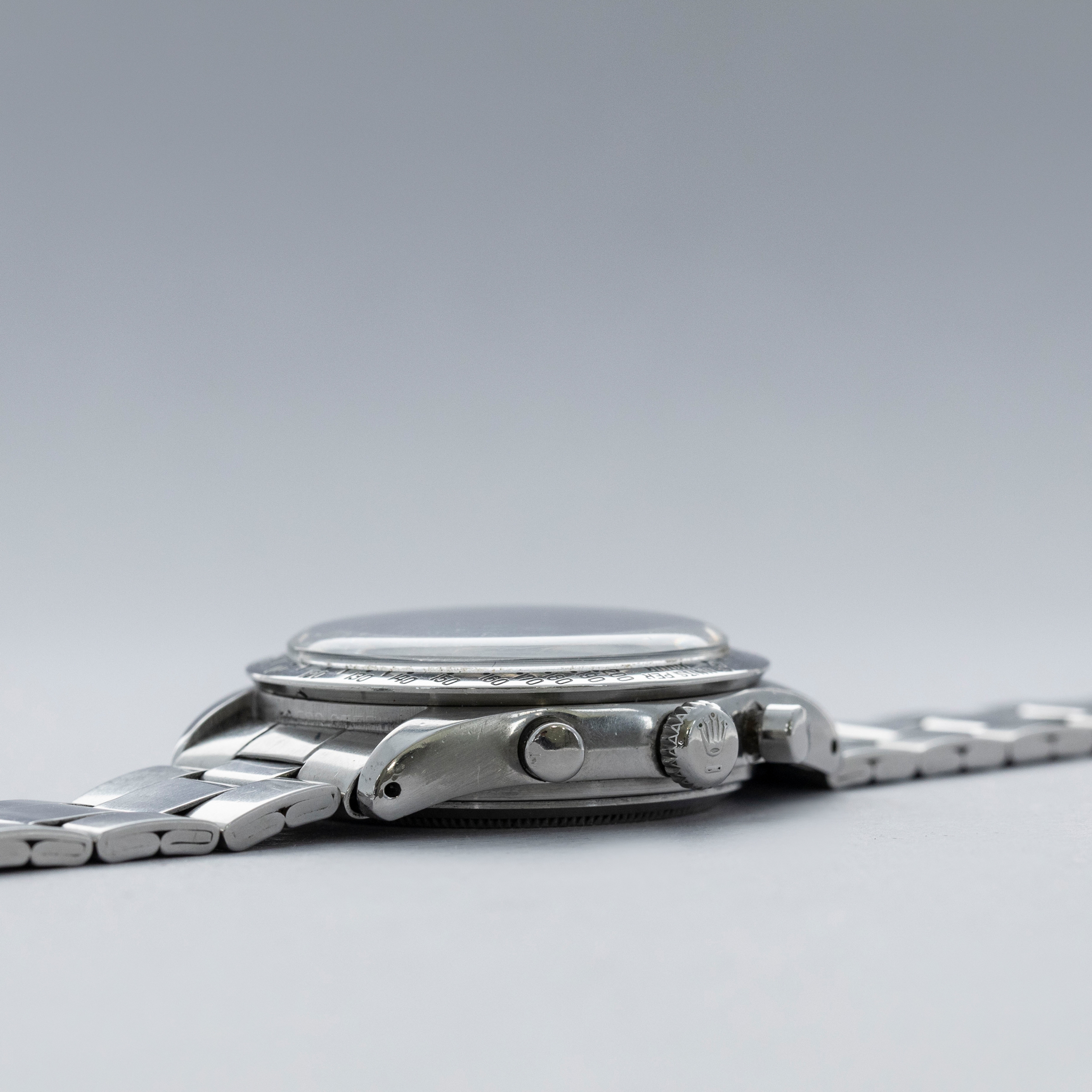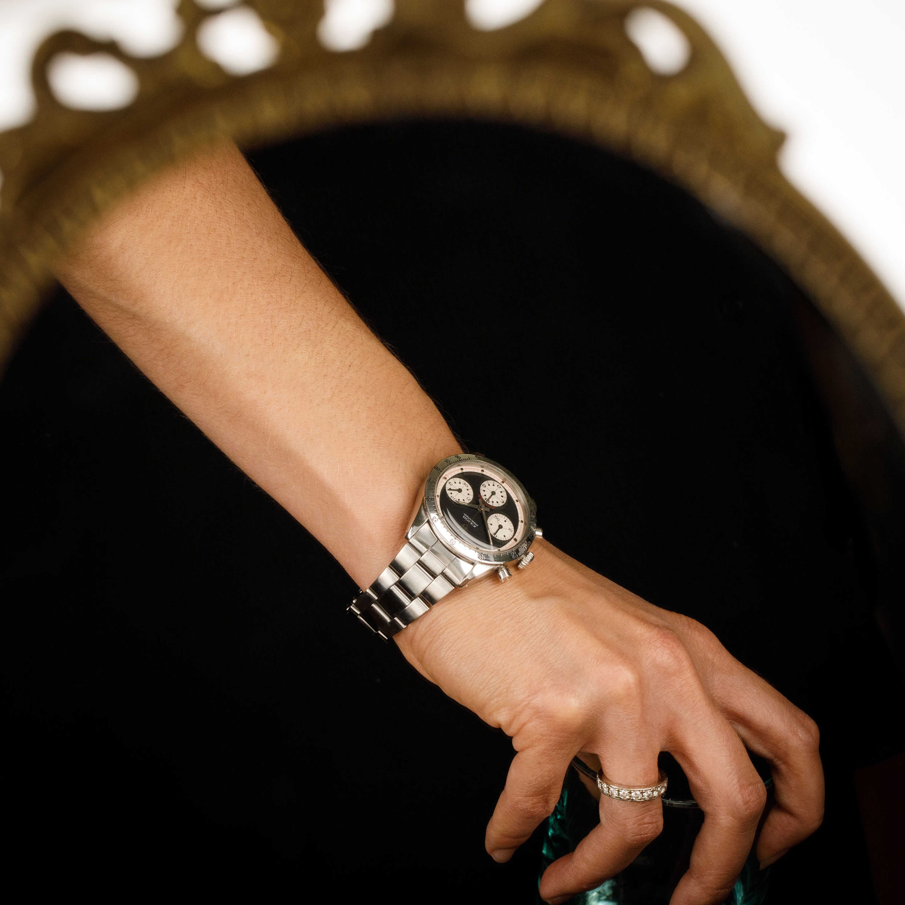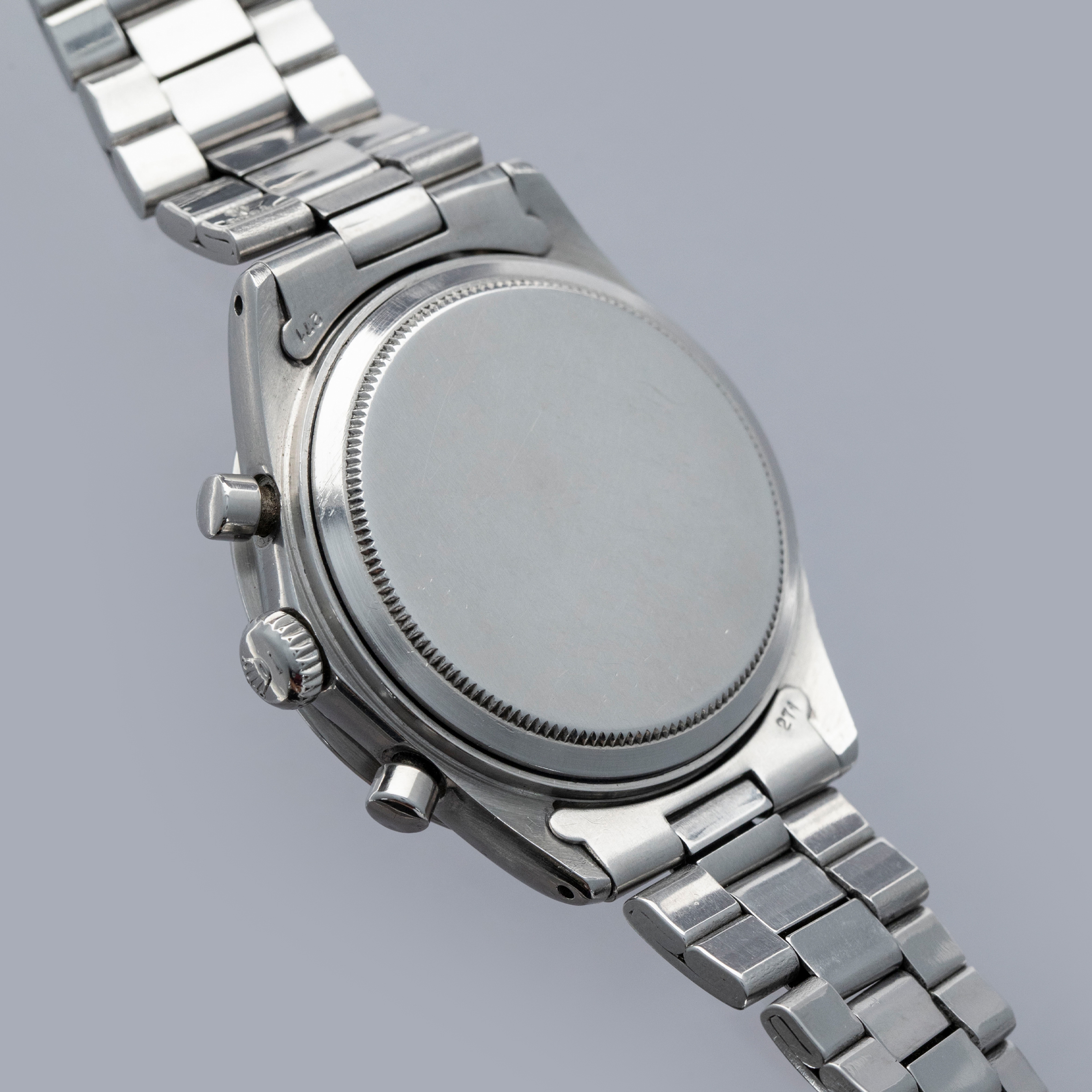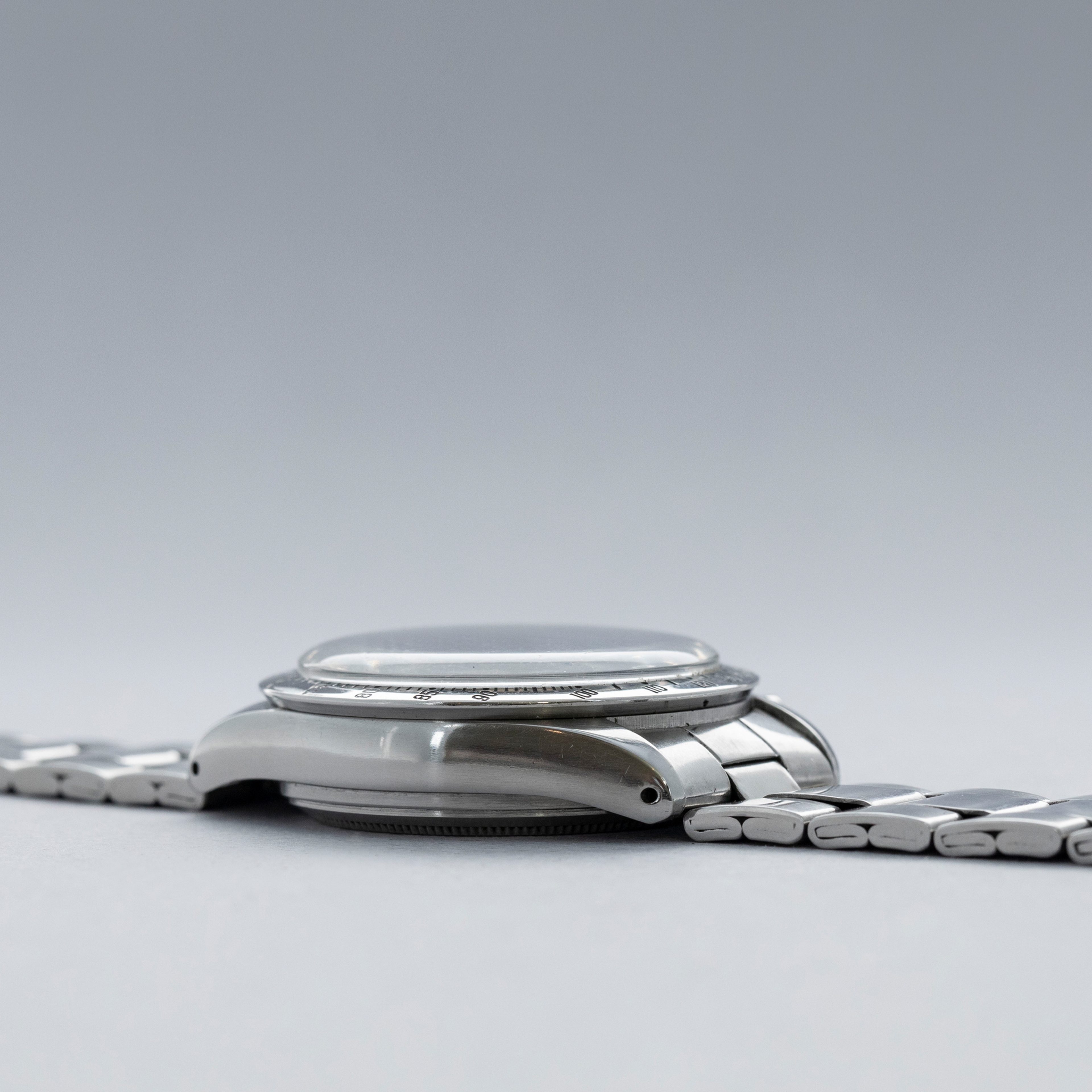 Released in 1963, the Rolex Cosmograph Daytona has become perhaps the most iconic chronograph the world has ever seen. Famed for its legendary design, a rich heritage in motorsport and ties to famed actor and race car driver Paul Newman whose wearing the watch spurred a watch collector frenzy, the Daytona's reputation precedes itself. However, it wasn’t always that way for the Daytona. Released to celebrate Rolex becoming the Daytona International Speedway's official timekeeper the year before in 1962, the Cosmograph was actually a commercial failure in the early years of its launch. Debuting as the ref. 6239, the Cosmograph was up against industry titans like Heuer, Breitling and others. Measuring in at 37mm and powered by its iconic Valjoux movement, the ref. 6239 was always up to the task, but customers would choose the other options instead. While Rolex had called the Cosmograph both the Le Mans and the Daytona, they eventually stuck with the Daytona name in 1965 and birthed the fully-fledged icon that we know today. In addition to the evolution of its name, another tactic Rolex employed to popularize their watch was giving it new dial variants, with the exotic dial, or “Paul Newman” dial as it is known, existing as one of those dial variants. Offered here we have the fabled Daytona ref. 6262. Launched in 1970 and produced for only one year, the ref. 6262 introduced the upgraded manual-wind Valjoux cal. 727 to the Daytona, while reintroducing pump chronograph pushers and a stainless steel bezel to the collection. While the ref. 6262 is a rare watch in and of itself, the example we have here is particularly notable due to its black exotic “Paul Newman” dial, as identifiable with square counters in its white subdials and red accents along its white chapter ring. An icon of horology and greater pop culture, the Paul Newman Daytona was popularized in the 1980s when collectors caught on to Paul Newman wearing his famous example, and since then the Daytona as a whole has become one of the most desirable watches in horology, and the four digit ‘Paul Newman’ exotic dial examples like the one we have here stand as the apex predator of that food chain.