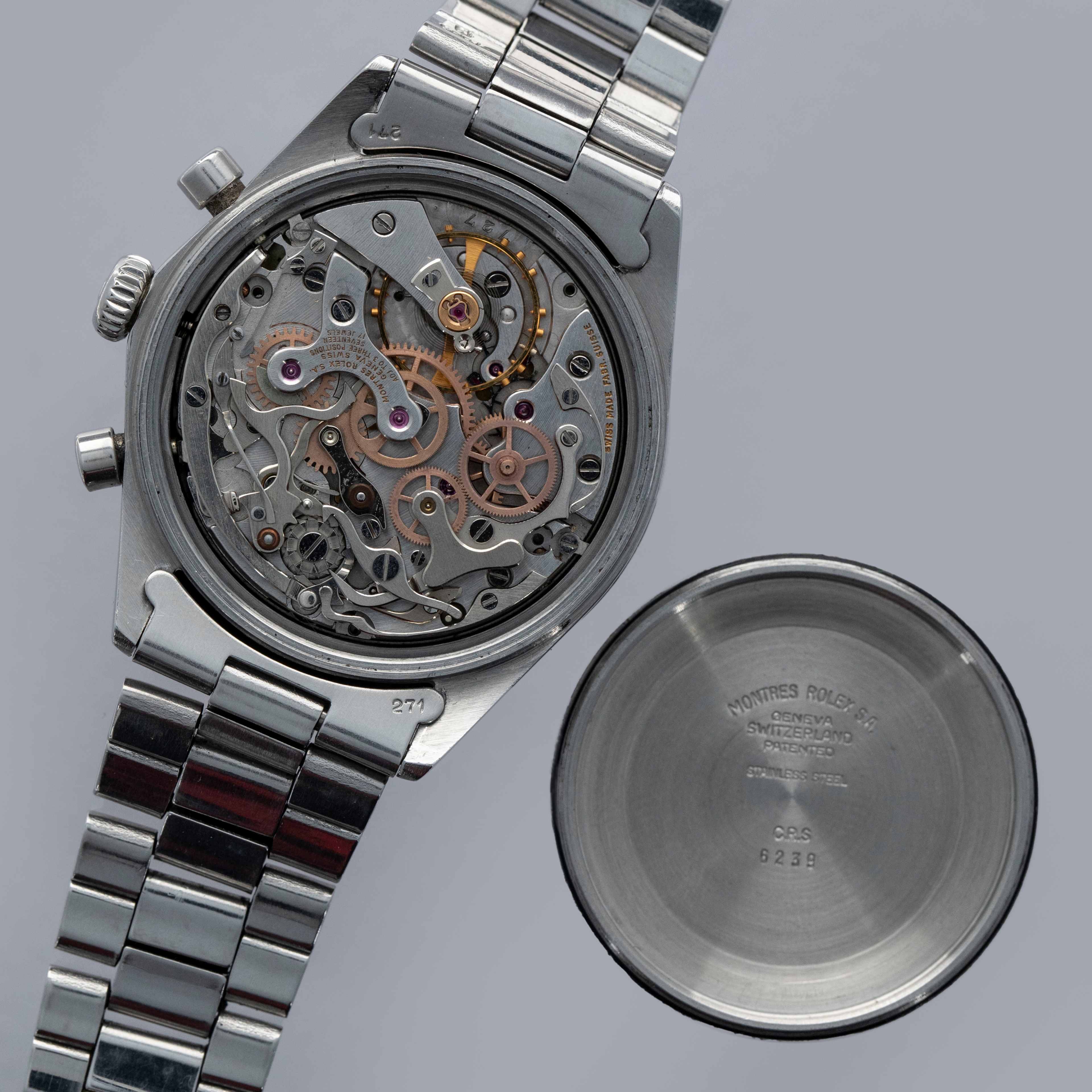 Identical to the Daytona ref. 6239, the ref. 6262 boasts the same pump pushers and stainless steel bezel as the watch that Paul Newman himself wore, only the ref. 6262 is powered by the upgraded cal. 727 movement.