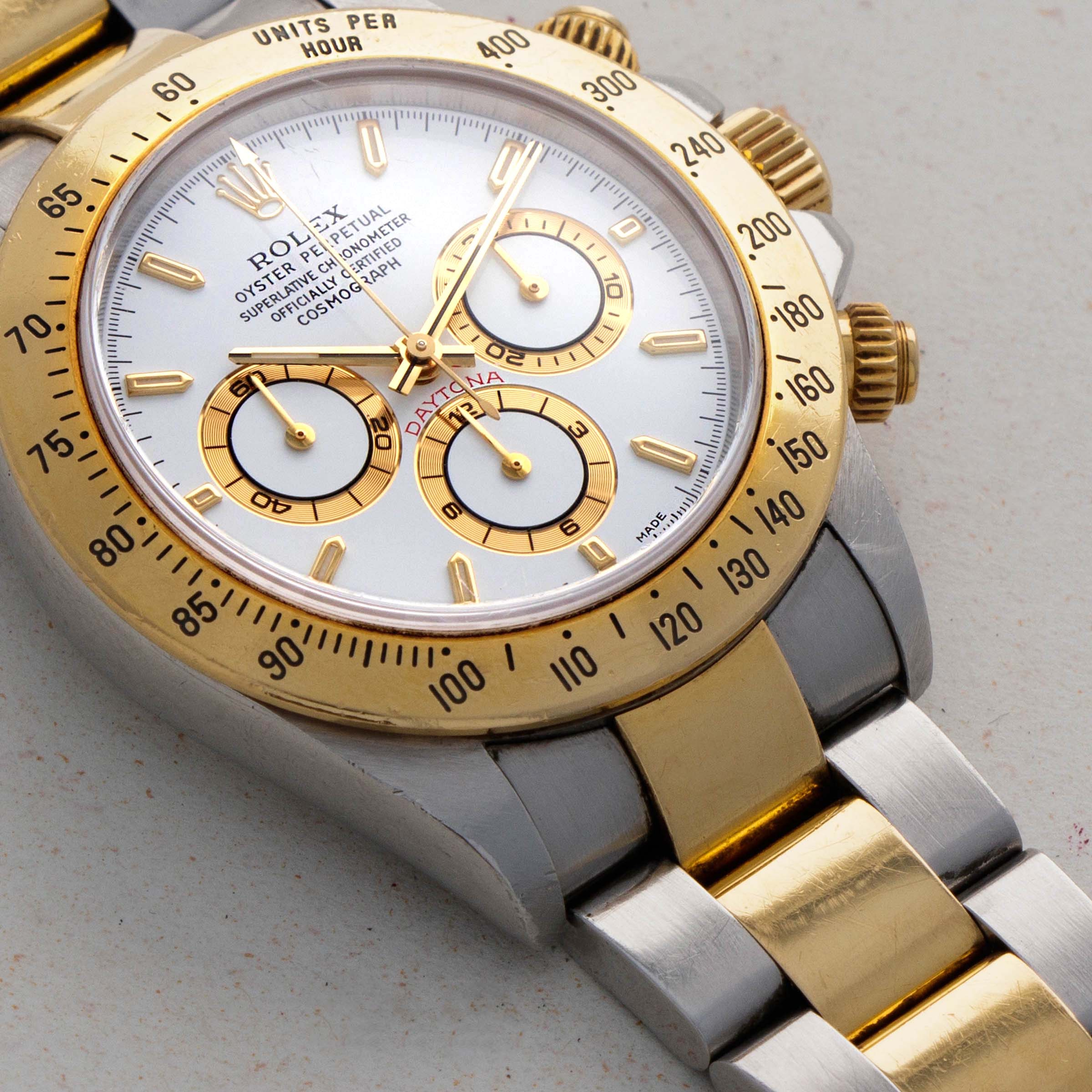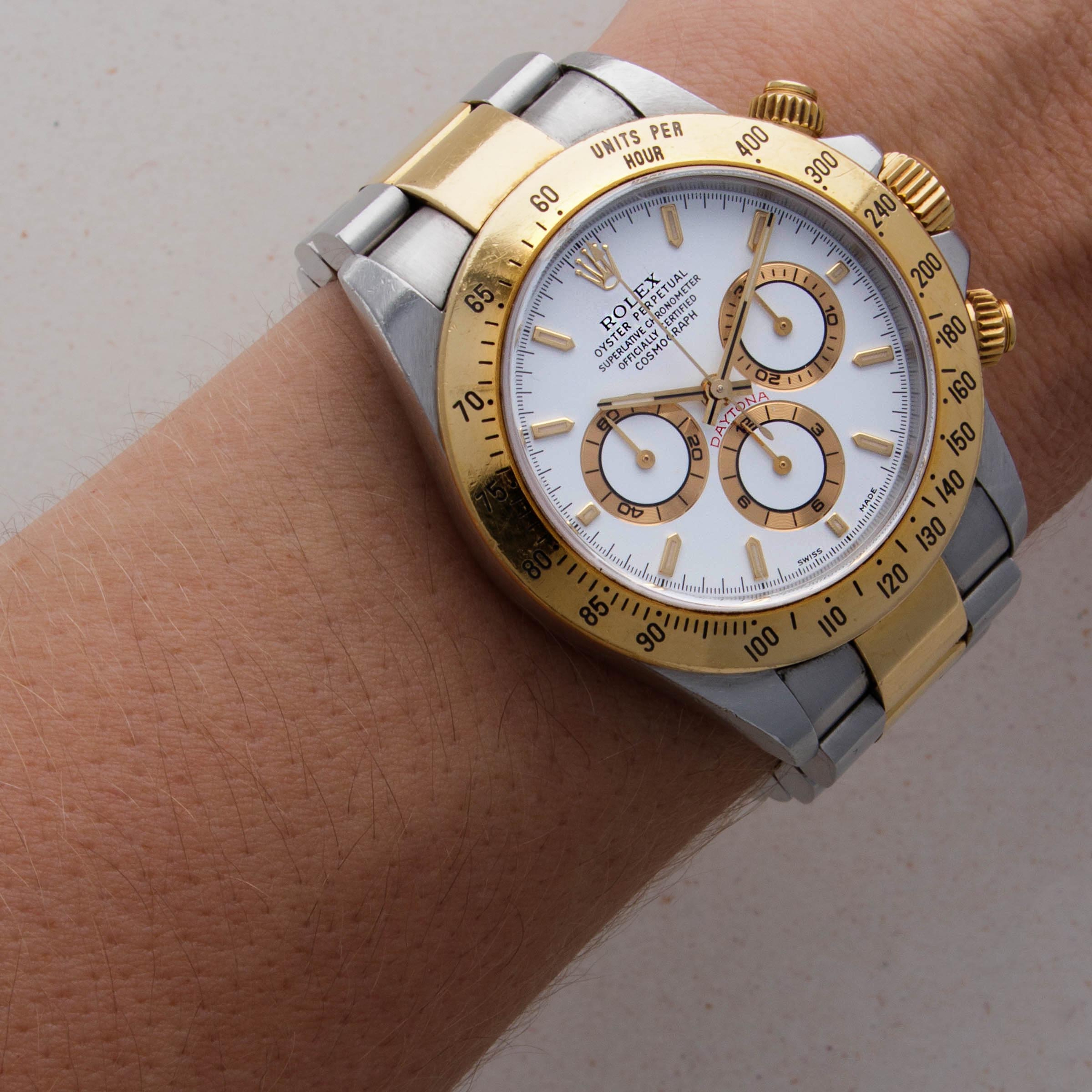 Perhaps one of the most iconic timepieces to have ever hit the market, the Rolex Daytona is widely recognized as one of the most desirable watches there is. Distinguished by its three generations, what we have here is the 2nd generation 5-digit reference, known as the "Zenith" Daytonas due to their movement (the Rolex cal. 4030) being a heavily modified version of the Zenith-supplied El Primero movement. Forgoing its date function, slowing the movement's frequency down to increase the power reserve, and featuring fewer parts to improve reliability, the cal. 4030 found within the Zenith Daytonas is one of the finest pieces of horological engineering to come out of the late 80s and 90s (1988-2000). Still a mechanically astute timepiece to this day, the Zenith Daytona exists through a wide variety of references, such as the ref. 16523 that we have here. With numerous references within the collection, the Zenith Daytona has also featured some exceedingly rare jeweled variants like the ref. 16589 and so on. A wonderful expression of Rolex's engineering capabilities and the consistency in their iconic design language, the Zenith Daytona is perhaps the unsung hero in Daytona's lineage. However, it won't be long before collectors begin to unravel the story and see the value these timepieces hold.