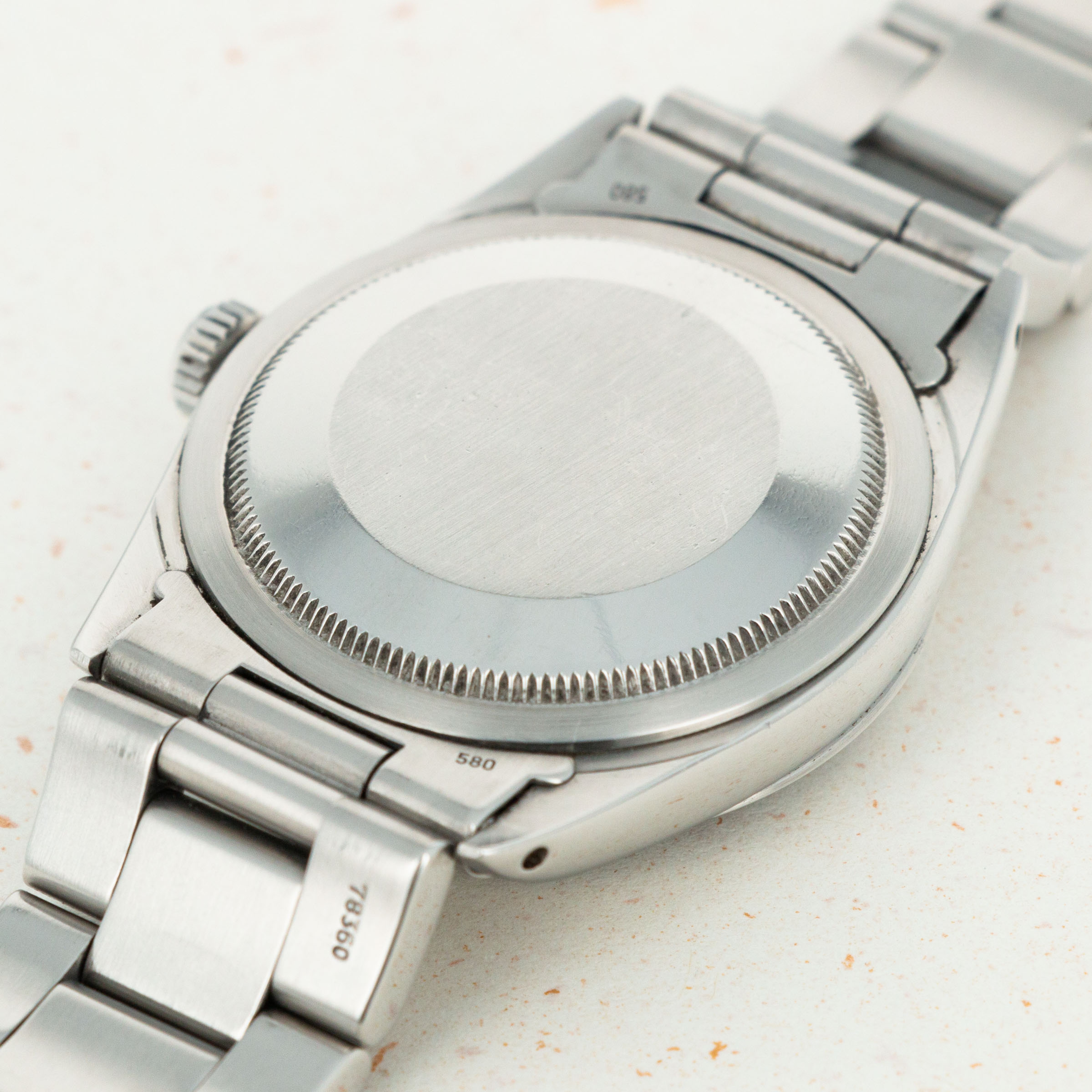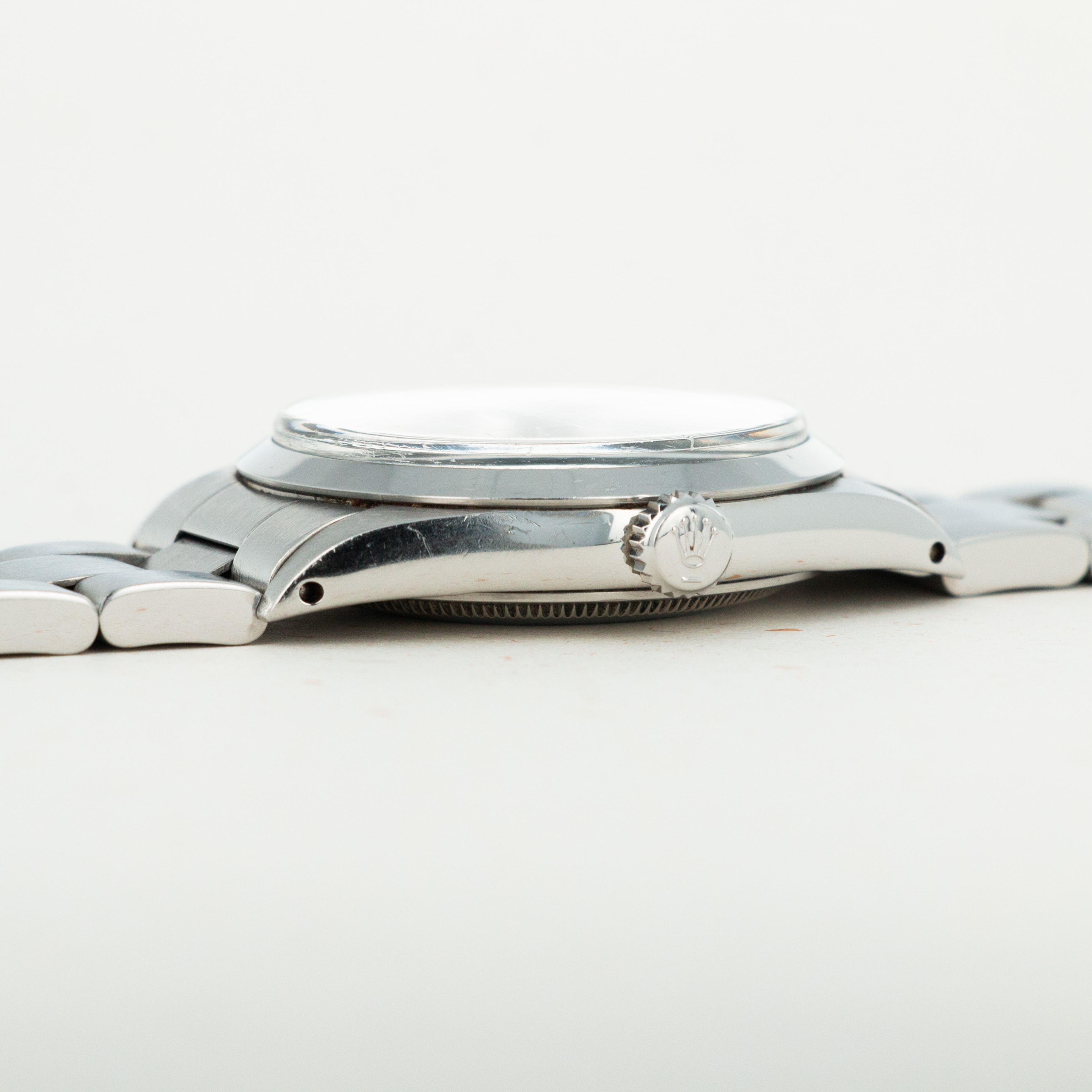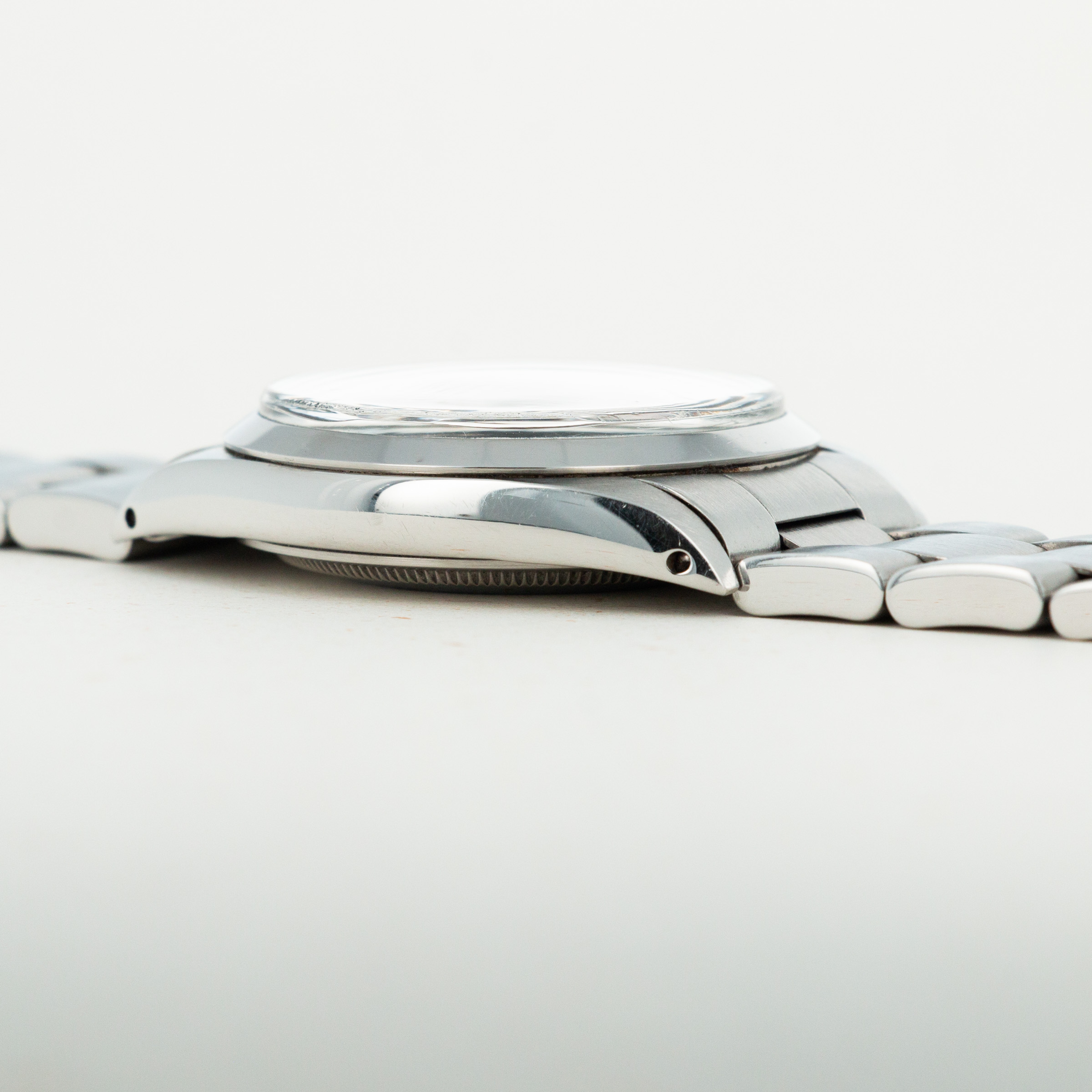 The overall condition of the watch is near-mint. Original matte dial is pristine, and is paired with perfectly matching hands. Case and bracelet have some extremely light surface wear throughout, consistant with careful use. Bracelet has 13 links.