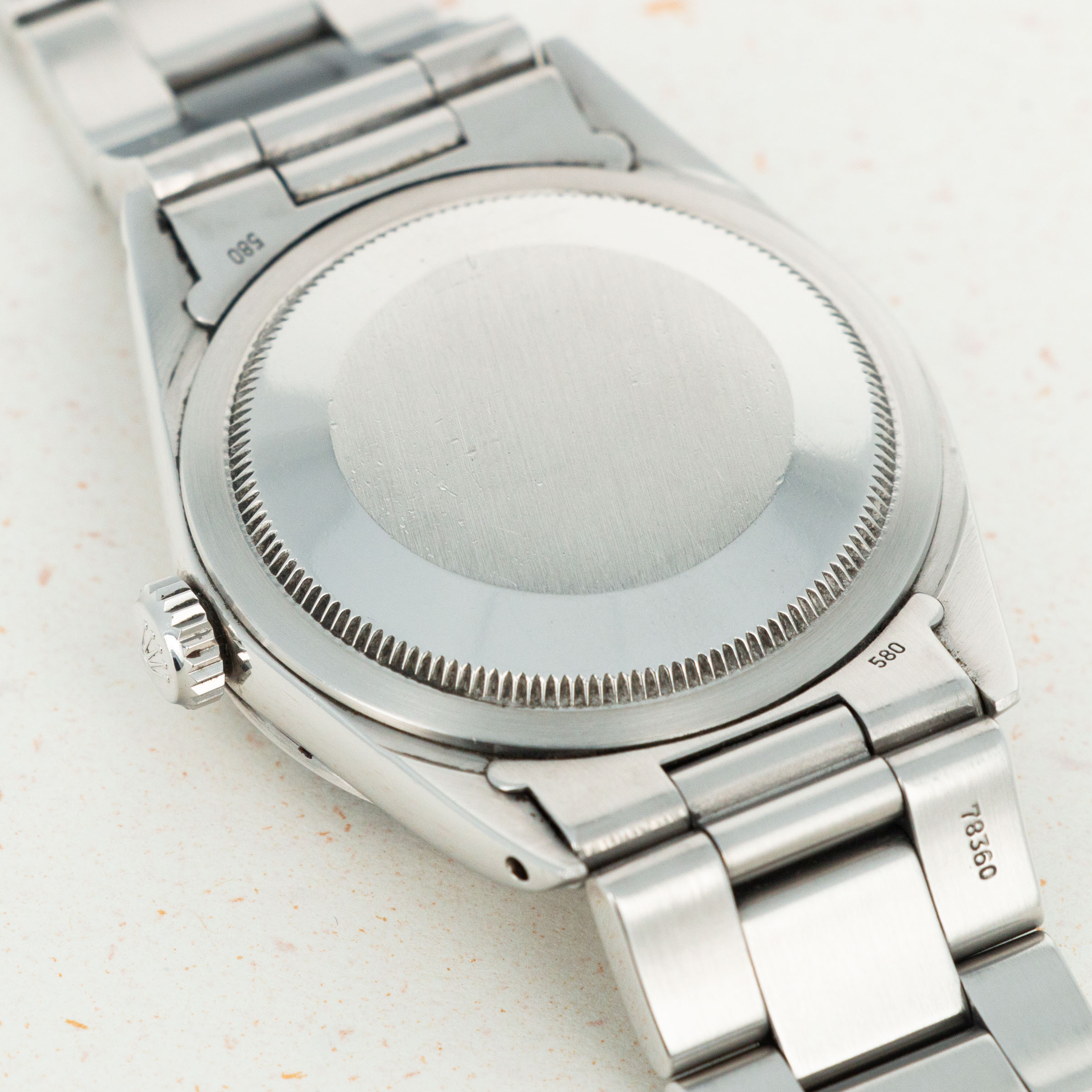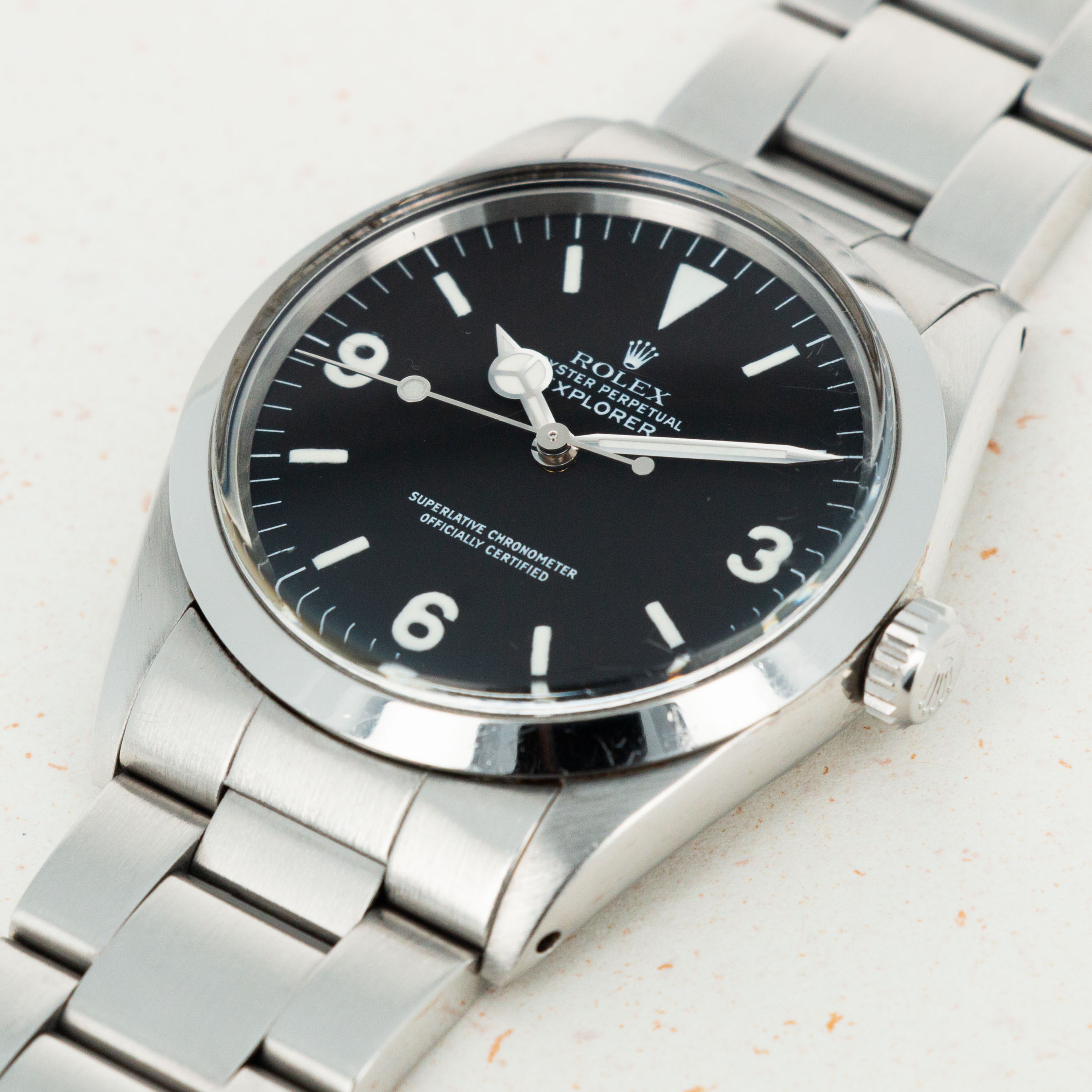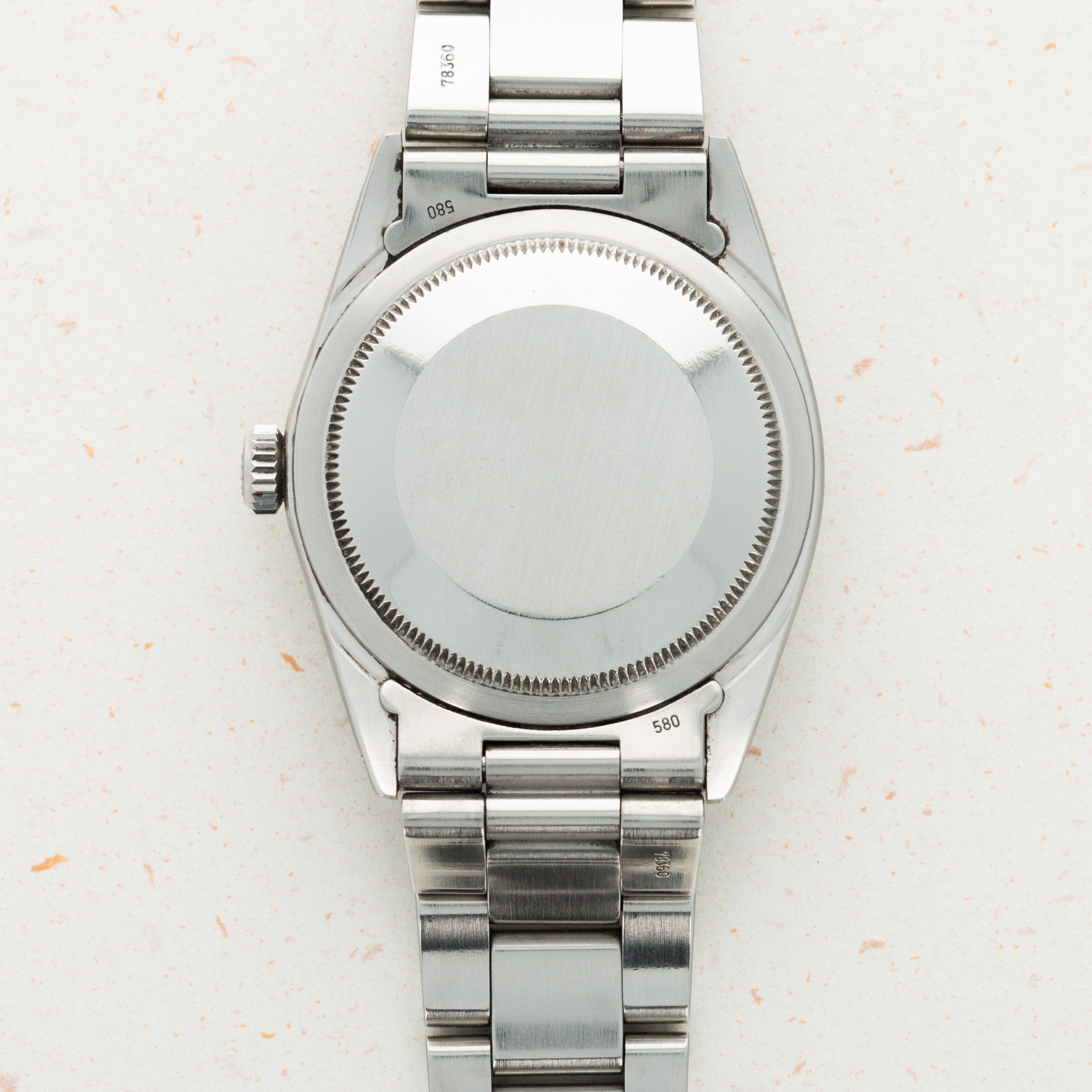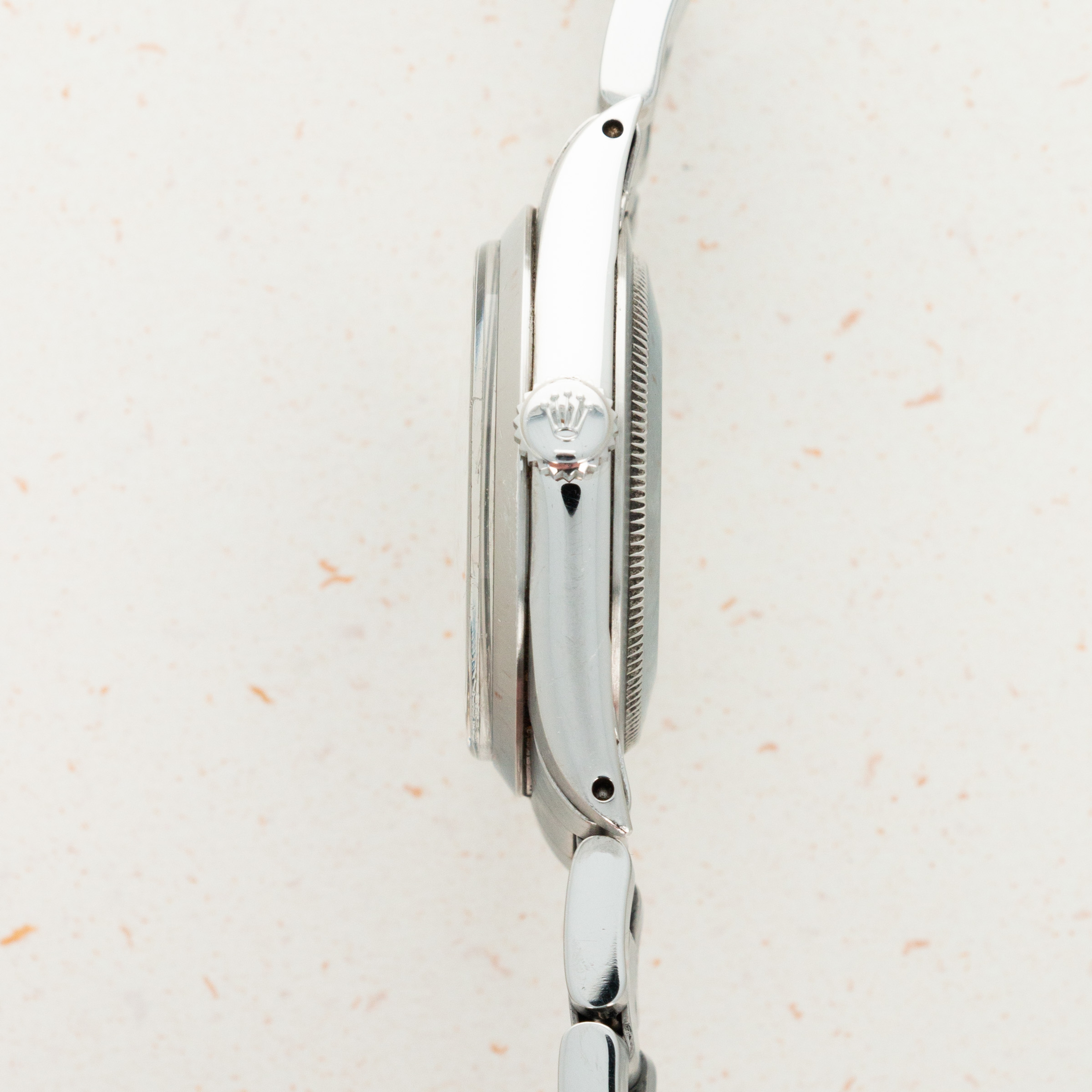 The overall condition of the watch is near-mint. Original matte dial is pristine, and is paired with perfectly matching hands. Case and bracelet have some extremely light surface wear throughout, consistant with careful use. Bracelet has 13 links.