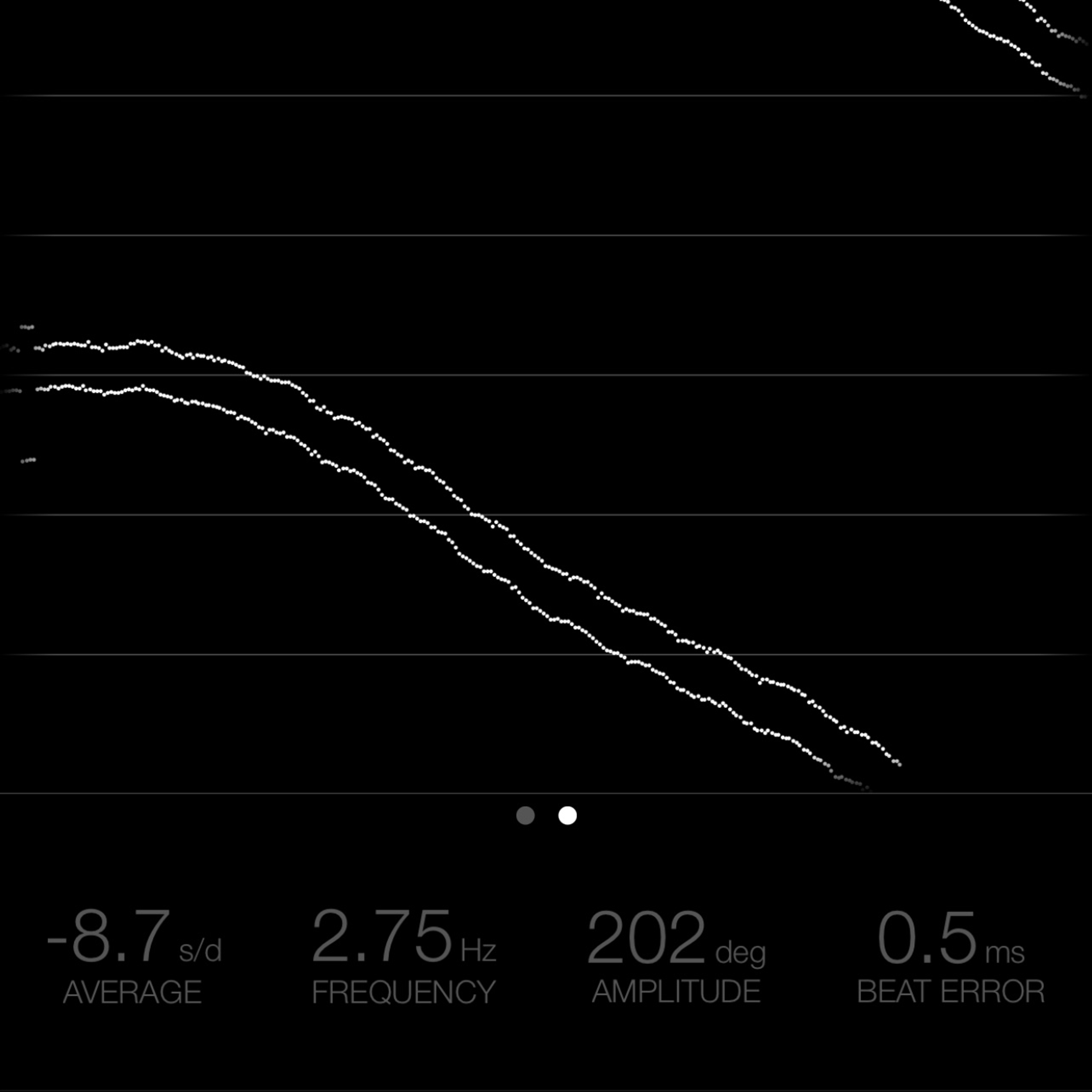 This reading was taken (crown down) with a ONEOF Accuracy Boutique Edition timing machine at time of cataloging. It is provided as a courtesy only, and shall not be construed as a warranty or guarantee of any kind. Please refer to our terms and conditions of sale for more information.