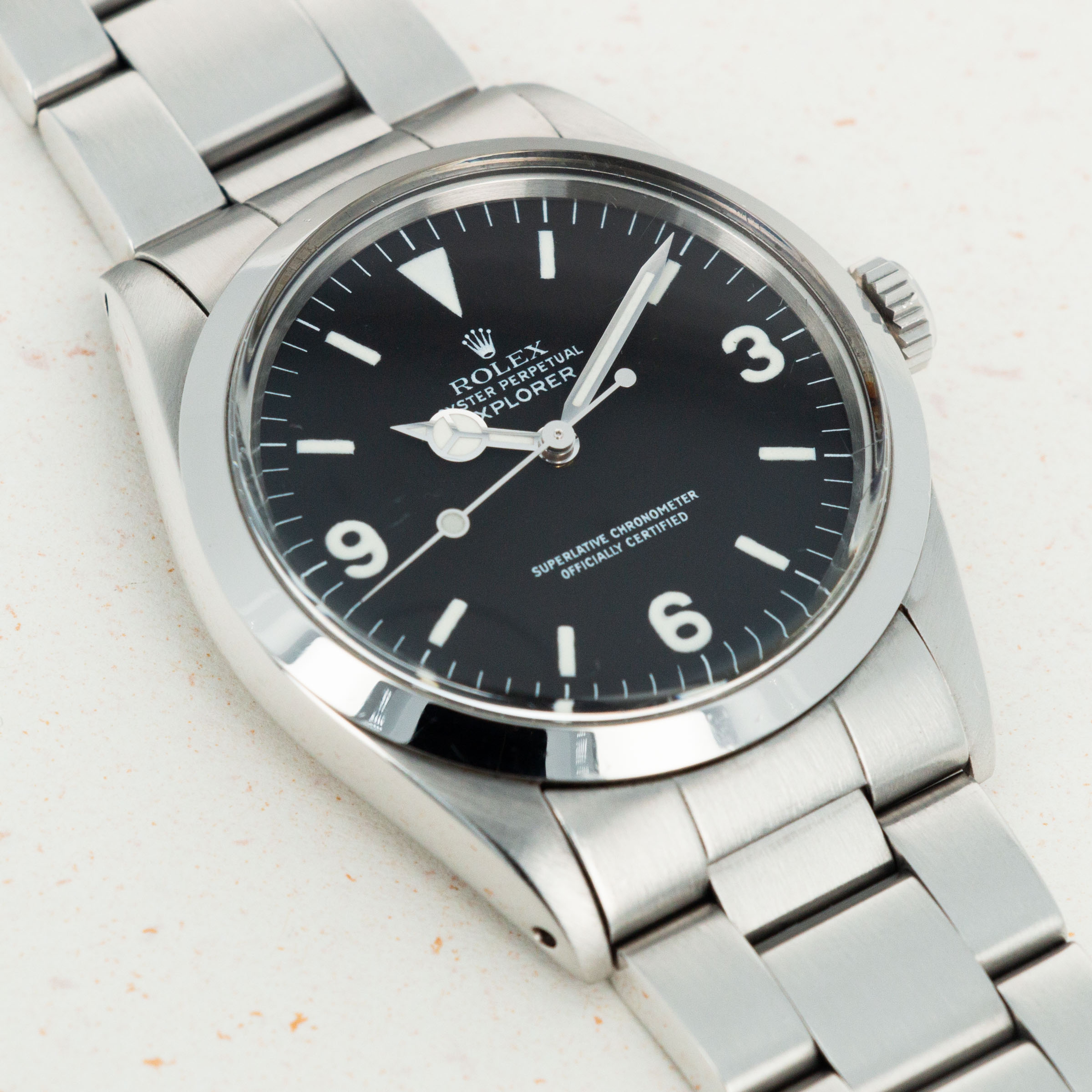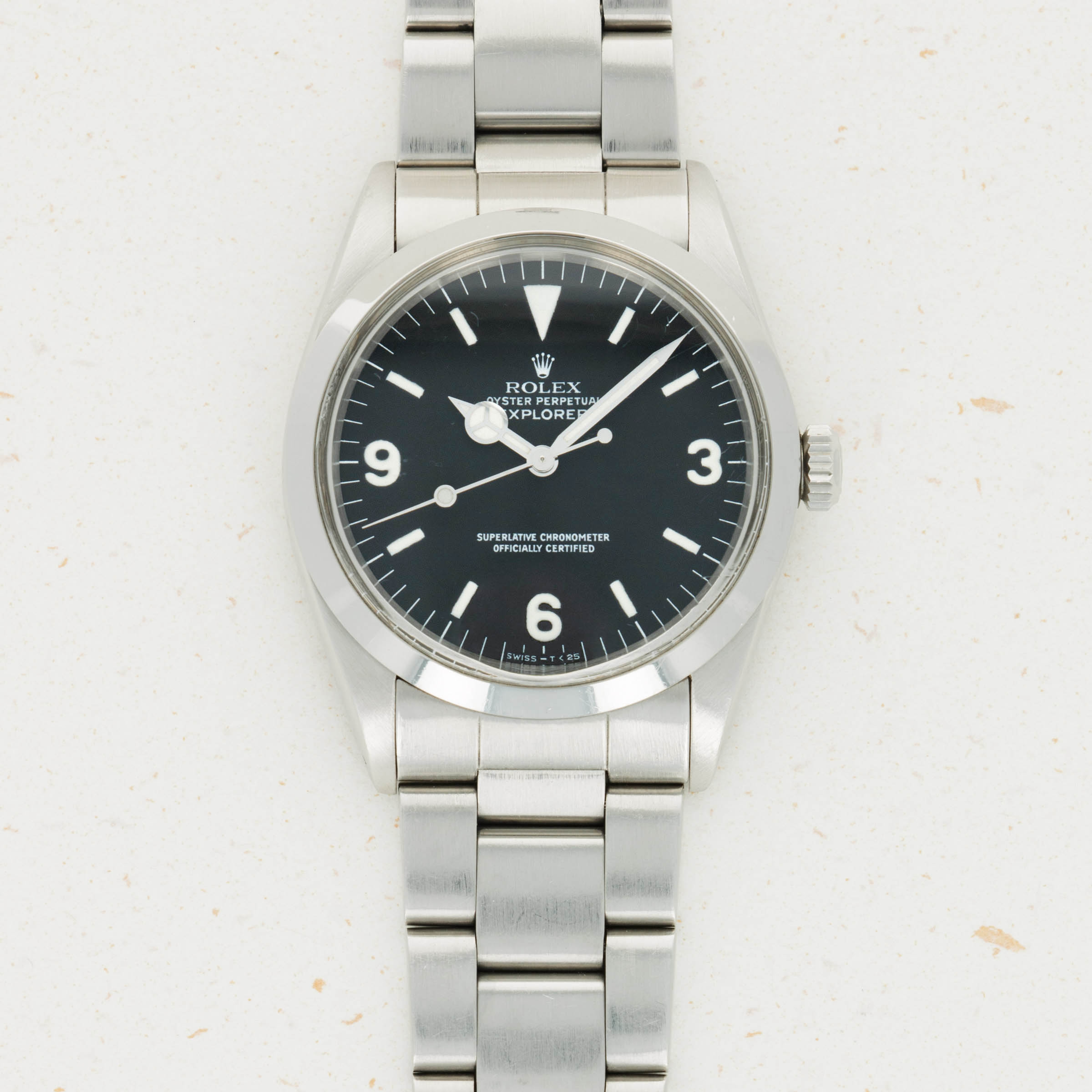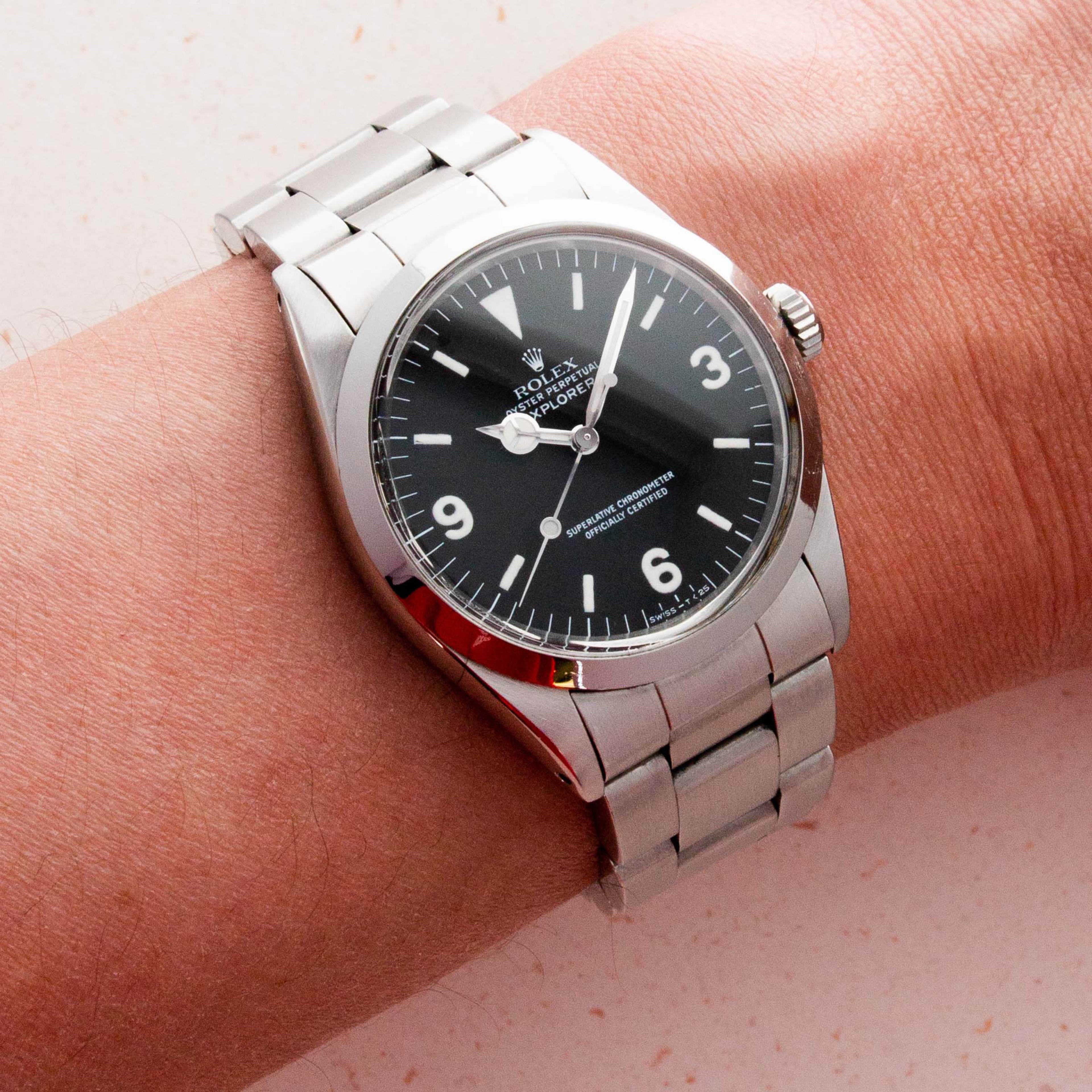 Inspired by the first-ever successful summit of Mount Everest by Sir Edmund Hillary and his Sherpa Tenzing Norgay, who wore a Rolex Oyster Perpetual, the Rolex Explorer has long been Rolex's ultimate adventure watch. Constructed entirely from Rolex's 904L steel, the Explorer's robust design ensures that it can always battle the elements. Featuring some of Rolex's most capable movements and a rich heritage to boot, the Explorer is another display of their timeless design as this icon of watchmaking has remained virtually untouched in its aesthetic since its inception. Identifiable by its signature 3-6-9 glossy black dial, a flat stainless steel bezel, and entirely satin-brushed stainless steel case and bracelet, the Rolex Explorer has become renowned for its understated class, sporty elegance, and capable construction.