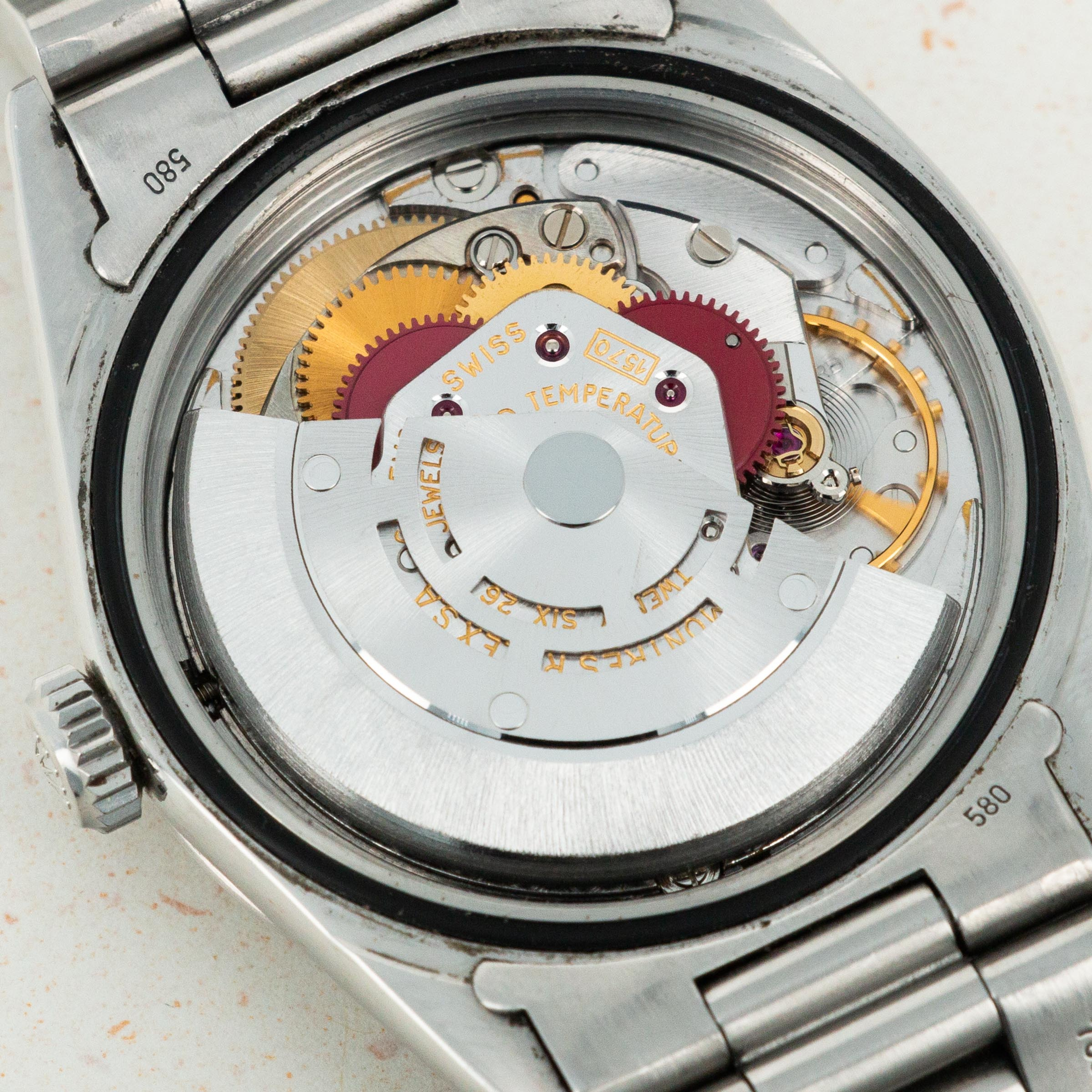 The Explorer 1016 utilizes the workhorse caliber 1570 movement, which powered nearly all of the acrylic crystal Rolex watches, and was in use for nearly 30 years.