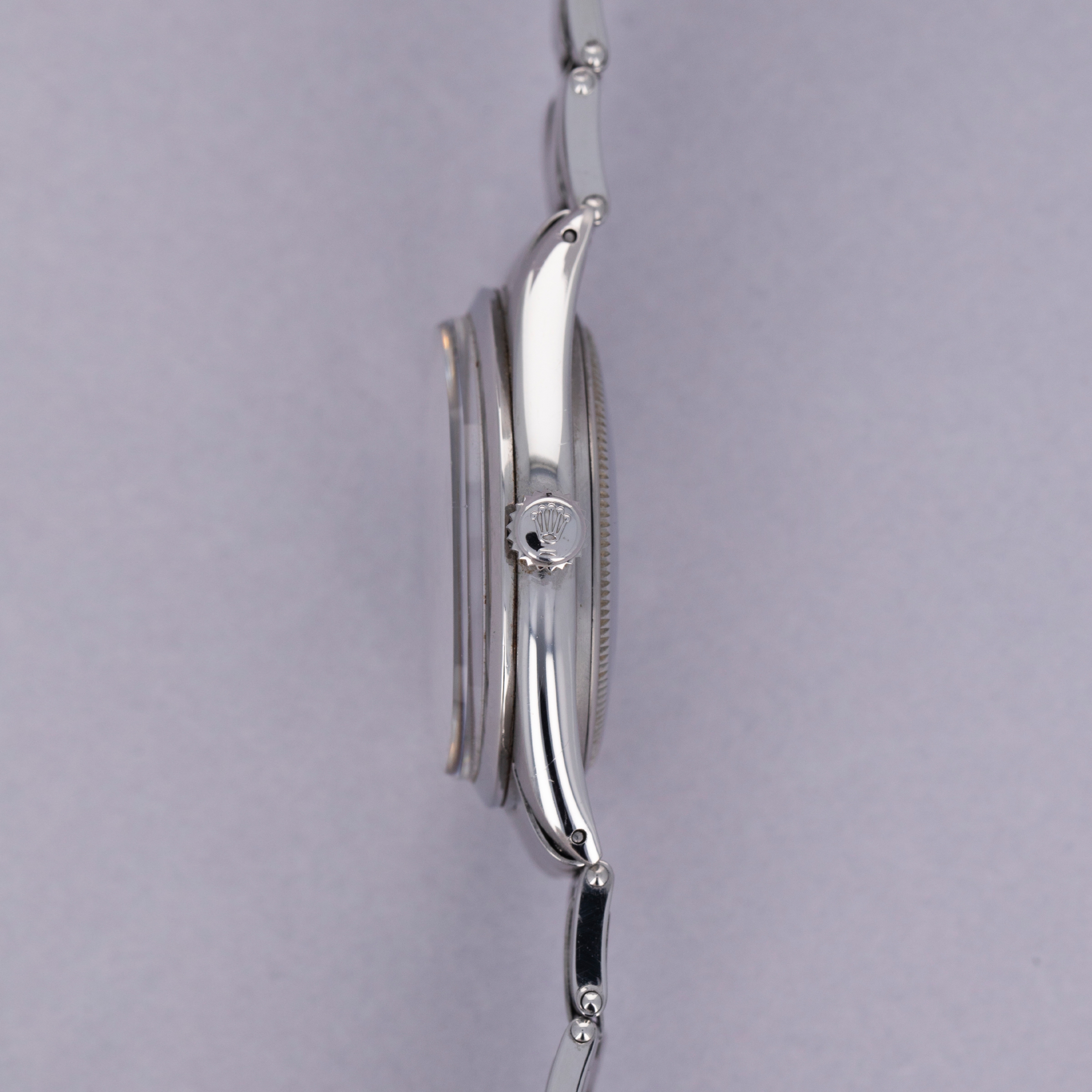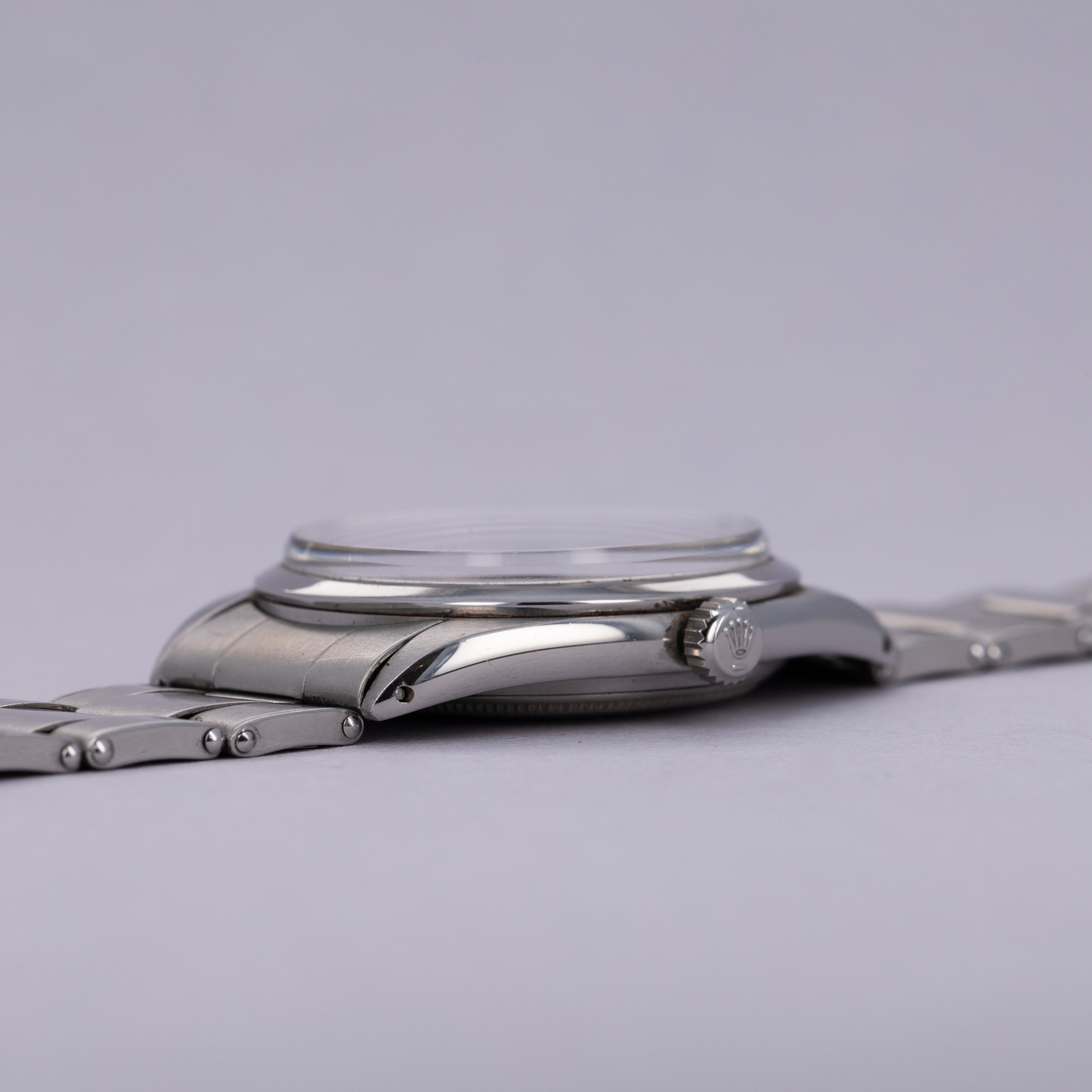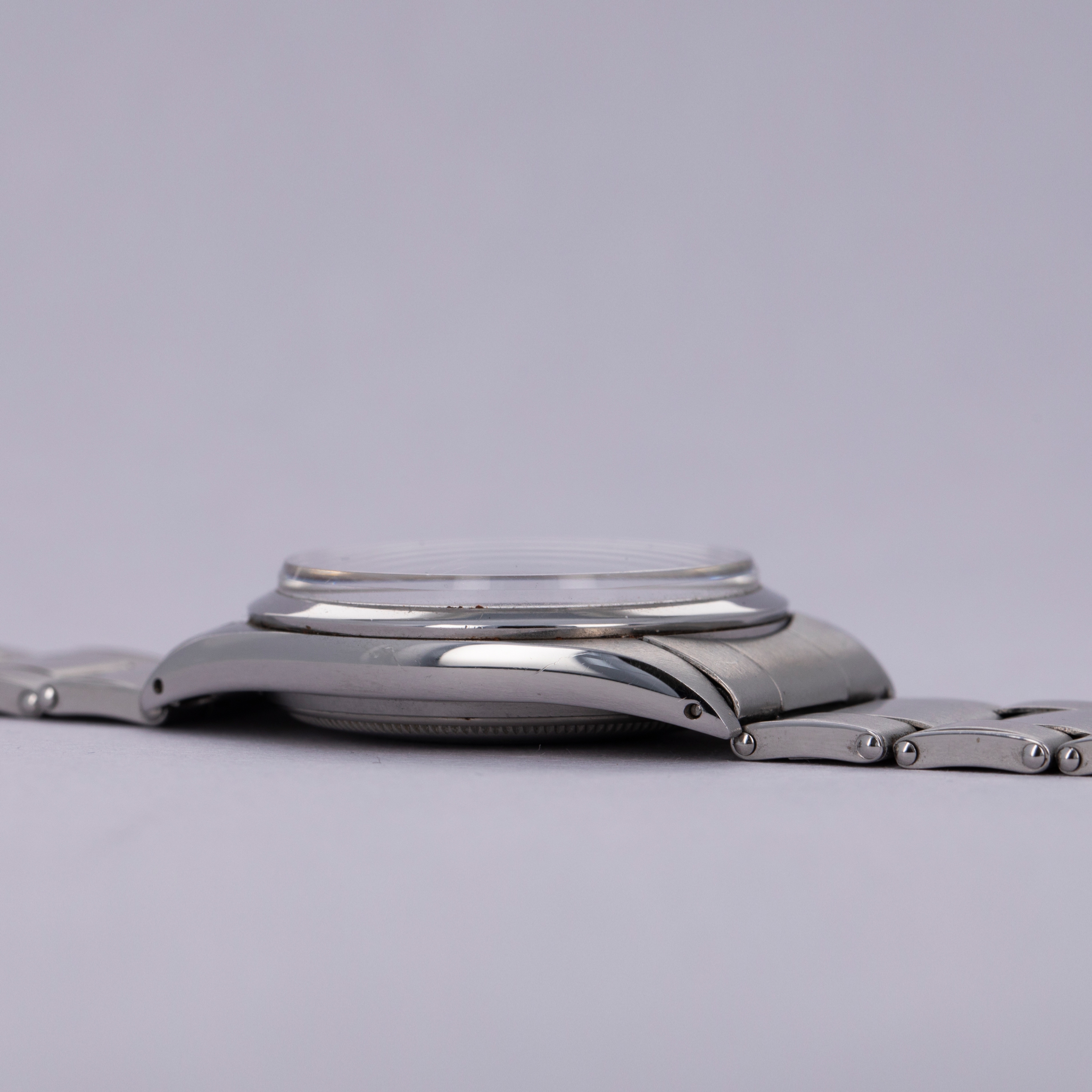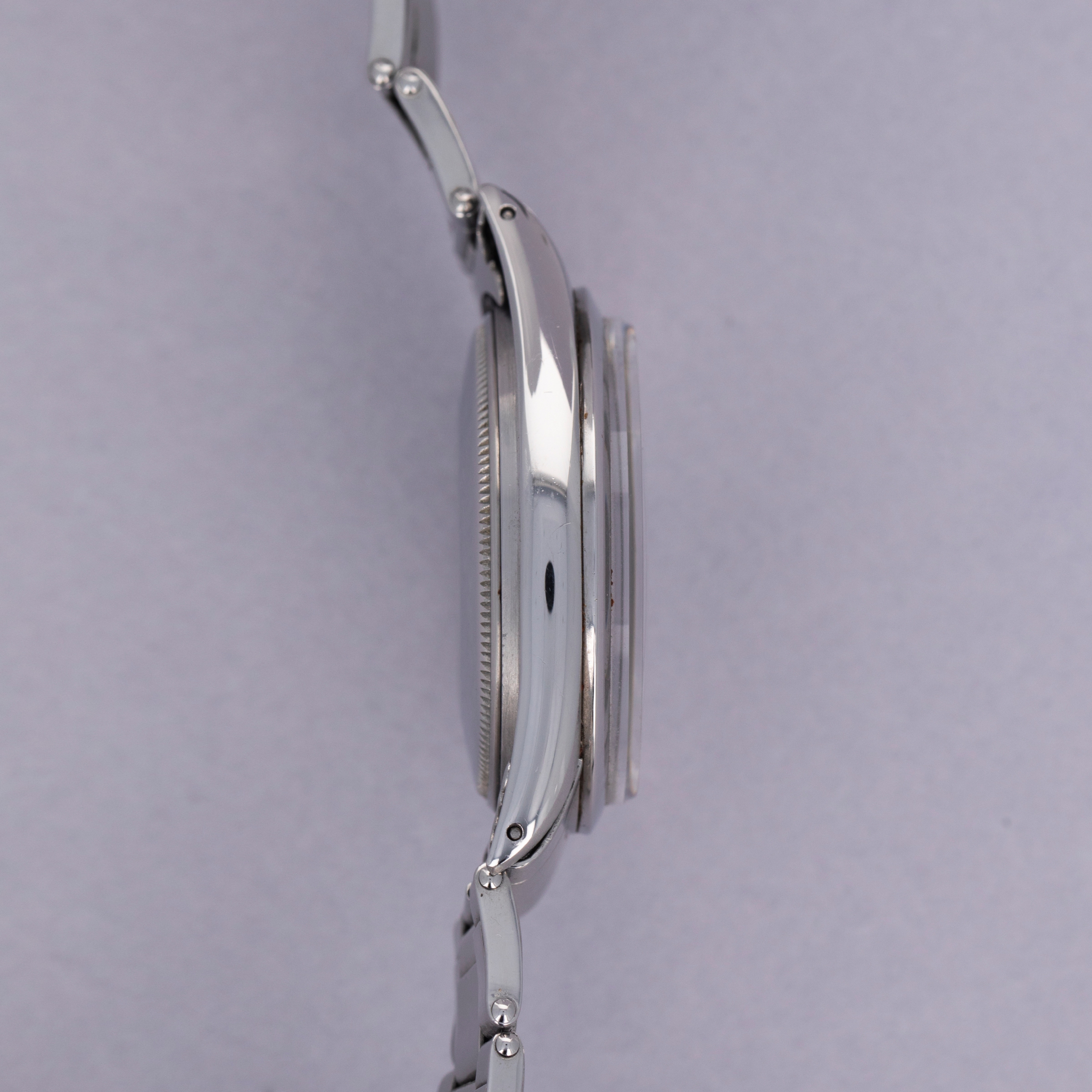 Inspired by the first-ever successful summit of Mount Everest by Sir Edmund Hillary and his Sherpa Tenzing Norgay, who wore a Rolex Oyster Perpetual, the Rolex Explorer has long been Rolex's ultimate adventure watch. Constructed entirely from Rolex's 904L steel, the Explorer's robust design ensures that it can always battle the elements. Featuring some of Rolex's most capable movements and a rich heritage to boot, the Explorer is another display of their timeless design as this icon of watchmaking has remained virtually untouched in its aesthetic since its inception. Identifiable by its signature 3-6-9 black dial, a flat stainless steel bezel, and entirely satin-brushed stainless steel case and bracelet, the Rolex Explorer has become renowned for its understated class, sporty elegance, and capable construction. Launched in 1958 as the non-chronometer certified Explorer variant, the ref. 5504 was powered by the automatic cal. 1530, a new movement that would go on to feature in other watches like the Submariner ref. 5508 and ref. 5510 - both icons in their own right. Boasting a black gilt "Super Precision" dial, which was only offered in 1958, this ref. 5504 is the real deal with its 1958-stamped caseback and 1958-dated serial number.