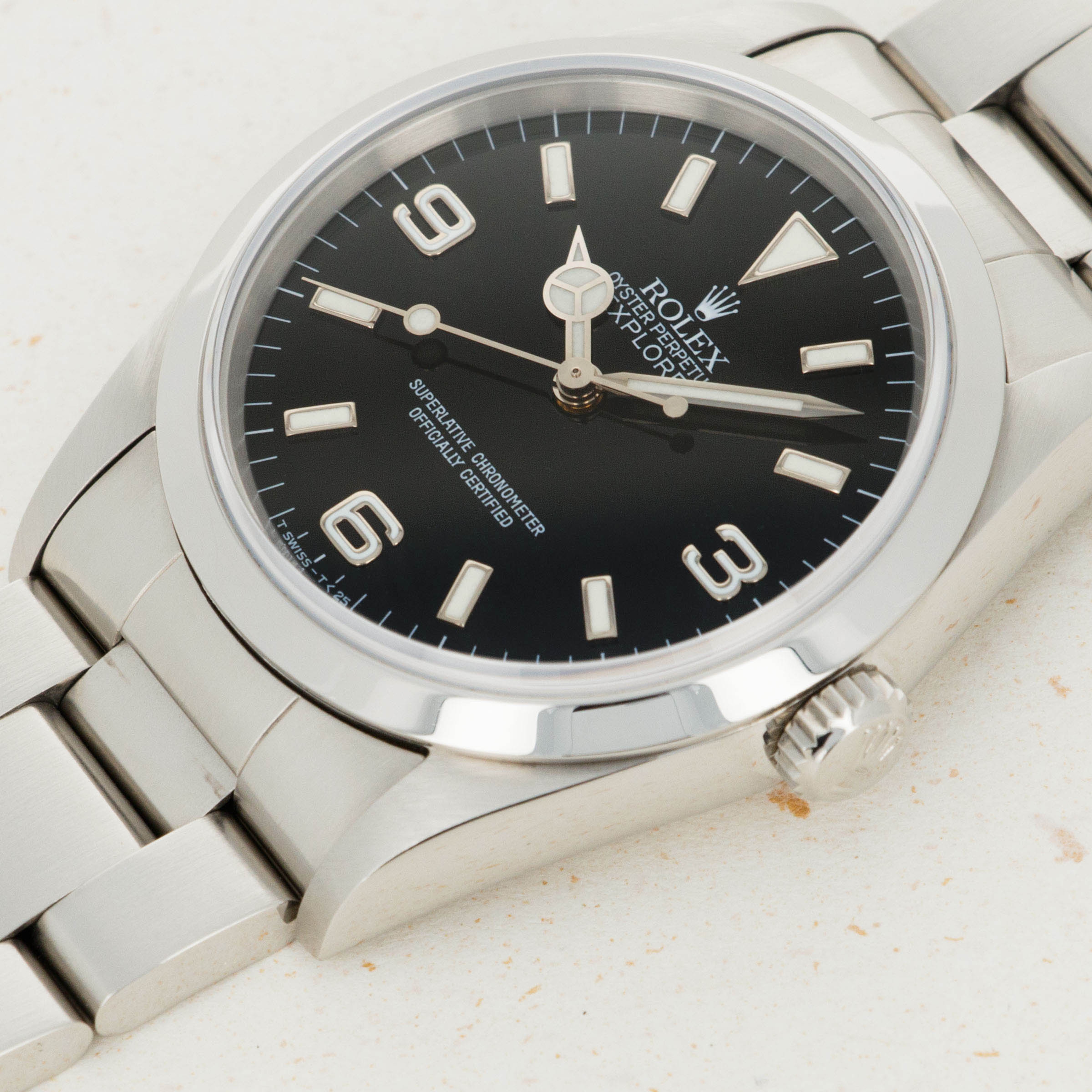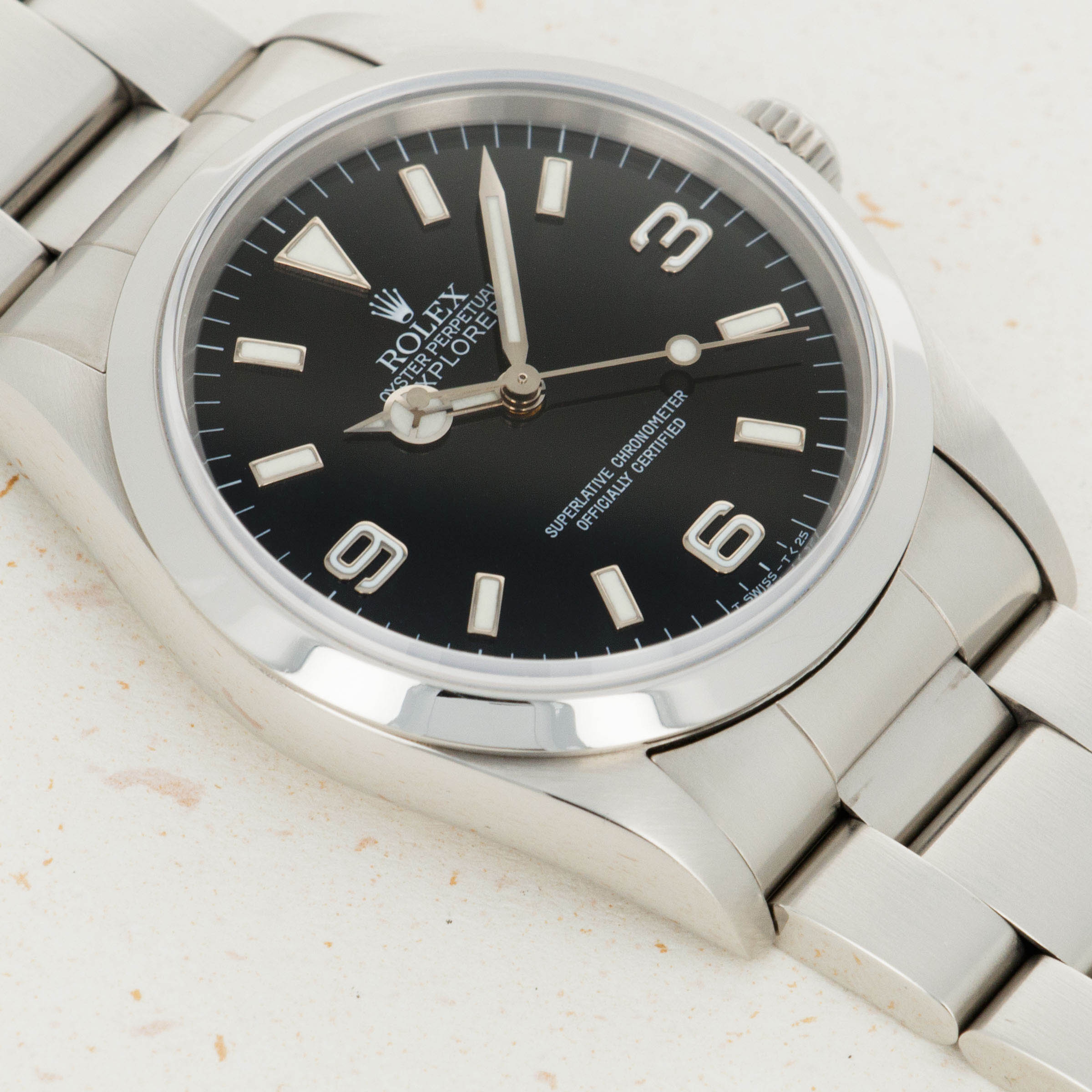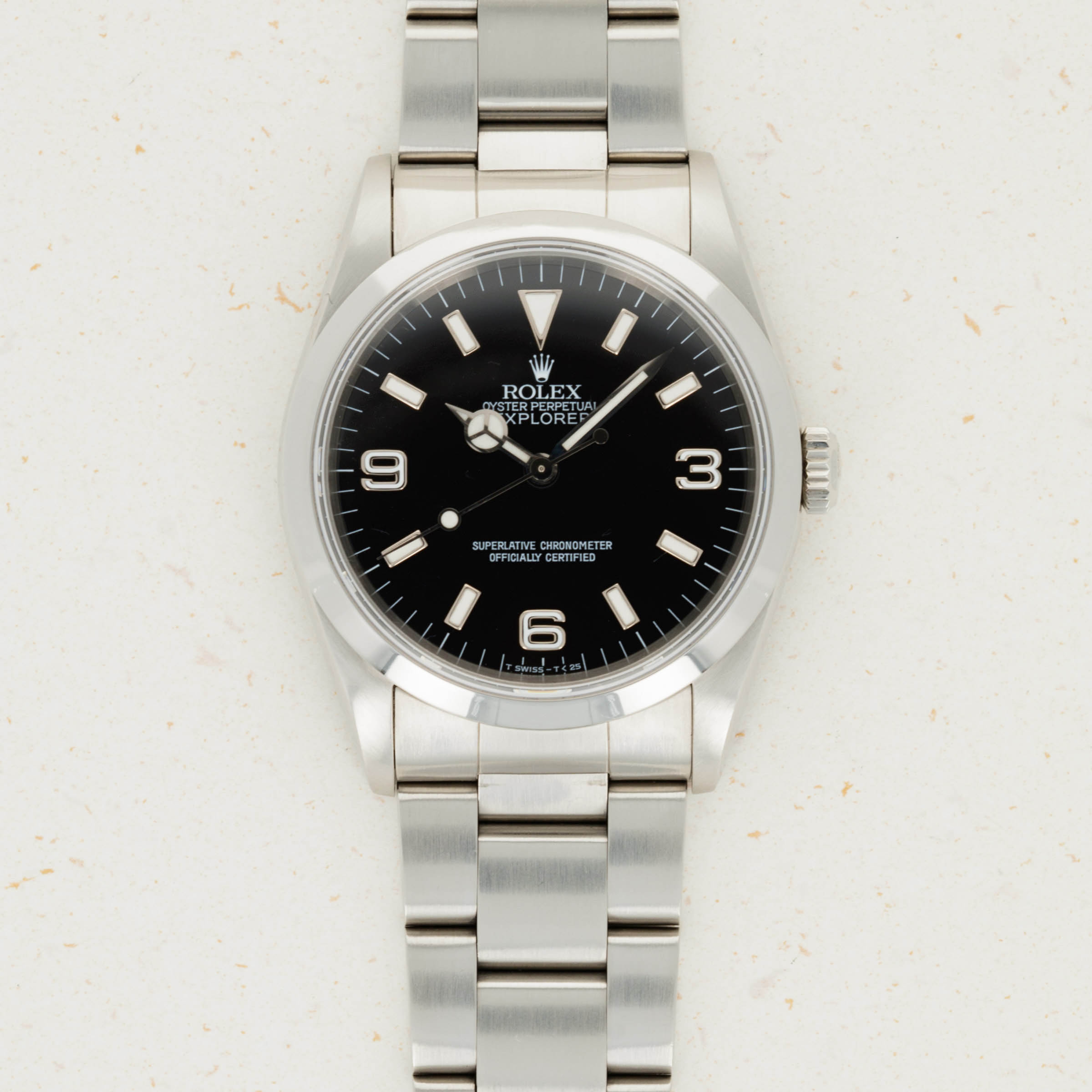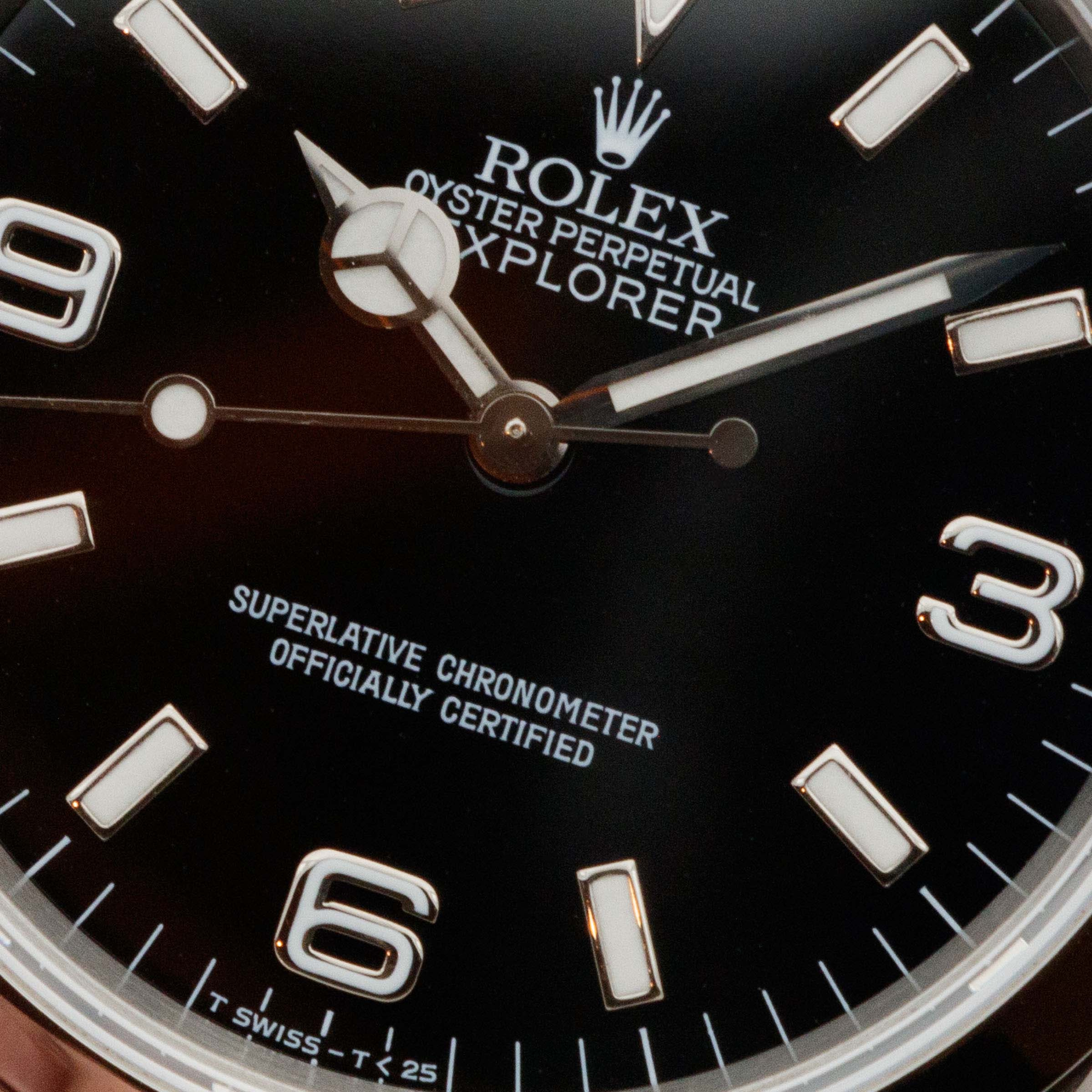 Inspired by the first-ever successful summit of Mount Everest by Sir Edmund Hillary and his Sherpa Tenzing Norgay, who wore a Rolex Oyster Perpetual, the Rolex Explorer has long been Rolex's ultimate adventure watch. Constructed entirely from Rolex's 904L steel, the Explorer's robust design ensures that it can always battle the elements. Featuring some of Rolex's most capable movements and a rich heritage to boot, the Explorer is another display of their timeless design as this icon of watchmaking has remained virtually untouched in its aesthetic since its inception. Identifiable by its signature 3-6-9 glossy black dial, a smooth stainless steel bezel, and entirely satin-brushed stainless steel case and bracelet, the Rolex Explorer has become renowned for its understated class, sporty elegance, and capable construction.