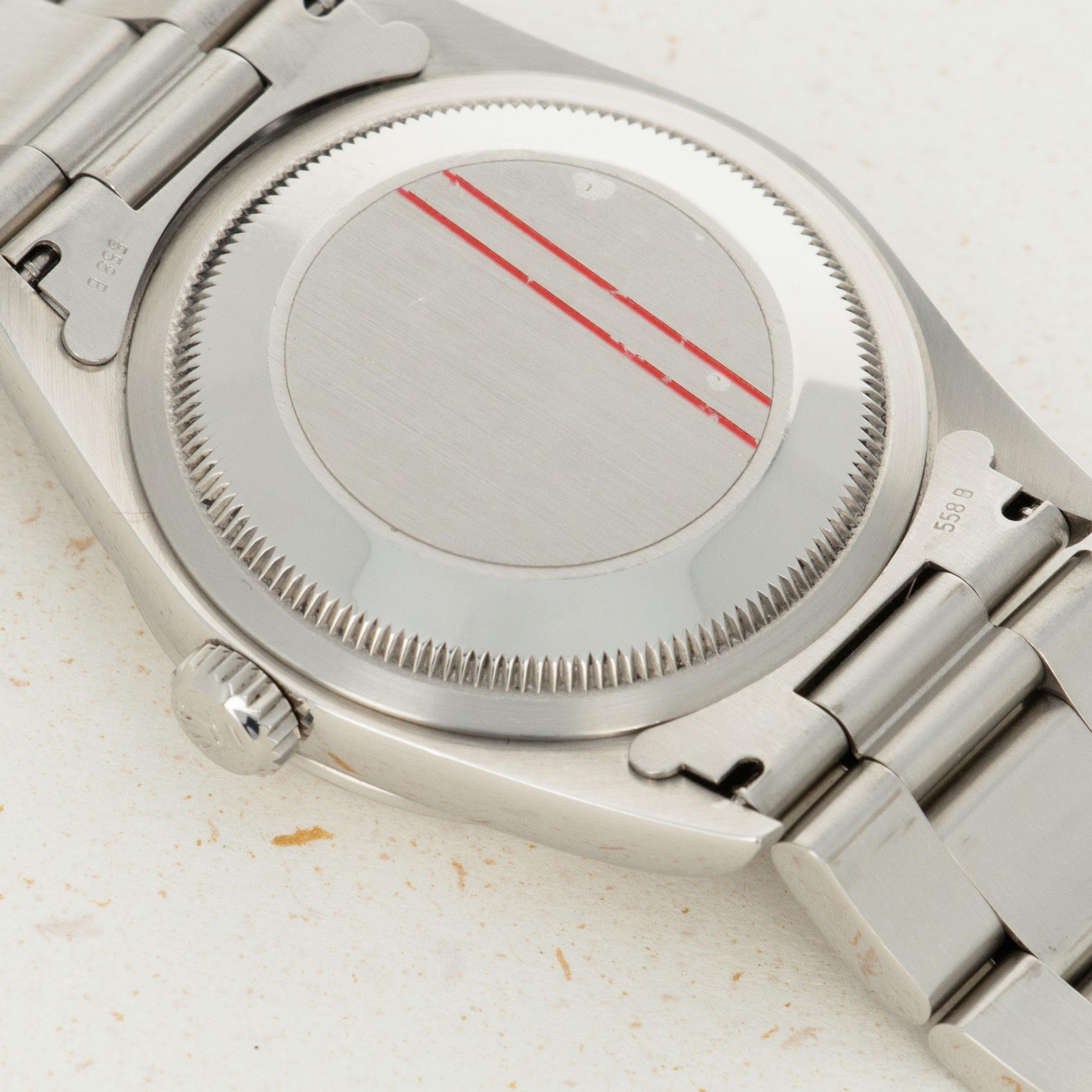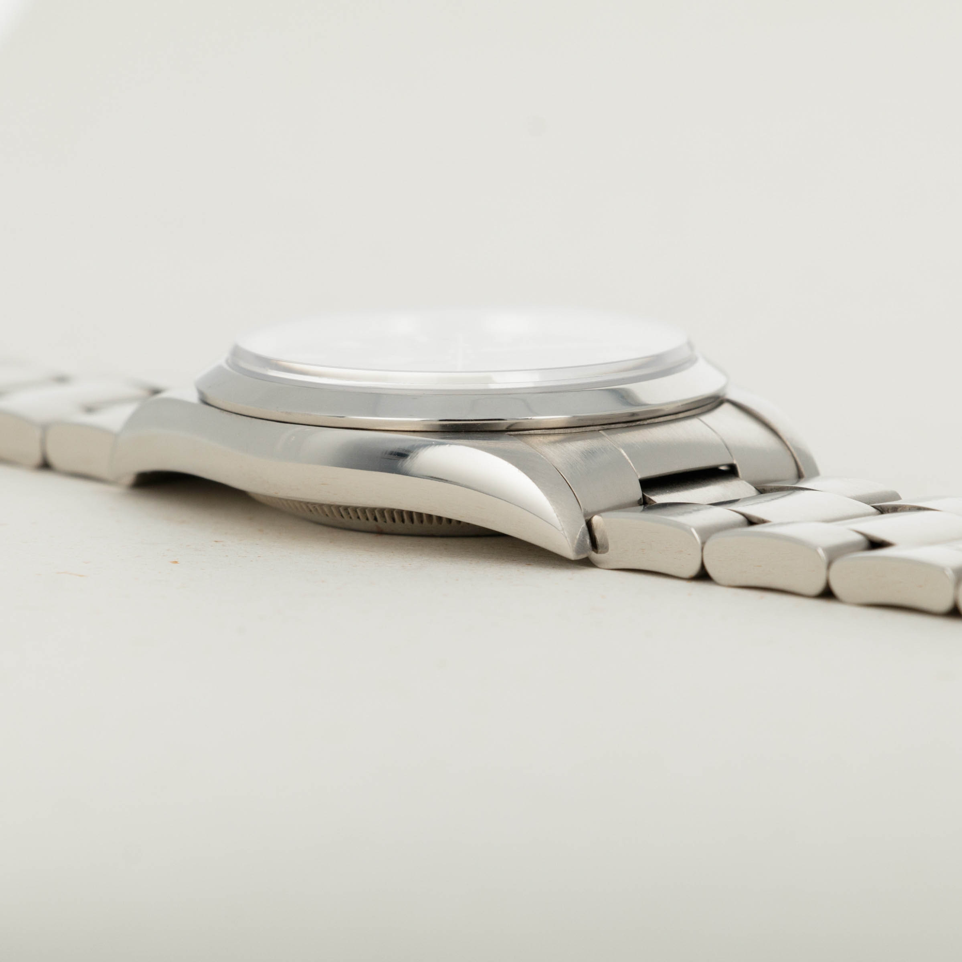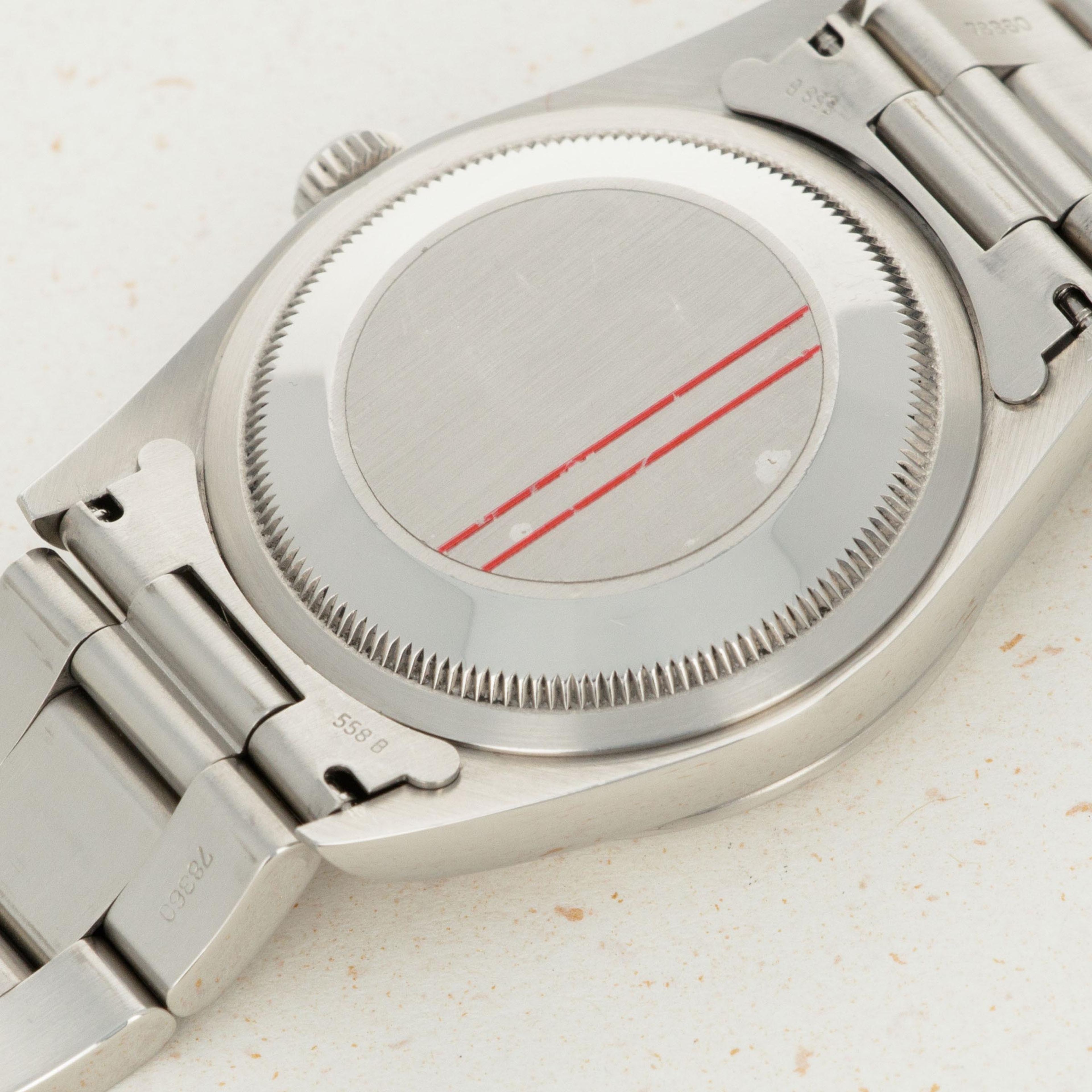 In excellent overall condition. The case is very crisp with sharp lines and definition. Just some very light surface wear. The bracelet with light surface wear and 11 links, 1 removable. The watch is complete with box and guarantee.