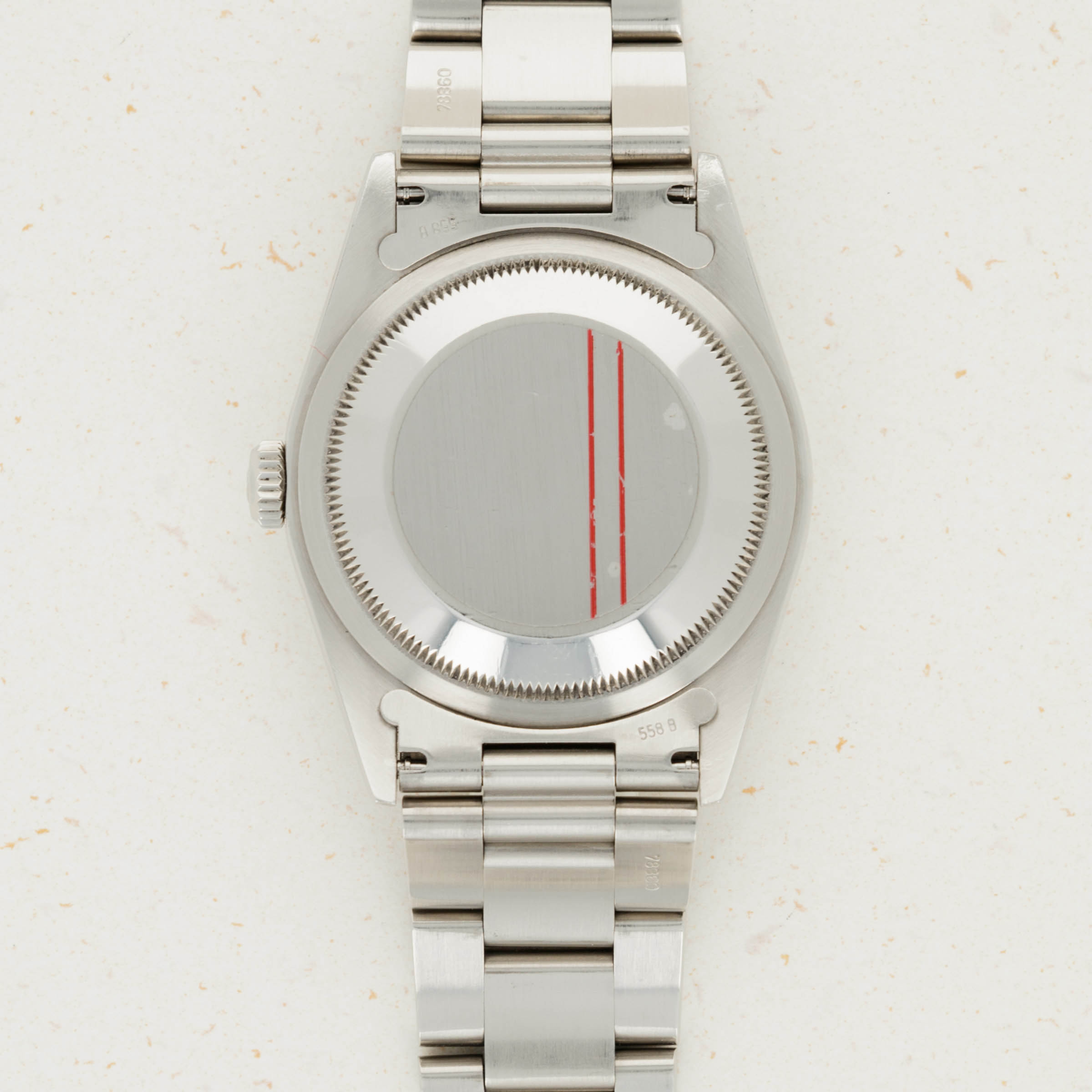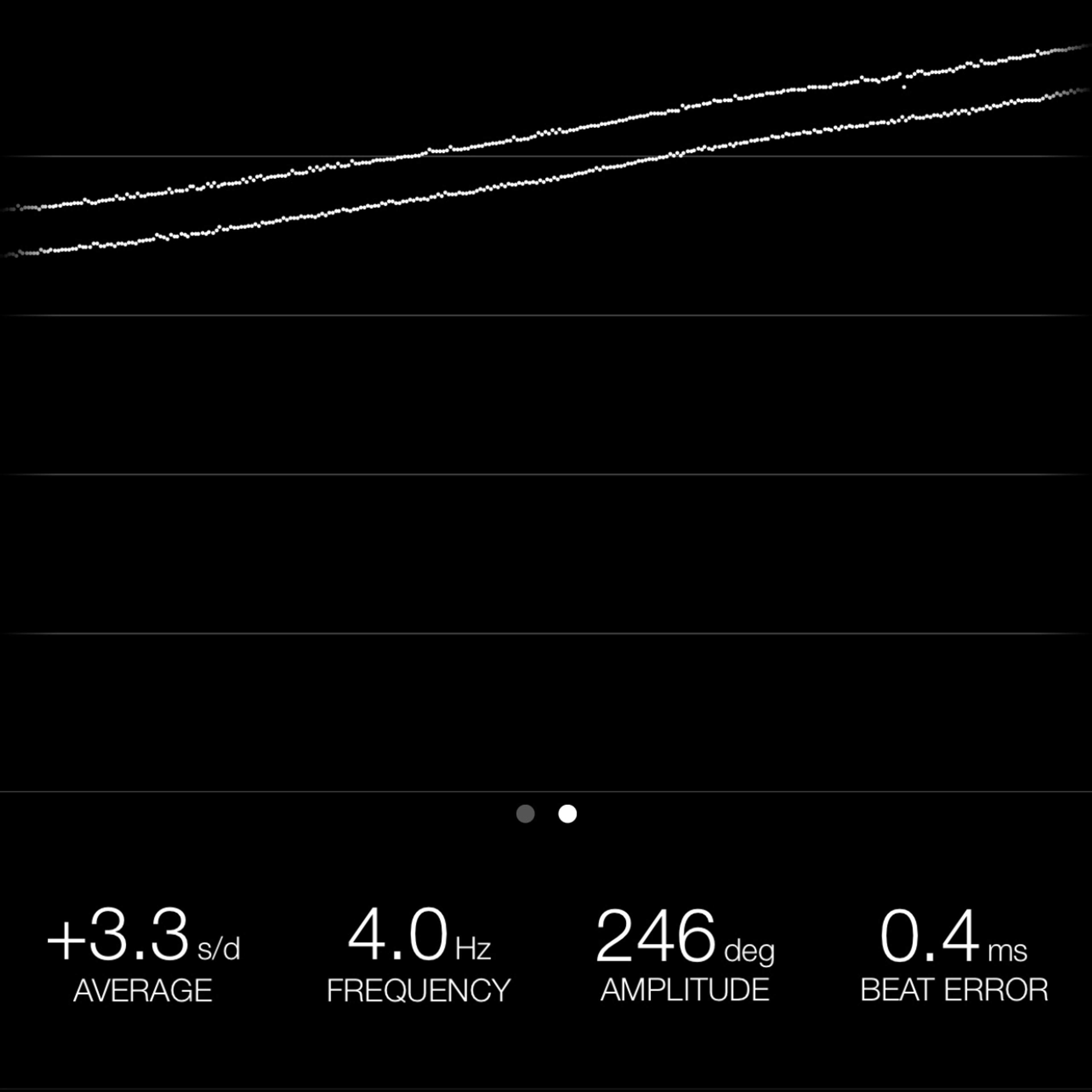 This reading was taken (crown down) with a ONEOF Accuracy Boutique Edition timing machine at time of cataloging. It is provided as a courtesy only, and shall not be construed as a warranty or guarantee of any kind. Please refer to our terms and conditions of sale for more information.