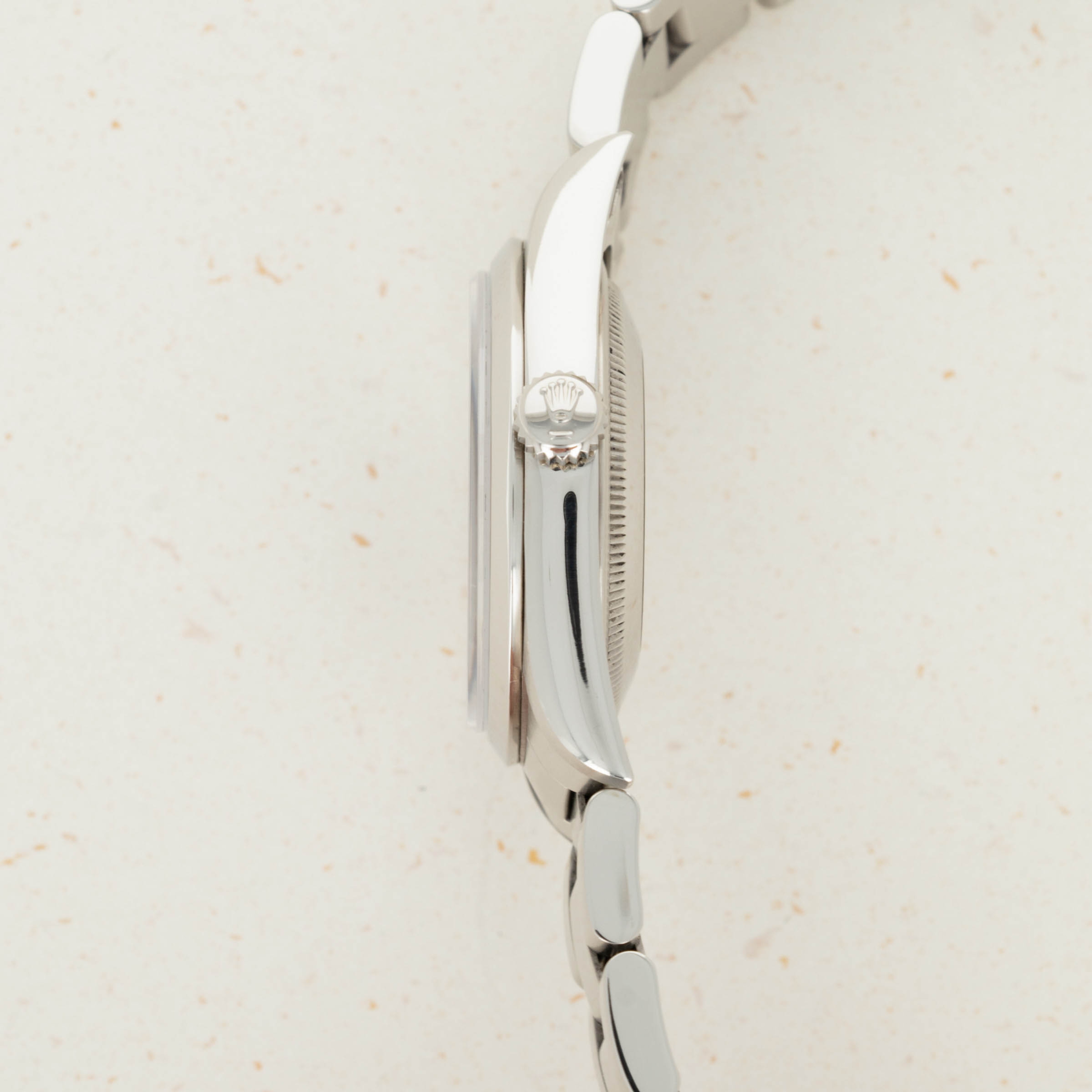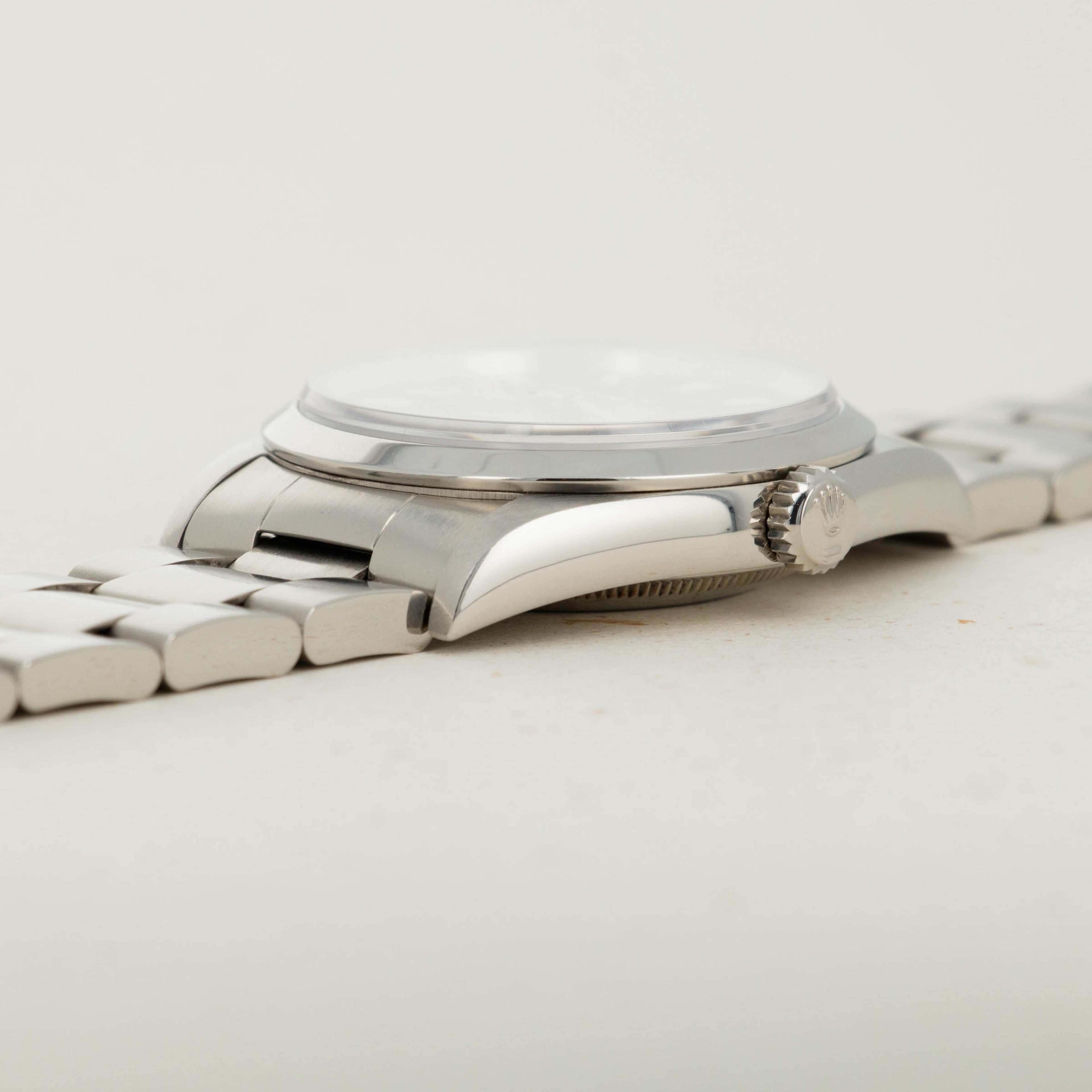Without question, the Explorer's most recognizable design element is its glossy black dial and 3-6-9 Arabic numeral arrangement. Made from 18k white gold, the ref. 14270's Arabic numerals, applied indices, and hands are resistant to corrosion and look just as good as new. Furthermore, the ref. 14270 also introduced sapphire crystal to the Explorer family, and with its scratchproof properties, it was a welcomed addition indeed.