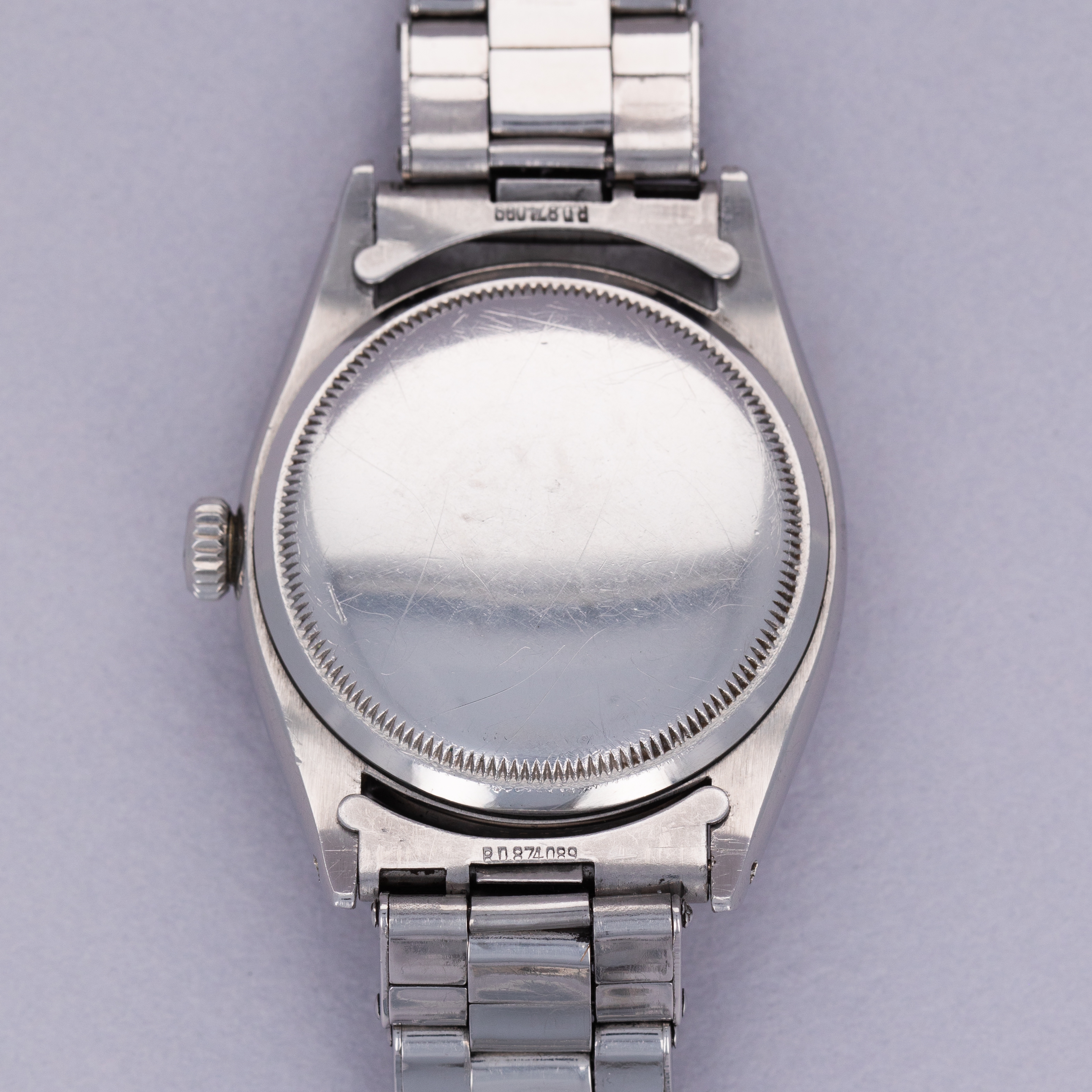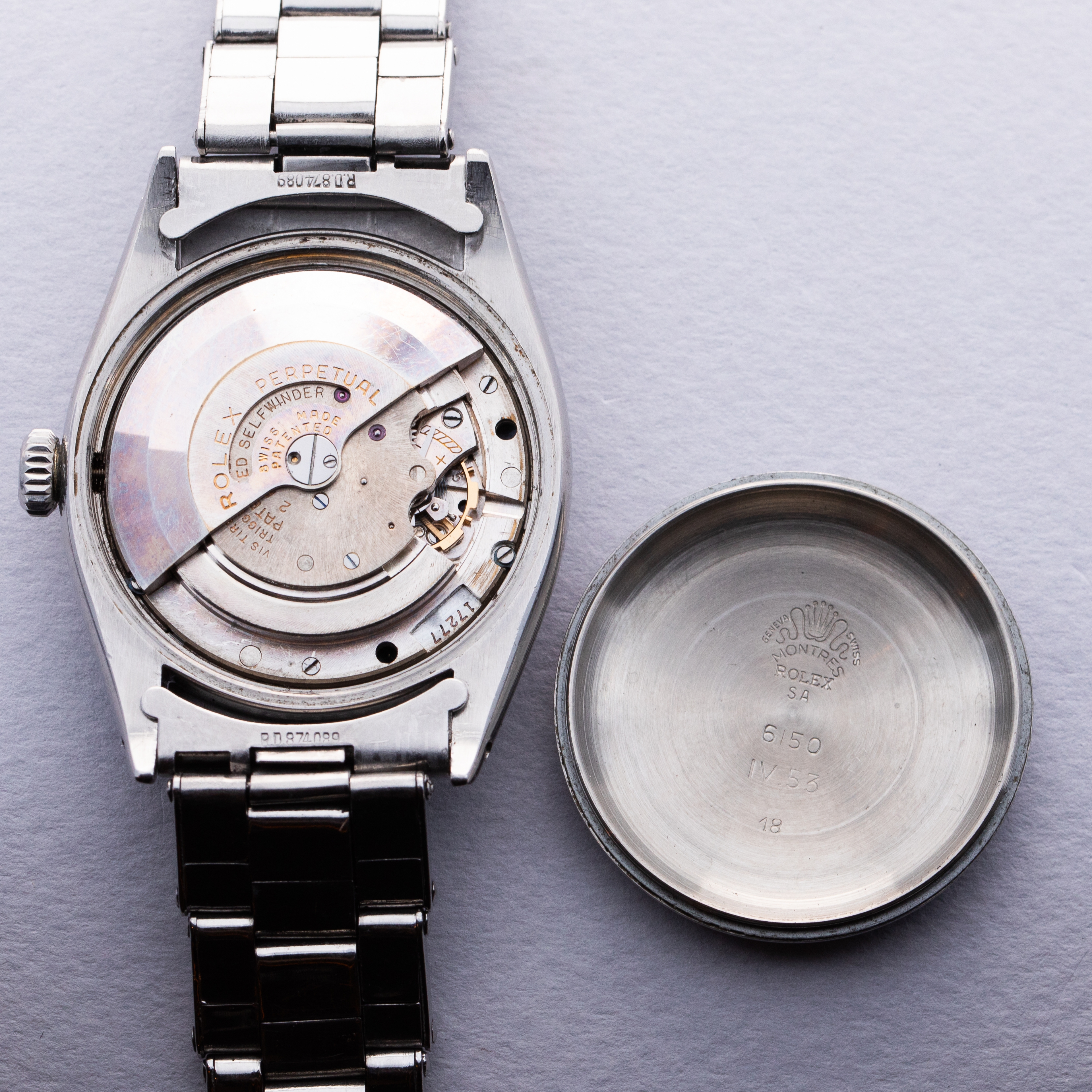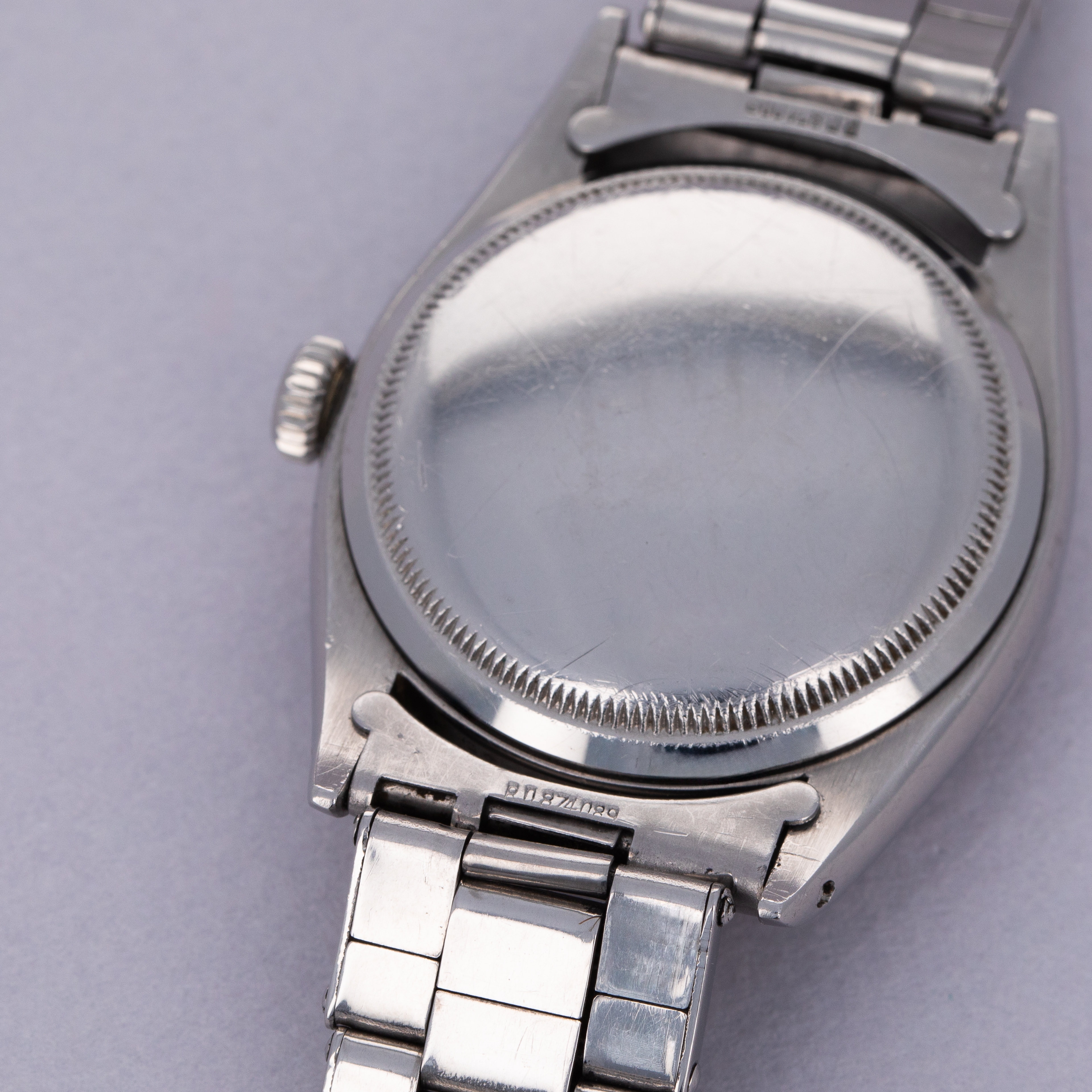 Watch is in very good overall condition. Case has moderate surface wear, with some lug wear visible, particularly on the lower right lug tip. Numbers between the lugs are crisp and clear. Caseback signed IV 1953 inside caseback. The original gilt chapter ring dial is very good. There is some mottling on the surface, and discolored but original luminous. The edge of the dial has some wear as seen in the images. There are some areas of luminous loss in the hands, as well as a faint crack in the bubble of the seconds hand. Watch comes with original rivet band with the correct "WAB England" style endpieces. The original clasp has been replaced with a later Rolex clasp. The band shows light wear, with 12 links total. it fits an approx 7" wrist.