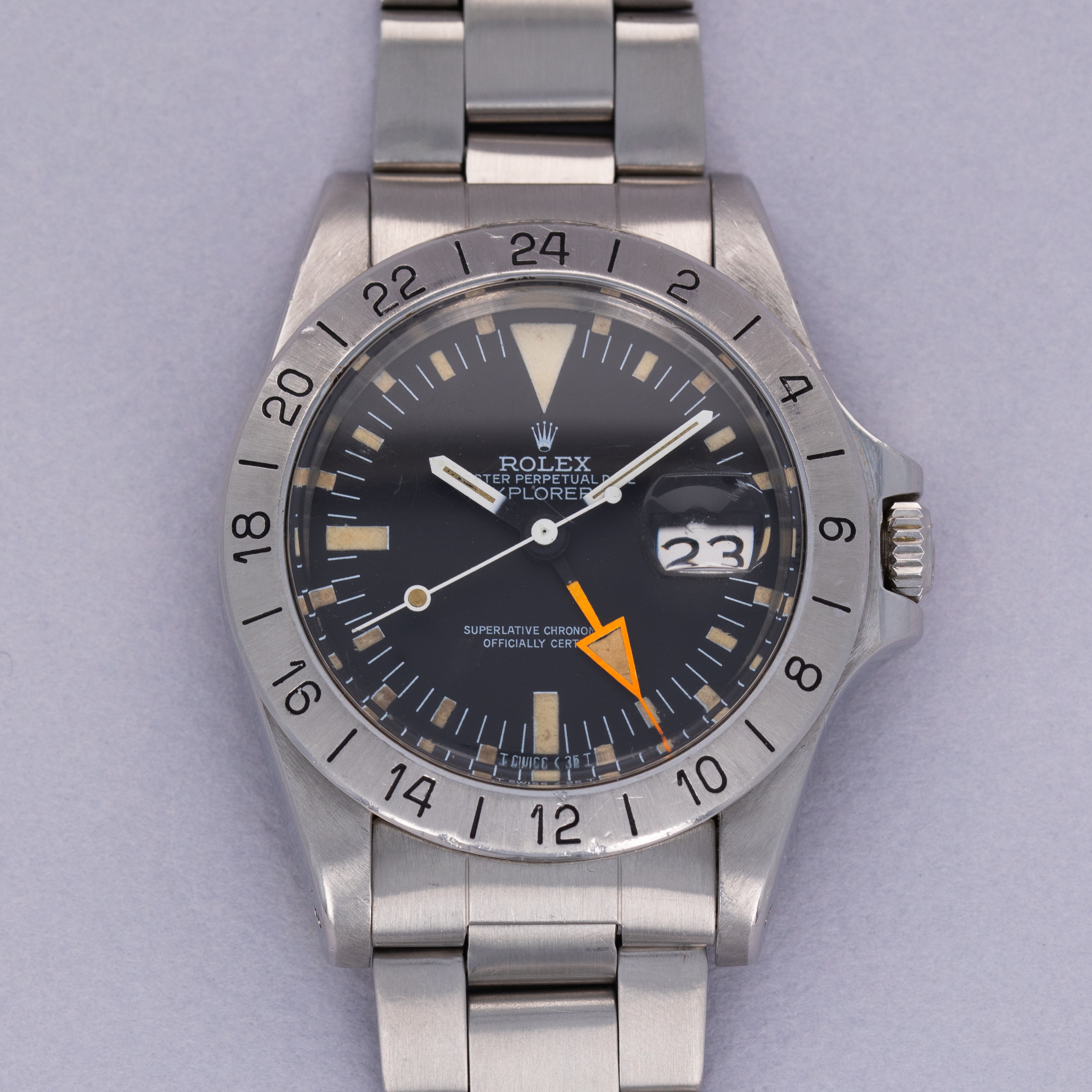 Fitted with one of watchmaking's most iconic handsets, the ref. 1655 gave us the Explorer II's signature orange arrow-shaped GMT-hand which the collection still champions today.