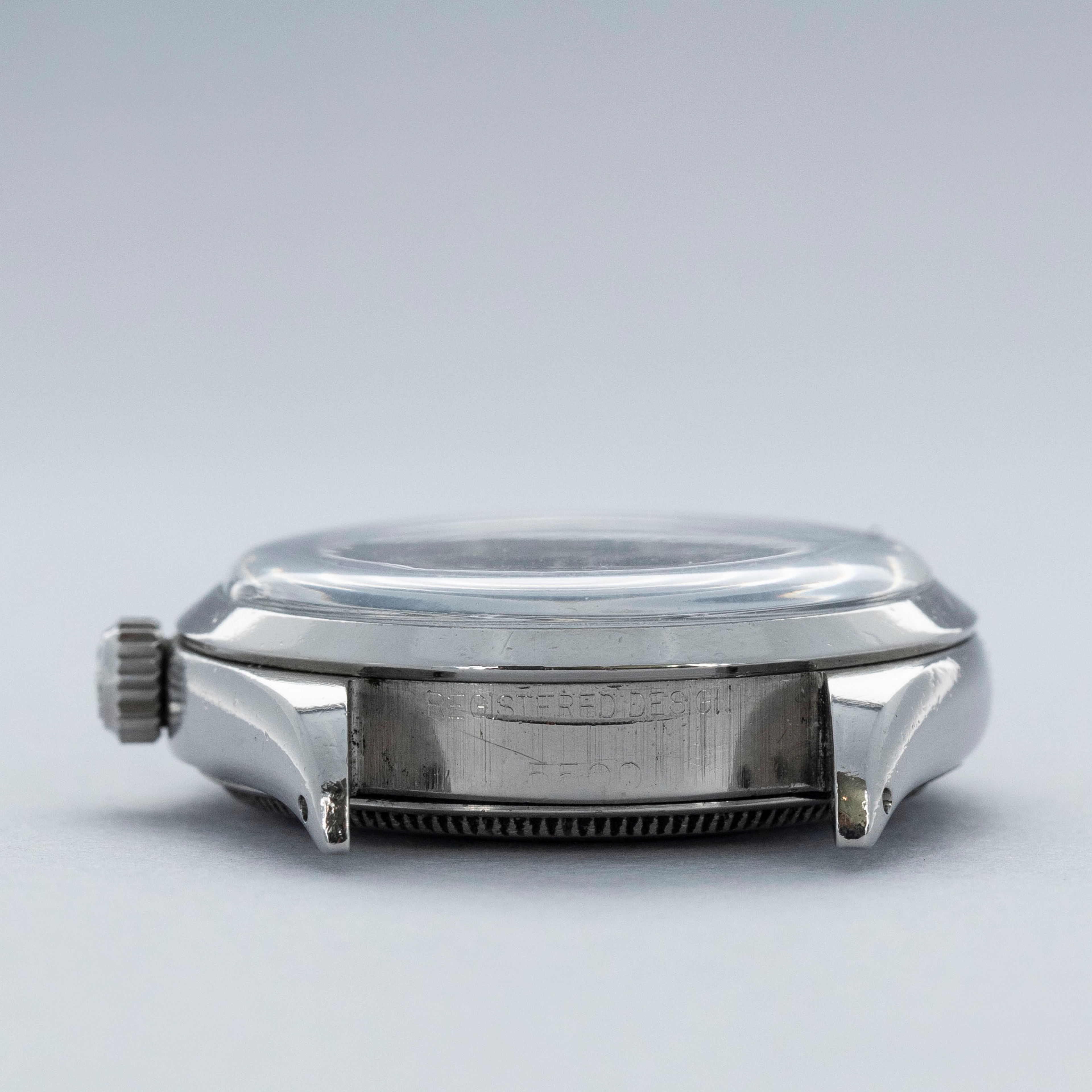 Created for the UK market, this ref. 5500 - which is normally a reference used by the Air-King collection - boasts a unique Explorer-branded dial that combines with its 34mm construction to imbue this watch with an unusual personality that vintage Rolex collectors seek out in the brand's revered timepieces.
