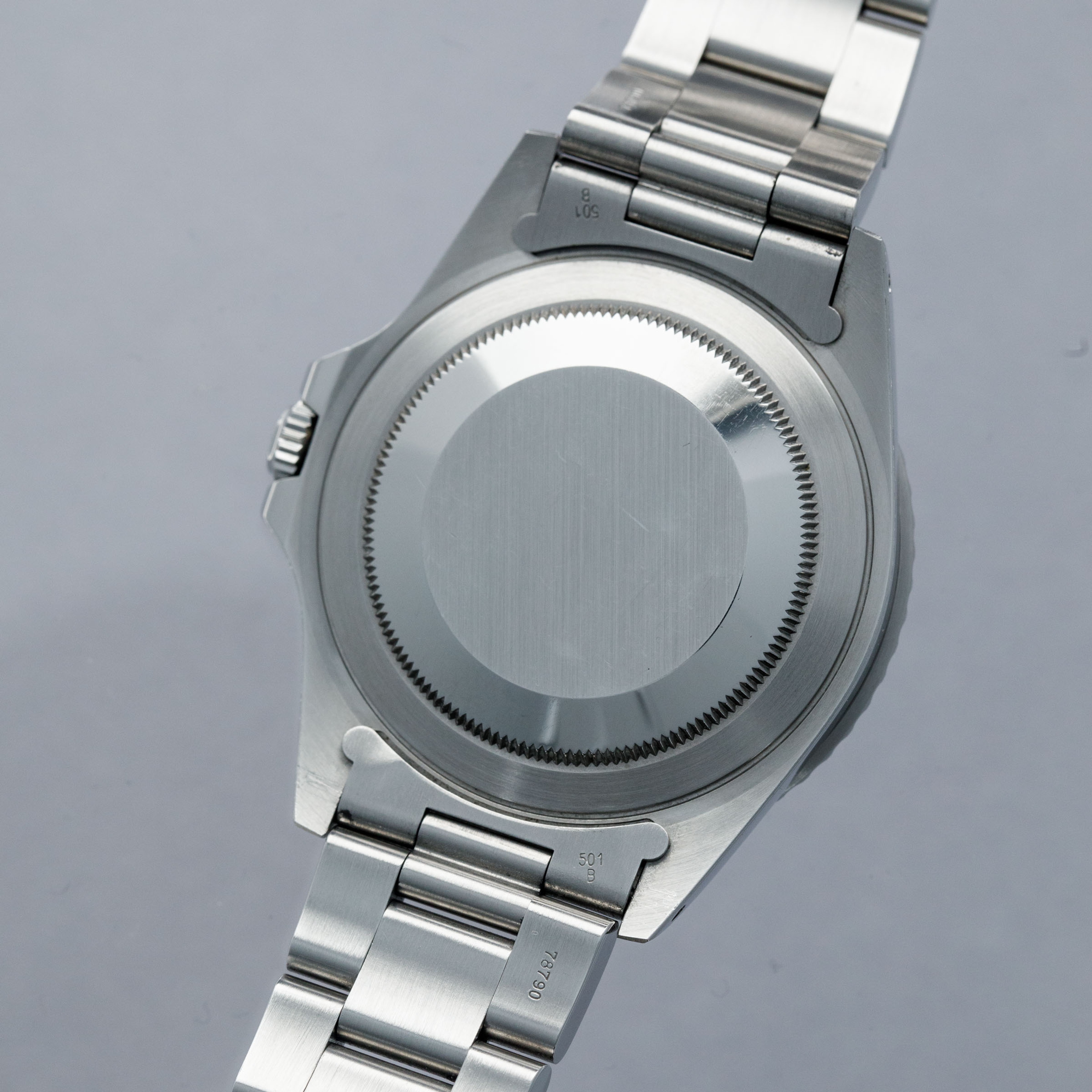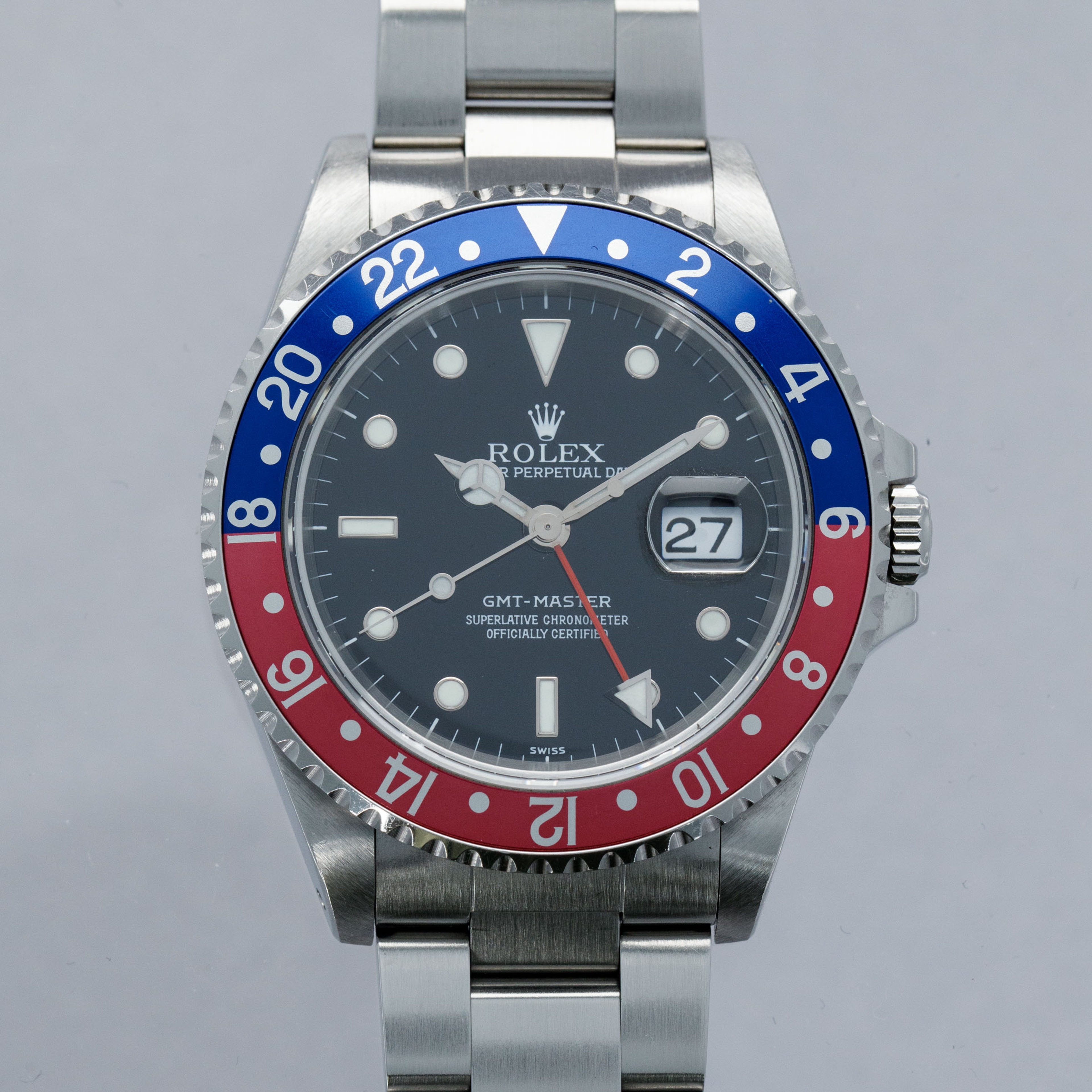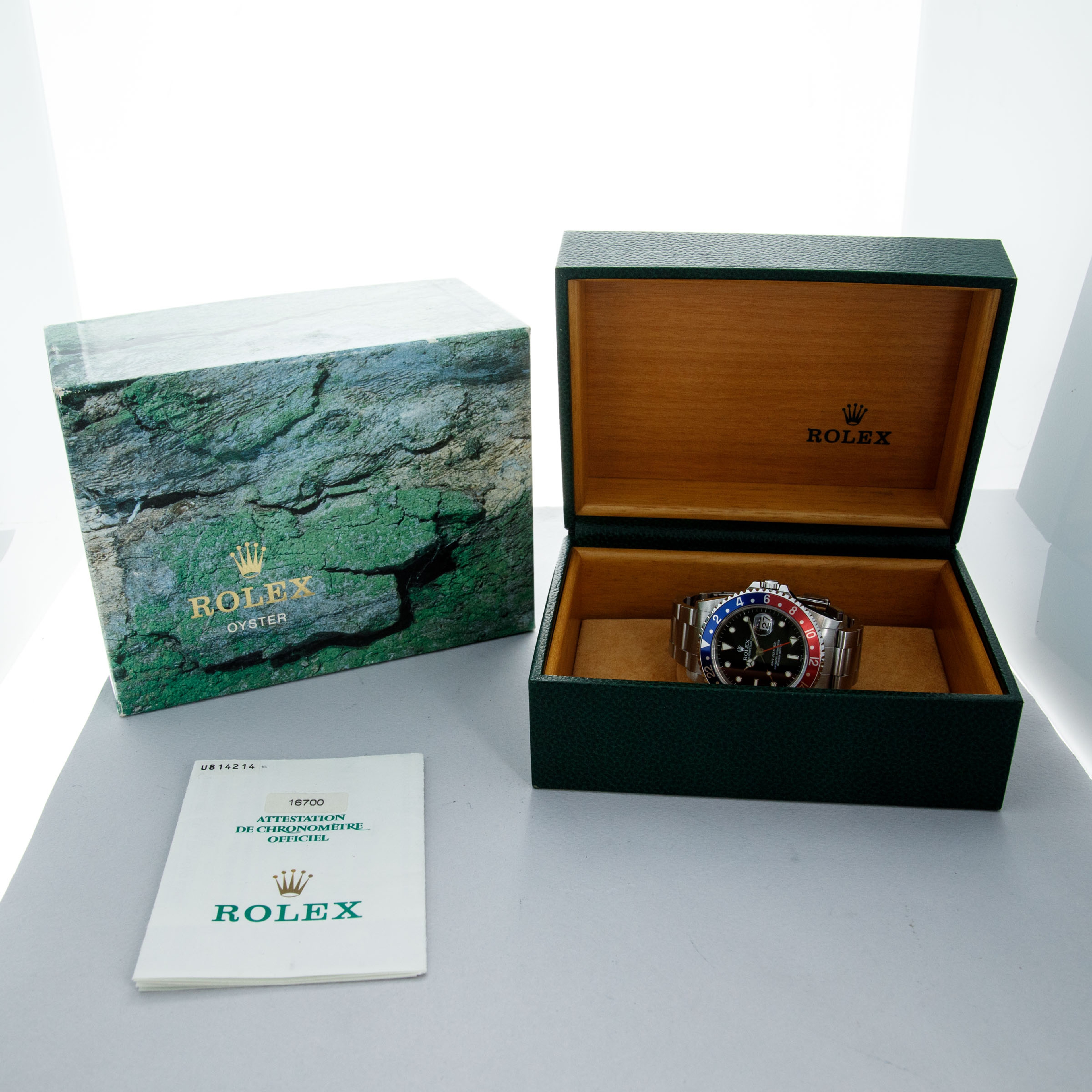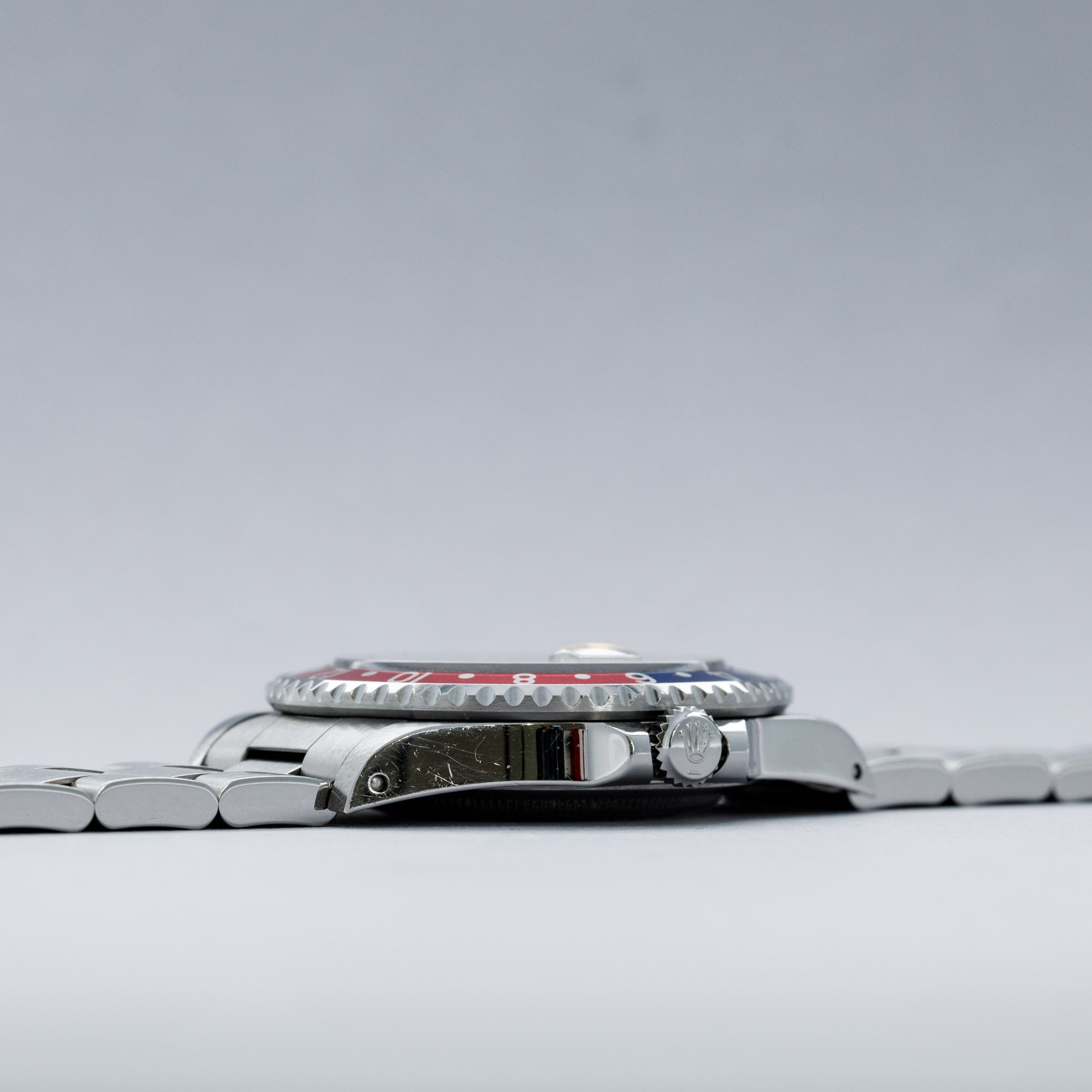 Released in 1988, the Rolex GMT-Master ref. 16700 replaced the outgoing ref. 16760 "Fat Lady," as collectors longed for a slimmed-down GMT-Master without the Fat lady's thicker case, beefier lugs, and larger design. Discontinued in 1999, the ref. 16700 was produced alongside the modern GMT-Master II and its successor, the GMT-Master ref. 16710, which was released a year after in 1989. As both of these options were more technically advanced than the ref. 16700 that we have here, the ref. 16700 failed to perform as well as it might have, with collectors spending the extra money to buy either the ref. 16710 instead, or the GMT-Master II when it was released. This has enabled the ref. 16700 to enjoy superior demand within the modern market as collectors seek out this now scarce timepiece. Offered with either an all-black bezel or the iconic red and blue Pepsi bezel, the ref. 16700 is the quintessential GMT-Master with its elegant design and vintage traits such as an aluminum bezel insert, hollow end links, hollow center links, and tritium lume (until 1997).
