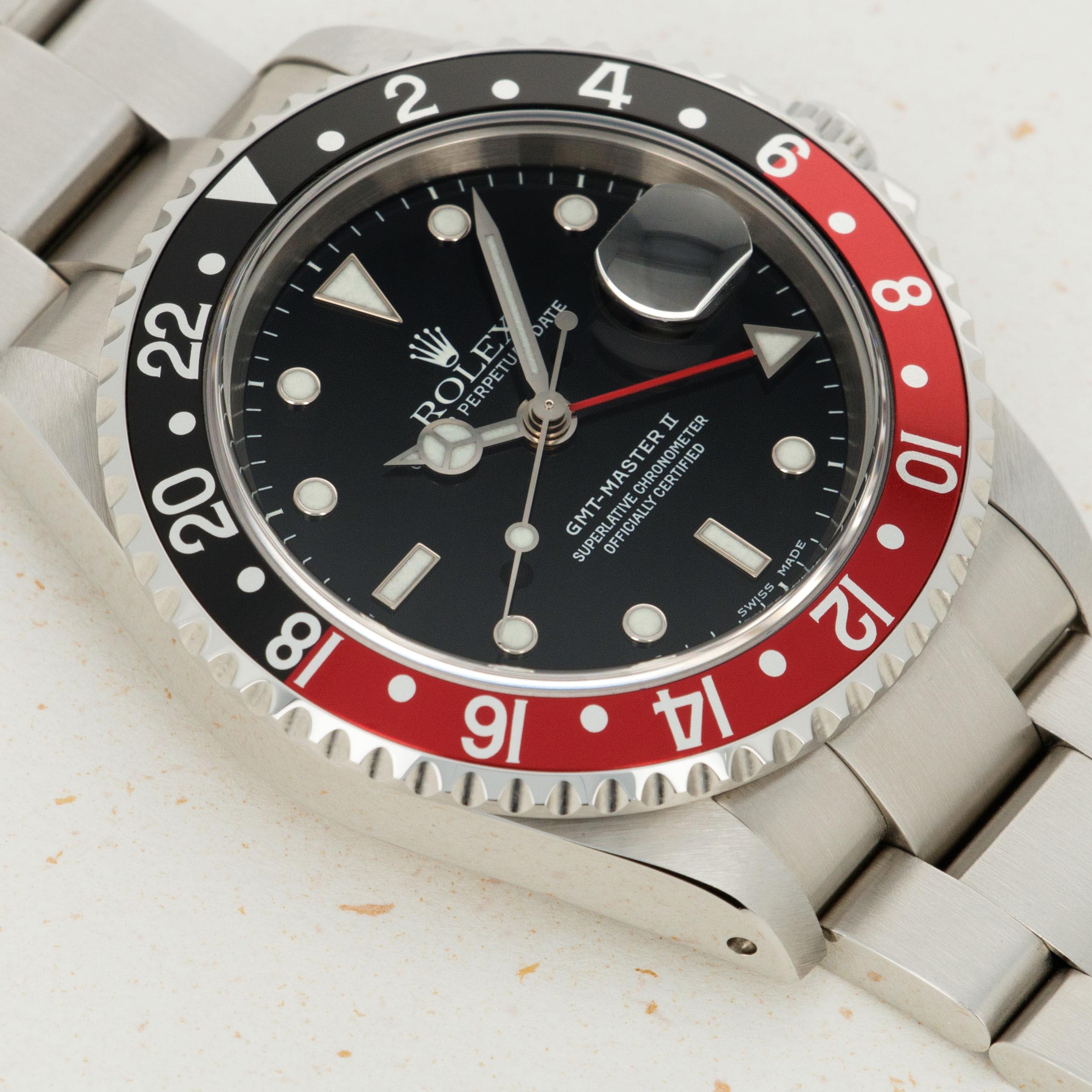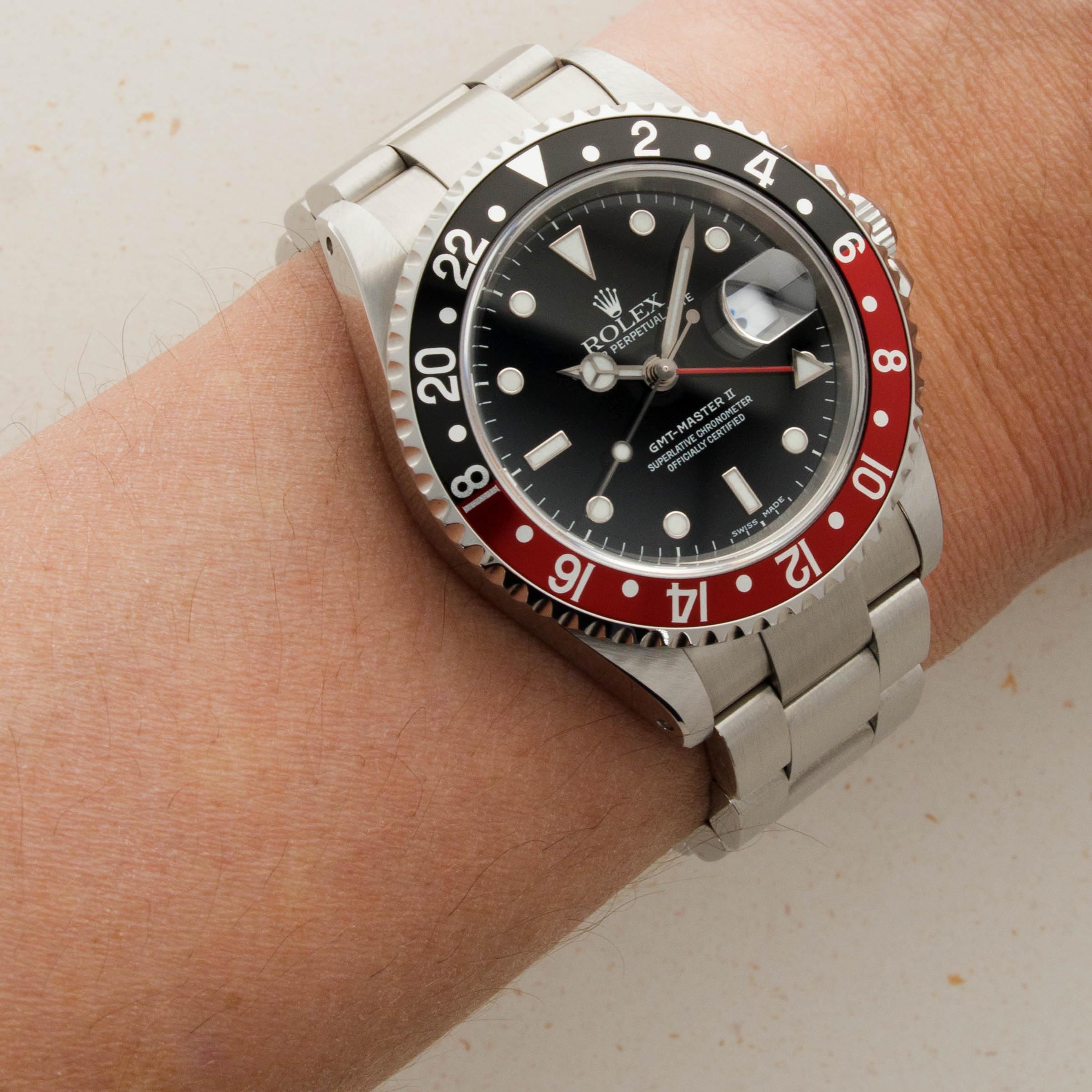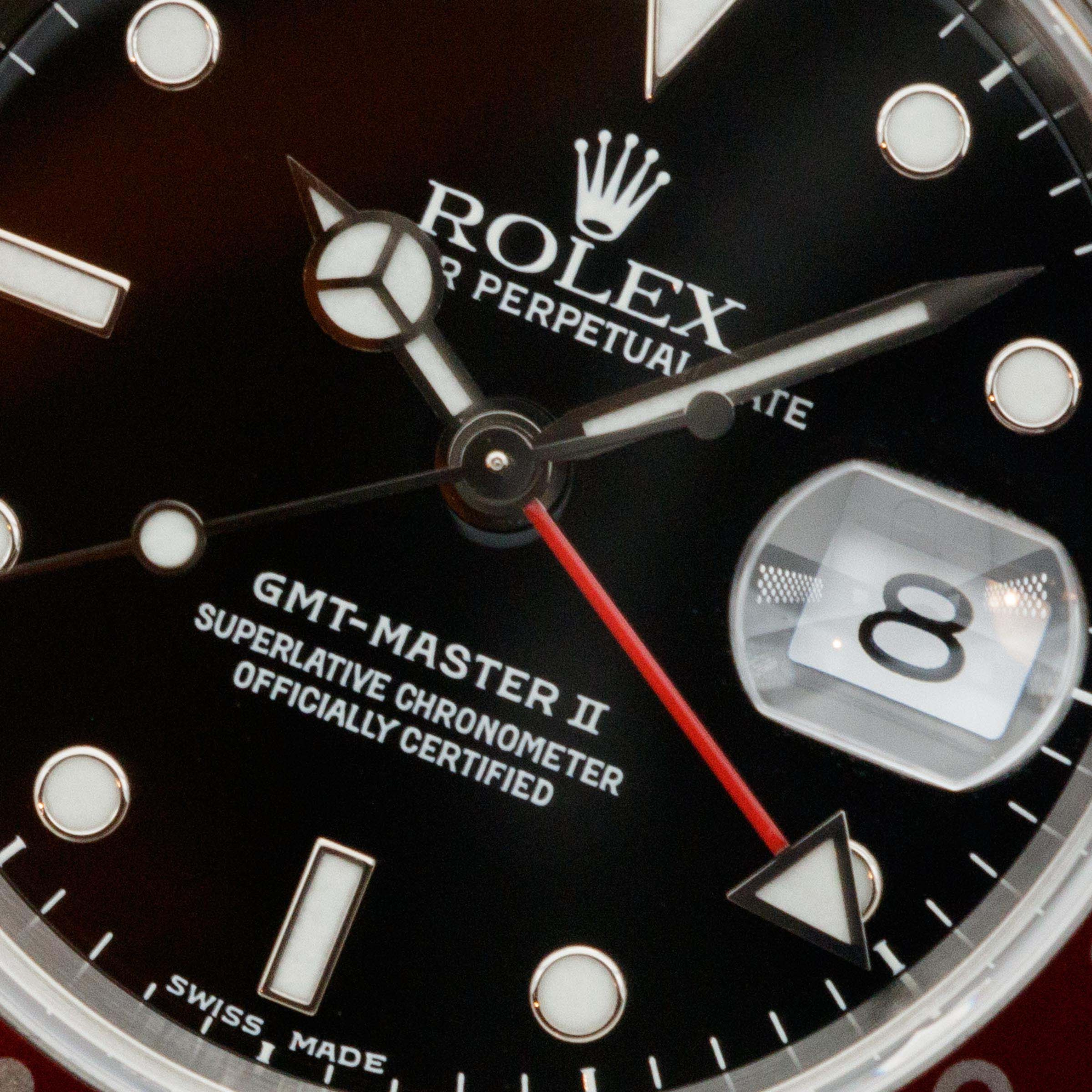 Kept in fantastic condition throughout, even this example's black and red "Coke" bezel - an all too common area for the older GMT-Master II models to be damaged, is completely free from scratches, pitting, or discoloration.