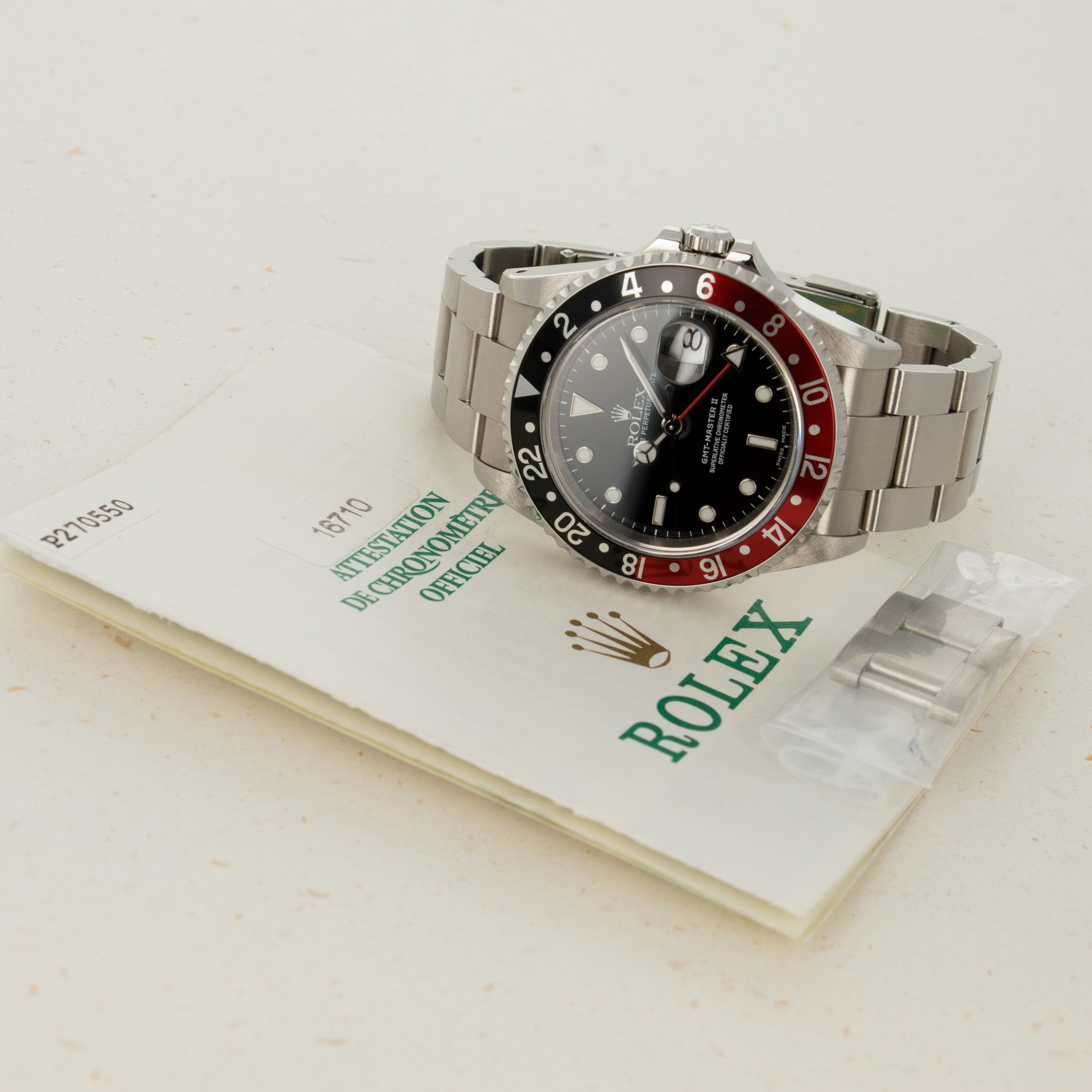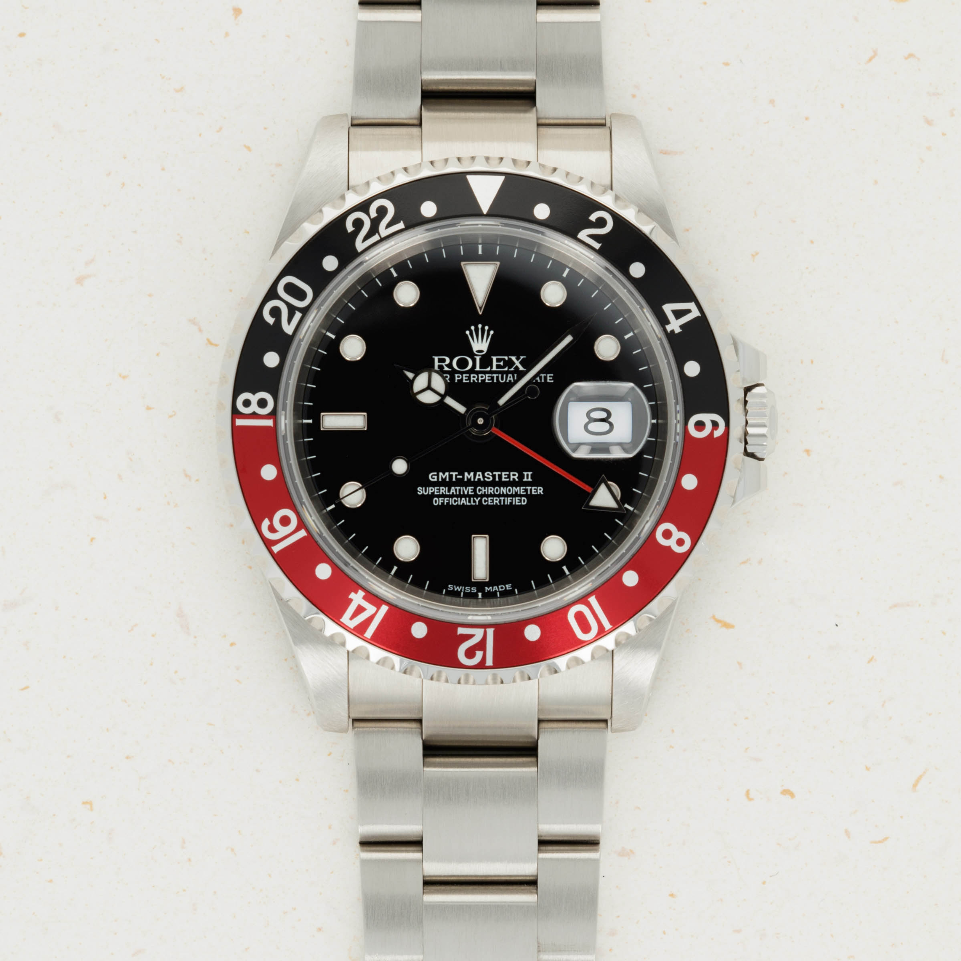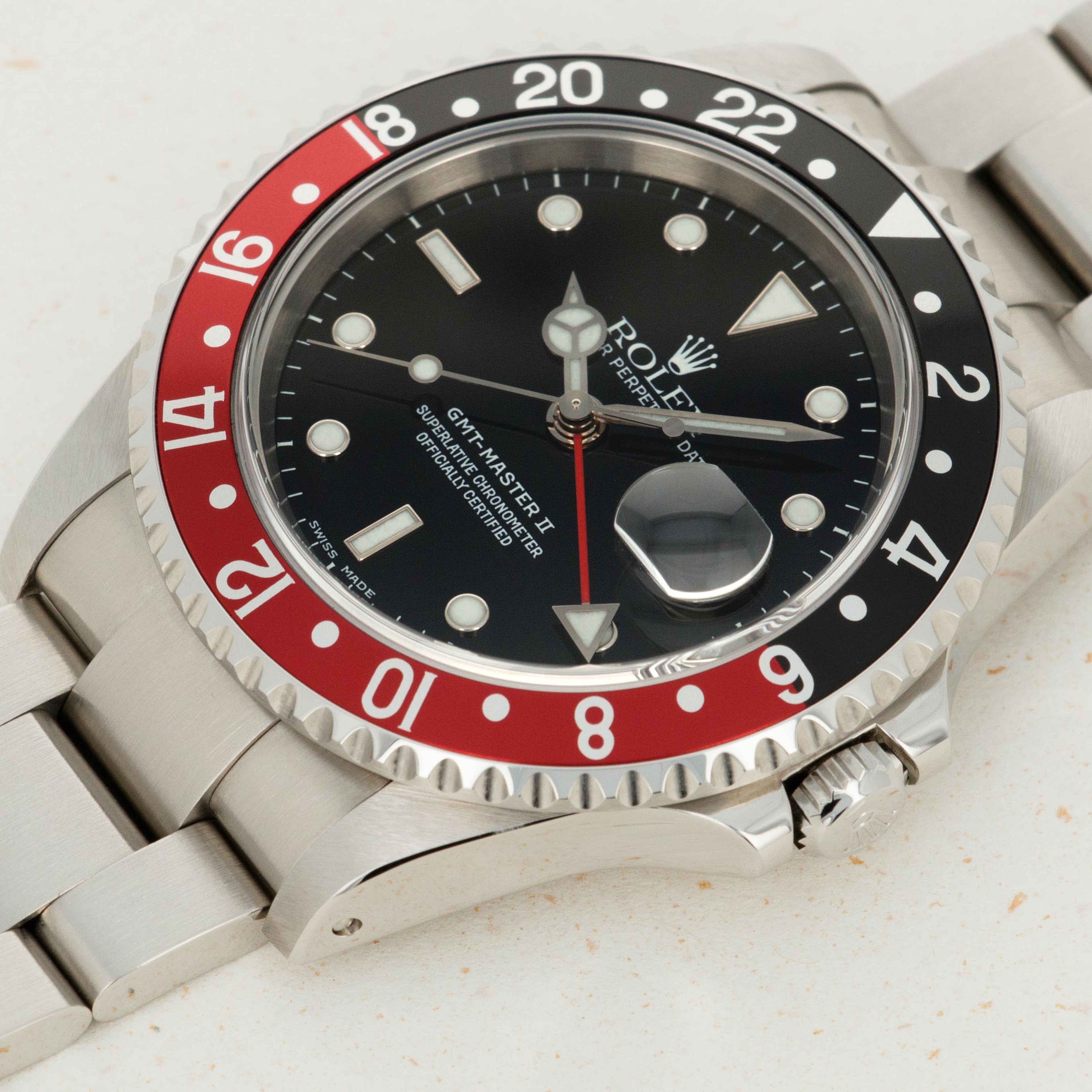 Kept in fantastic condition throughout, even this example's black and red "Coke" bezel - an all too common area for the older GMT-Master II models to be damaged, is completely free from scratches, pitting, or discoloration.