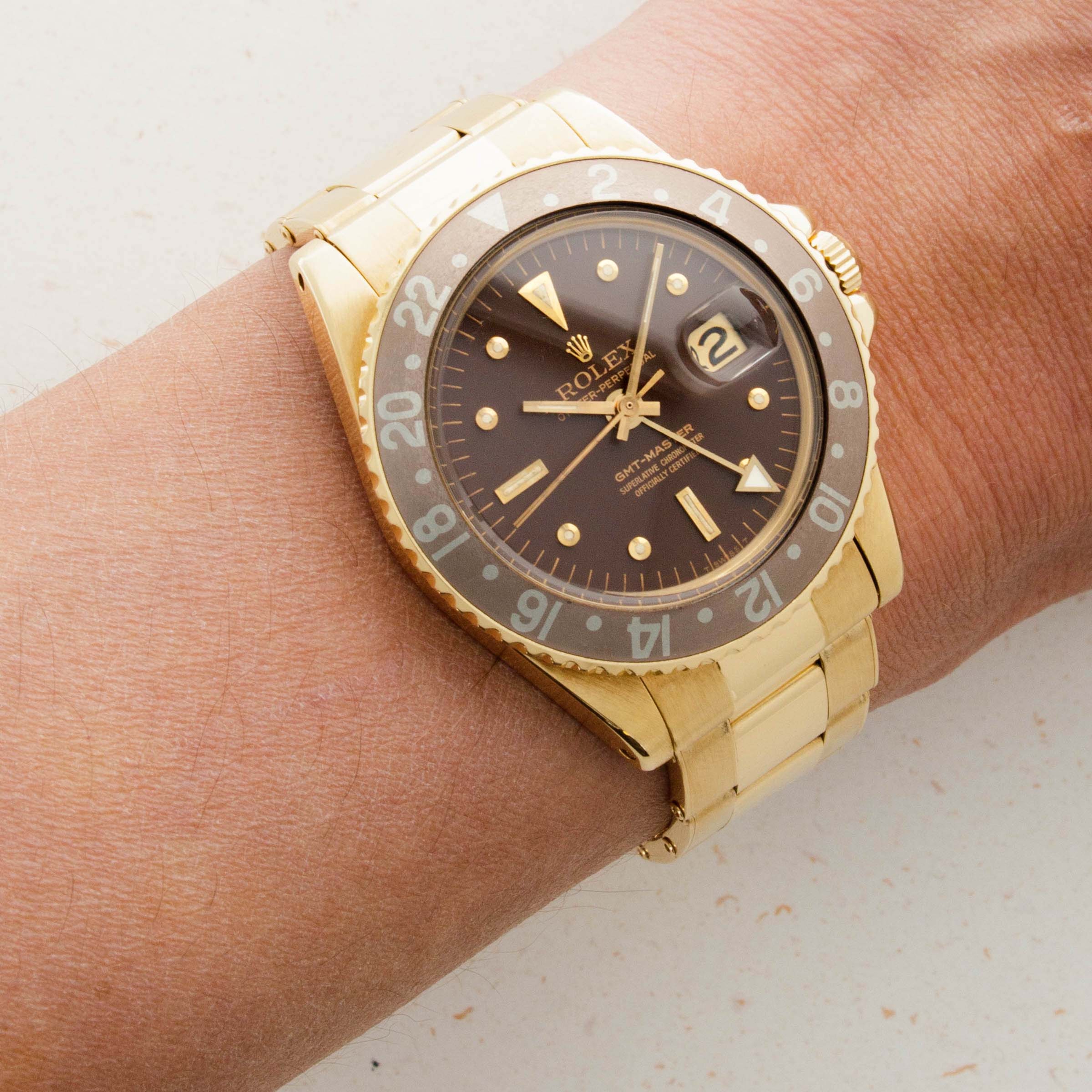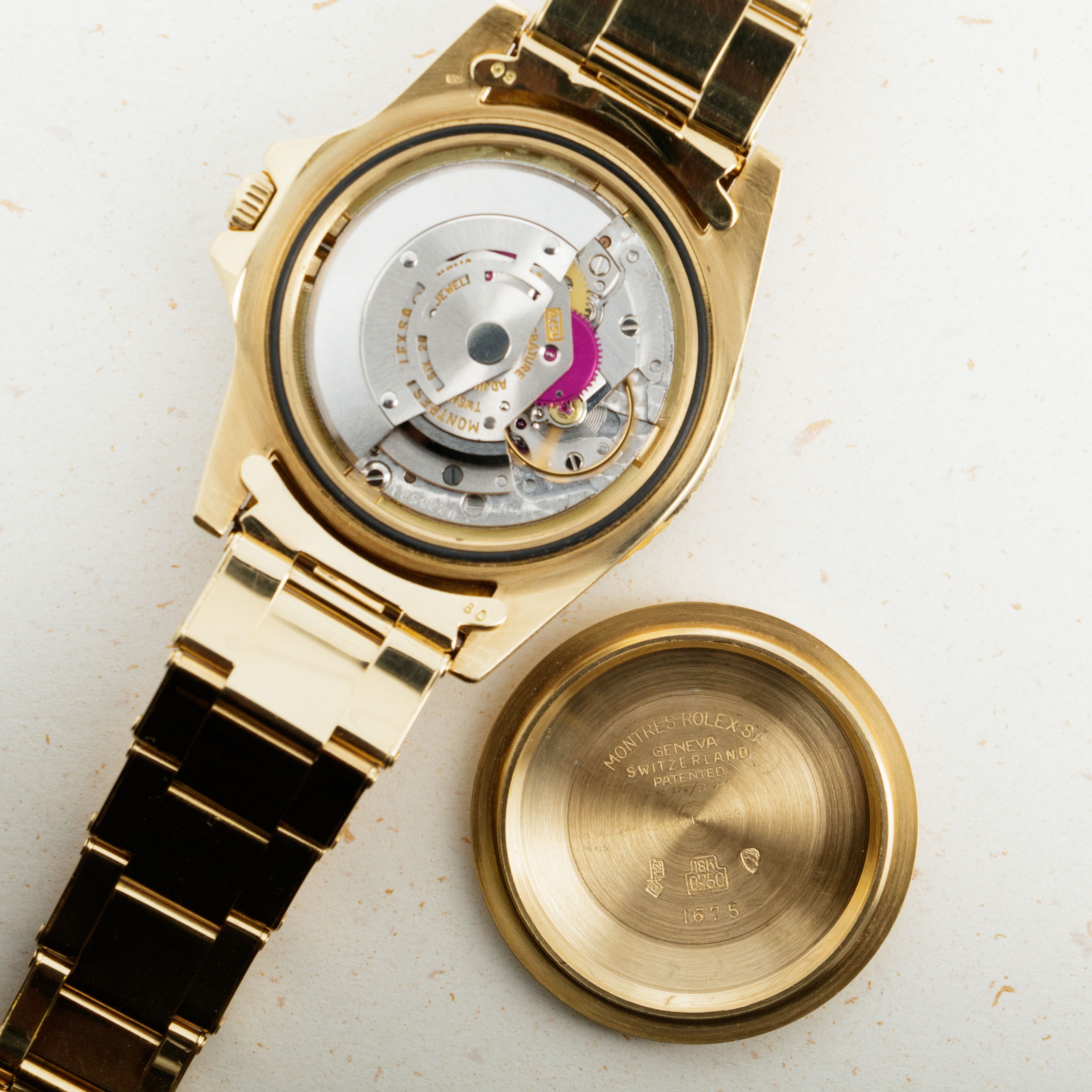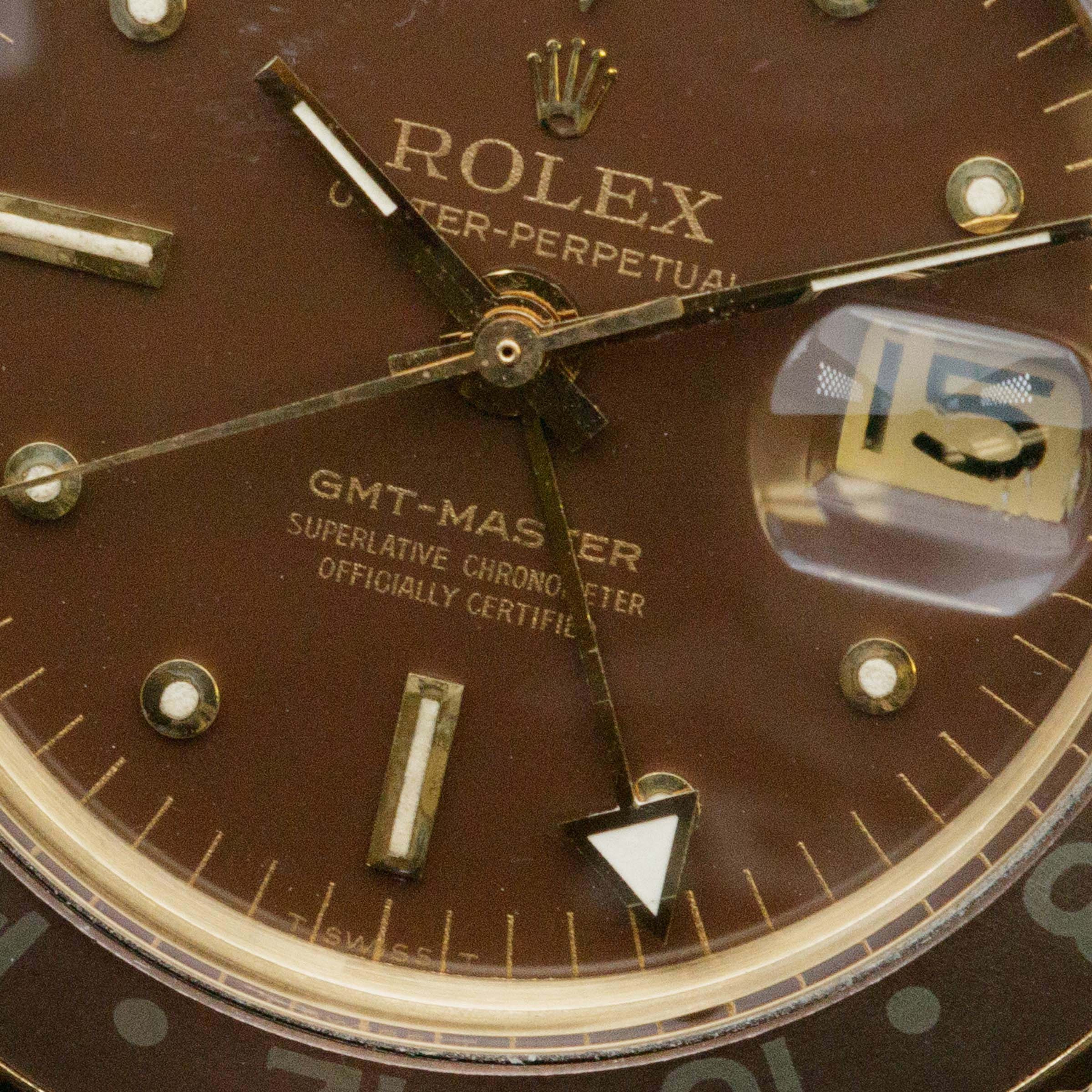 Replacing the original GMT-Master, the ref. 6542, in 1959, the GMT Master ref. 1675 introduced a selection of essential upgrades that increased the GMT-Master's robustness and made it an internally superior timepiece to what had come before. Powered by the new chronometer-spec cal. 1565 movement, the ref. 1675 was the first GMT-Master family member to receive the coveted "Superlative Chronometer Officially Certified" inscription on its dial. Furthermore, it introduced the case-altering, and now standard issue, crown guards to protect its winding crown from impacts. Its crown guards had a pointed shape from 1959 until 1965, which is when they changed to a flat, or square profile. Produced until 1980, the GMT-Master ref. 1675 is the longest-running GMT-Master model Rolex has ever produced and as such, is the quintessential reference with the longest history for Rolex collectors to enjoy and connect with.