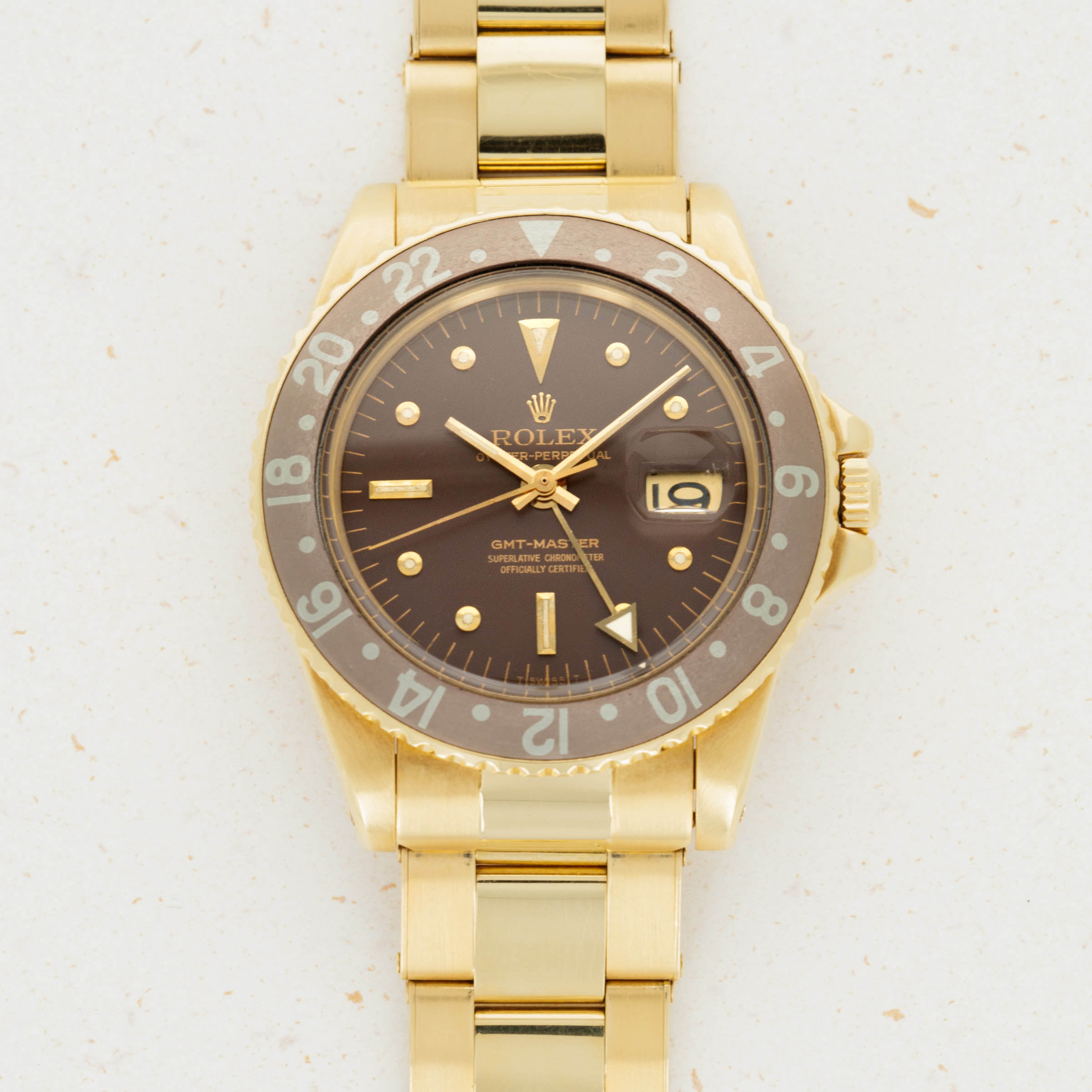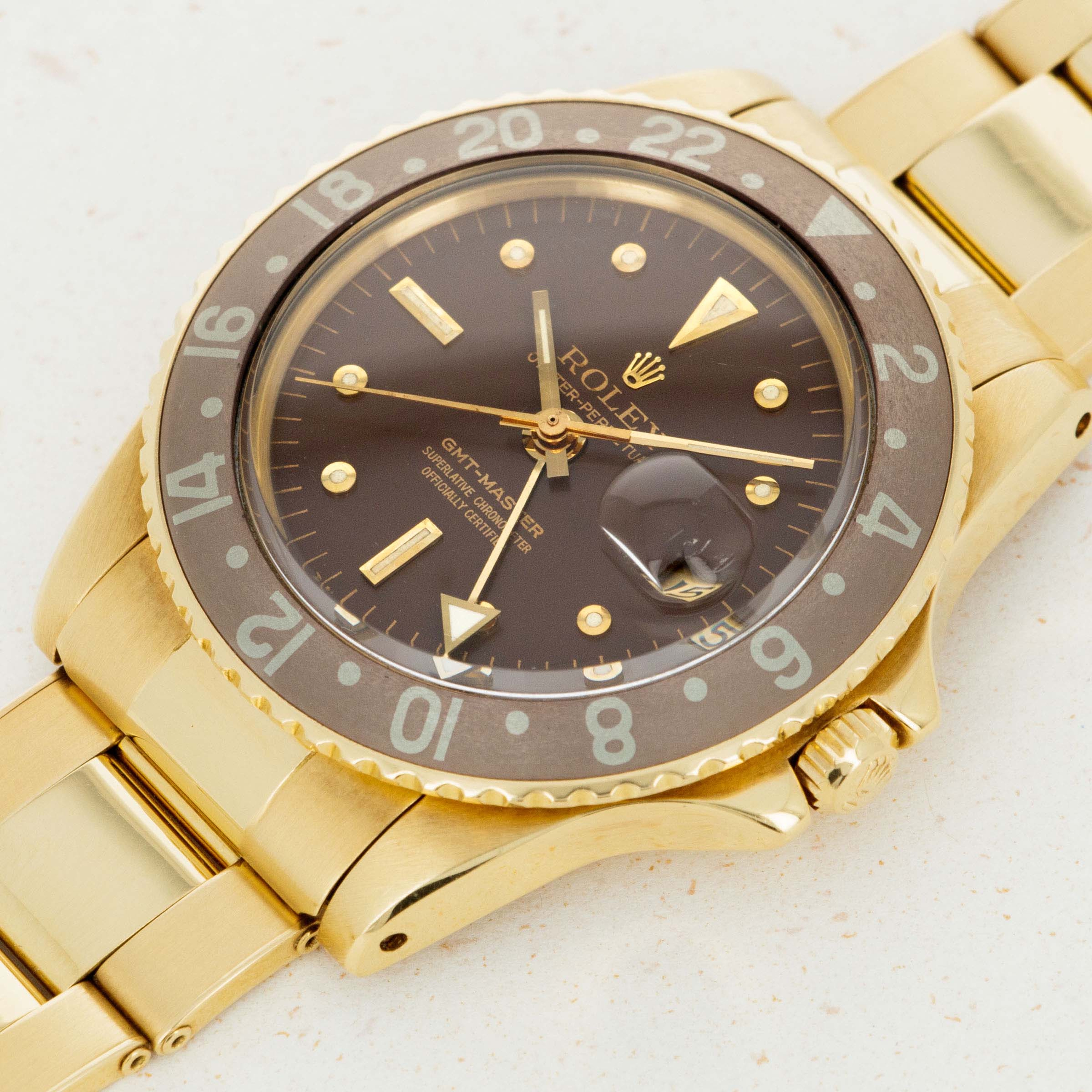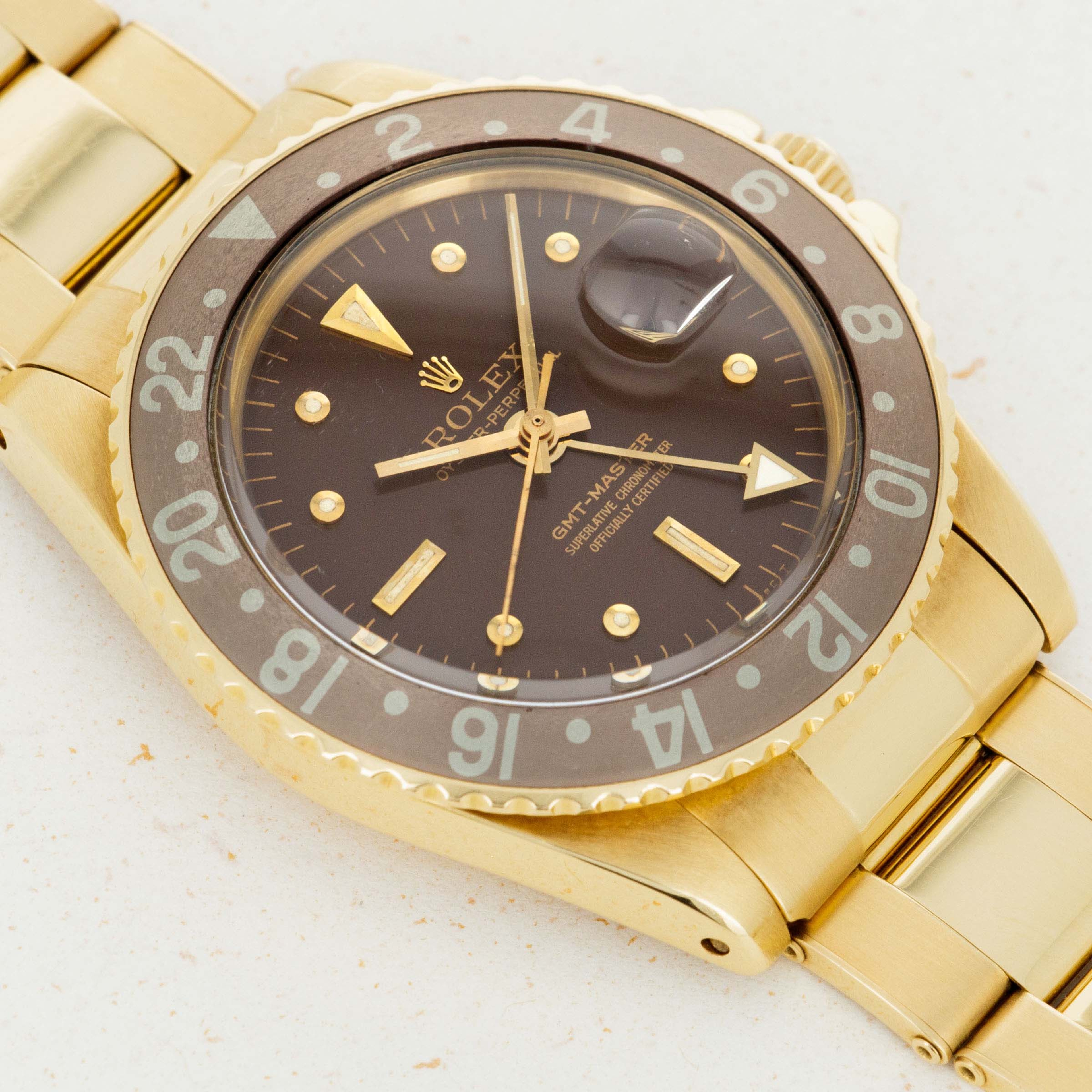 Replacing the original GMT-Master, the ref. 6542, in 1959, the GMT Master ref. 1675 introduced a selection of essential upgrades that increased the GMT-Master's robustness and made it an internally superior timepiece to what had come before. Powered by the new chronometer-spec cal. 1565 movement, the ref. 1675 was the first GMT-Master family member to receive the coveted "Superlative Chronometer Officially Certified" inscription on its dial. Furthermore, it introduced the case-altering, and now standard issue, crown guards to protect its winding crown from impacts. Its crown guards had a pointed shape from 1959 until 1965, which is when they changed to a flat, or square profile. Produced until 1980, the GMT-Master ref. 1675 is the longest-running GMT-Master model Rolex has ever produced and as such, is the quintessential reference with the longest history for Rolex collectors to enjoy and connect with.