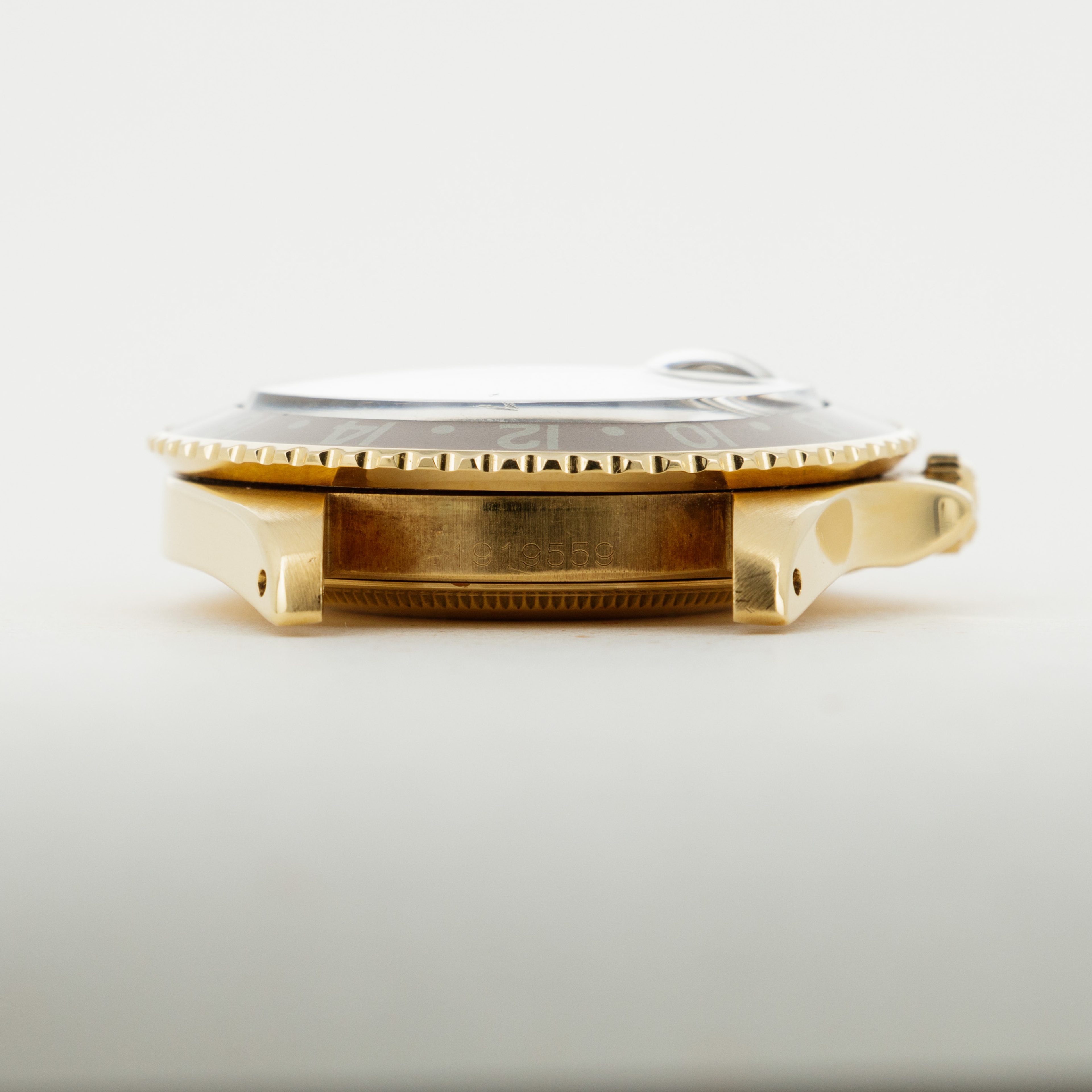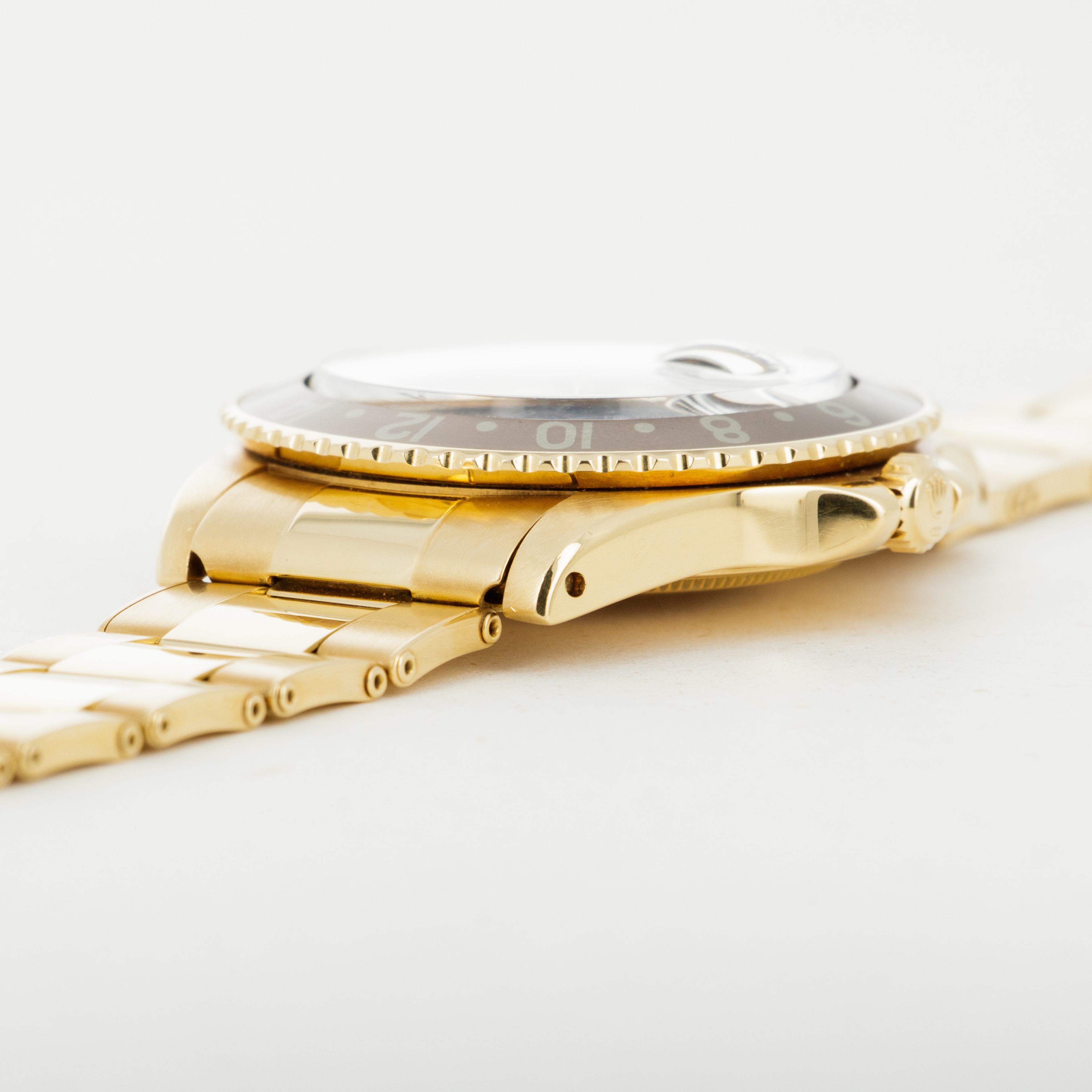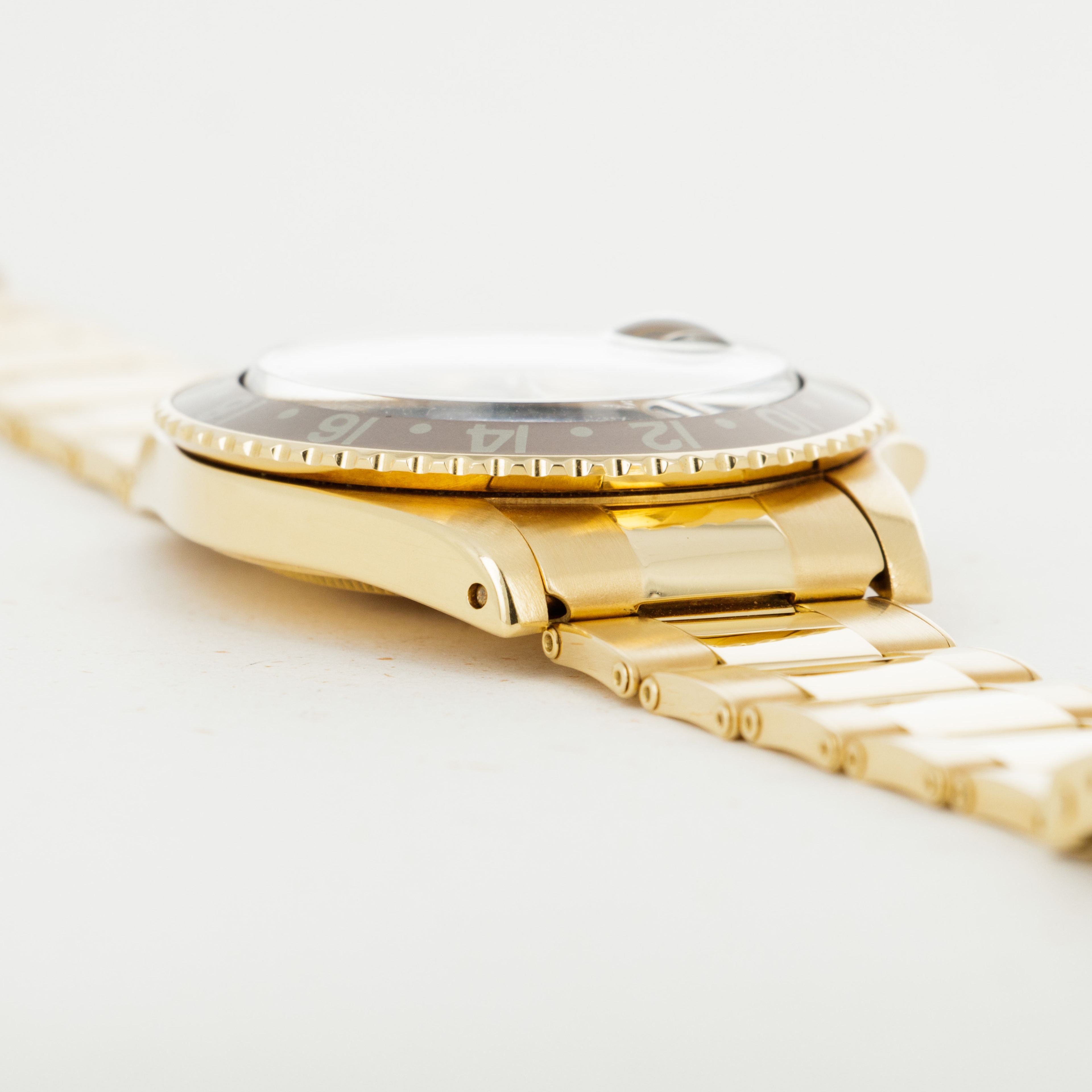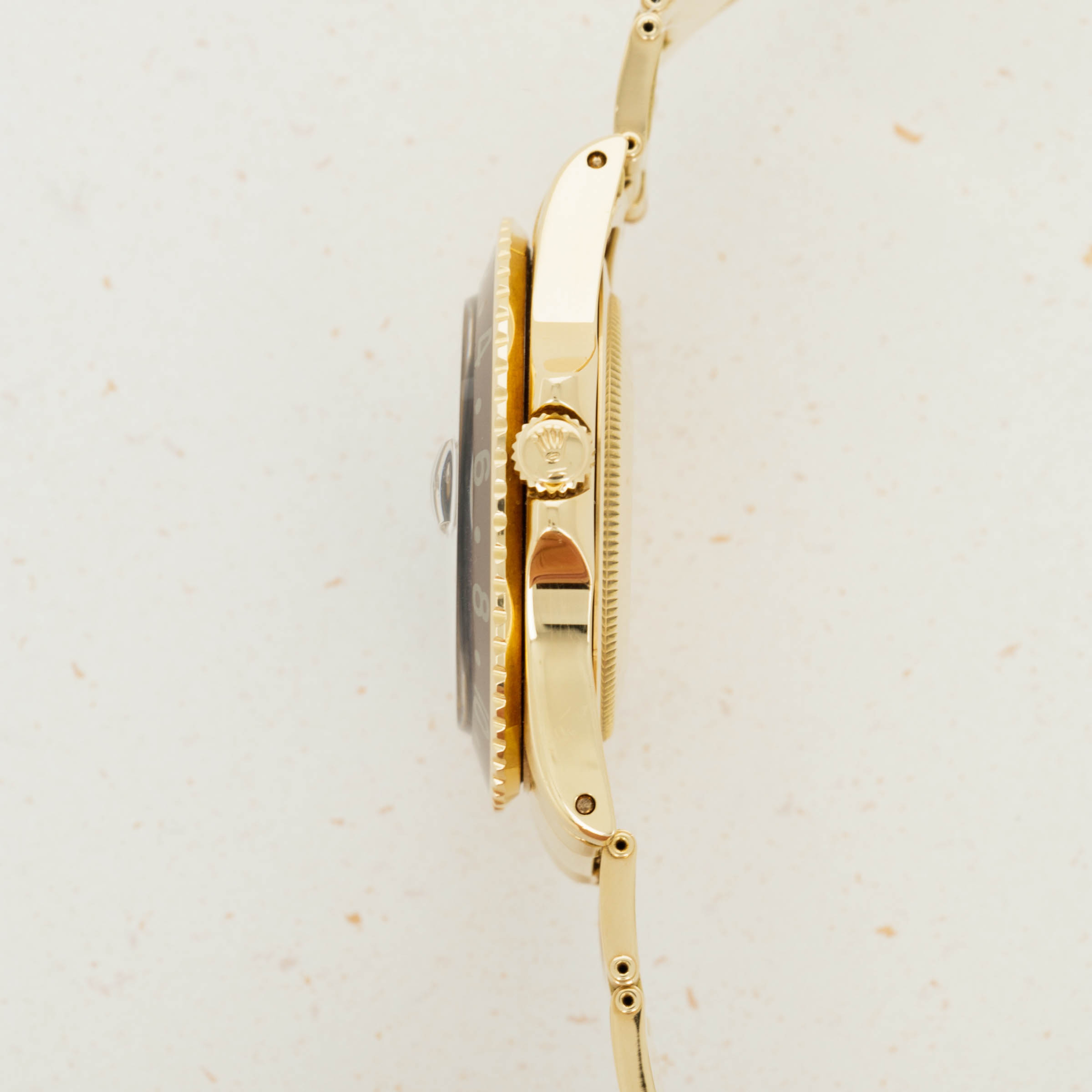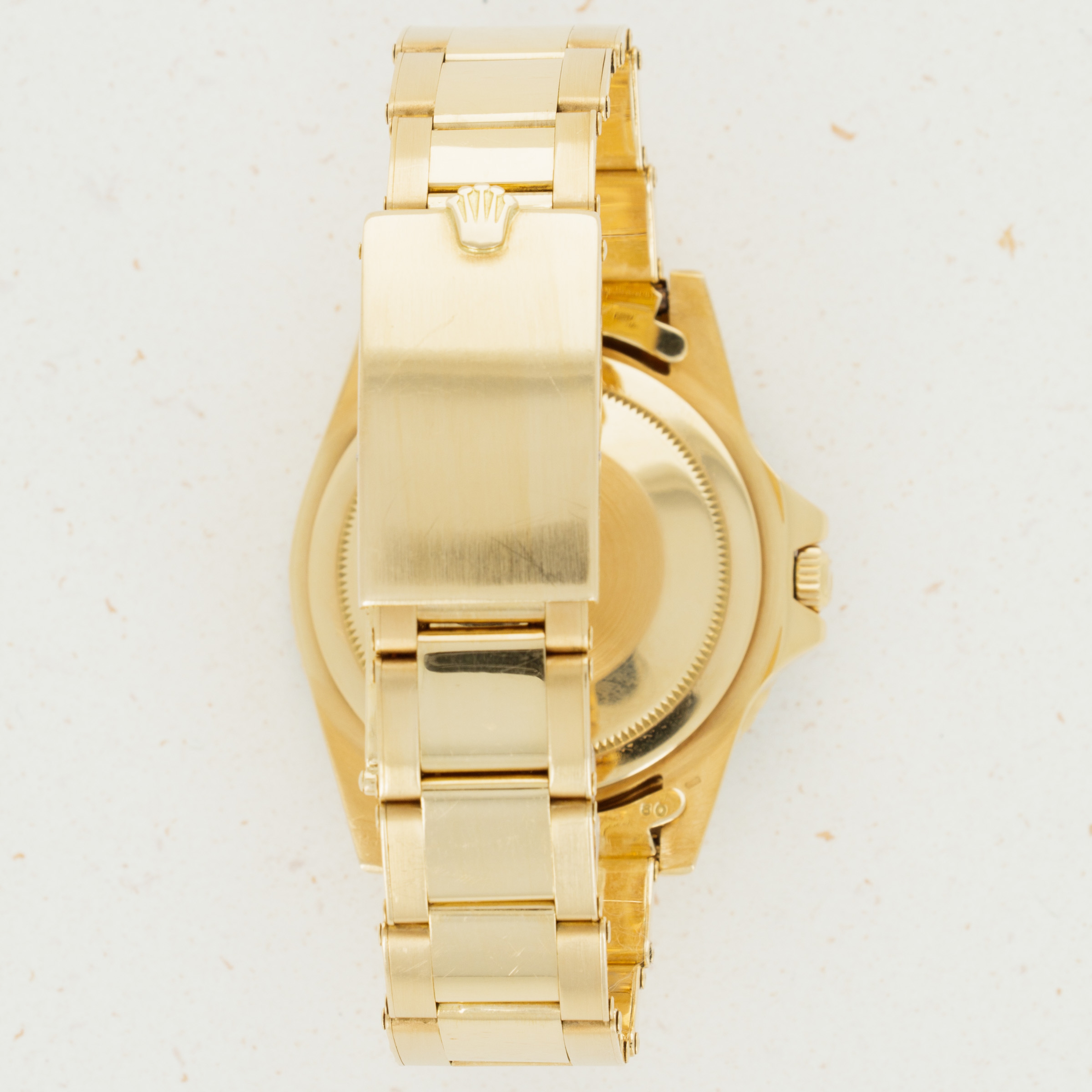 Overall condition is near-mint. Dial appears to be free of any blemishes. Case is very sharp and has strong chamfered edges. Very light surface abrasions present on the bracelet, consistent with careful usage. There is a total of 12 links on the gold oyster band, and it shows little to no stretch.