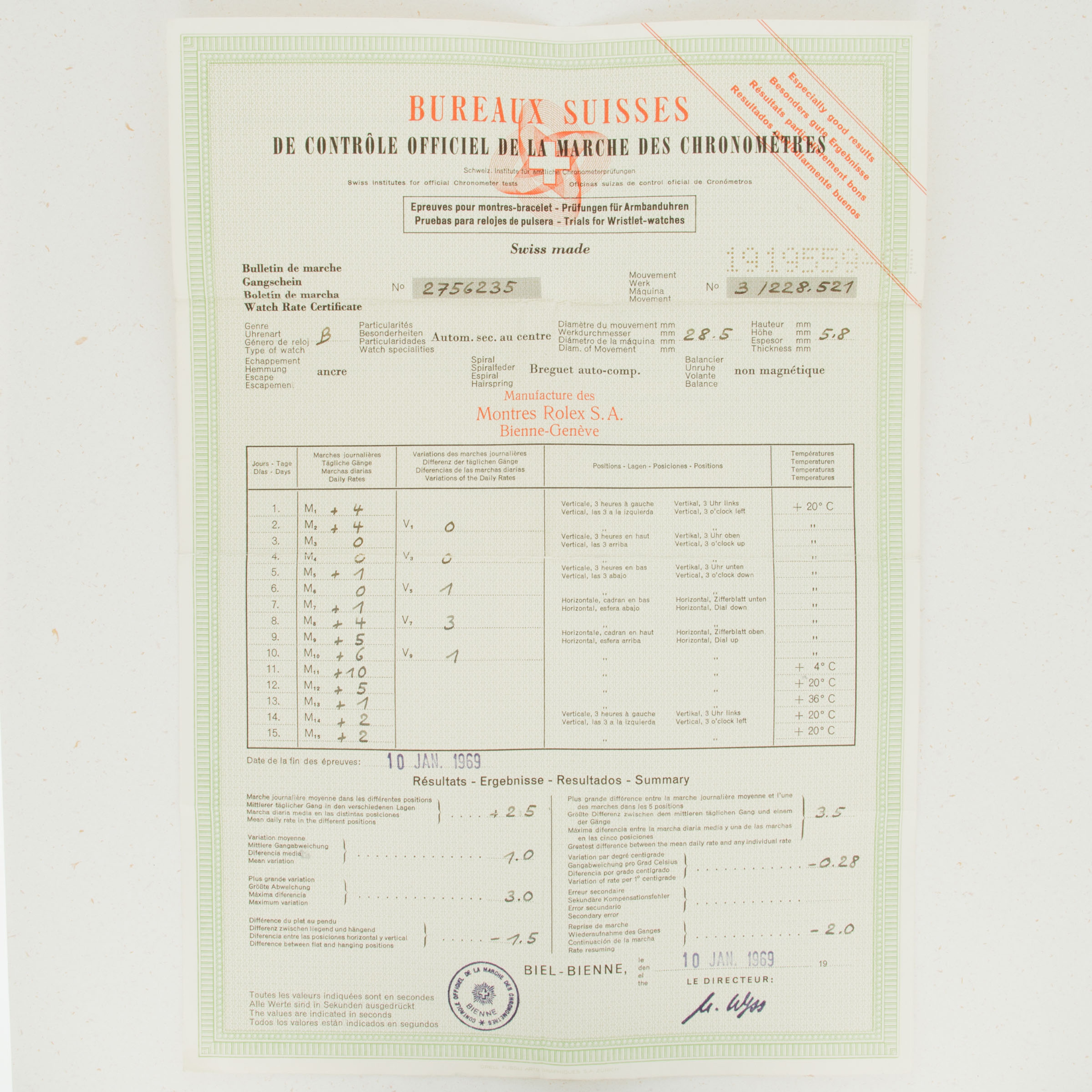 Original Box, Chronometer Certificate and Guarantee