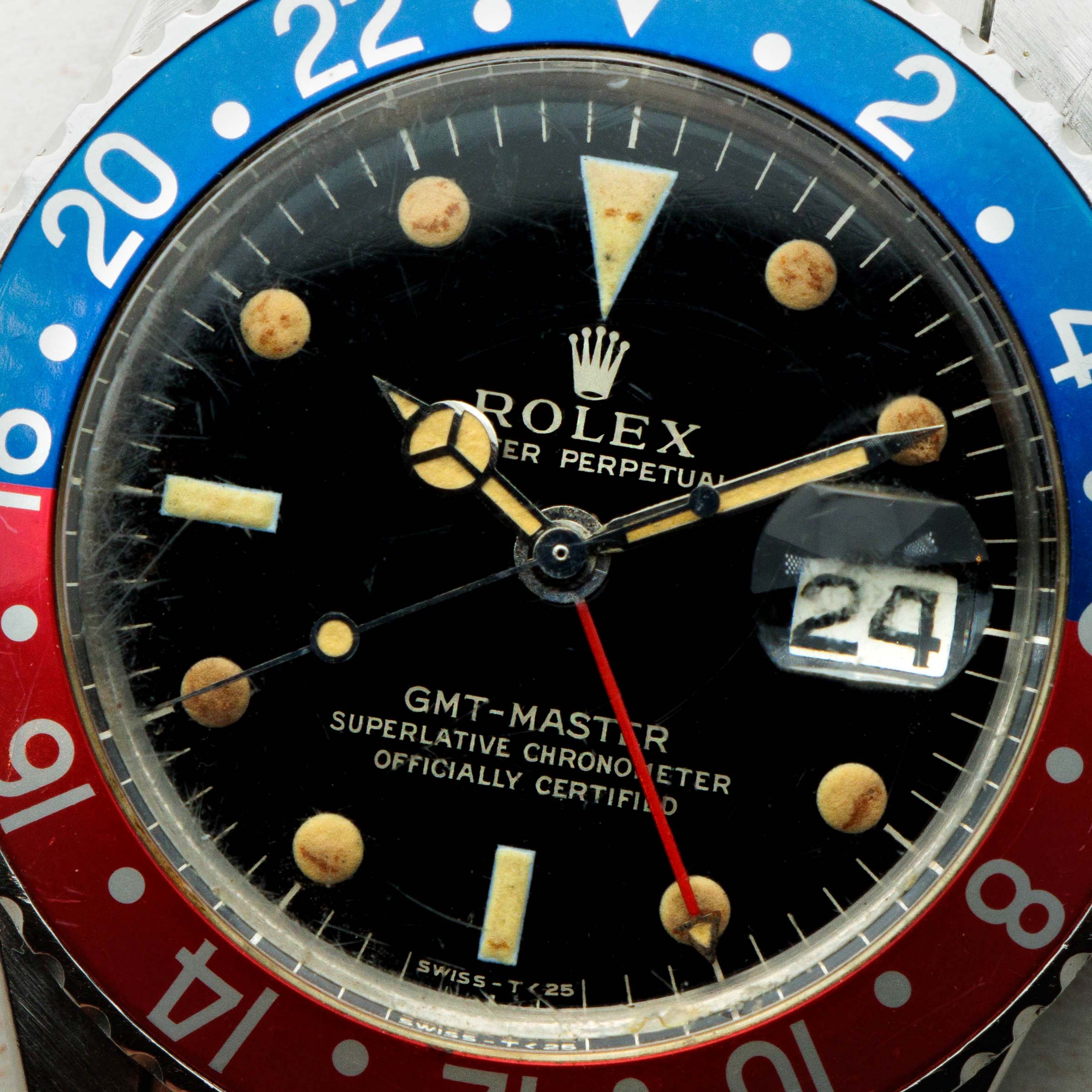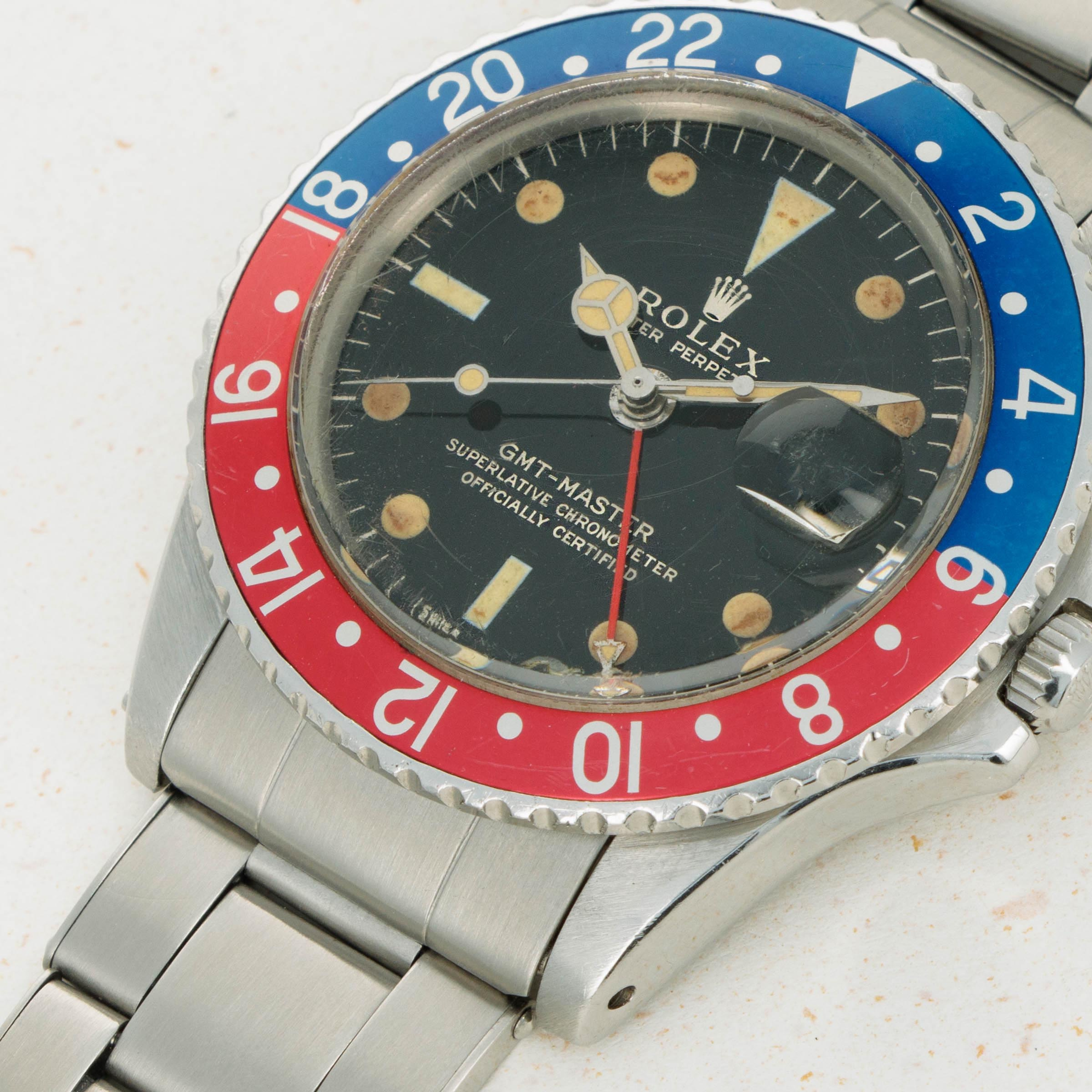 Replacing the original GMT-Master, the ref. 6542 in 1959, the GMT Master ref. 1675 introduced a selection of essential upgrades that increased the GMT-Master's robustness and made it an internally superior timepiece to what had come before. Powered by the new chronometer-spec cal. 1565 movement, the ref. 1675 was the first GMT-Master family member to receive the coveted "Superlative Chronometer Officially Certified" inscription on its dial. Furthermore, it introduced the case-altering, and now standard issue, crown guards to protect its winding crown from impacts. Its crown guards had a pointed shape from 1959 until 1965, which is when they changed to a flat, or square profile. Produced until 1980, the GMT-Master ref. 1675 is the longest-running GMT-Master model Rolex has ever produced and as such, is the quintessential reference with the longest history for Rolex collectors to enjoy and connect with.