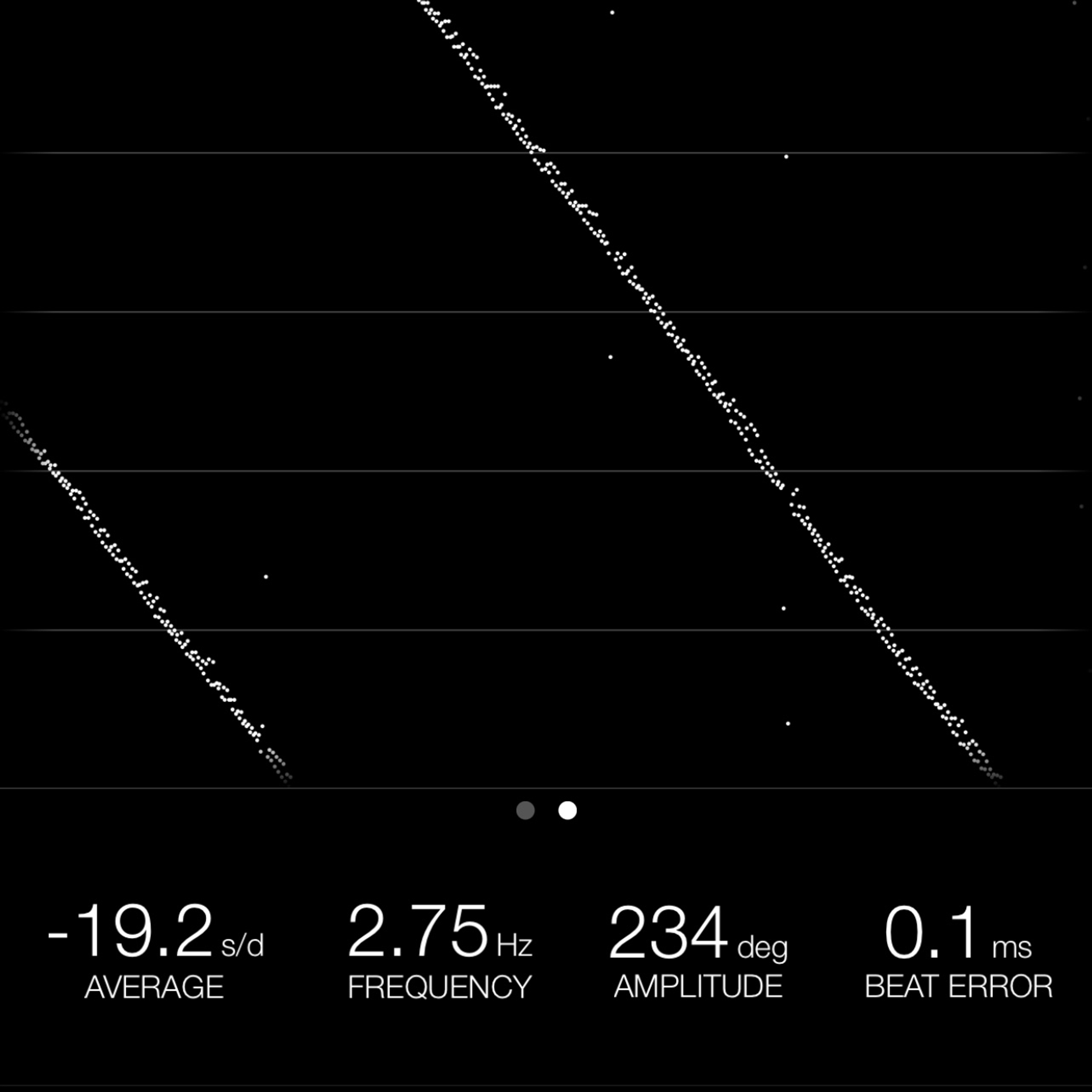 This reading was taken (crown down) with a ONEOF Accuracy Boutique Edition timing machine at time of cataloging. It is provided as a courtesy only, and shall not be construed as a warranty or guarantee of any kind. Please refer to our terms and conditions of sale for more information.