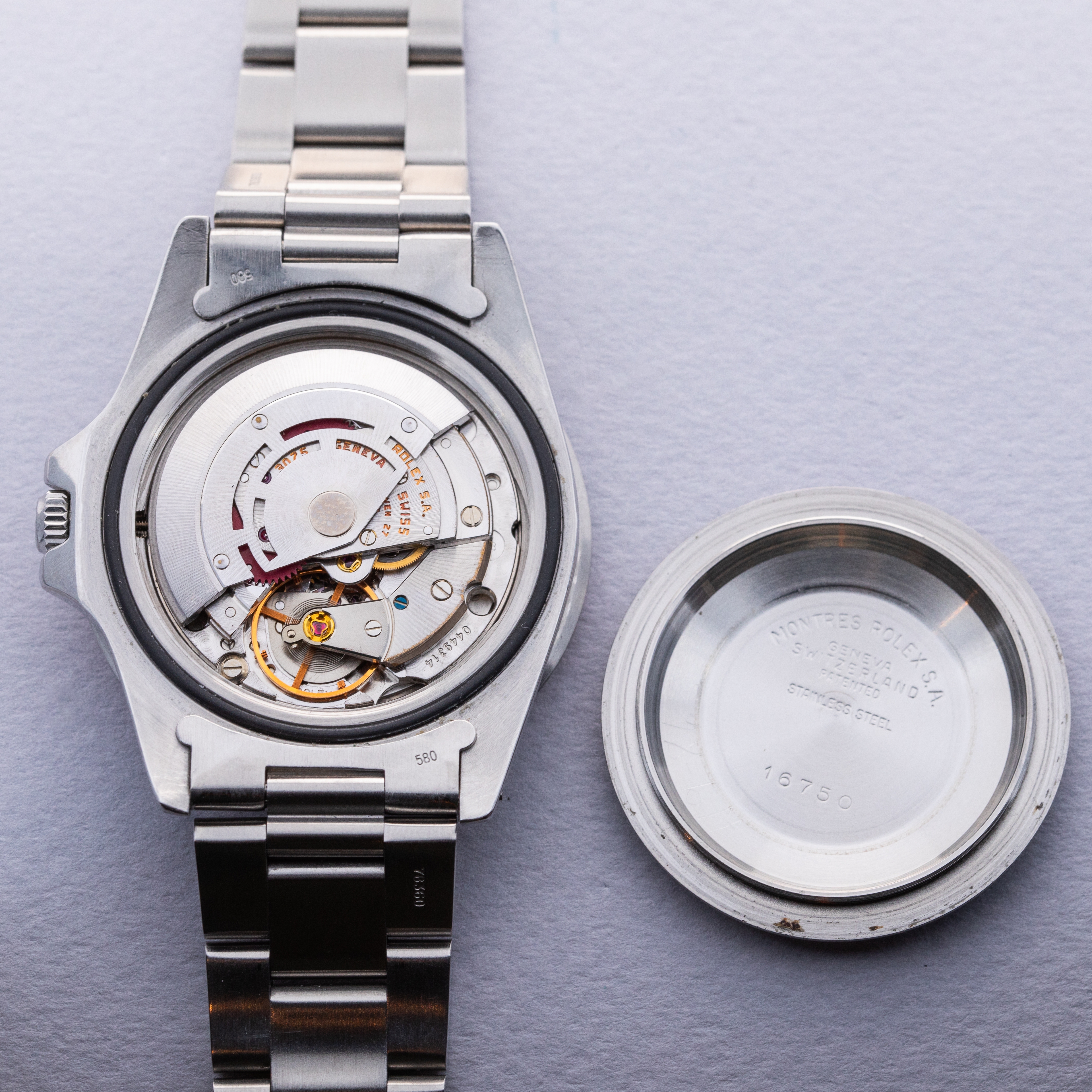 Derived from the ref. 1675 which replaced the ref. 6542 in 1959, the Rolex GMT Master ref. 16750 was released in 1980 and continued where its predecessor left off. Featuring the crown guards and "Superlative Chronometer Officially Certified" inscription that the ref. 1675 introduced to the collection, the new ref. 16750 also introduced the cal. 3075 movement to the collection which featured the not-yet-seen quickset feature, and 100m water resistance - double the previous models, and still the collection's standard to this day. Exiting production around 1988, the ref. 16750 is one of the rarer GMT variants, with some enjoying over 20 years of production. Combined with its short 7-year production run and given that it is the very last of the acrylic crystal GMT-Master references, the ref. 16750 is a highly sought-after timepiece with an iconic heritage and some of watchmaking's modern superstar timepieces existing as its descendants.