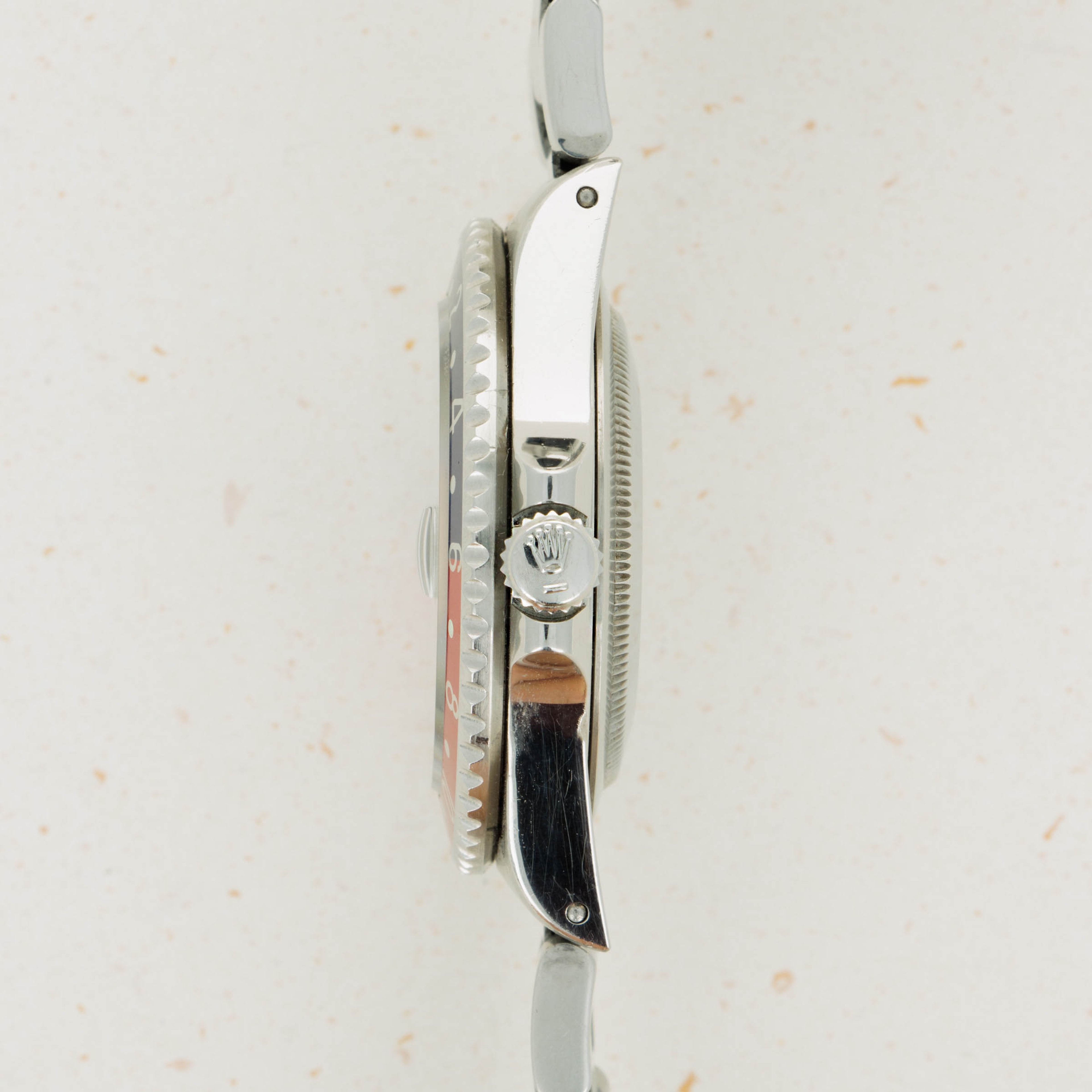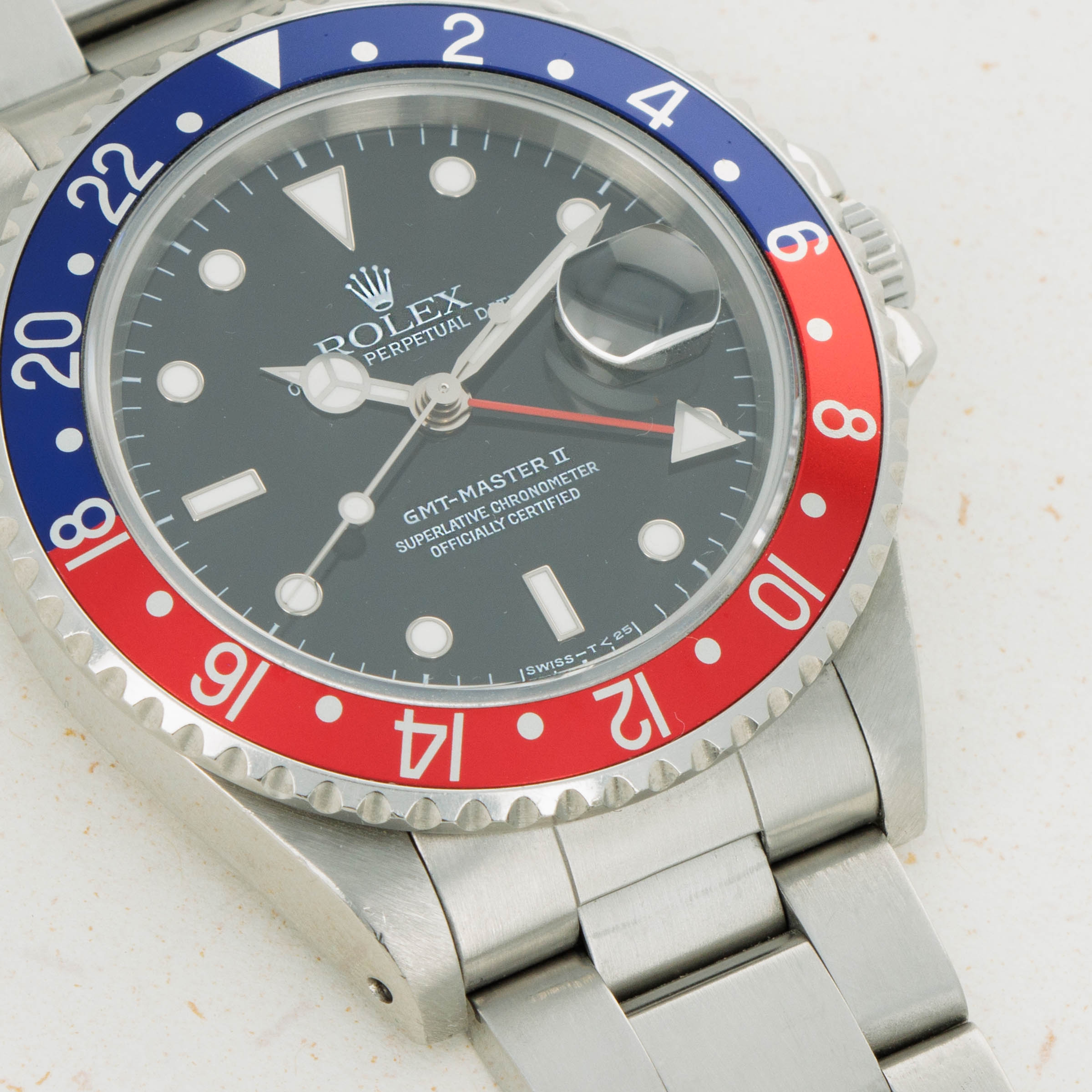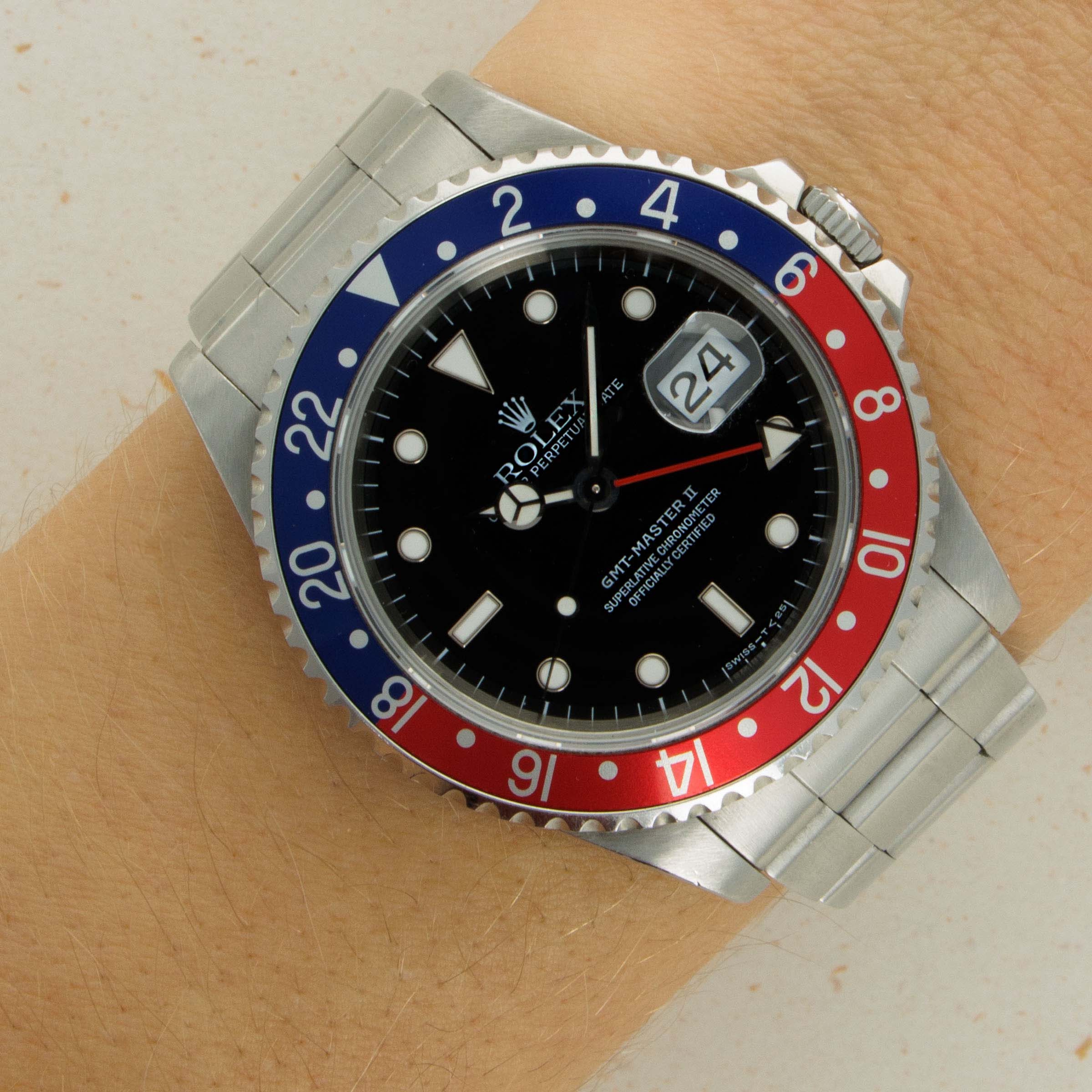 With its bezel devoid of any form of wear and tear, this example's iconic blue and red "Pepsi" bezel insert retains its deep rich color and lacks any surface abrasions that might interrupt its beauty.