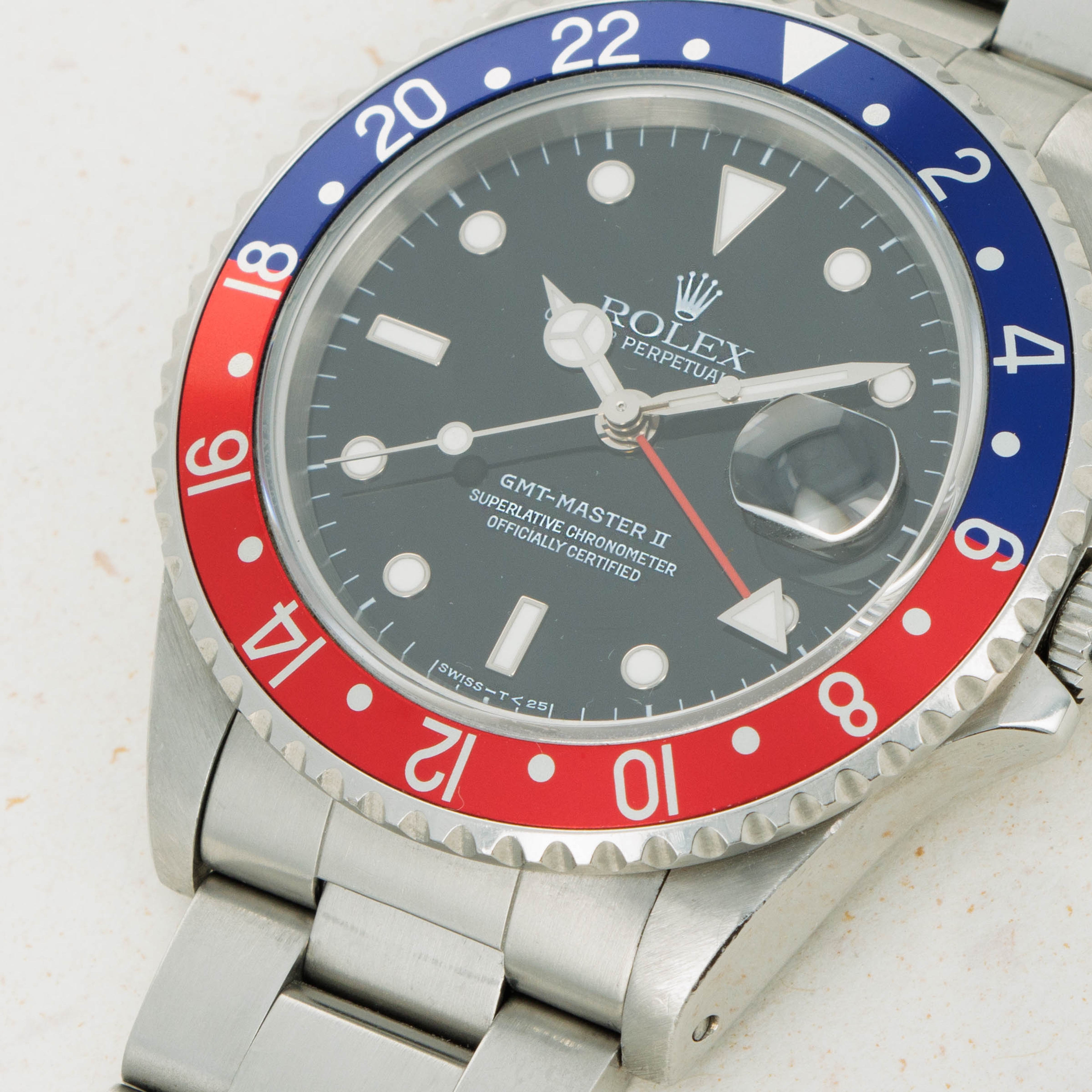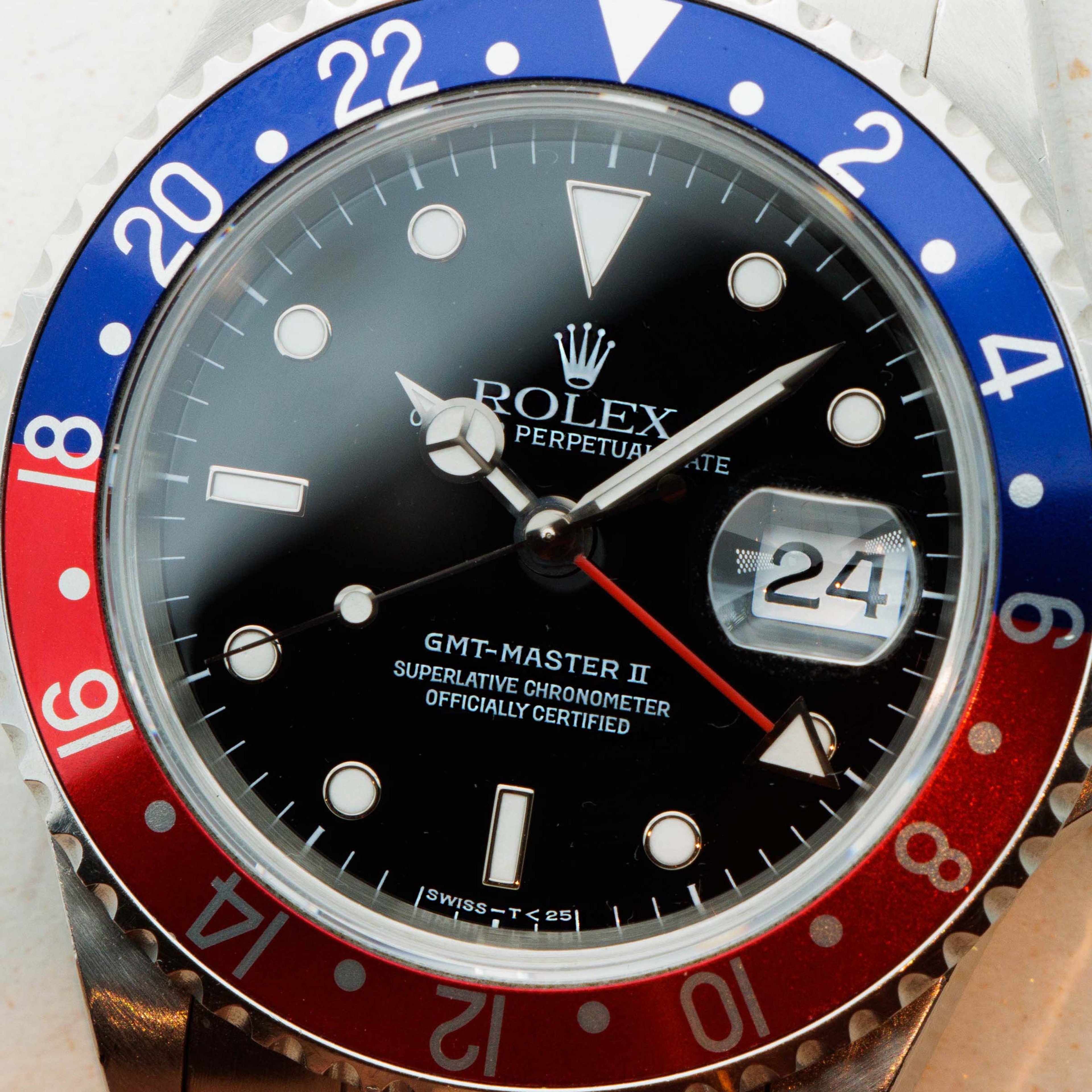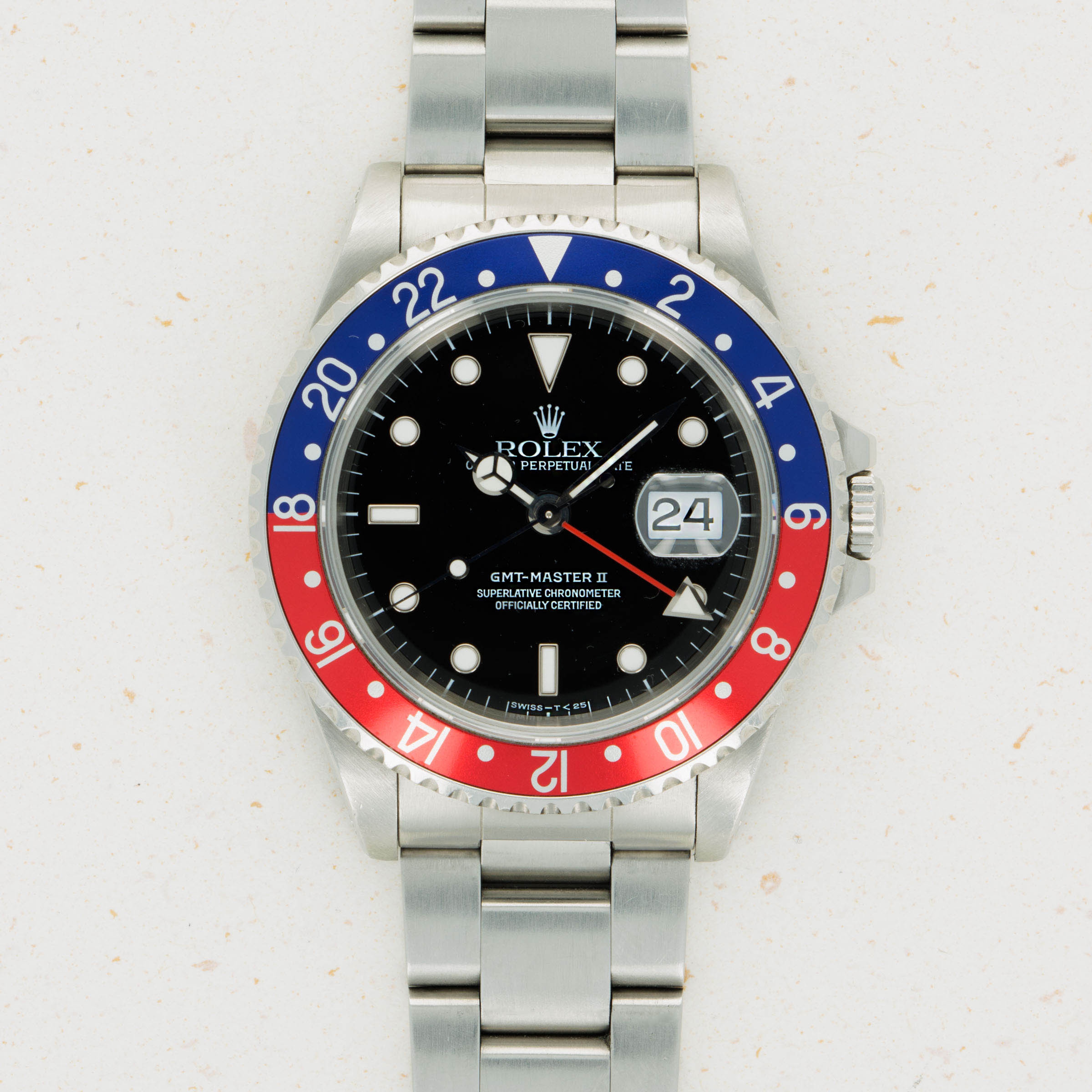 With its bezel devoid of any form of wear and tear, this example's iconic blue and red "Pepsi" bezel insert retains its deep rich color and lacks any surface abrasions that might interrupt its beauty.