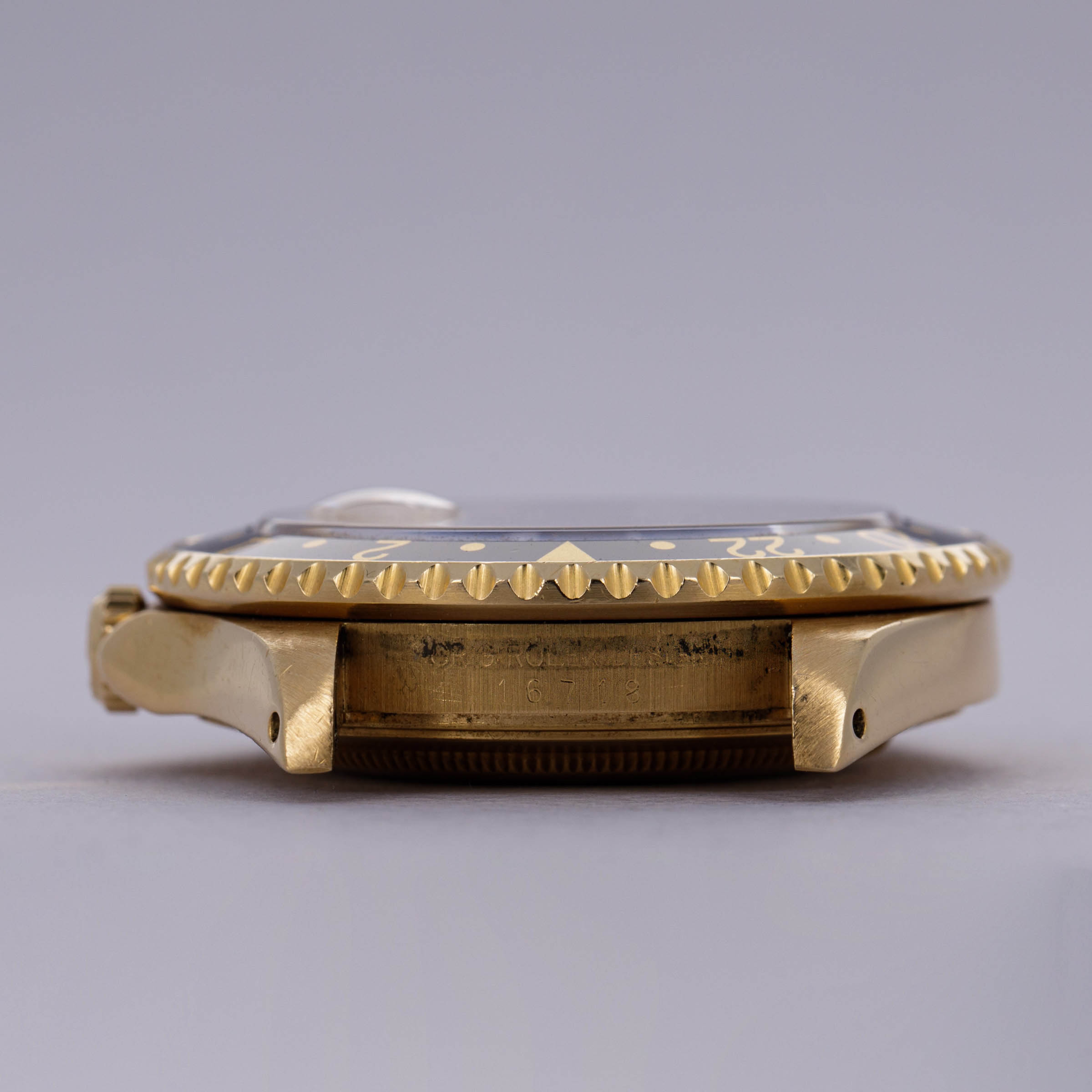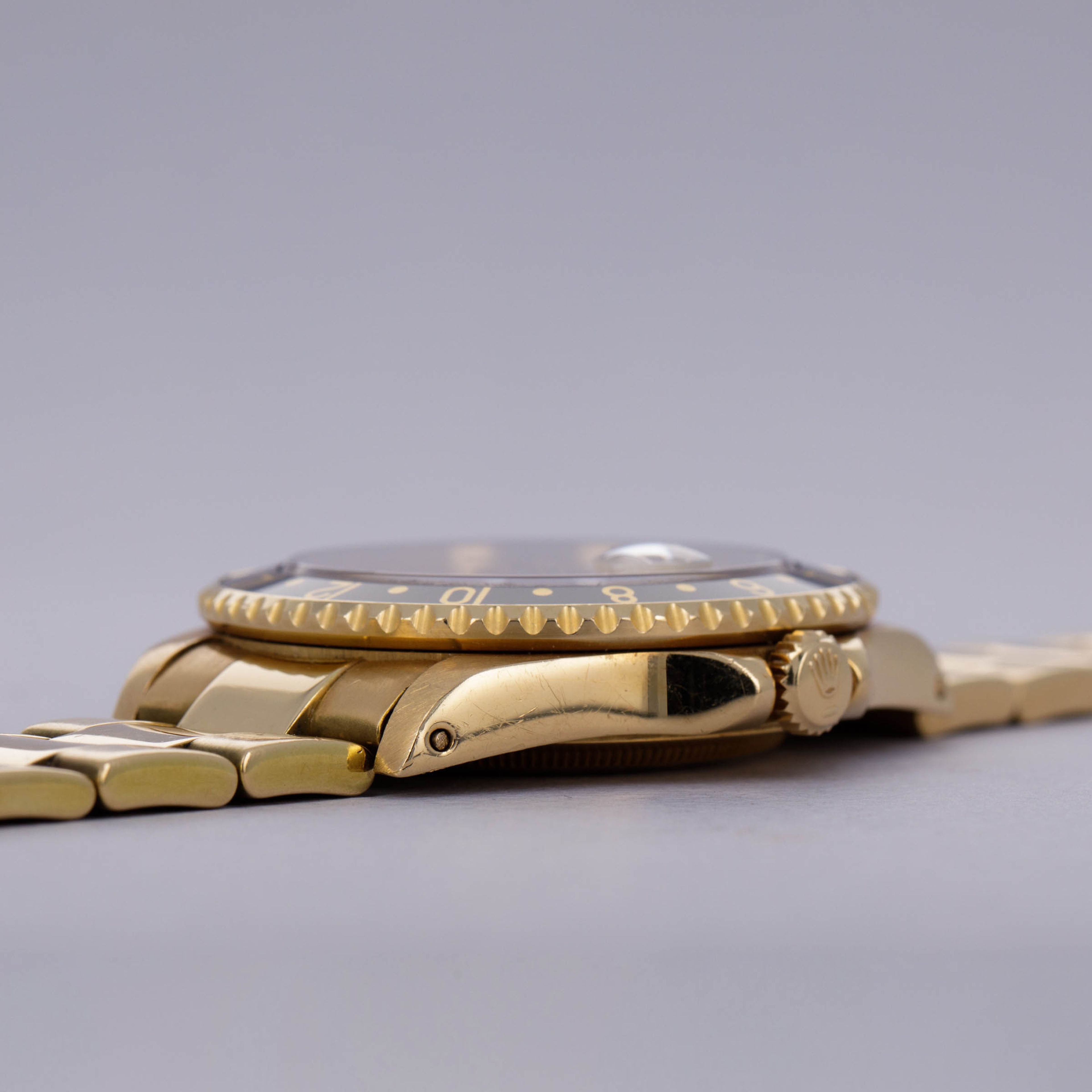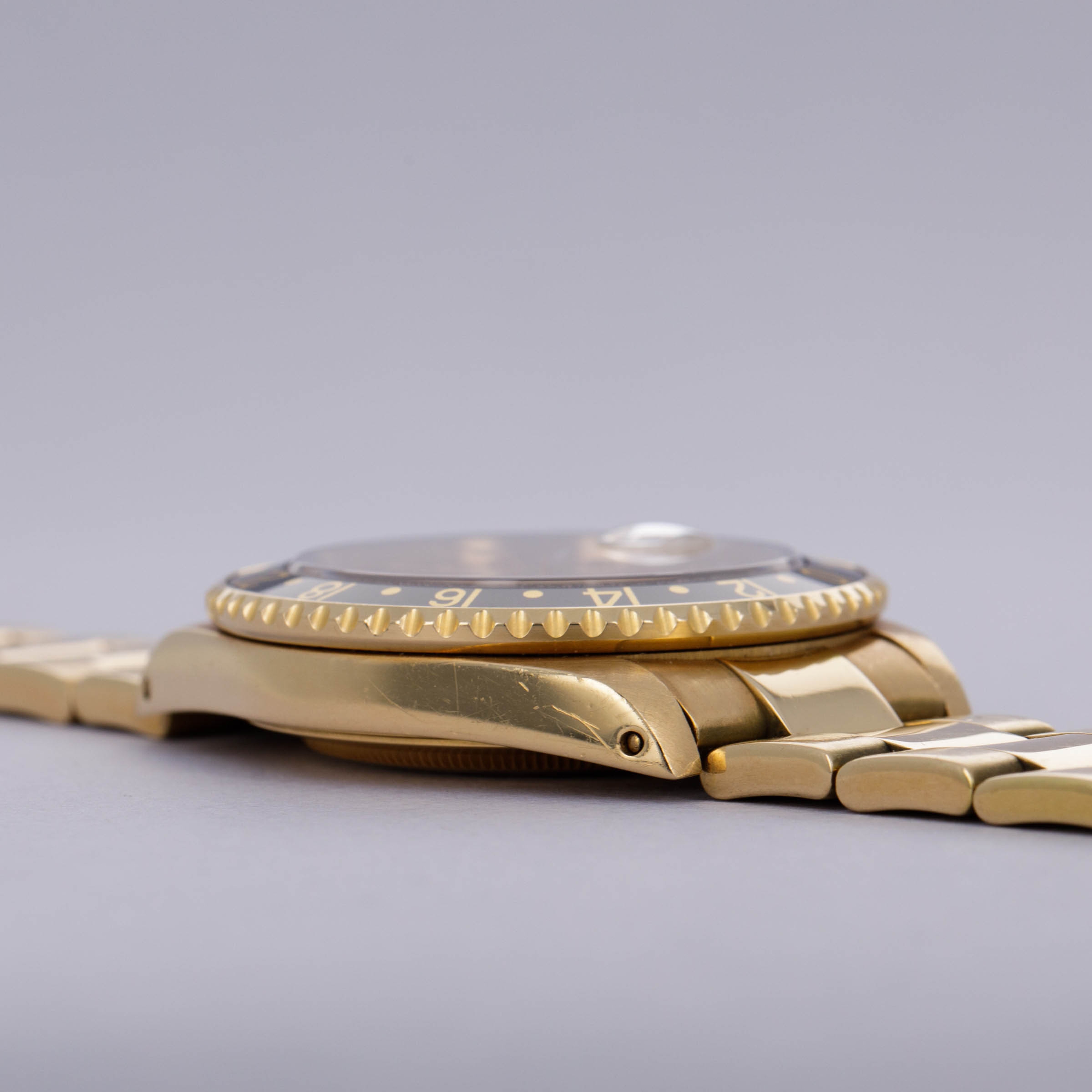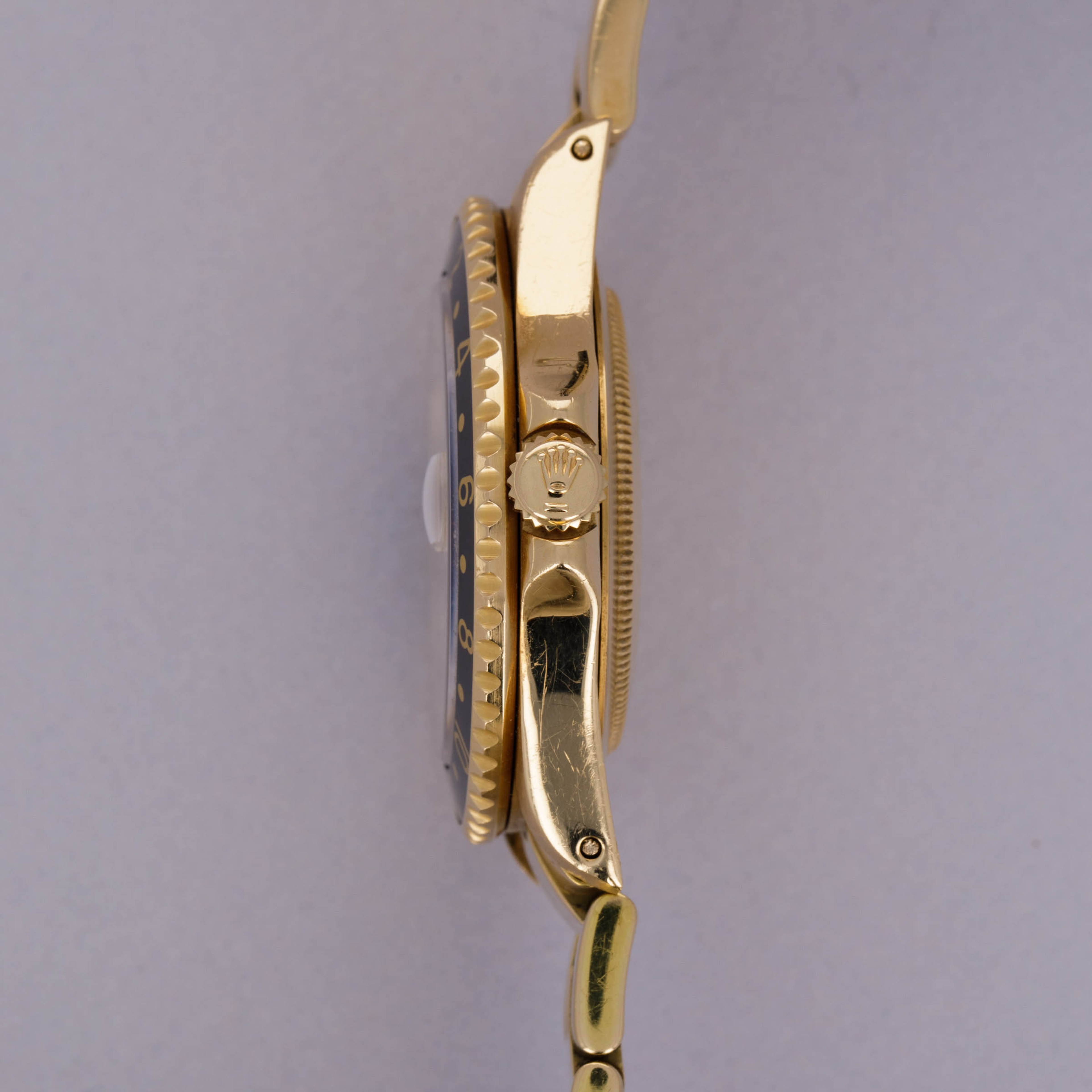Combining Rolex's esteemed talents as a watchmaker and jeweler in equal measure, this Serti dial 18kt yellow gold GMT-Master II features everything that a Rolex collector might want from its golden construction to its practical complication to its gem-set Serti dial.