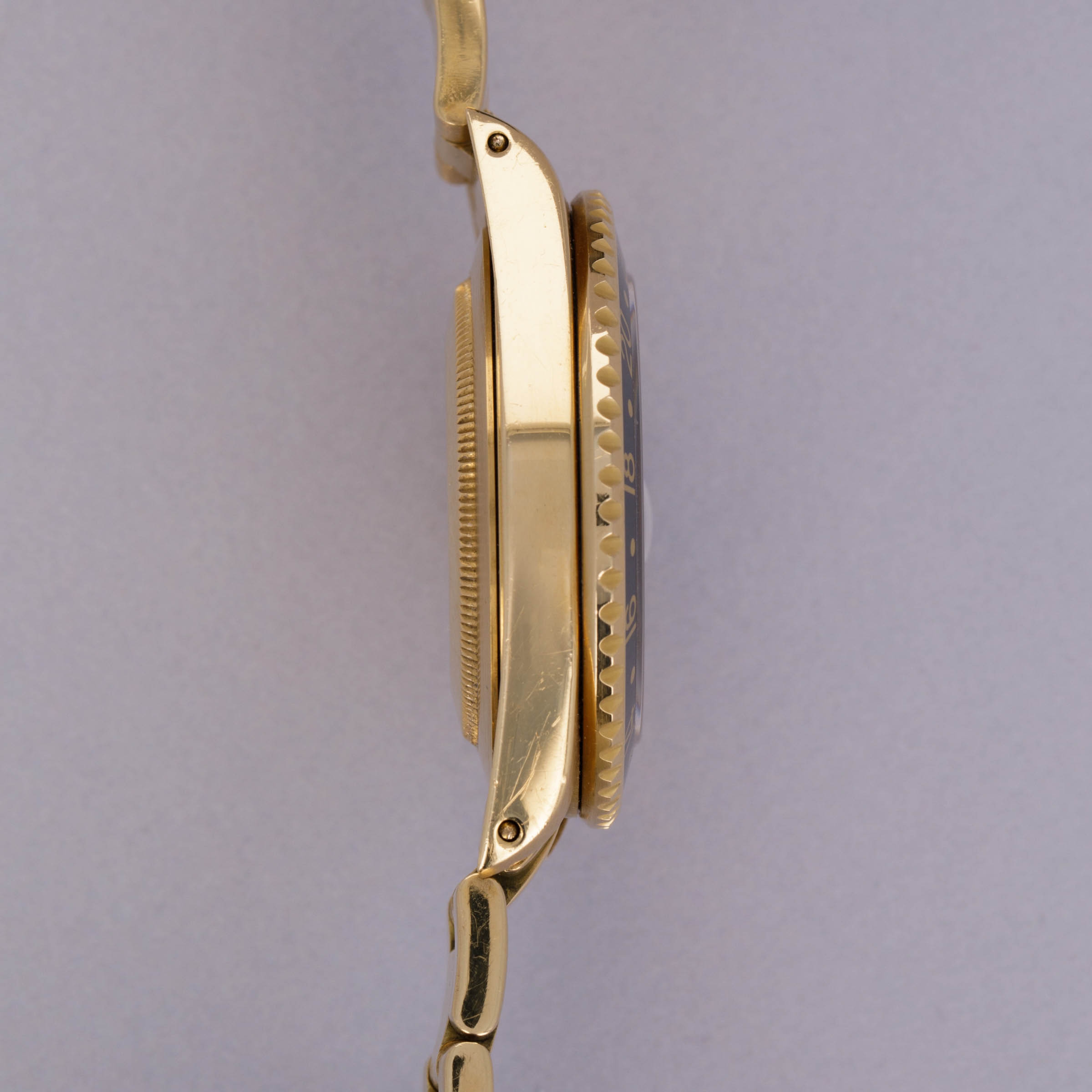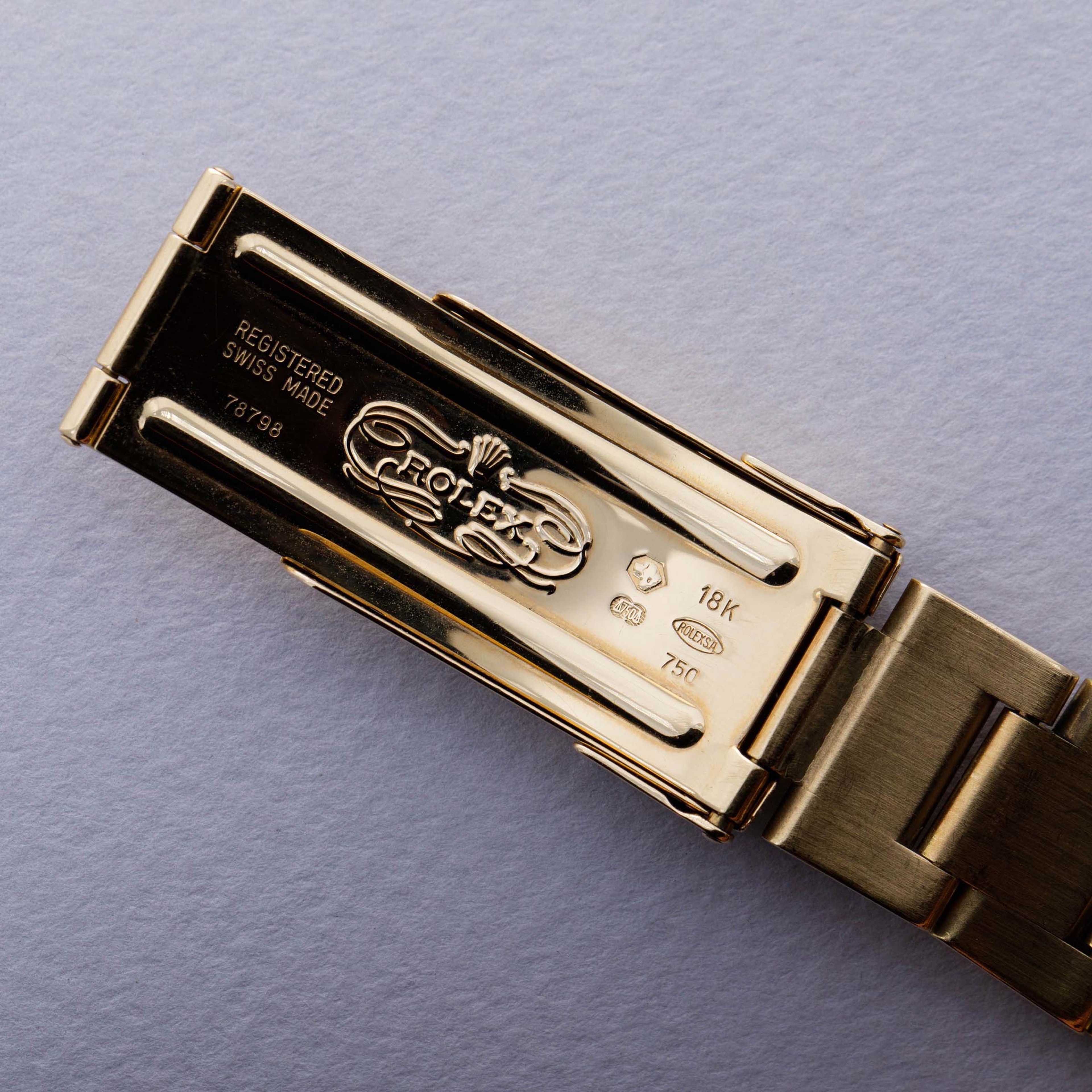 Speaking to the luxury of its gem-set dial, the ref. 16718's 18t yellow gold case and bracelet combine to propel this timepiece into the realm of the truly extravagant.
