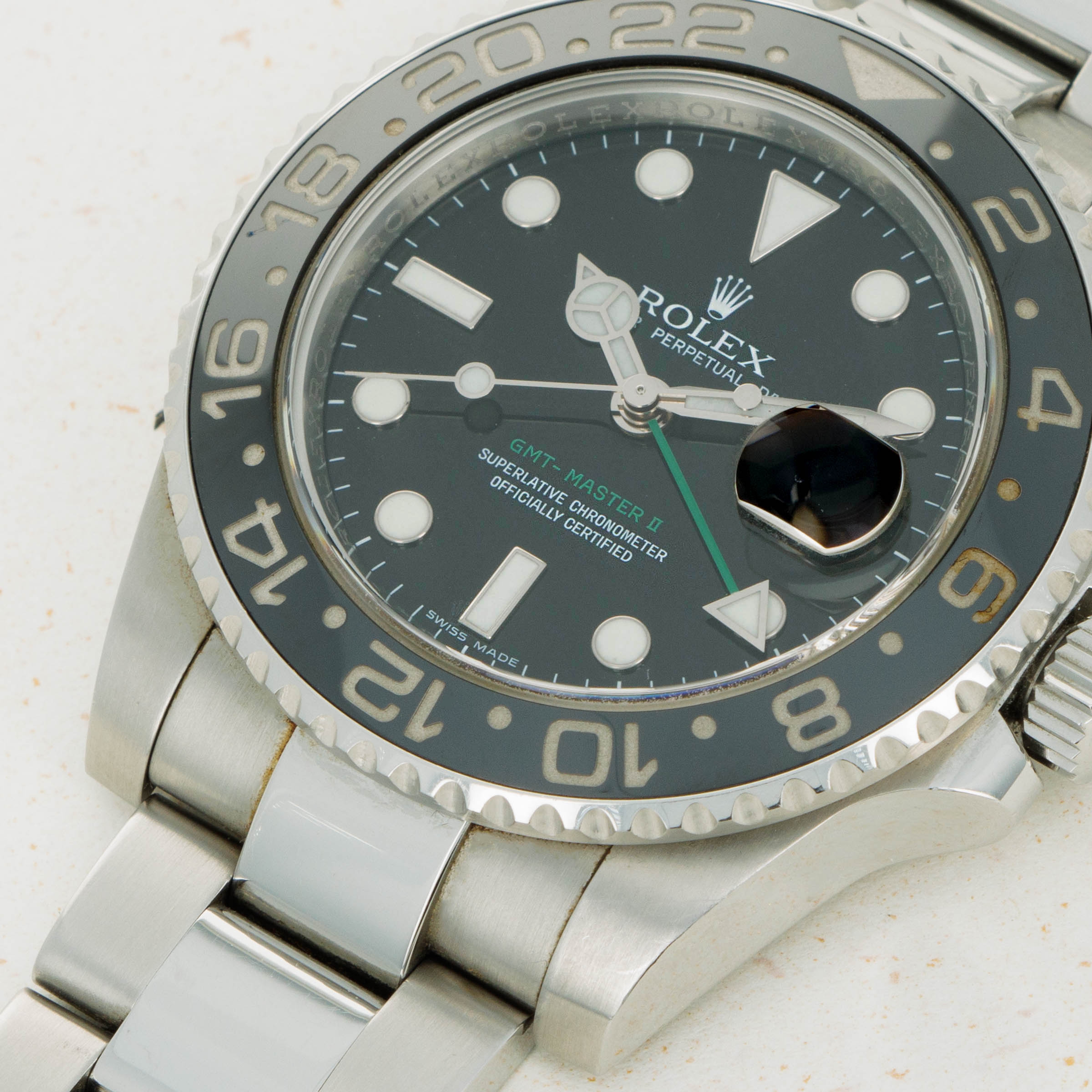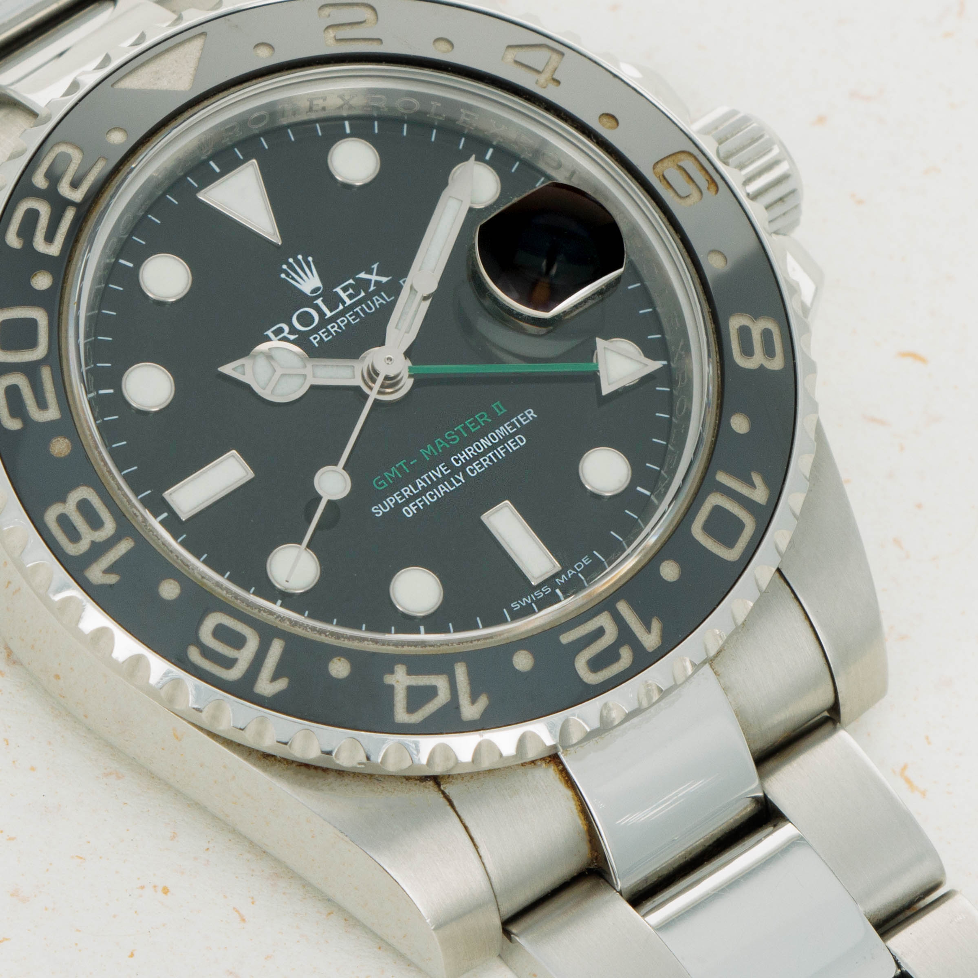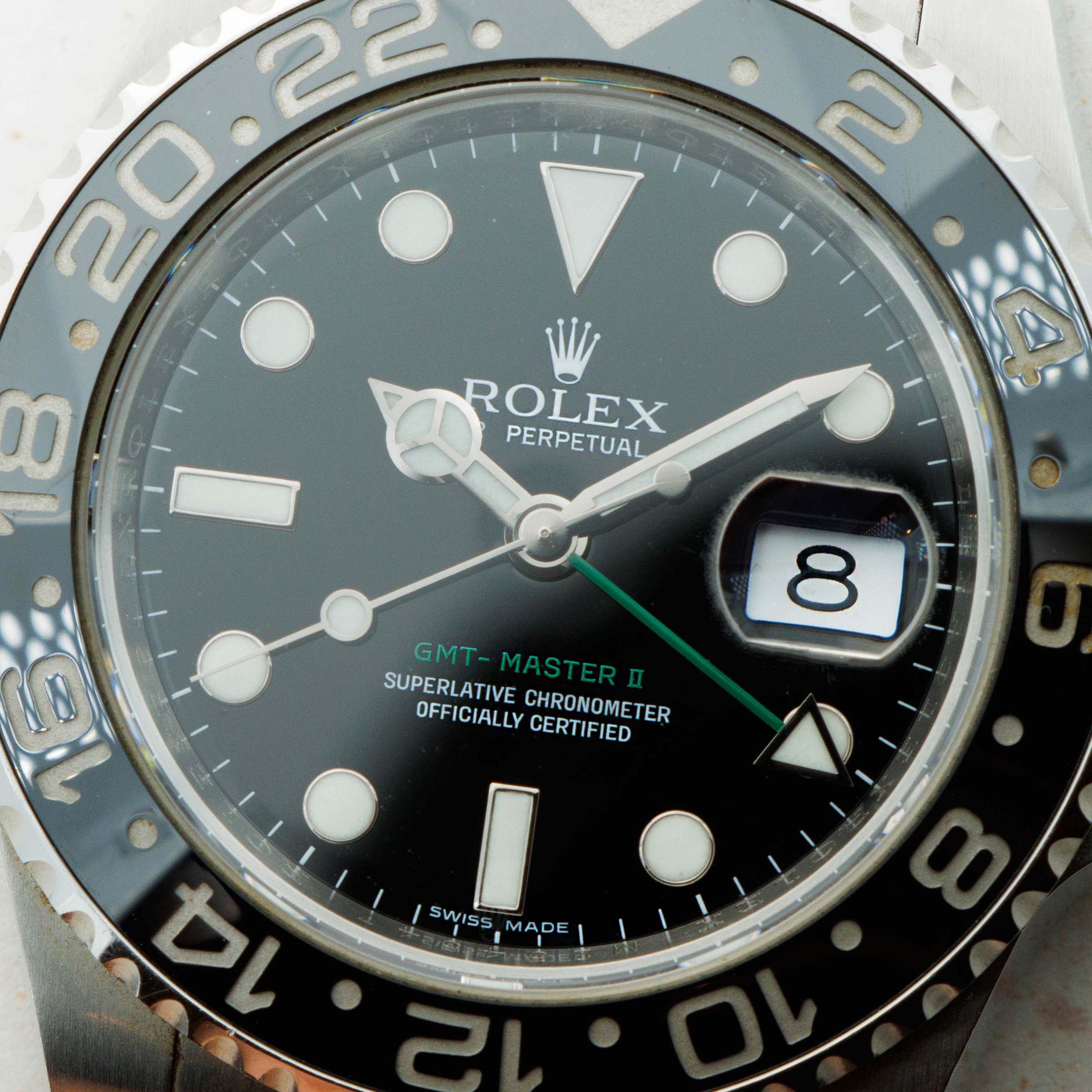 An important milestone within the GMT-Master collection's history, the ref. 116710LN, with its ceramic bezel, marked the first time Rolex would introduce a new material for their bezel inserts since 1956, when aluminum was introduced to replace bakelite.