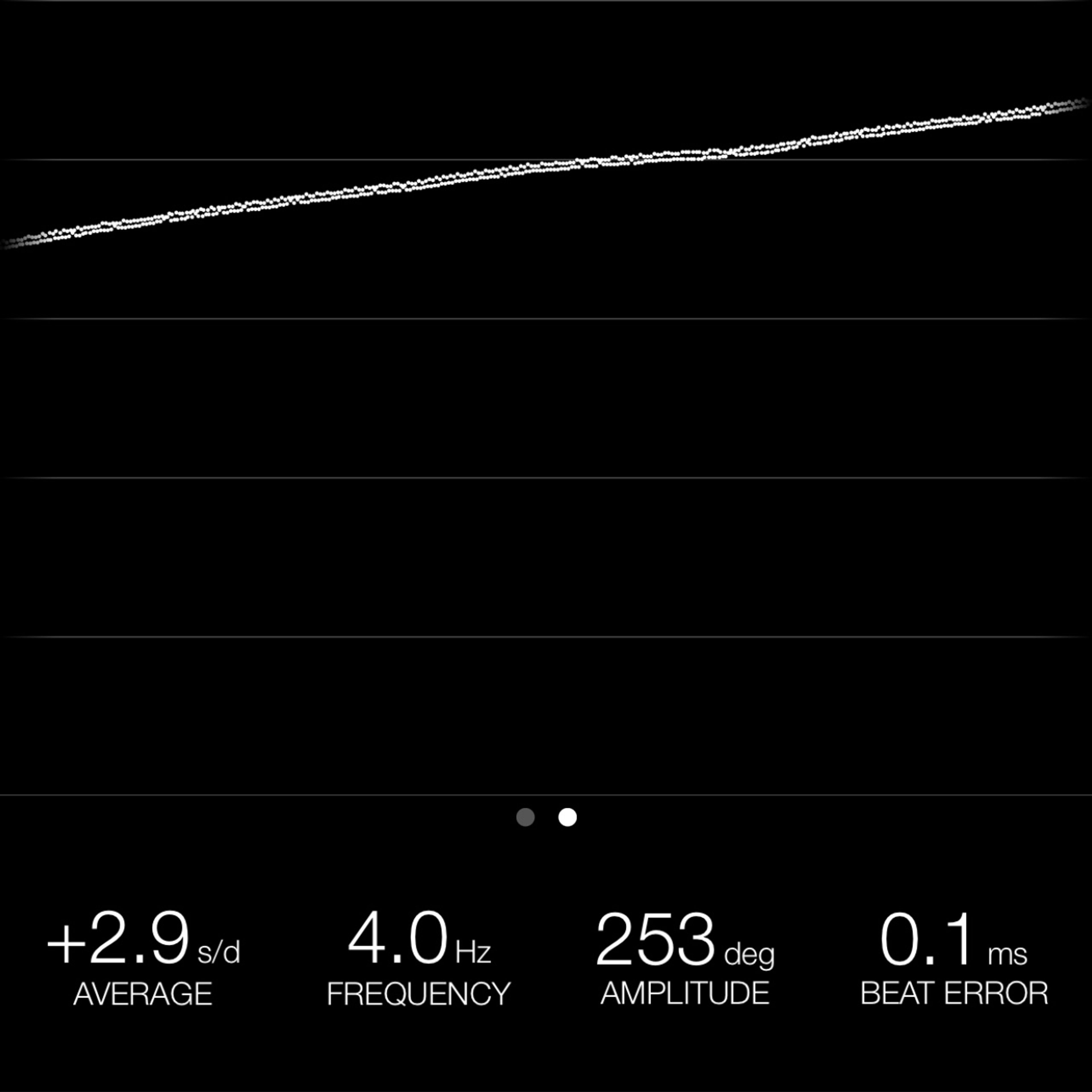 This reading was taken (crown down) with a ONEOF Accuracy Boutique Edition timing machine at time of cataloging. It is provided as a courtesy only, and shall not be construed as a warranty or guarantee of any kind. Please refer to our terms and conditions of sale for more information.