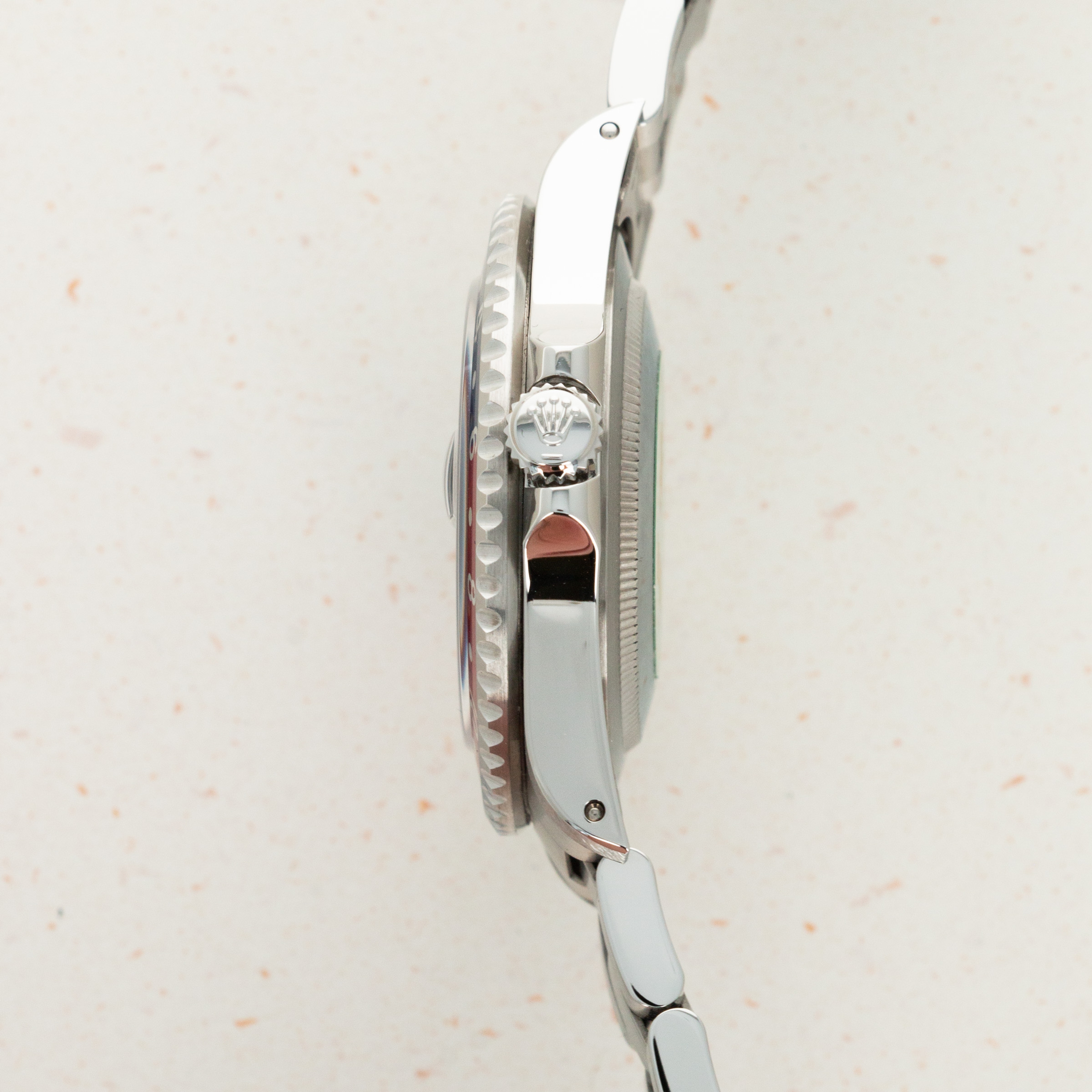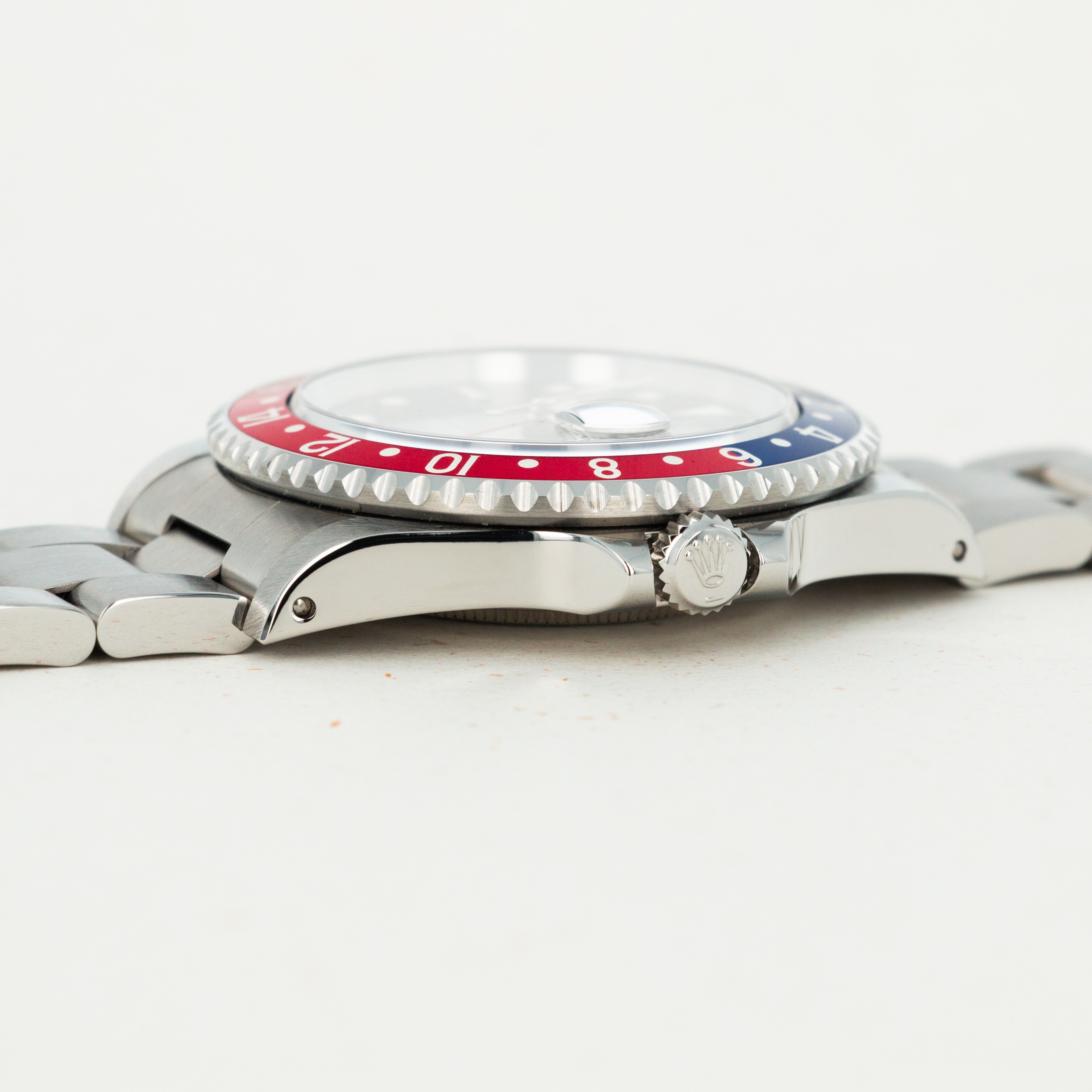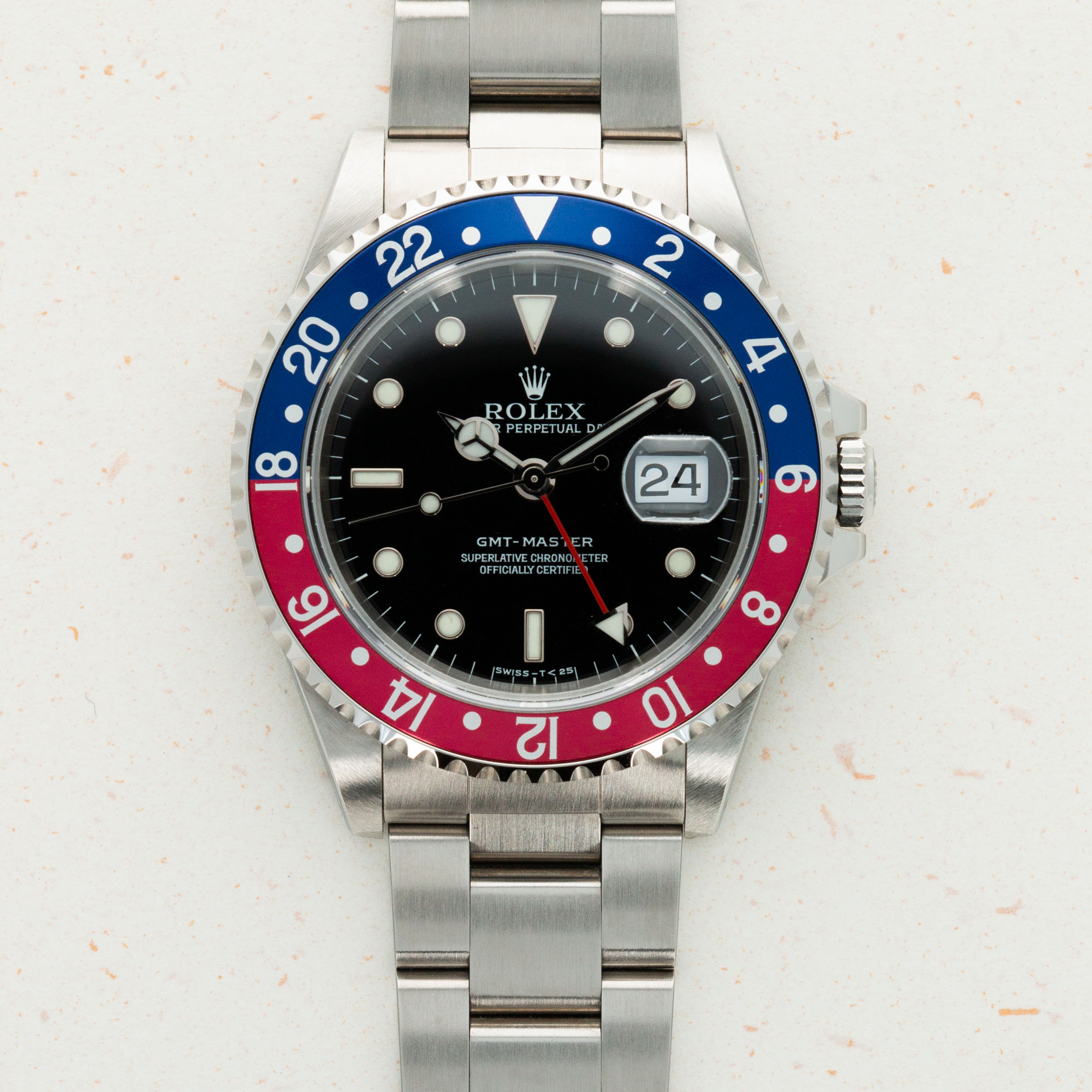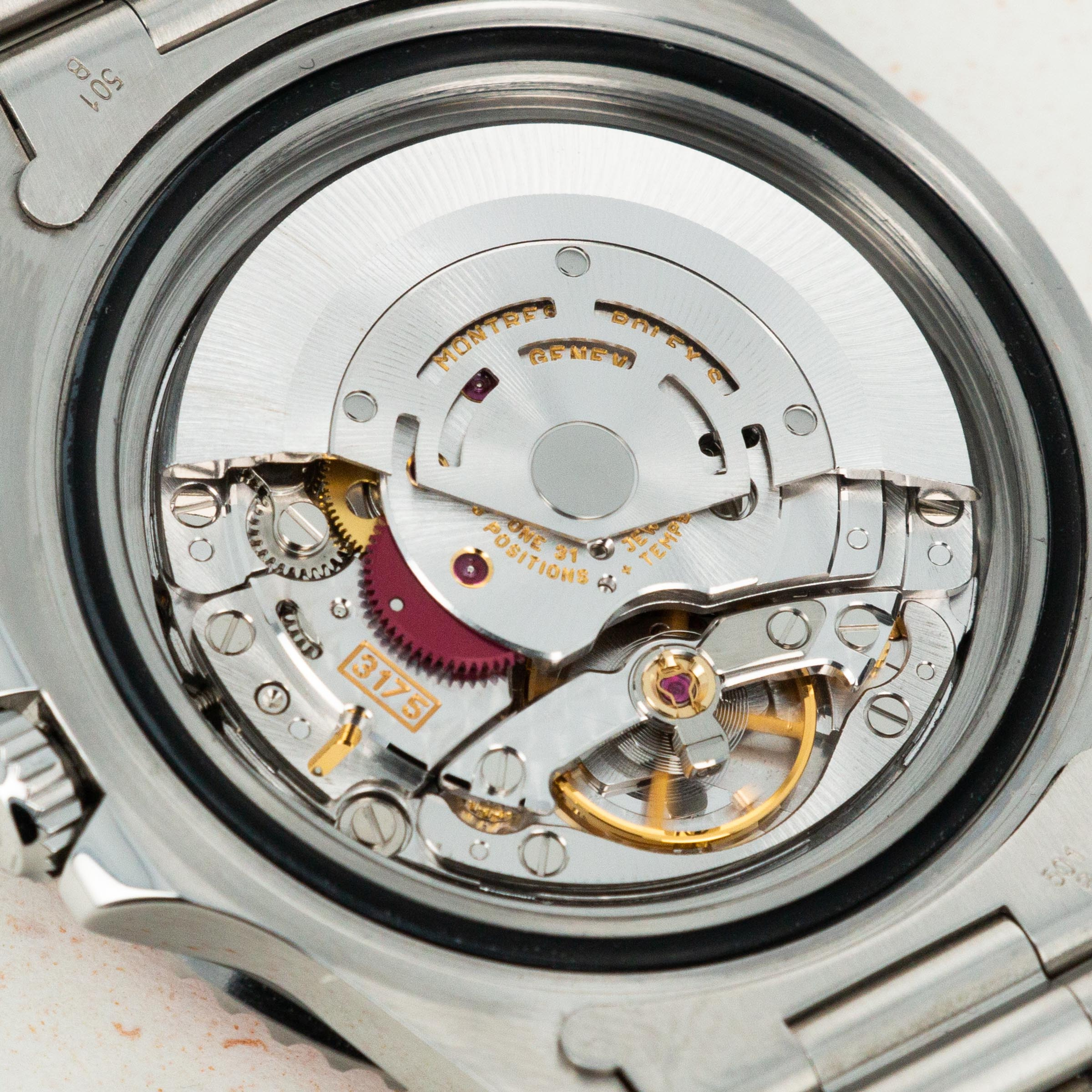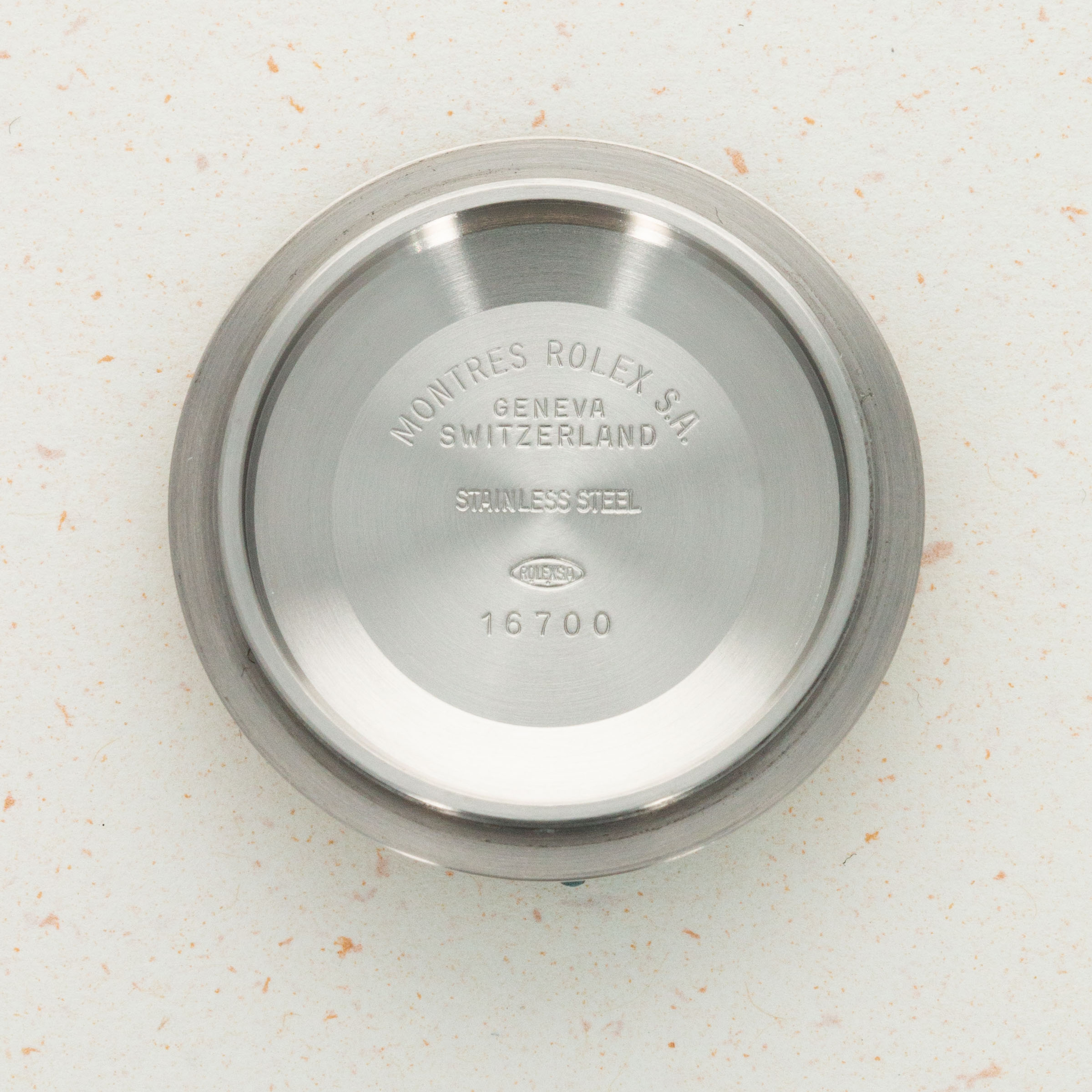 Released in 1988, the Rolex GMT-Master ref. 16700 replaced the outgoing ref. 16760 "Fat Lady," as collectors longed for a slimmed-down GMT-Master without the Fat lady's thicker case, beefier lugs, and larger design. Discontinued in 1999, the ref. 16700 was produced alongside the modern GMT-Master II and its successor, the GMT-Master ref. 16710, which was released a year after in 1989. As both of these options were more technically advanced than the ref. 16700 that we have here, the ref. 16700 failed to perform as well as it might have, with collectors spending the extra money to buy either the ref. 16710 instead, or the GMT-Master II when it was released. This has enabled the ref. 16700 to enjoy superior demand within the modern market as collectors seek out this now scarce timepiece. Offered with either an all-black bezel or the iconic red and blue Pepsi bezel, the ref. 16700 is the quintessential GMT-Master with its elegant design and vintage traits such as an aluminum bezel insert, hollow end links, hollow center links, and tritium lume (until 1997).