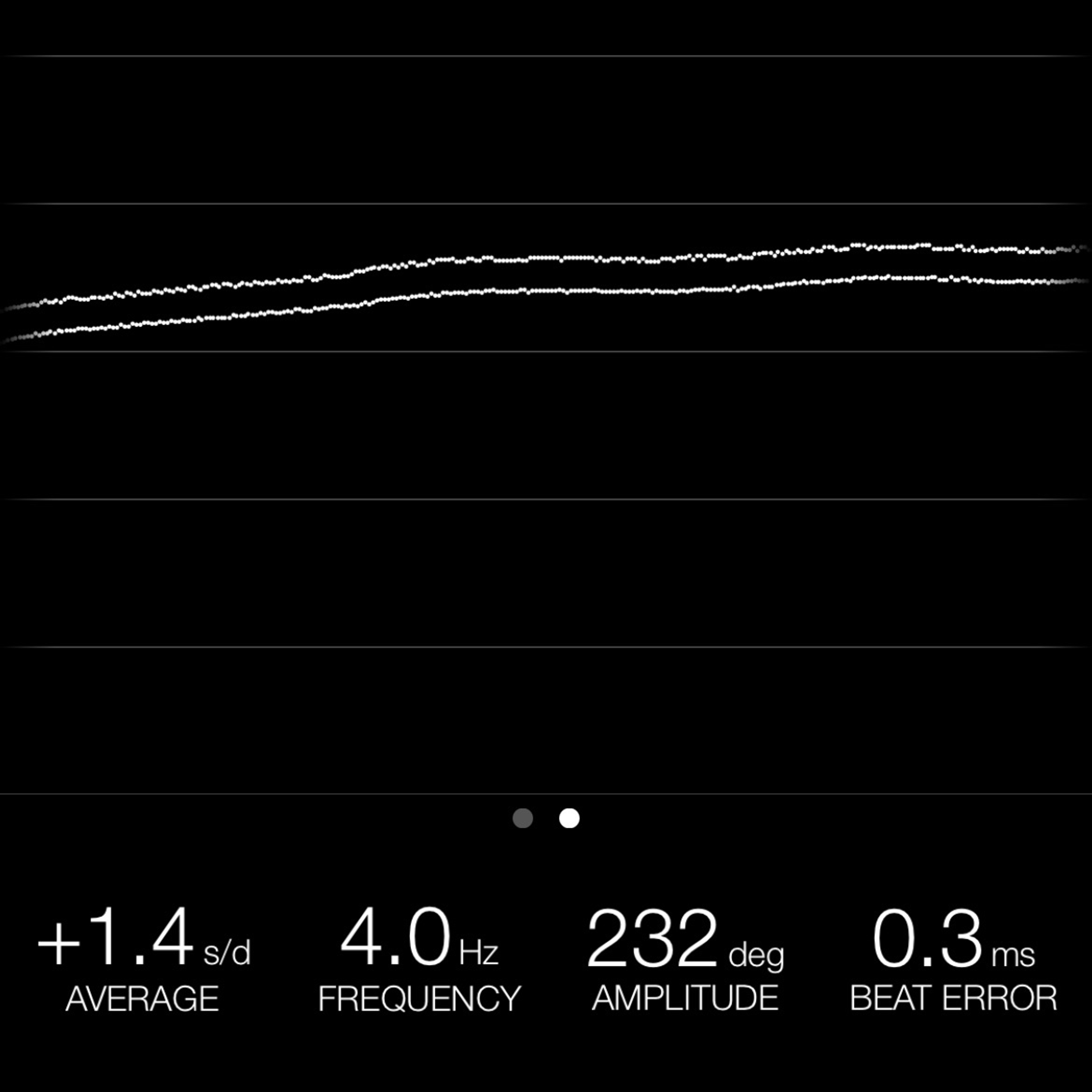 This reading was taken (crown down) with a ONEOF Accuracy Boutique Edition timing machine at time of cataloging. It is provided as a courtesy only, and shall not be construed as a warranty or guarantee of any kind. Please refer to our terms and conditions of sale for more information.