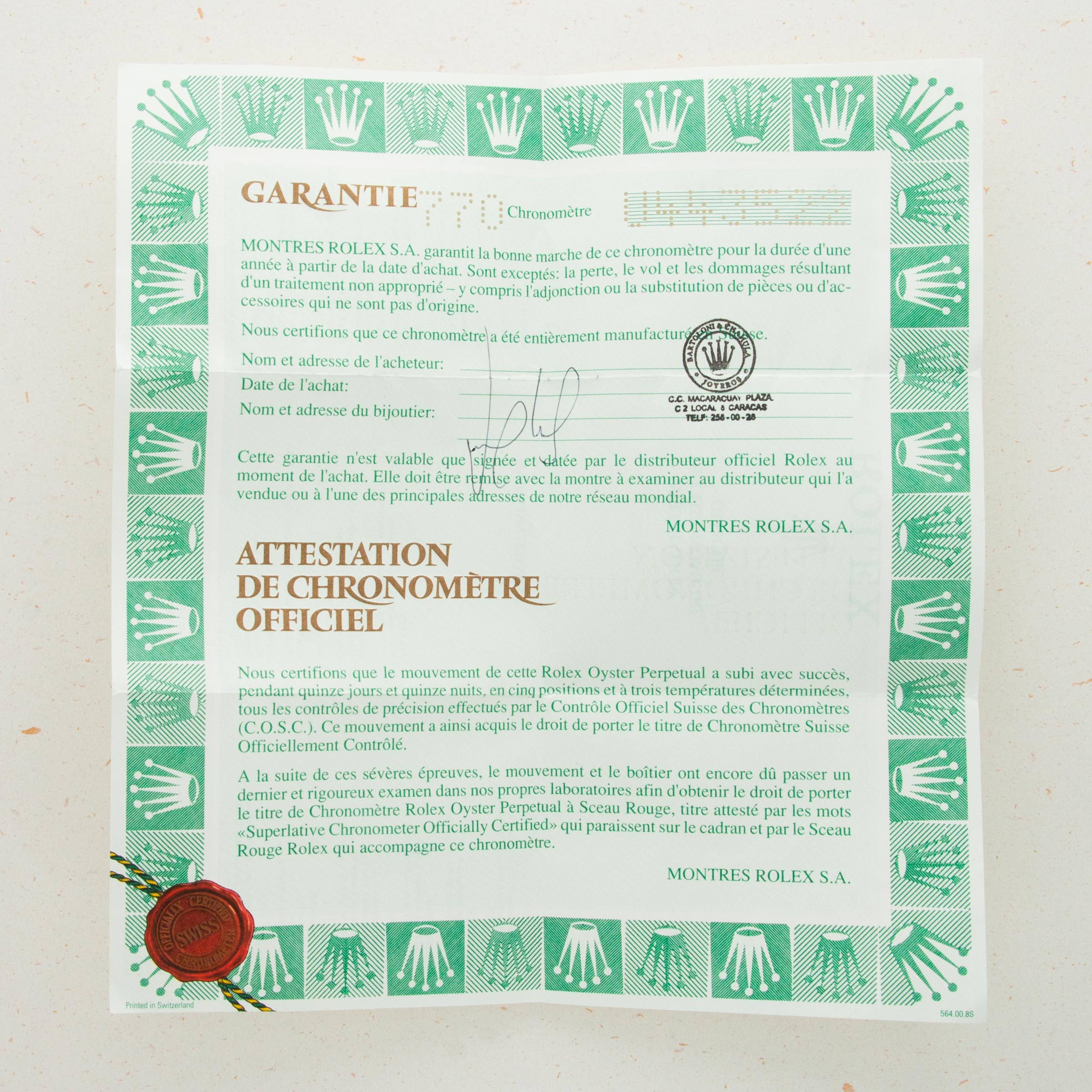 The overall condition is like 'new old stock'. Bezel and dial show no signs of degeneration. Case and bracelet appear to have the original finish, and exhibit no signs of wear. The caseback retains its original sticker which is in accordance with minimal, if any, usage at all.