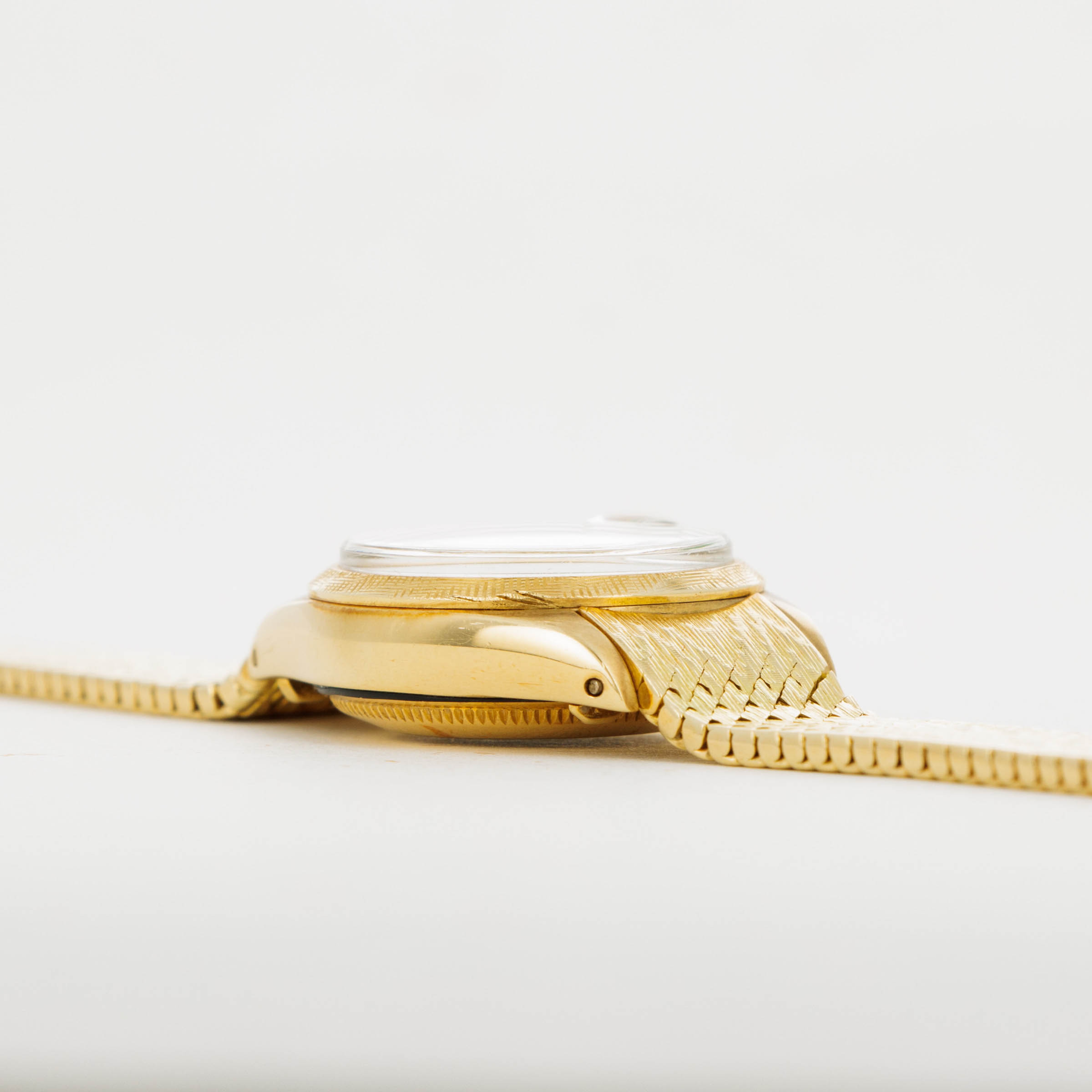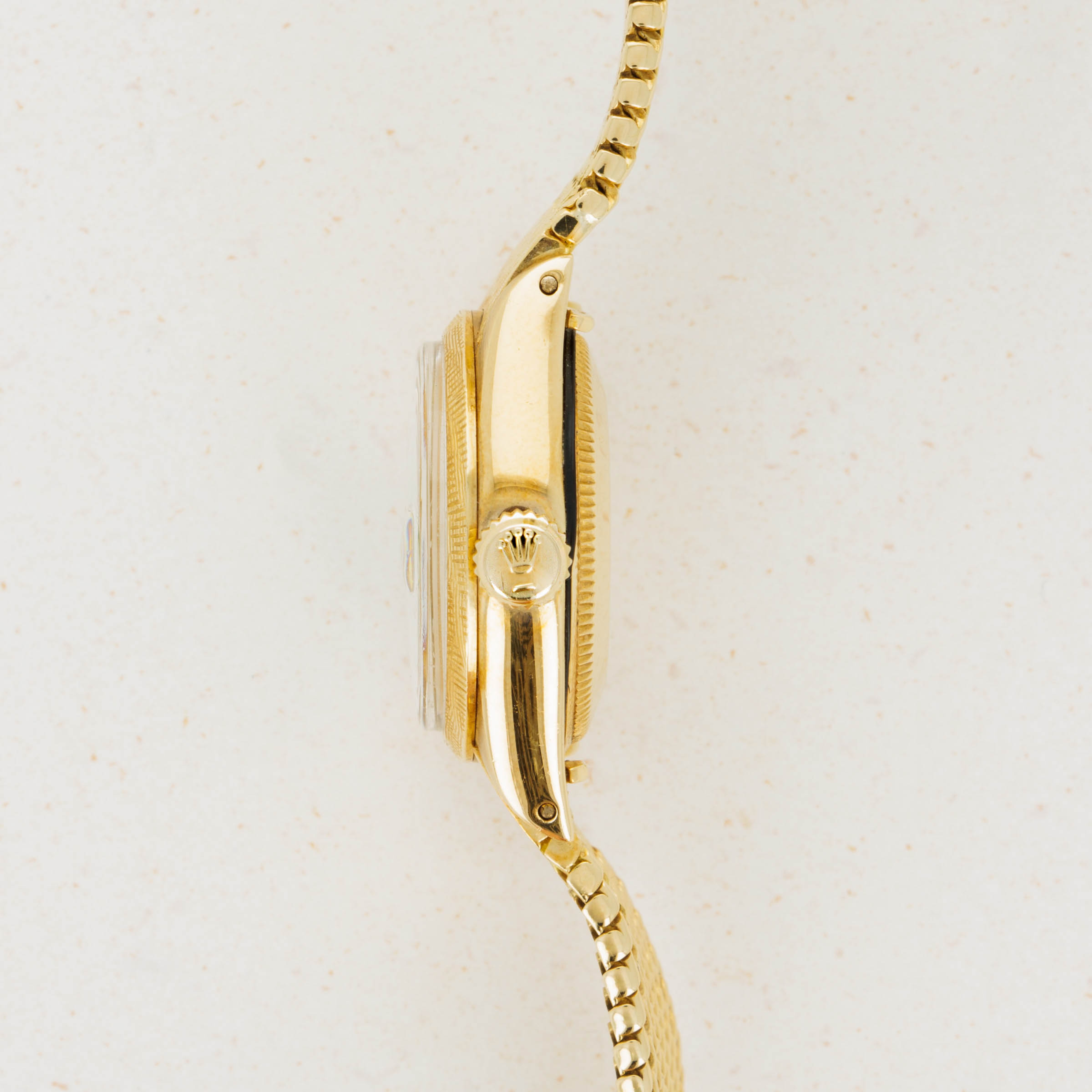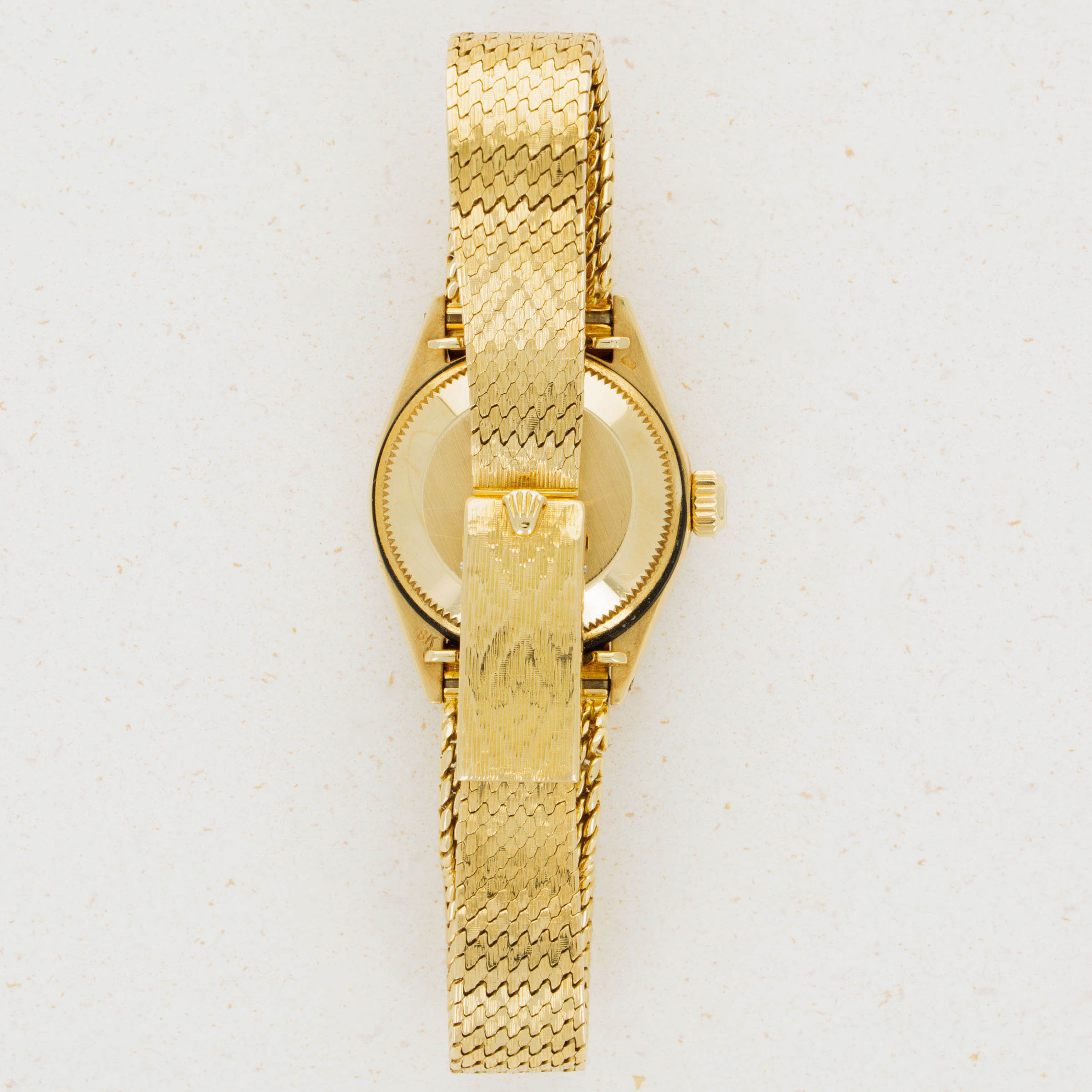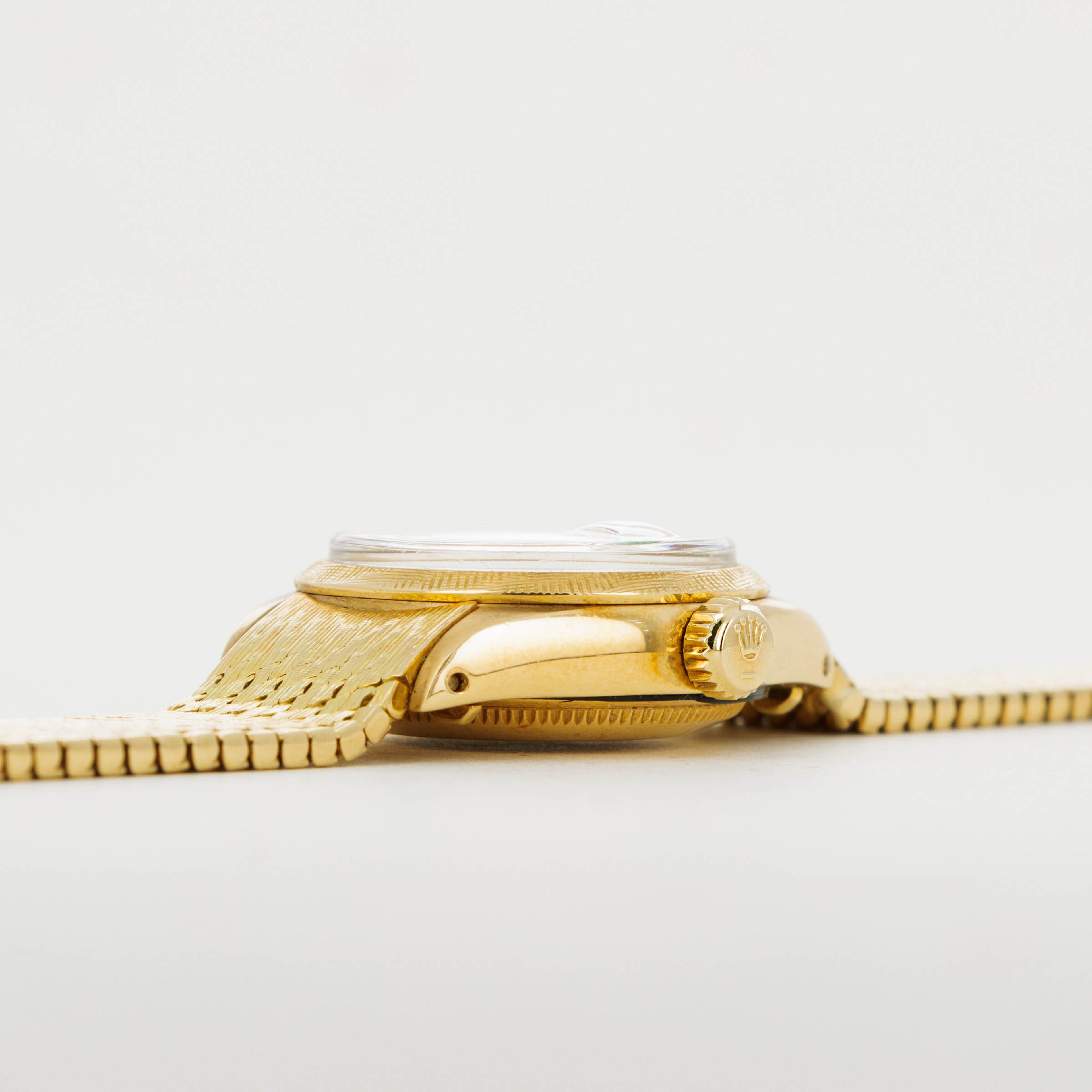 Featuring the rarely-seen cross-fluted finish on its bezel and an original intricate woven brick bracelet with vertical striations down its length, this Ladies Datejust makes up for its svelte 26mm diameter with its incredibly unique construction.