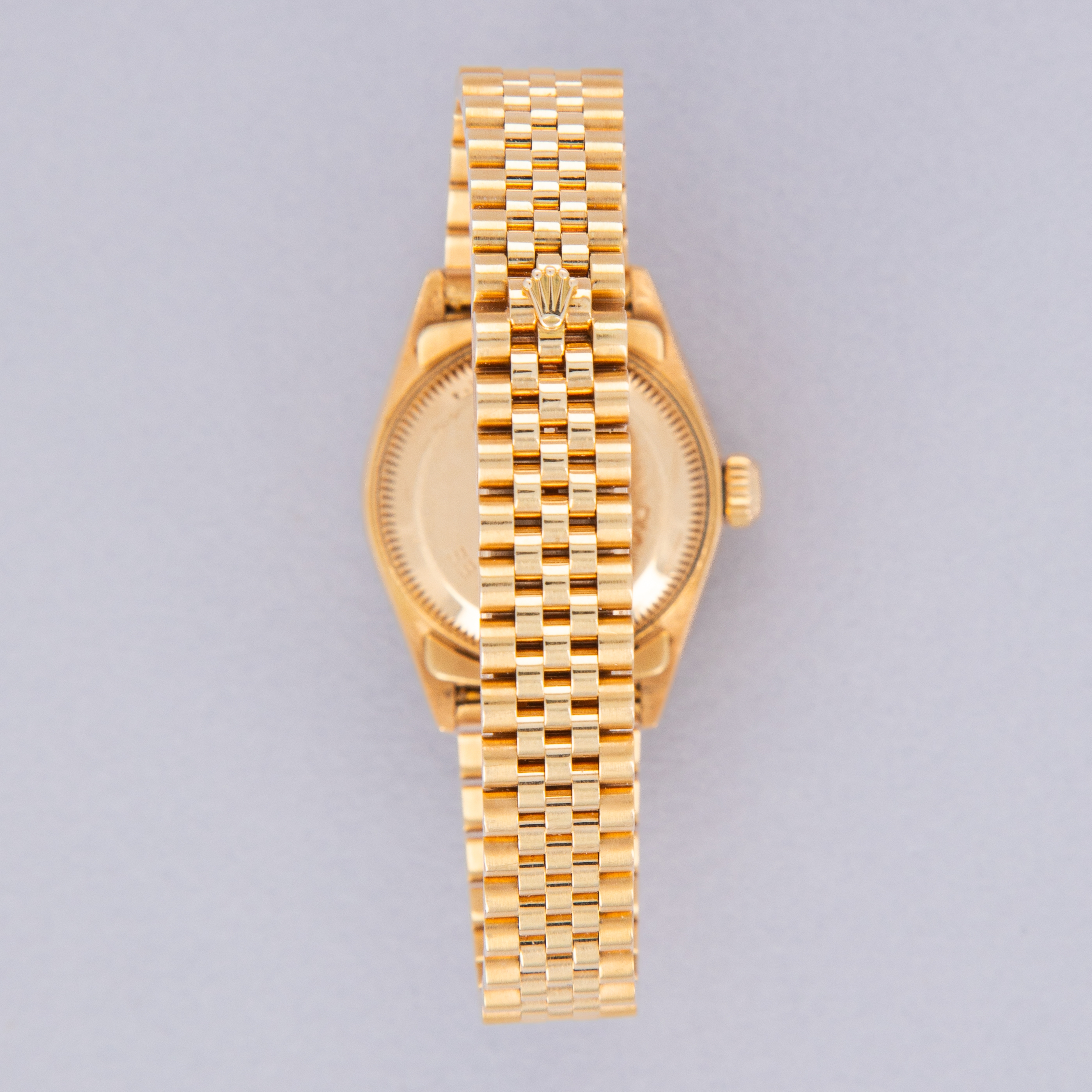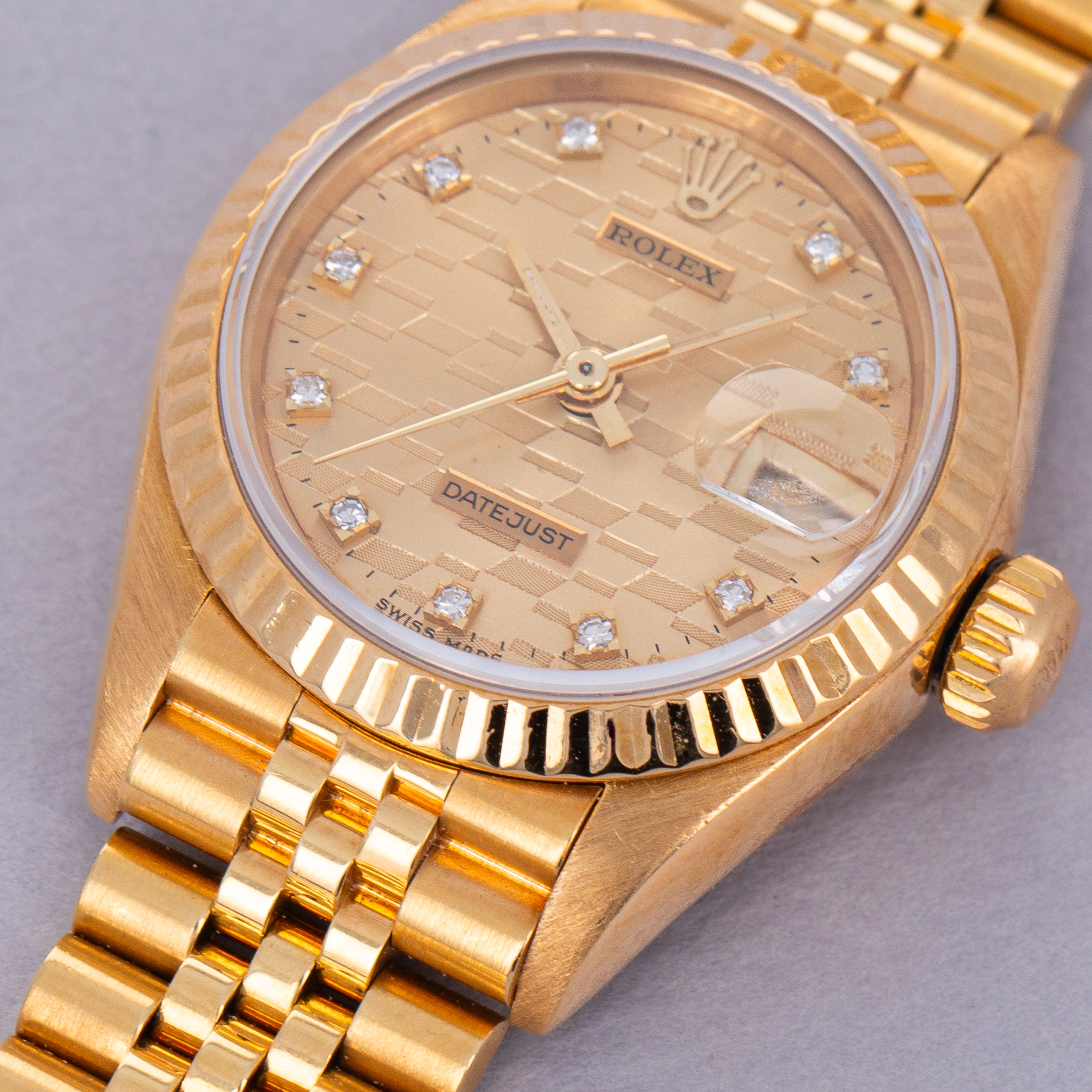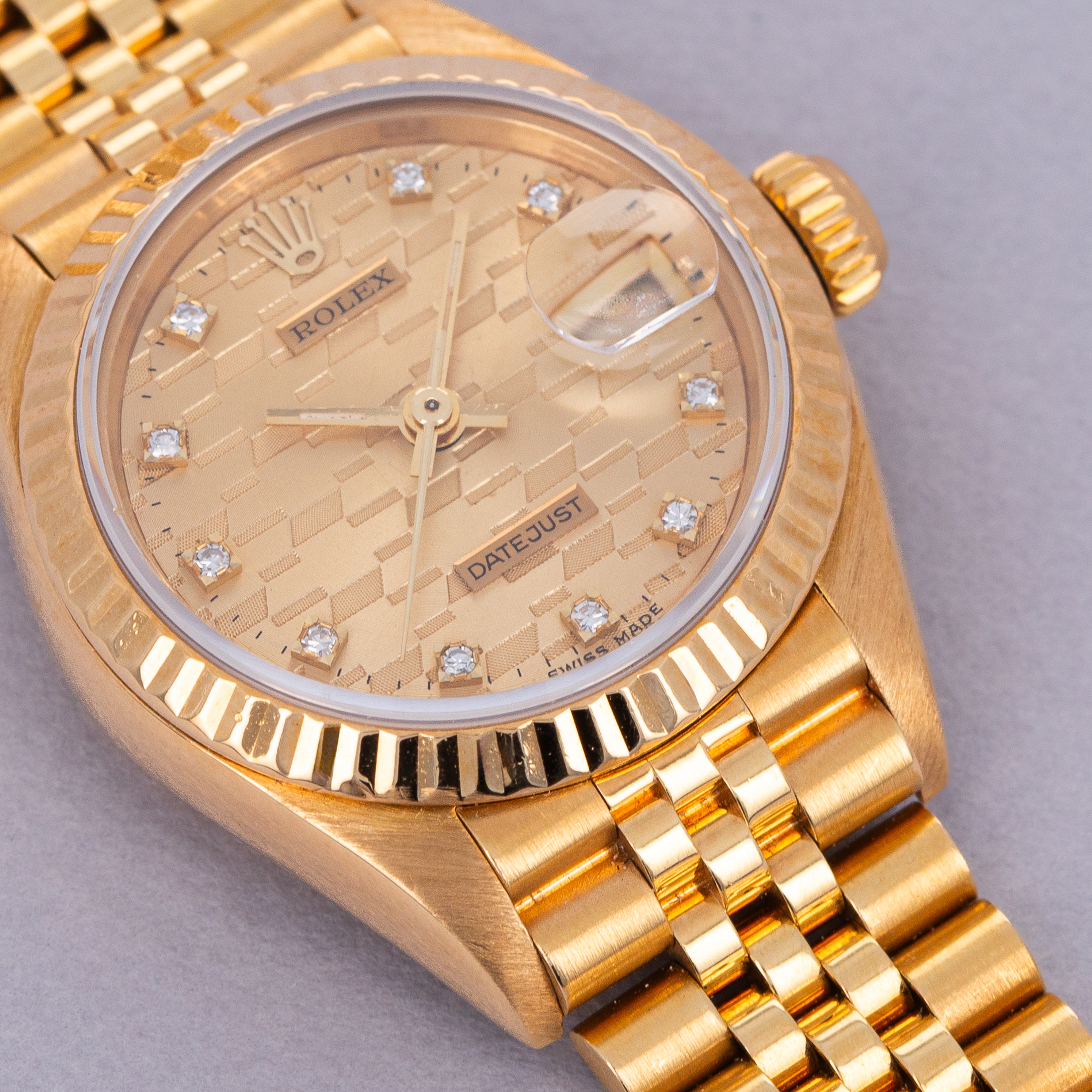 Released to celebrate Rolex's 40th anniversary in 1945, the Rolex Datejust has become one of the Genevan Giant's most iconic watches. The world's first wristwatch to display the date via an aperture on the dial, the Datejust revolutionized wristwatch design for decades to follow. With its emblematic Cyclops lens, jubilee bracelet (designed specifically for the model in 1945), and classy fluted precious metal bezel, the Datejust's aesthetic has always been that of pure elegance and class. Perhaps one of Rolex's most recognizable designs, the Datejust has evolved from its dressier roots into a perfectly capable timepiece rivaling the robustness of most brands' sports watches. Featuring a stainless steel case with a screw-down crown and caseback, the Datejust packs an impressive punch. 100m of water resistance alongside its consistently capable movements and construction have enabled it to become one of the best-equipped watches for daily wear and tear. Available in several different dial options, a multitude of materials, and across many styles, the Datejust is an inescapable reflection of its owner, with a model out there to suit pretty much everybody's tastes and preferences. The majority of Datejusts' were produced in stainless steel and two-tone, with fewer quantities made in 18k solid gold. Offered here, our Ladies Datejust ref. 69178 example boasts a specially engraved Chevrolet logo diamond-set dial that was commissioned by Chevrolet from Rolex as a special order to celebrate Cheverlot's 75th anniversary since their founding in 1911, or their Diamond Jubilee, as the example's engraved caseback states. Offered to Chevy's best-performing US-based Chevy dealers, this is a rare beast indeed.