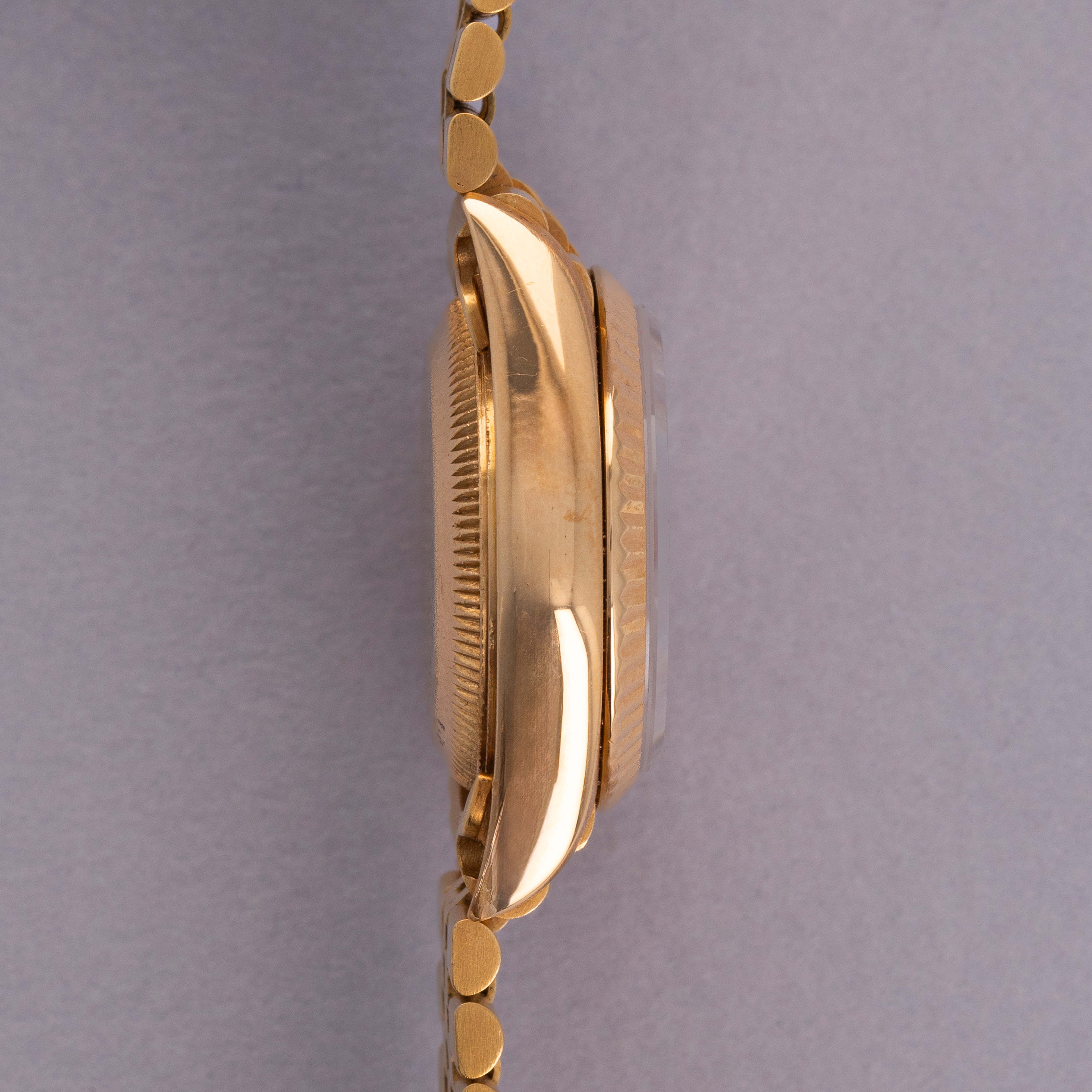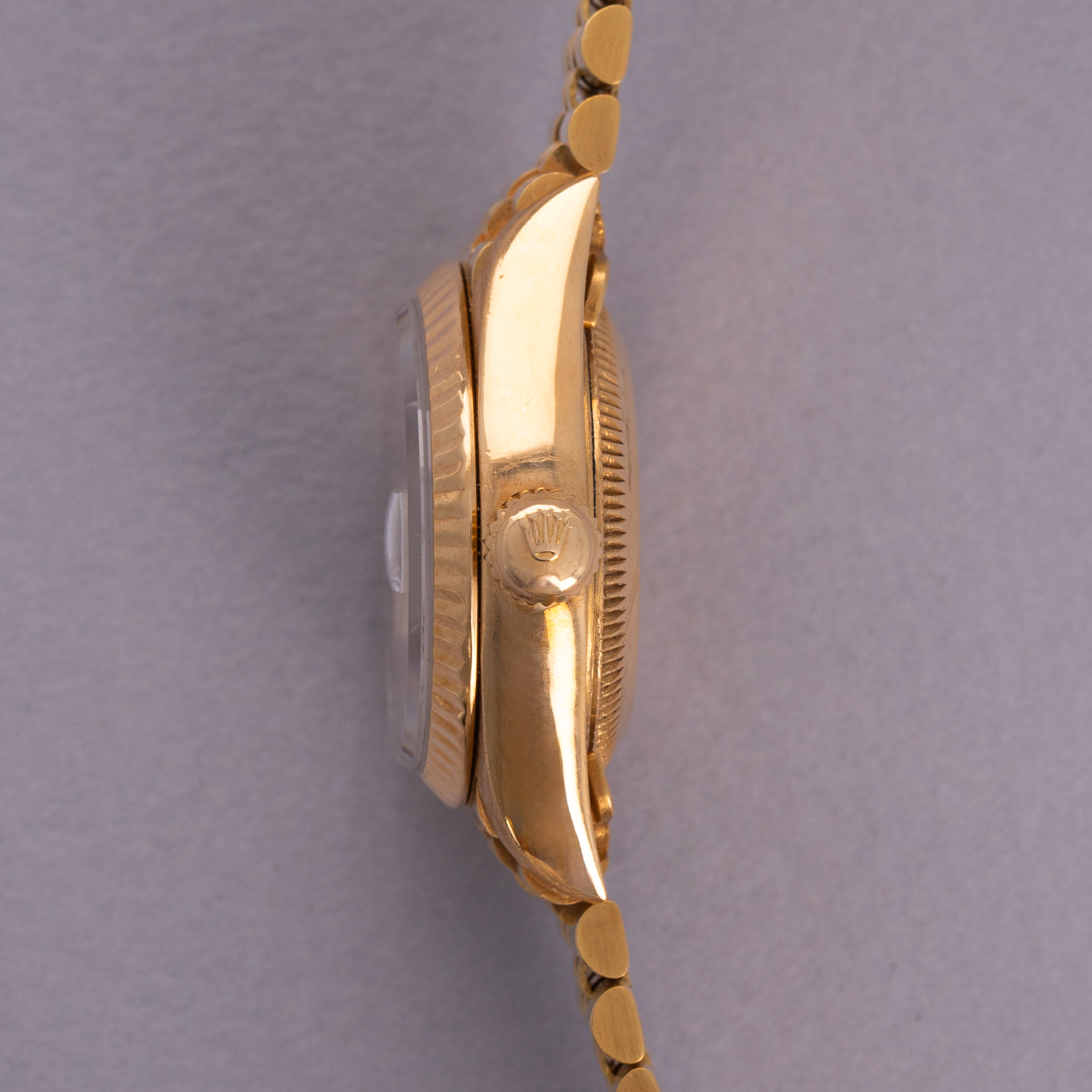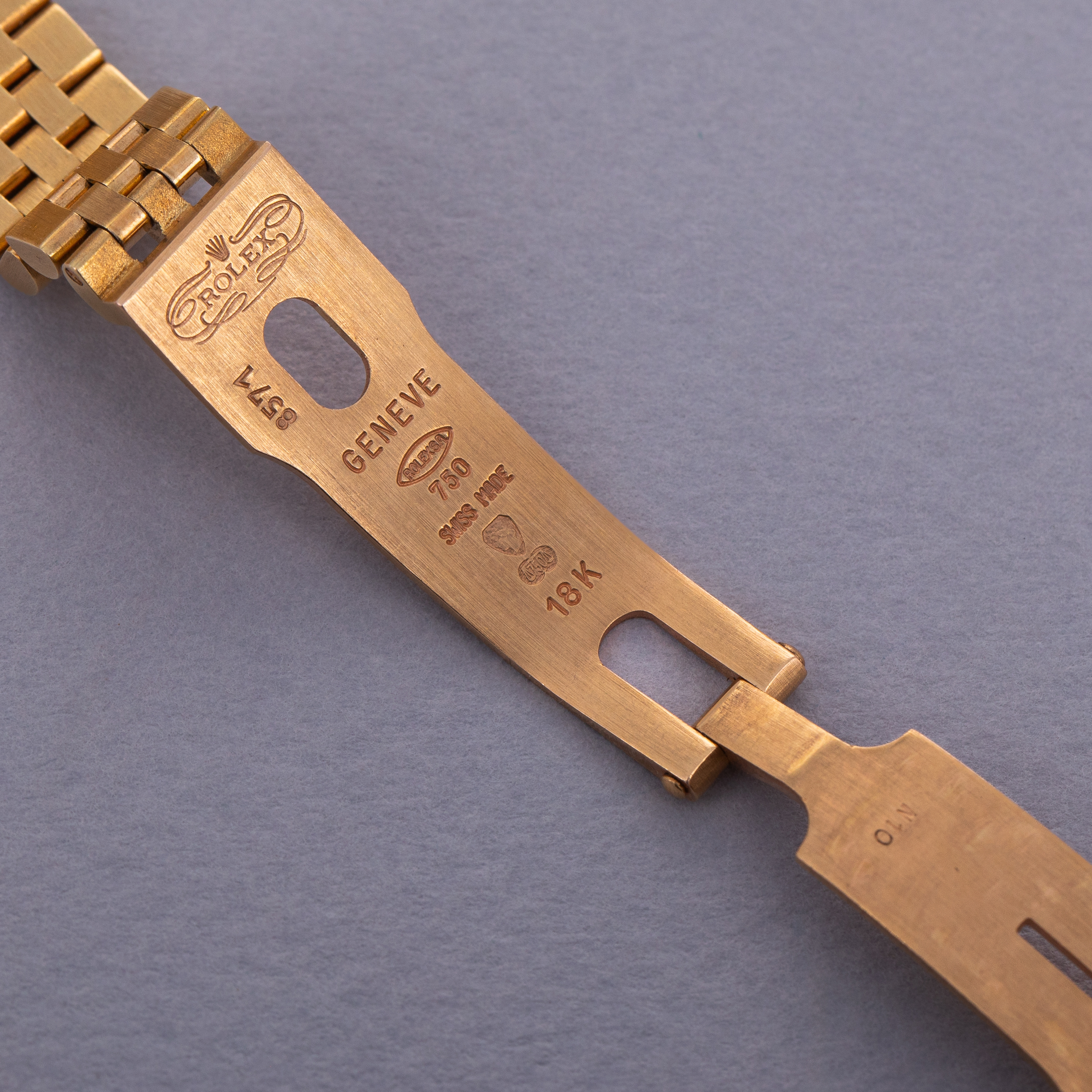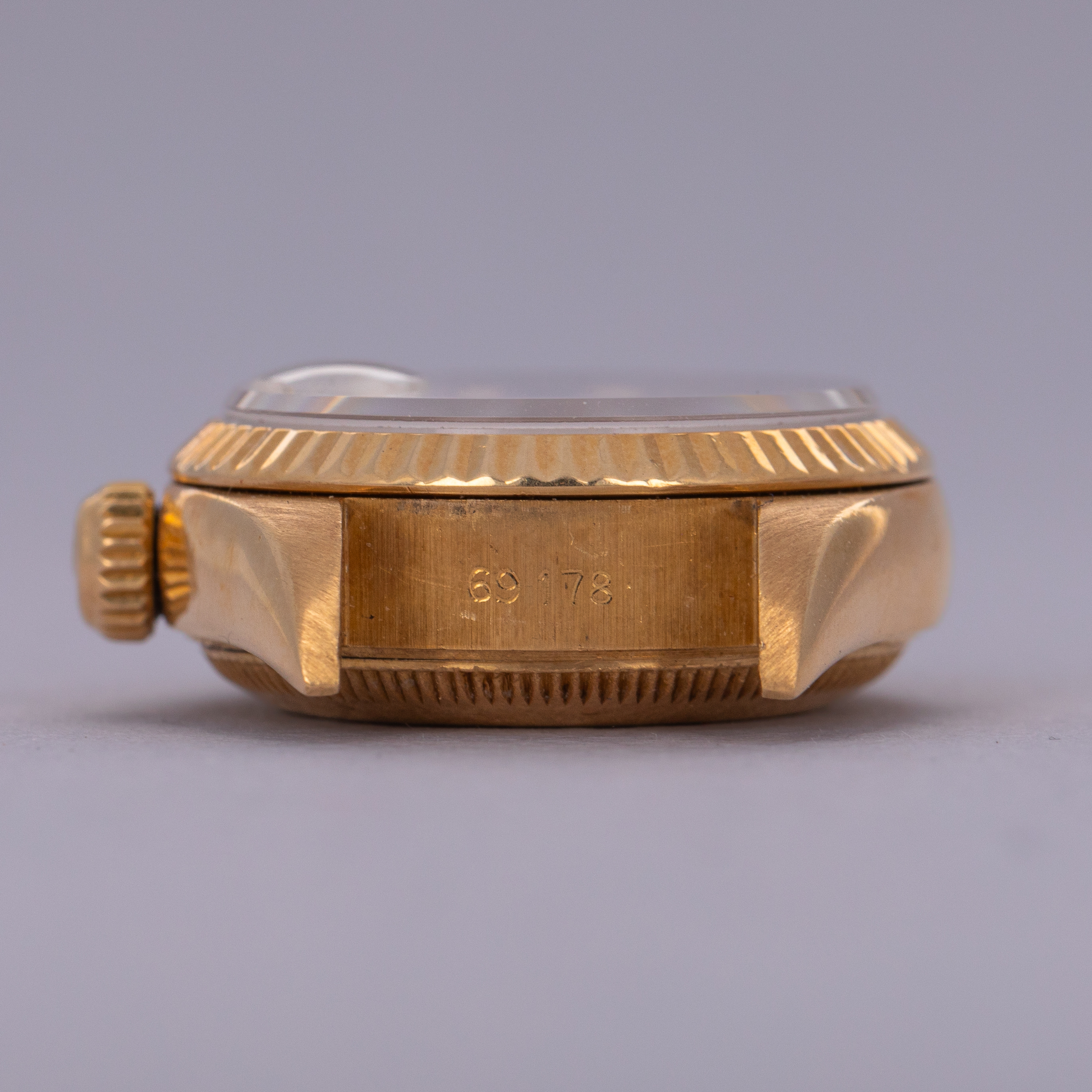 Boasting a specially engraved dial that was created at the request of Chevrolet, this ref. 69178 features the Chevy logo engraved across the entirety of its diamond-set golden surface.