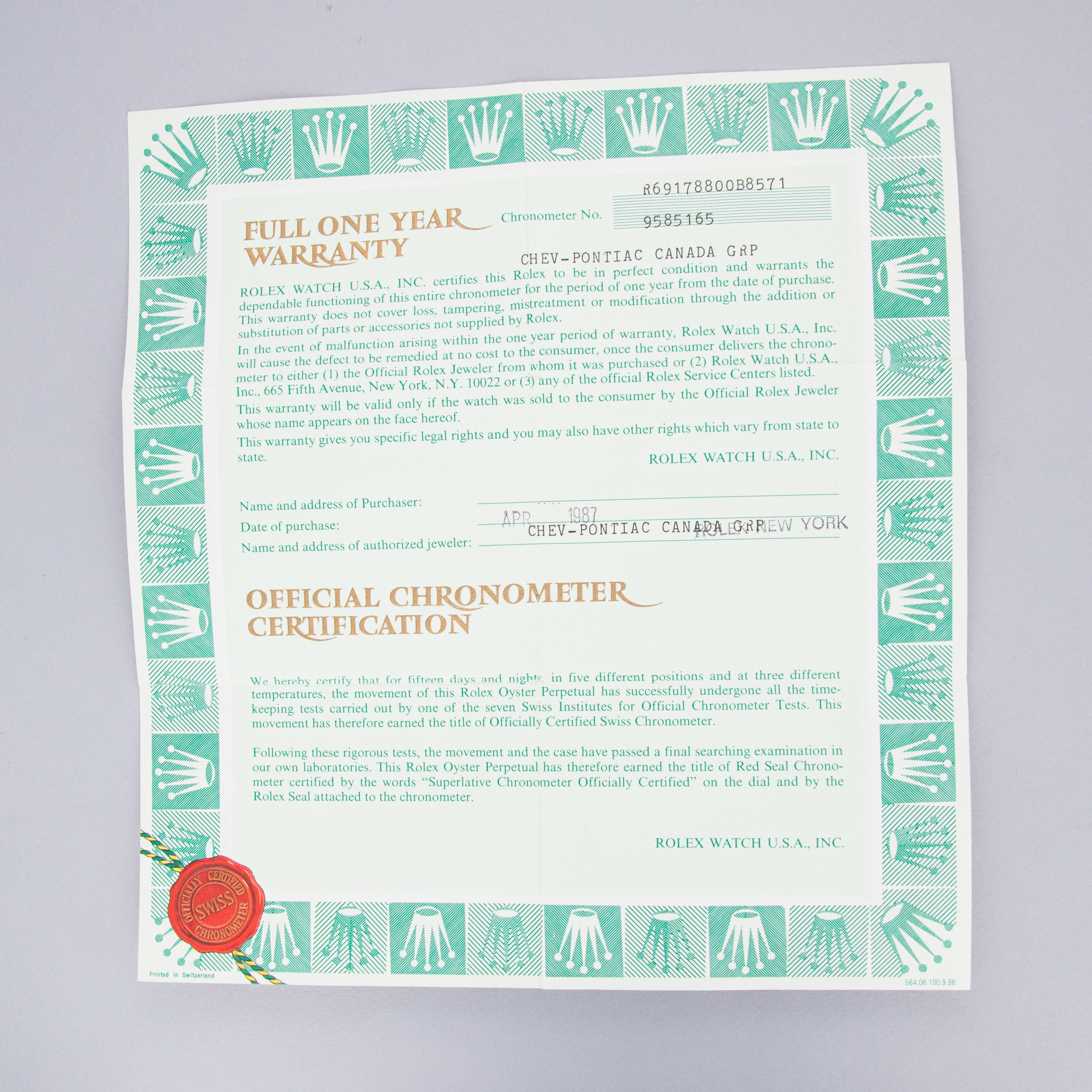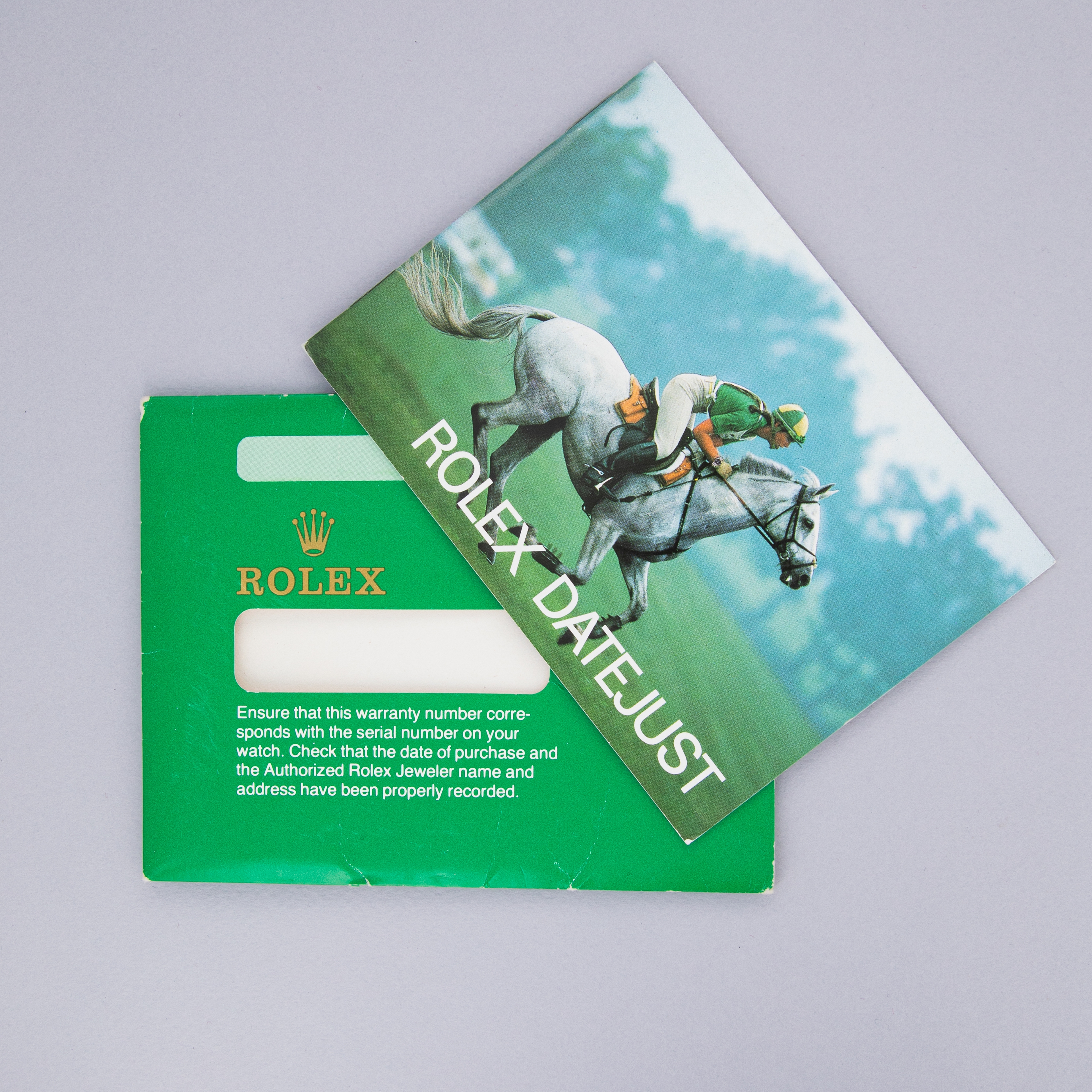 Watch, box, papers, Rolex serialized hang tag and Rolex handkerchief