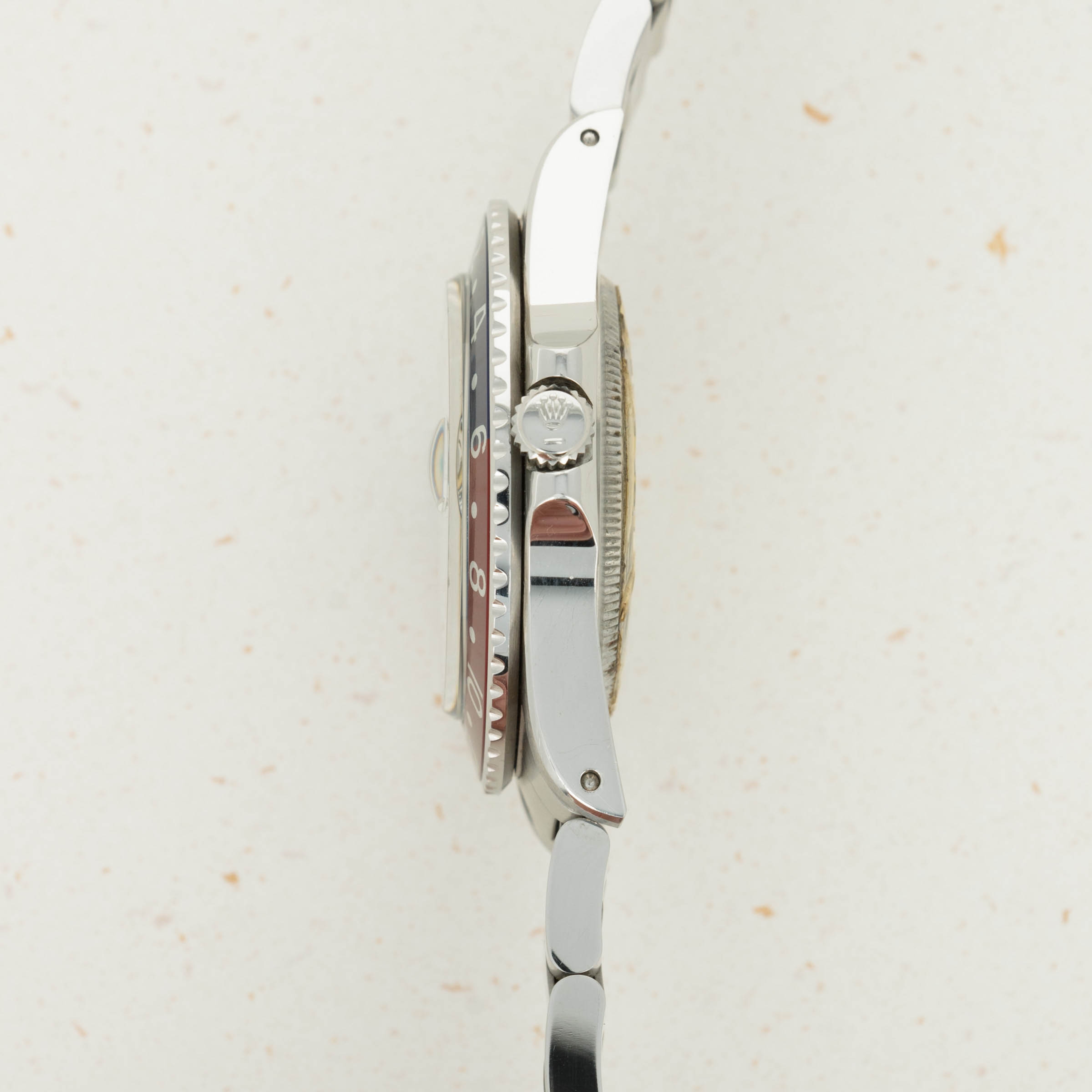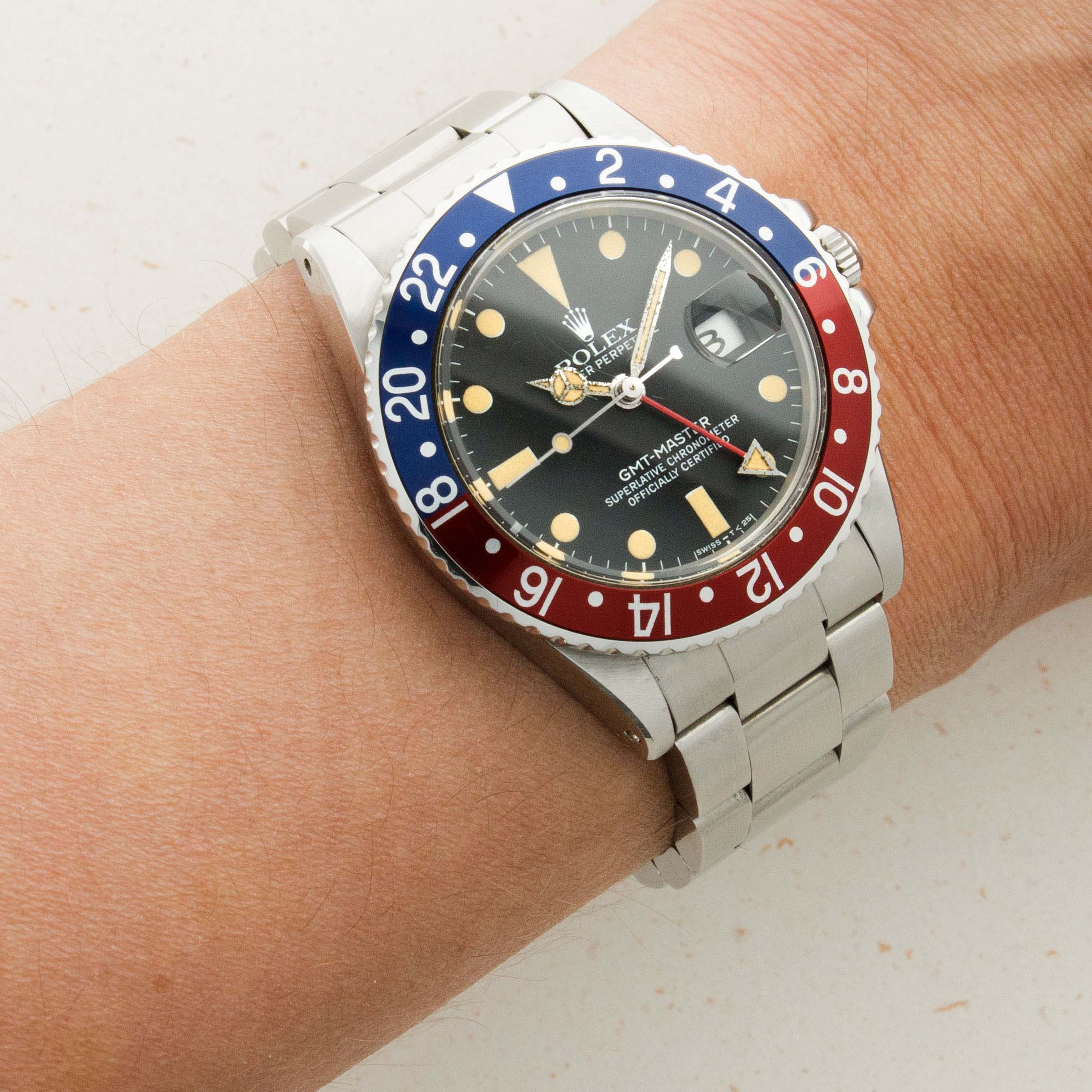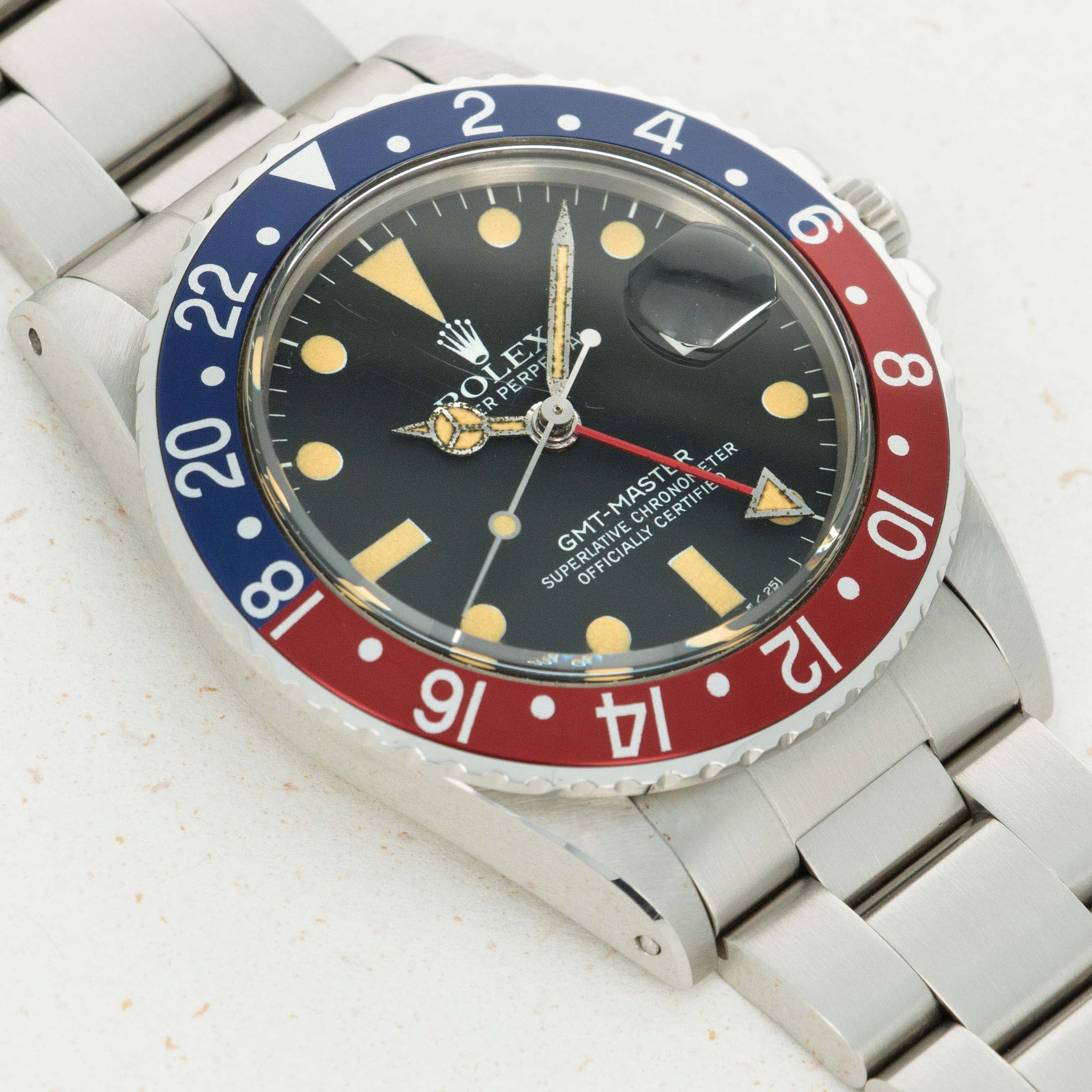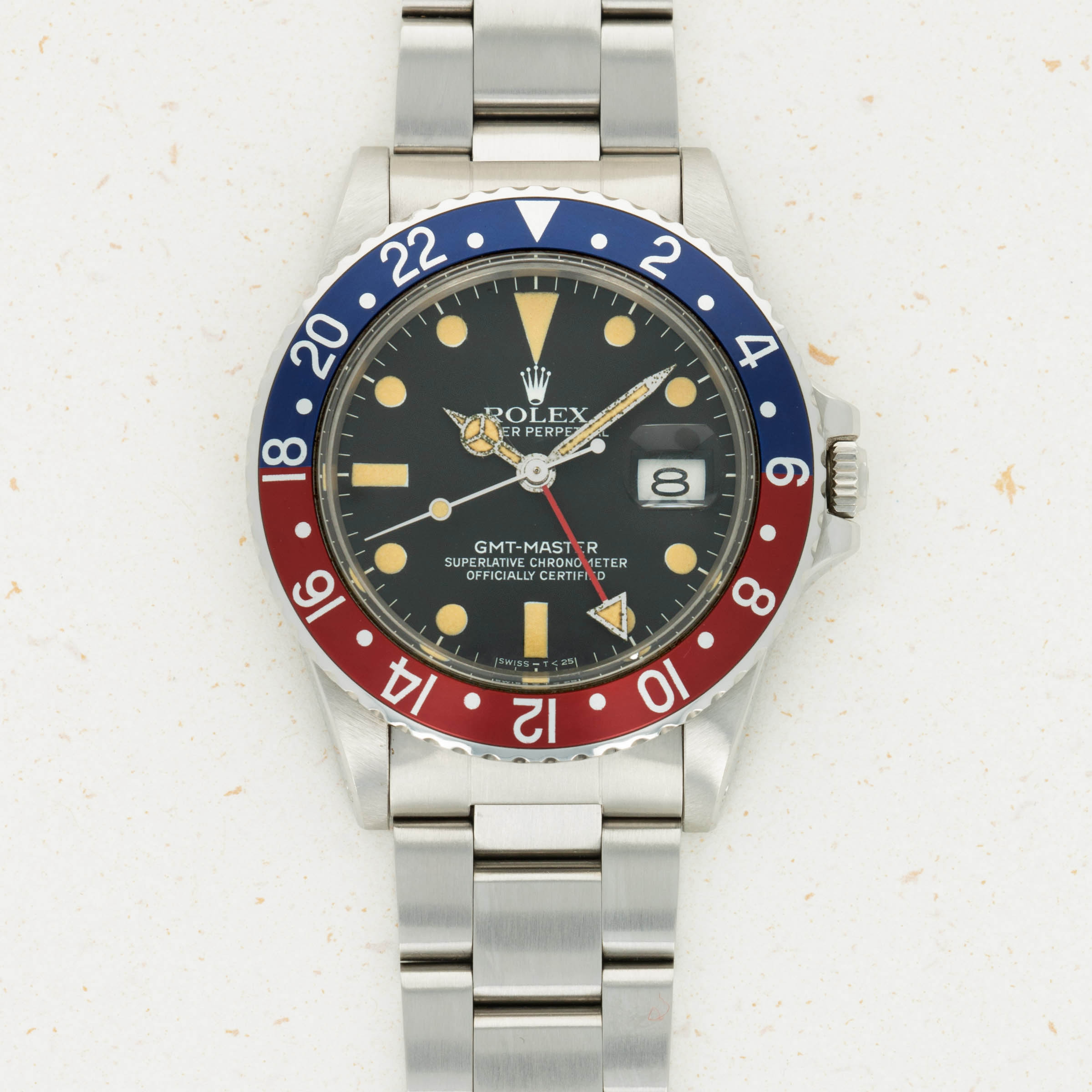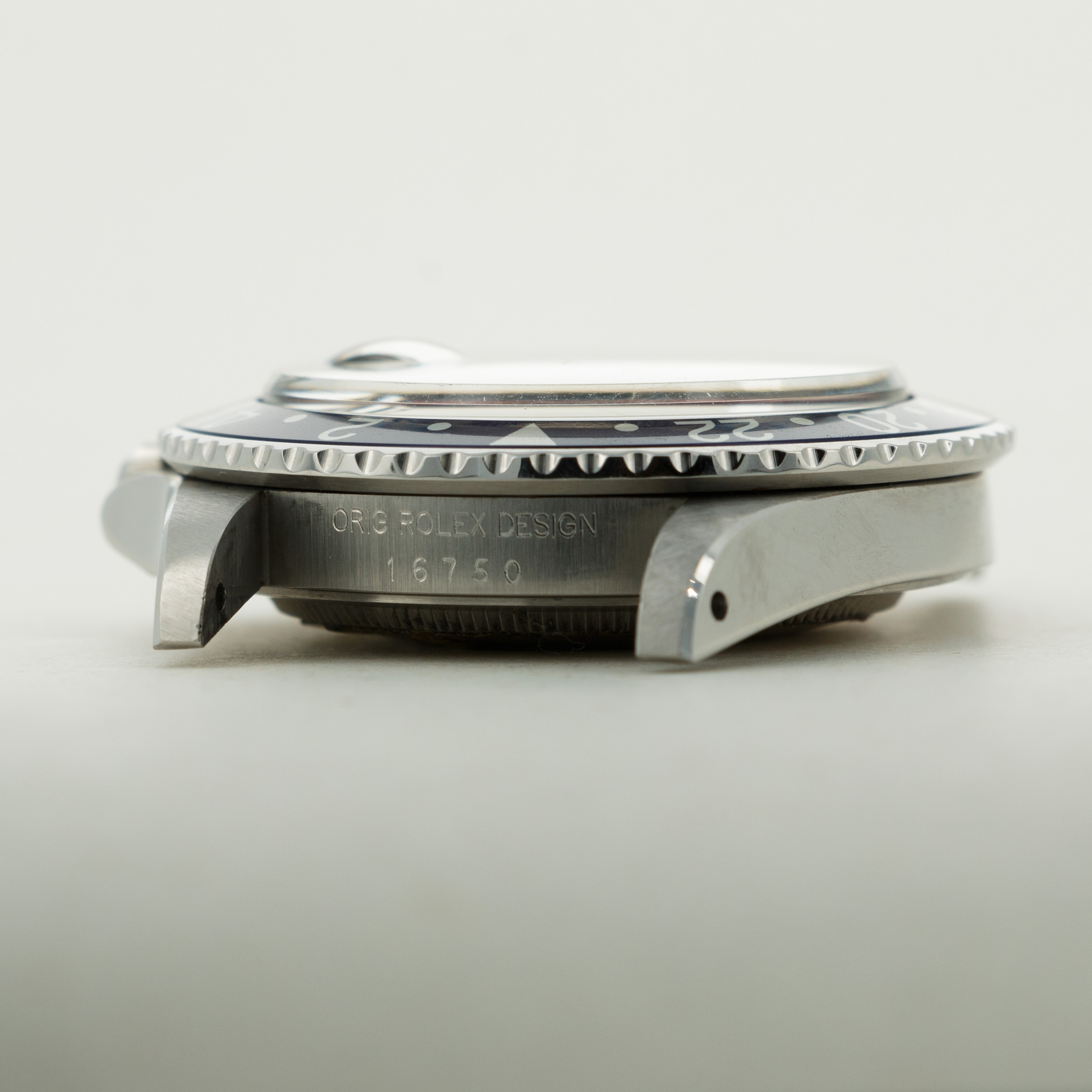 Derived from the ref. 1675 which replaced the ref. 6542 in 1959, the Rolex GMT Master ref. 16750 was released in 1980 and continued where its predecessor left off. Featuring the crown guards and "Superlative Chronometer Officially Certified" inscription that the ref. 1675 introduced to the collection, the new ref. 16750 also introduced the cal. 3075 movement to the collection which featured the not-yet-seen quickset feature, and 100m water resistance - double the previous models, and still the collection's standard to this day. Exiting production around 1988, the ref. 16750 is one of the rarer GMT variants, with some enjoying over 20 years of production. Combined with its short 7-year production run and given that it is the very last of the acrylic crystal GMT-Master references, the ref. 16750 is a highly sought-after timepiece with an iconic heritage and some of watchmaking's modern superstar timepieces existing as its descendants.