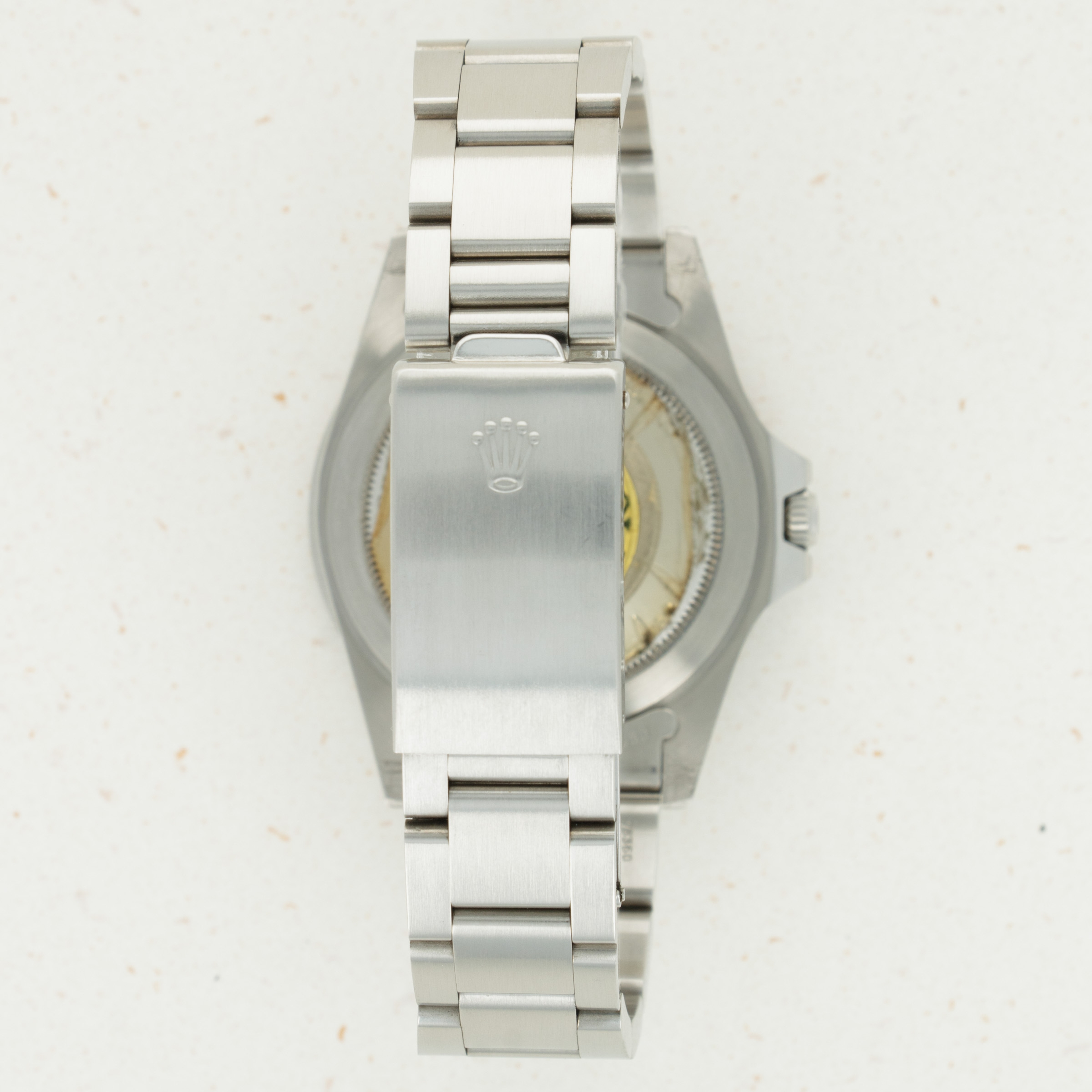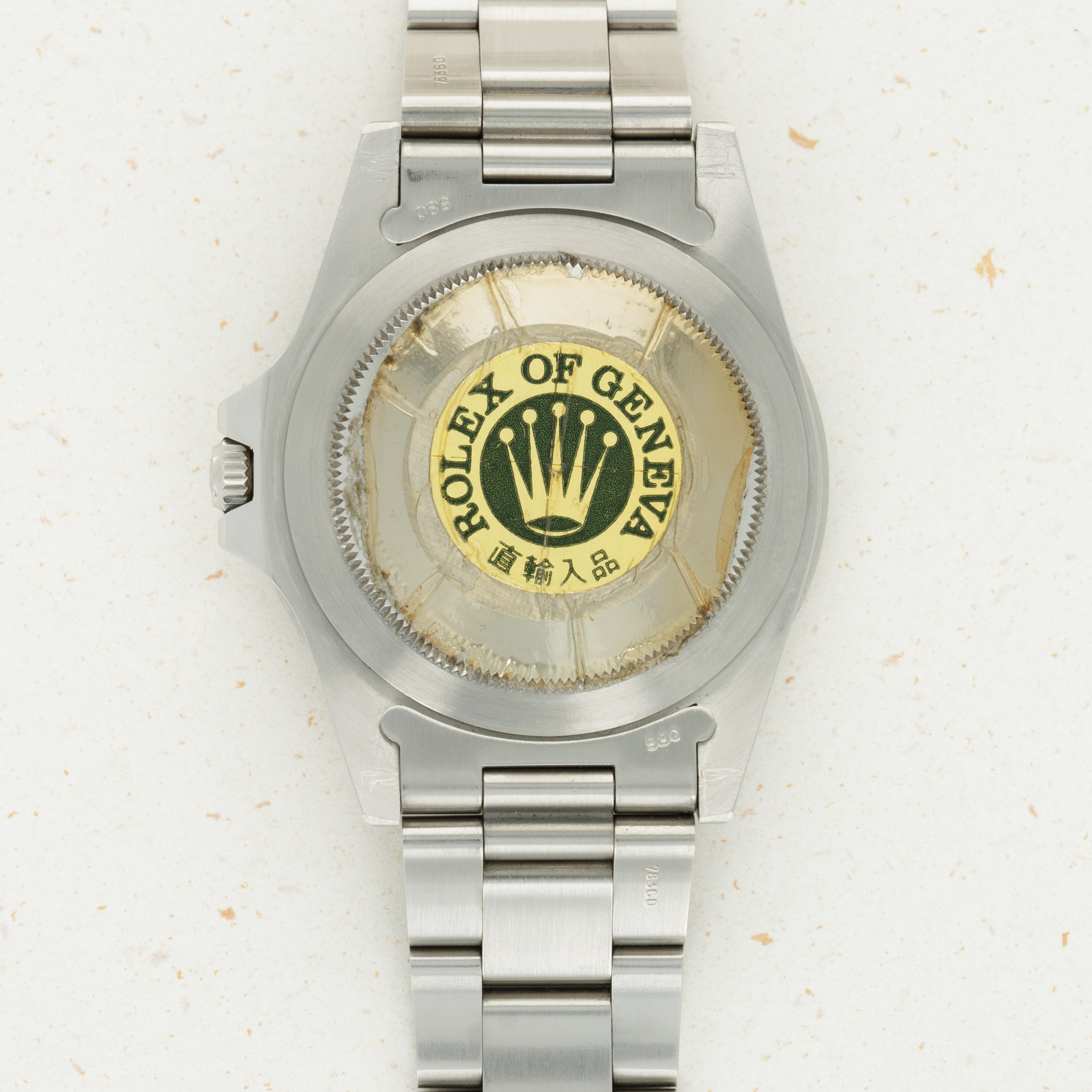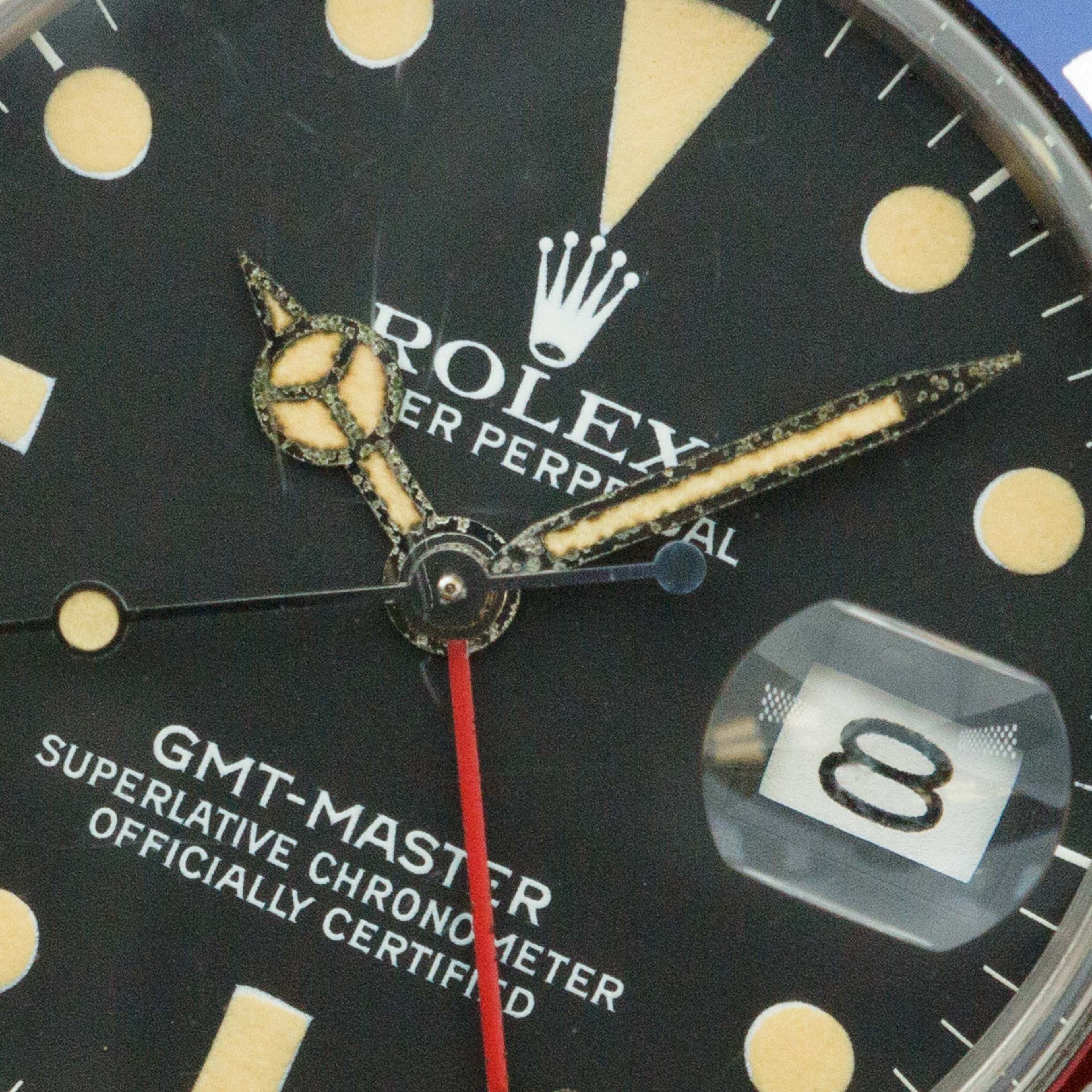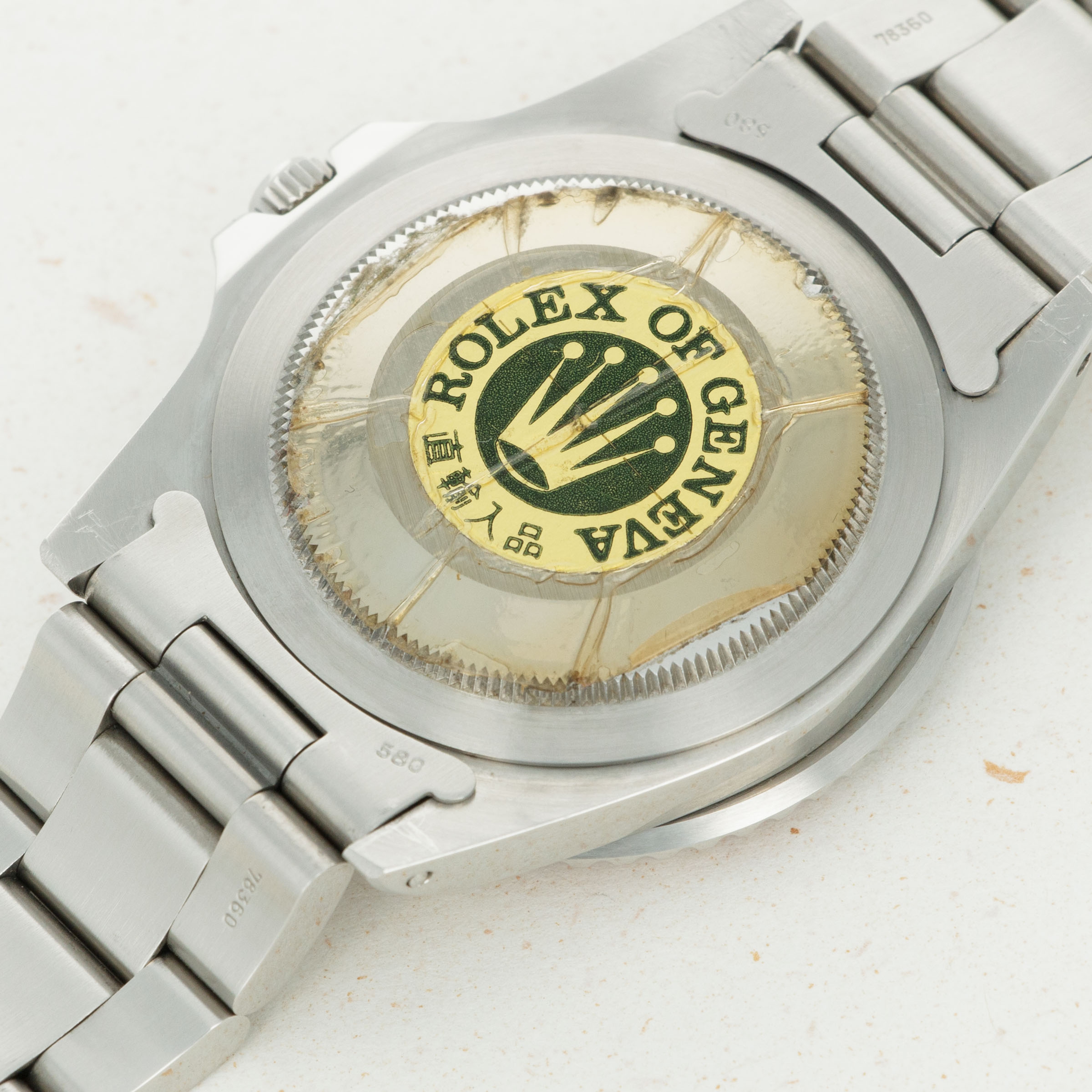 The watch is in 'like new' condition overall. Dial appears to be untouched, and has rich matching patina on the markers and hands. Hands have oxidized as shown, and there are minor scratches on the original acrylic crystal. Case and bracelet are mint with no signs of use, save for some scratches around the lug holes due to improper removal of the bracelet. Watch retains the full original caseback sticker from Rolex Japan. Bracelet is sized to fit a 7.5" wrist but can be adjusted. There are 13 links in total.