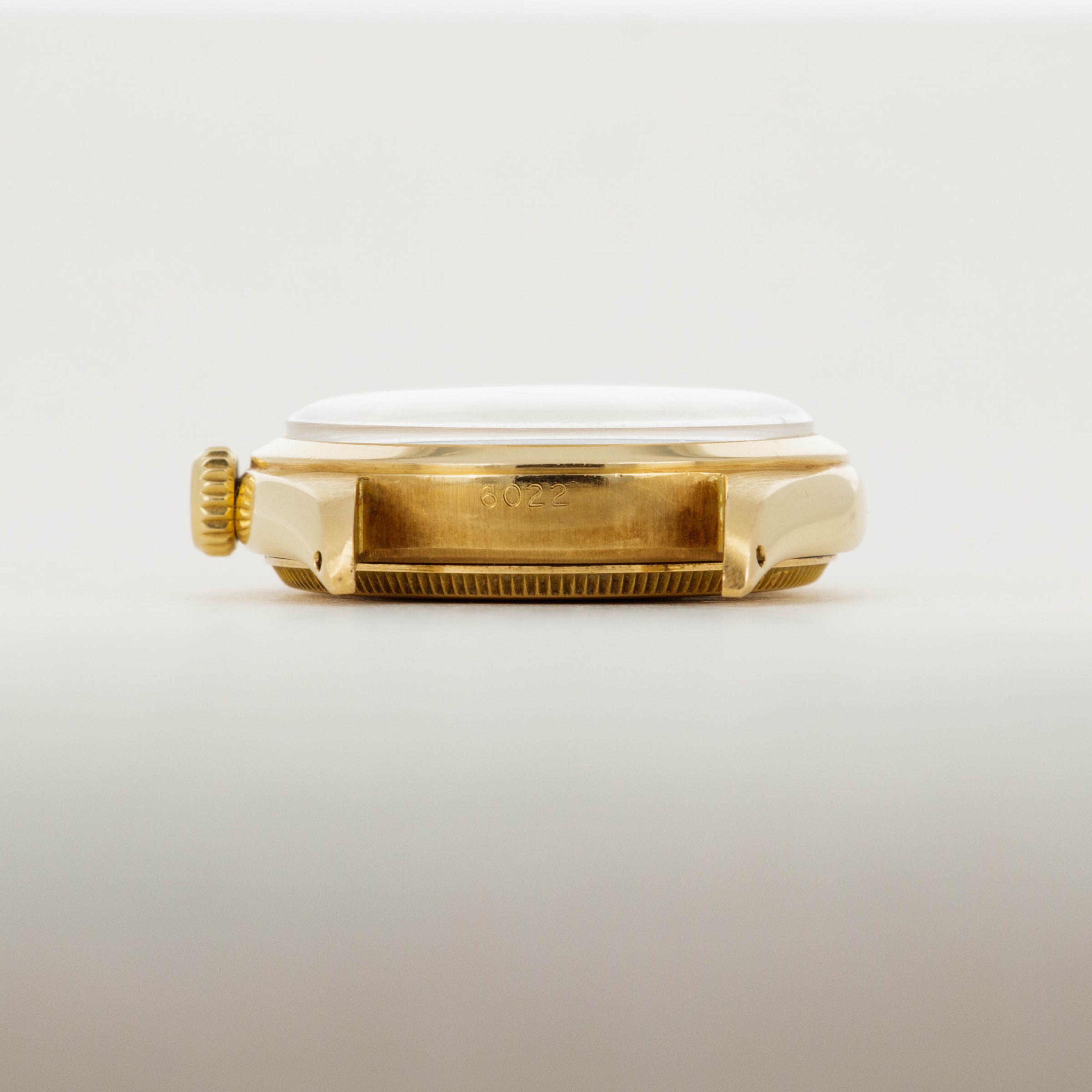 A wonderfully luxurious timepiece that is filled with history, the Oyster Perpetual ref. 6022 in its 18kt yellow gold form is a wonderful reminder of Rolex's longstanding heritage as one of watchmaking's premier watchmakers. This particular example is quite unique, with its chronometer certified movement- very unusual for manual wind calibers of this era, and making it a true gem.